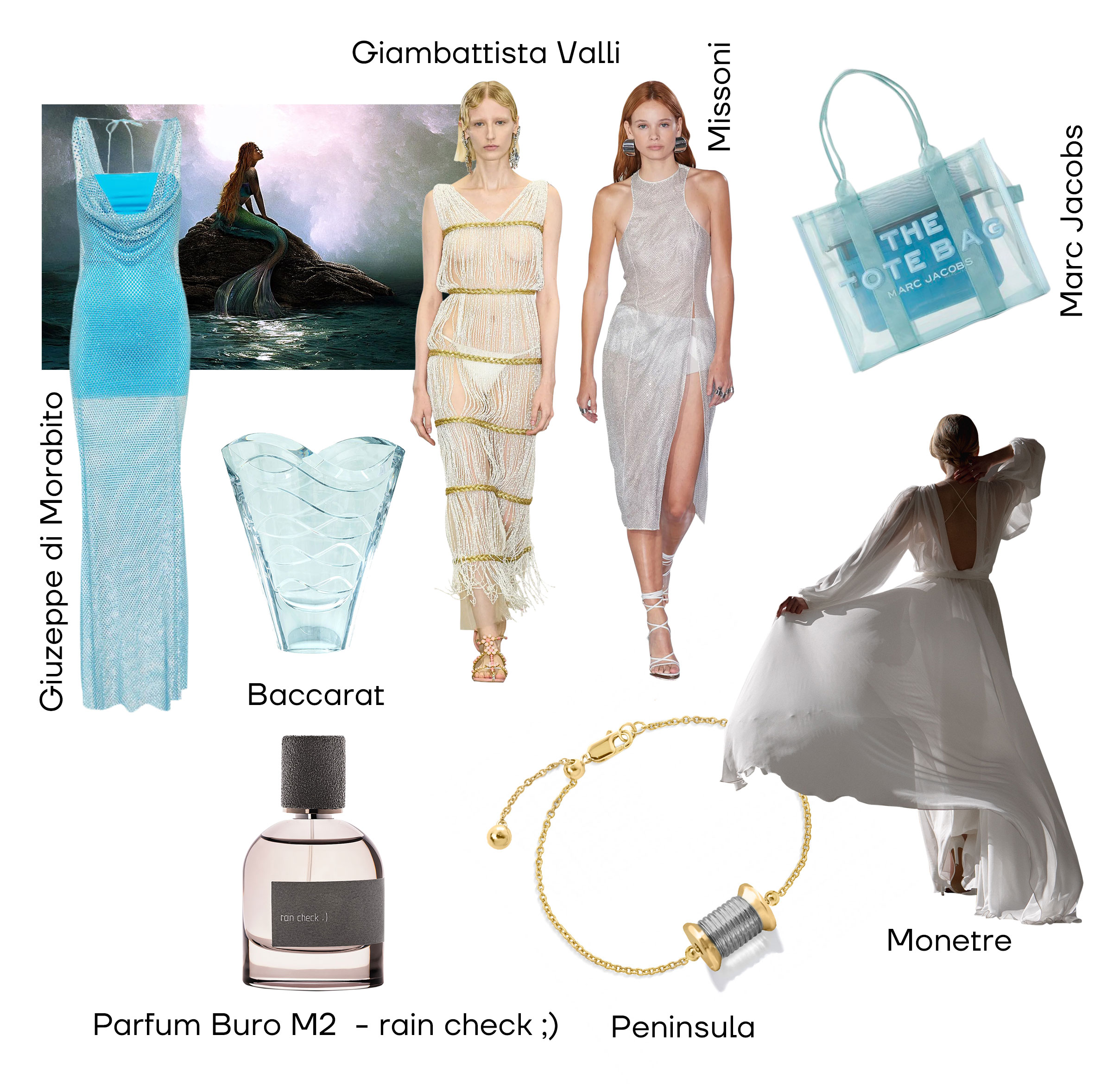 В образі русалки людина відтворює образ краси, яку можна побачити, але не можна утримати біля себе. Цей постійний пошук змушує мріяти, рухатися, шукати нове. Дизайнери роблять це за допомогою матеріалів – у колекціях Літо 2023 є мушлі, канати, особливий пластик, складні драпірування.