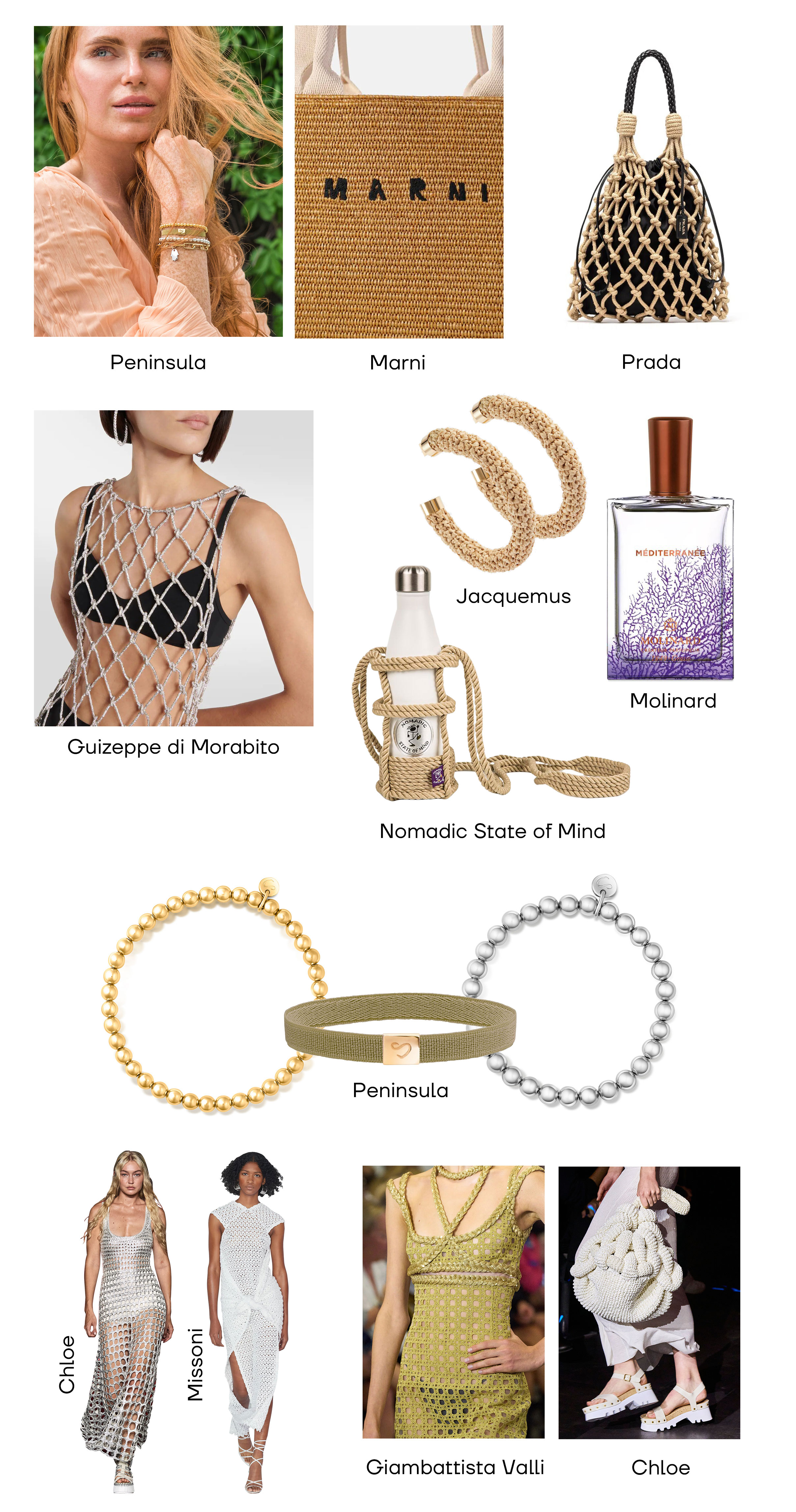 Комплект браслетів "Незабаром літо", Peninsula. Сумка, Marni. Топ, Guizeppe di Morabito. Chloe Spring Summer 2023. Giambattista Valli Spring Summer 2023. Missoni Spring Summer 2023. Сережки, Jacquemus. Сумка, Prada. Тримач для пляшки, Nomadic State of Mind. Кейп Shoulder cape in red, Monetre.