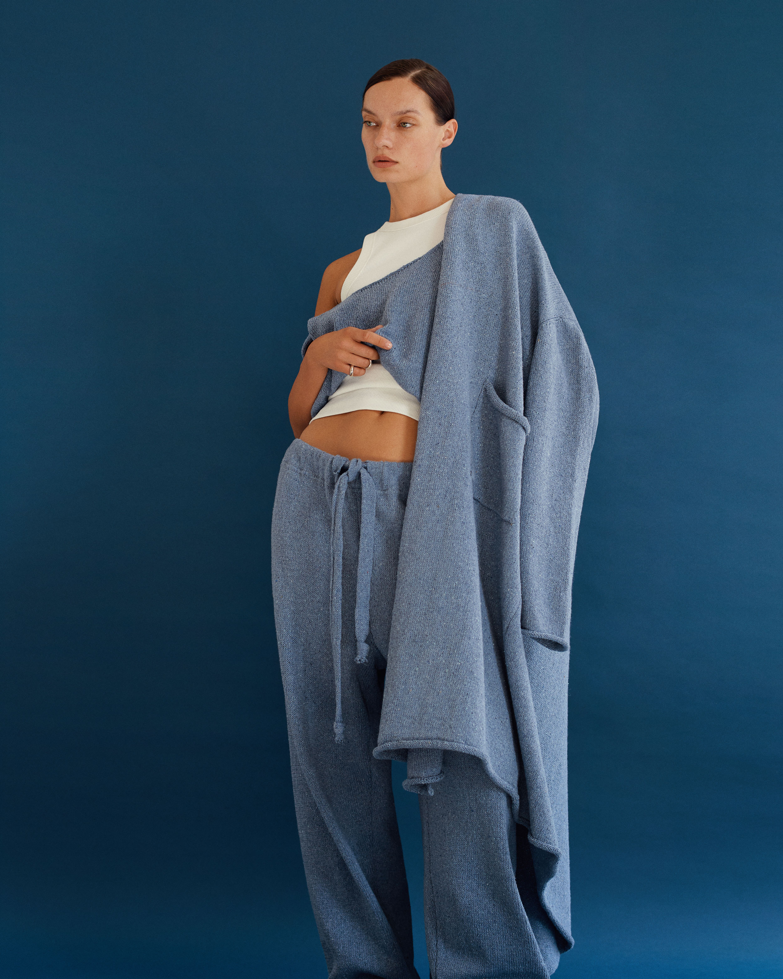 Однією з частин фешн-релізу стали трикотажні образи, нитки для яких були виготовлені зі старого деніму в Італії. Серія з осінньої колекції розкриває цінності українського бренду — інновації, екологічність й інтелектуальний стиль.