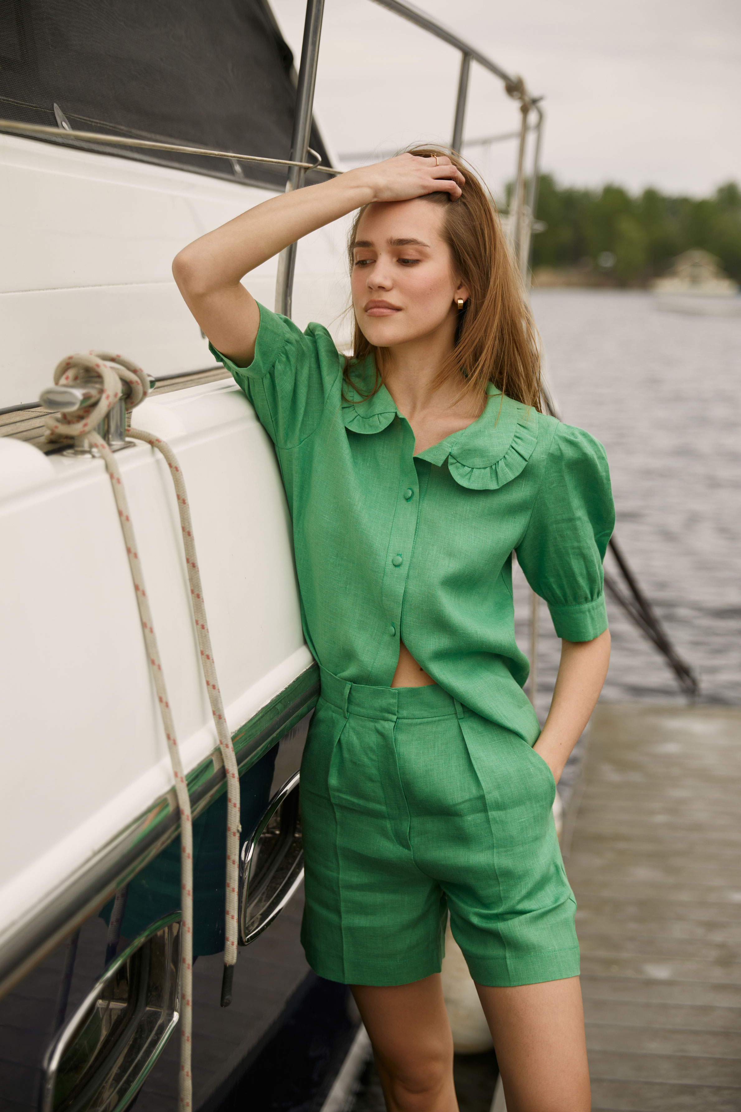 До капсули ввійшли лляний костюм з шортами-бермудами та блузою із комірцем, комбінезон вільного крою та дві просторі сукні, аби тіло максимально дихало та приваблювало закохані погляди. Основні кольори колекції - соковиті та яскраві жовтий, малиновий, зелений, бузковий, а також незмінні класичні — чорний та білий. Речі з колекції дозволяють почувати себе доречно як у міських джунглях, бігаючи по справах, так і в умовах пляжного відпочинку, сховавшись від спеки. А головним аксесуаром YASNA, без якого не обійдеться жоден літній відпочинок, став полотняний шопер із принтом-бестелером бренду Audrey та Julia.