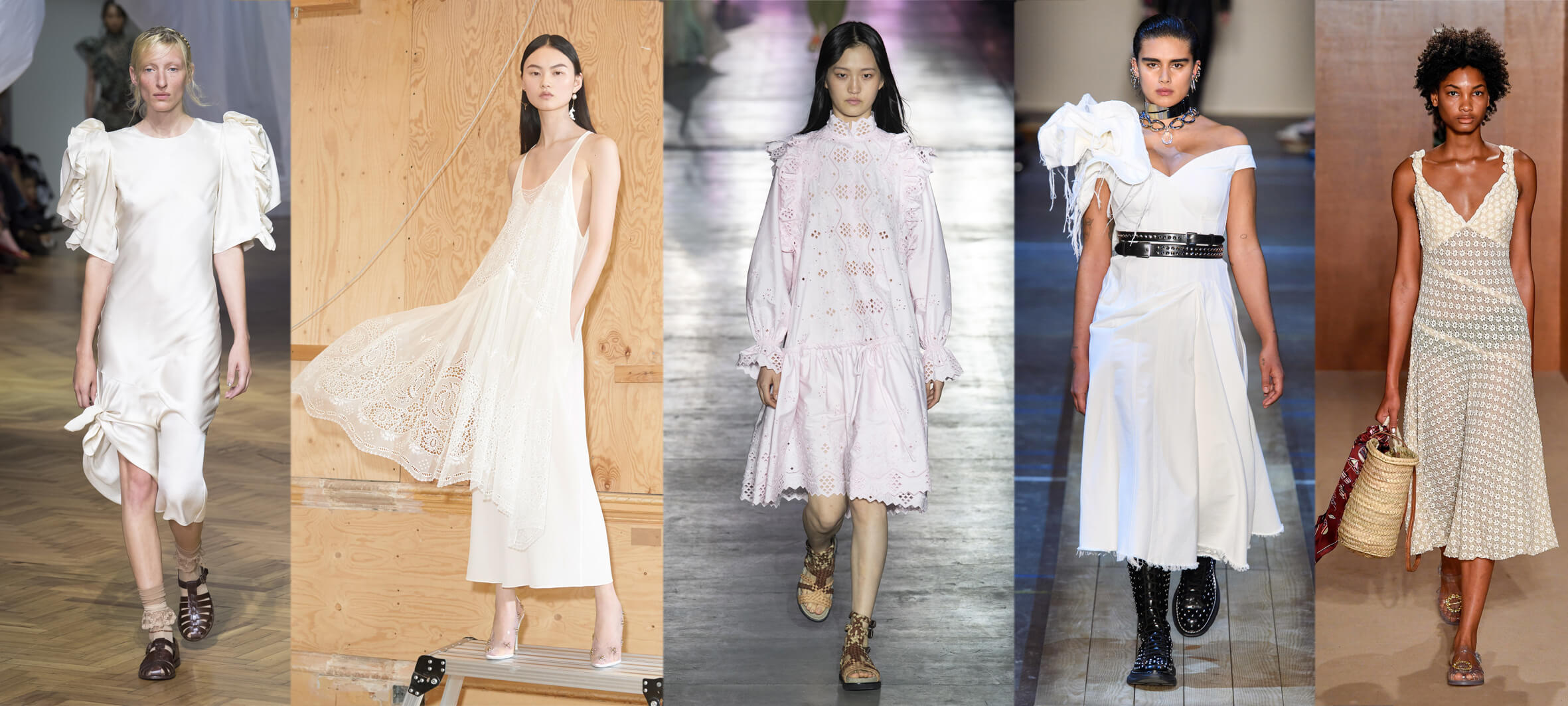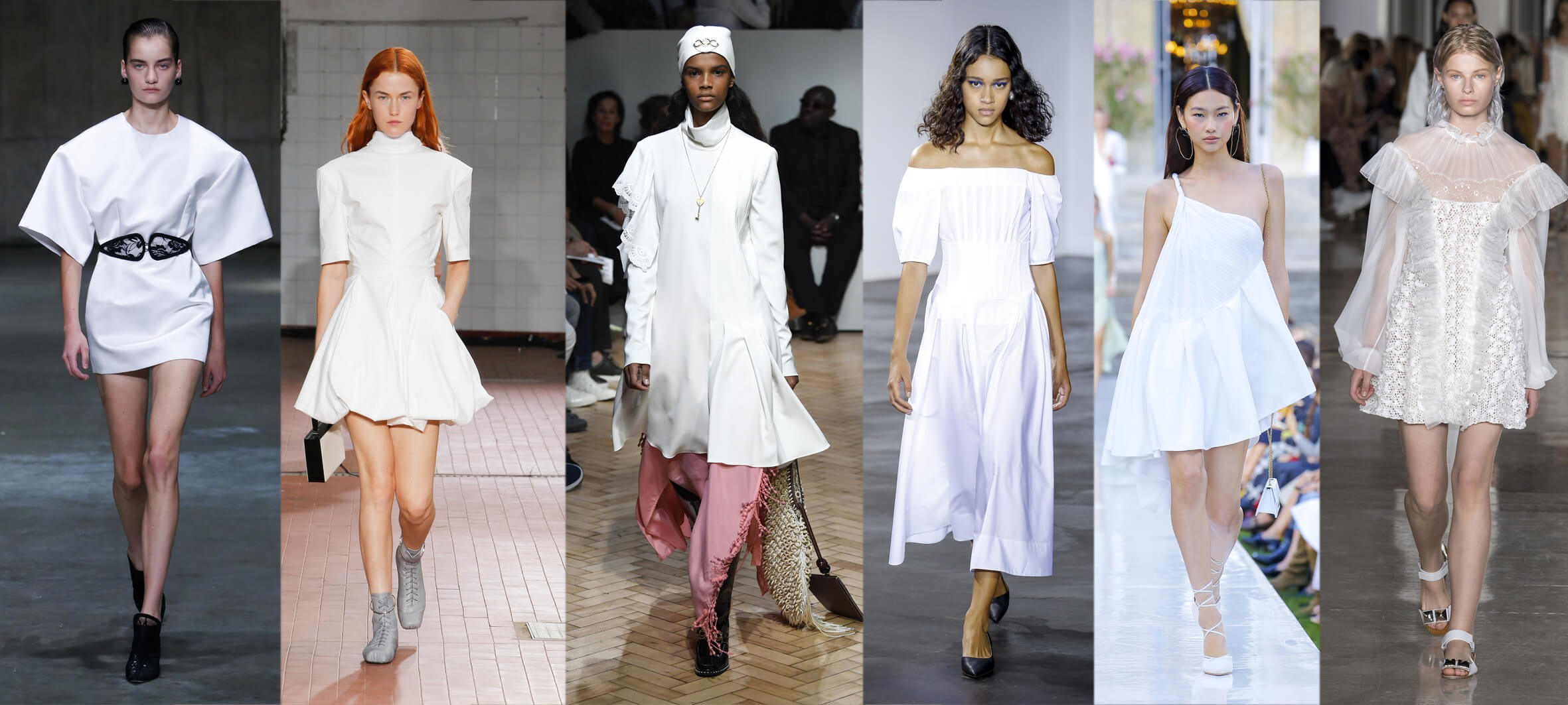 В весенне-летнем сезоне — 2019, и даже предстоящем осеннем, белому платью отведена целая глава — от вечерних нарядов в пол до воздушных мини. Мы делаем ставку на небольшое укороченное платье, как у Jacquemus и Jil Sander, или минималистичные модели миди, наподобие Alexa Chung, JW Anderson и Alexander McQueen — каждое можно вписать в десятки повседневных и casual-образов. На случай коктейлей и летних вечеринок у Giambattista Valli и Preen By Thornton Bregazzi можно вдохновиться моделями мини со множеством эфемерных оборок и воланов — дополнять такие платья можно фетишистскими сумочками и алой помадой.