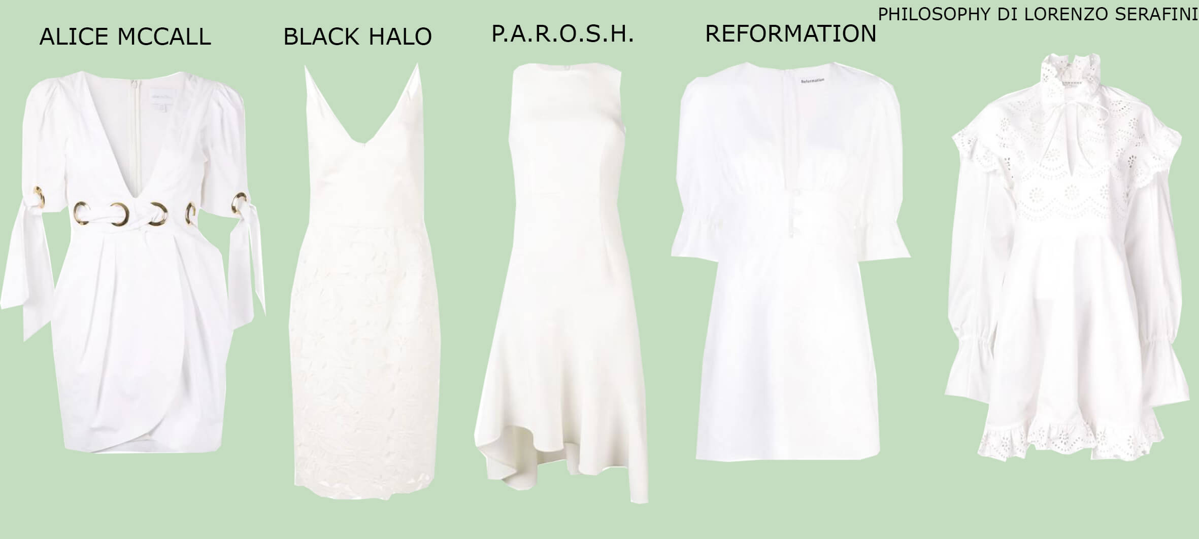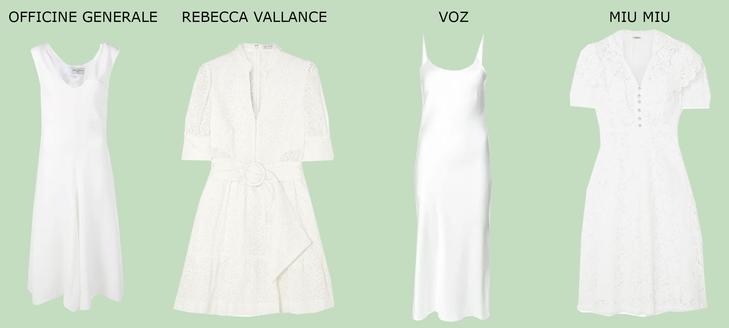 Маленькое белое платье является не менее культовой классикой, чем чёрное. В разных вариациях его носили Брижит Бардо, Джейн Биркин, Клаудия Кардинале и многие другие. Пако Рабан, Пьер Карден и Андре Курреж создавали свои версии лаконичного белого платья, а в 70-х модными были интерпретации на манер прерафаэлитов и античных древнегреческих нимф.