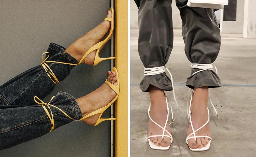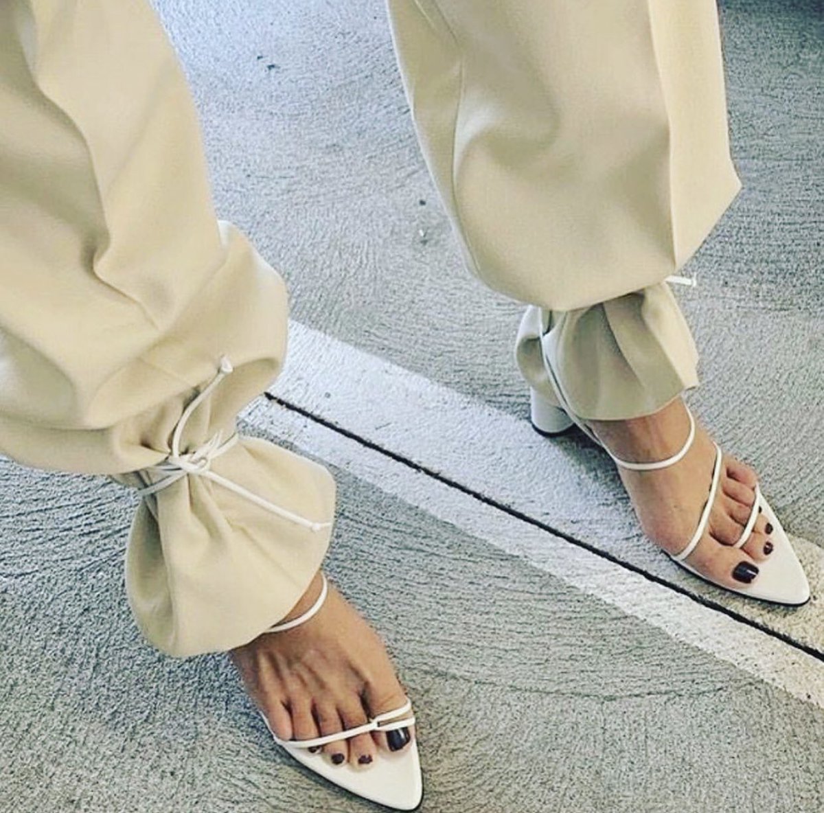 Тренд лета — 2020: Шнурки босоножек, обвязанные поверх брюк