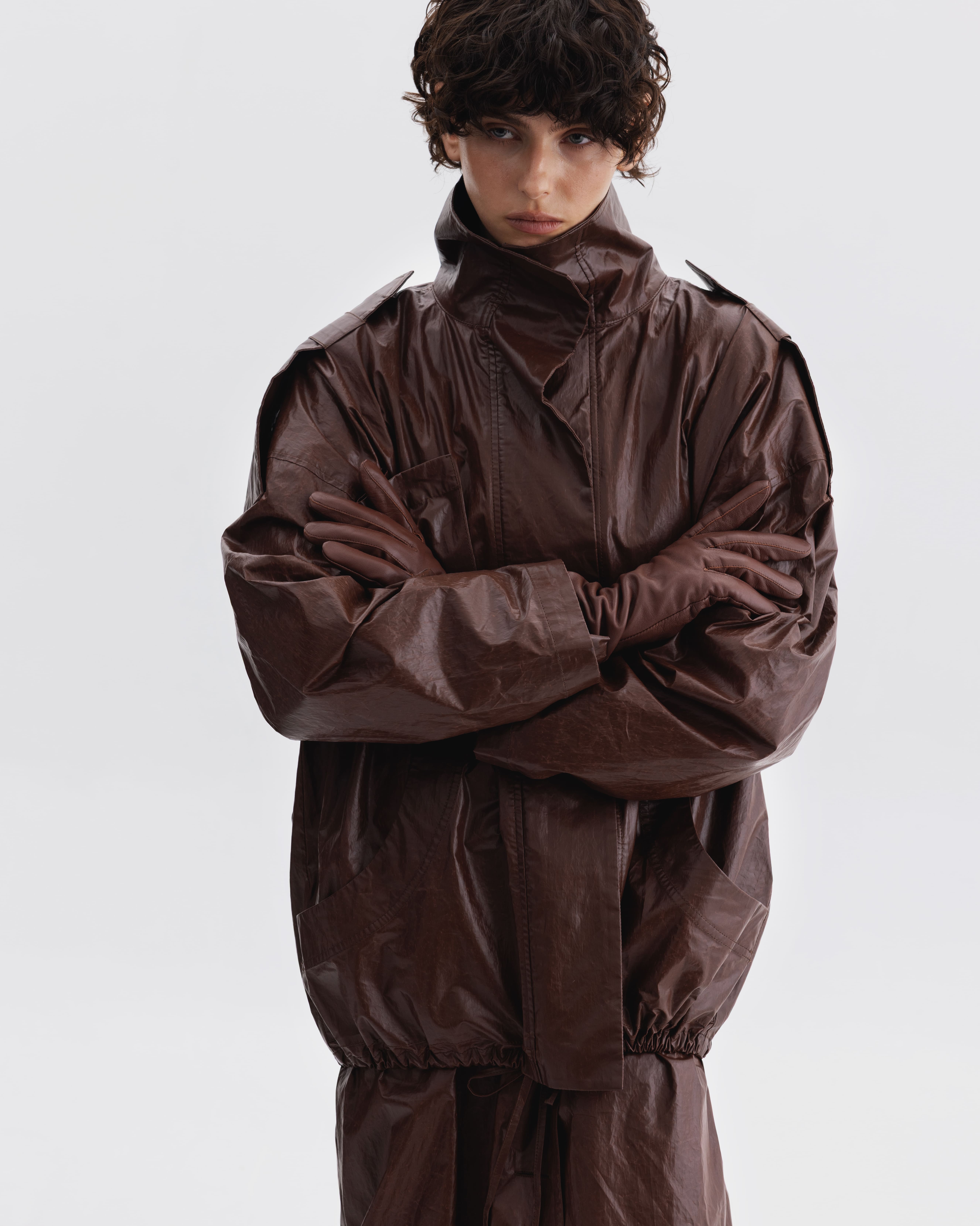 Нова колекція Kachorovska присвячена роботі — рутинному ритуалу, який заземляє, дисциплінує та підтримує природний ритм. У своїй передбачуваності він заспокоює, перетворюючи щоденний обов'язок на форму внутрішньої гармонії. Дизайнери оперують динамічними об'ємами, багатошаровими силуетами та функціональними деталями. Одяг «робити свою роботу»: захищає тіло та забезпечує комфорт незалежно від обставин. Стійкі матеріали з перспективою естетичного «старіння» — натуральний хлопок, коноплі, вовна та екологічні синтетичні волокна, такі як віскоза та модал — формують основу колекції.