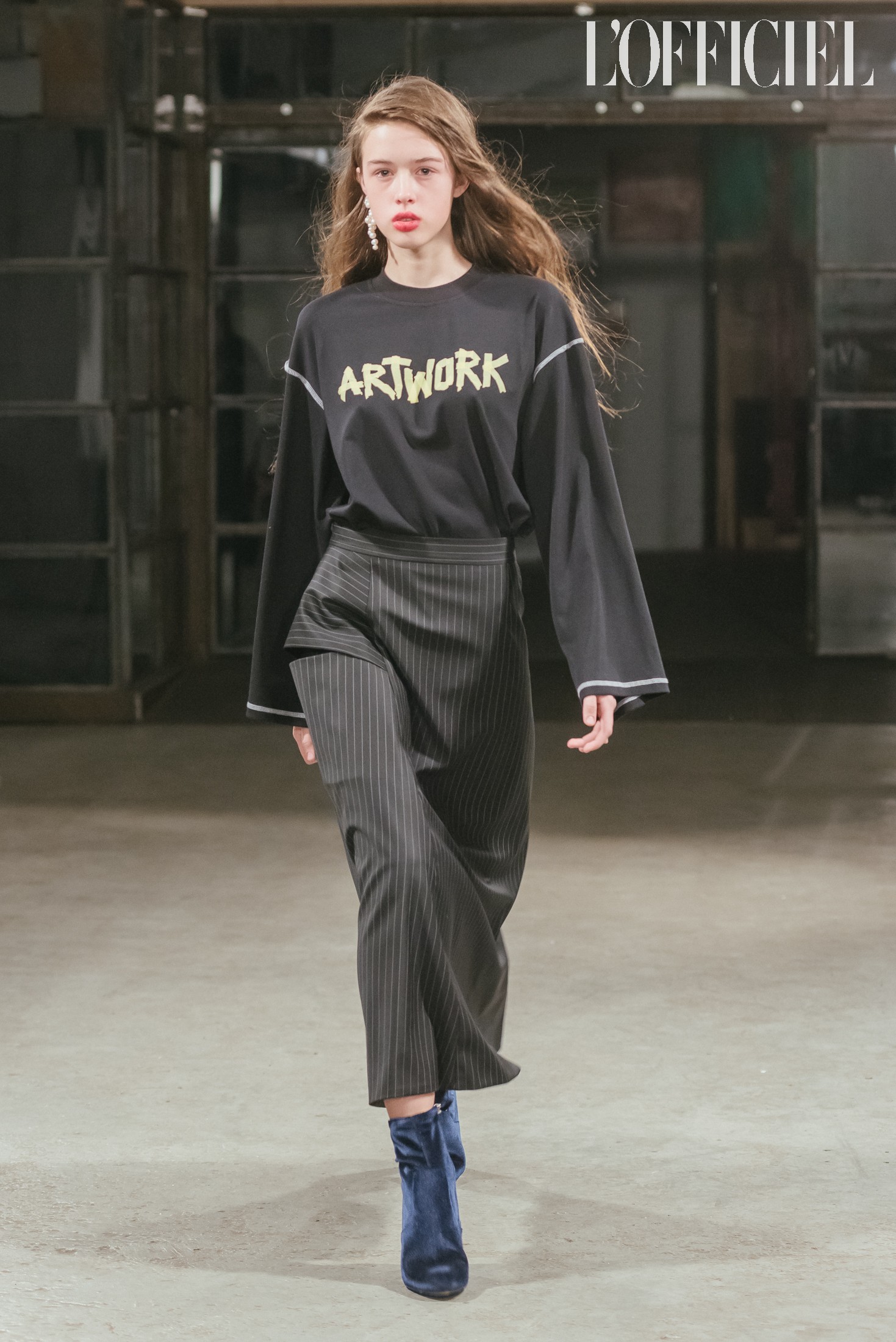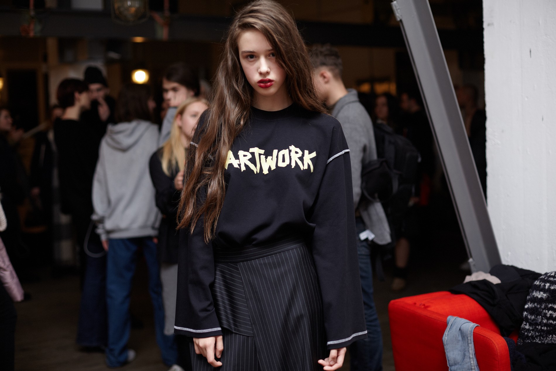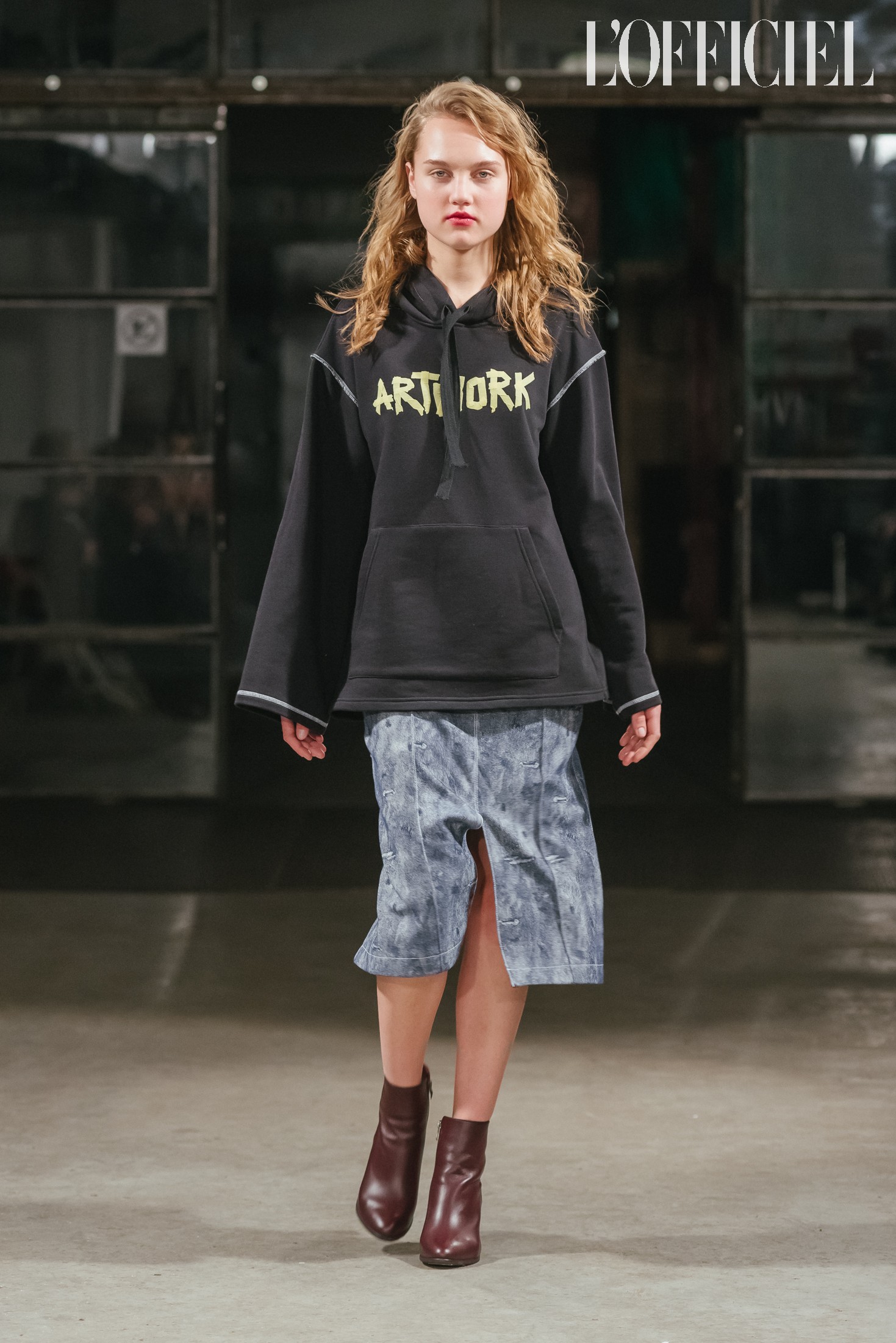 Коллекция вдохновлена искусством, музеями и разнообразными направлениями в живописи: чтобы продемонстрировать это, на свитшотах и ярких алых шарфах в руках у моделей было написано ARTWORK. Кроме того, к этой же теме отсылали одновременно точеные и богемные силуэты, макияж, состоящий из крупных белых, будто алебастровых, мазков на веках и чуть размазанной помады насыщенного цвета, и весь бьюти-лук, включая аккуратно встрепанные волосы.