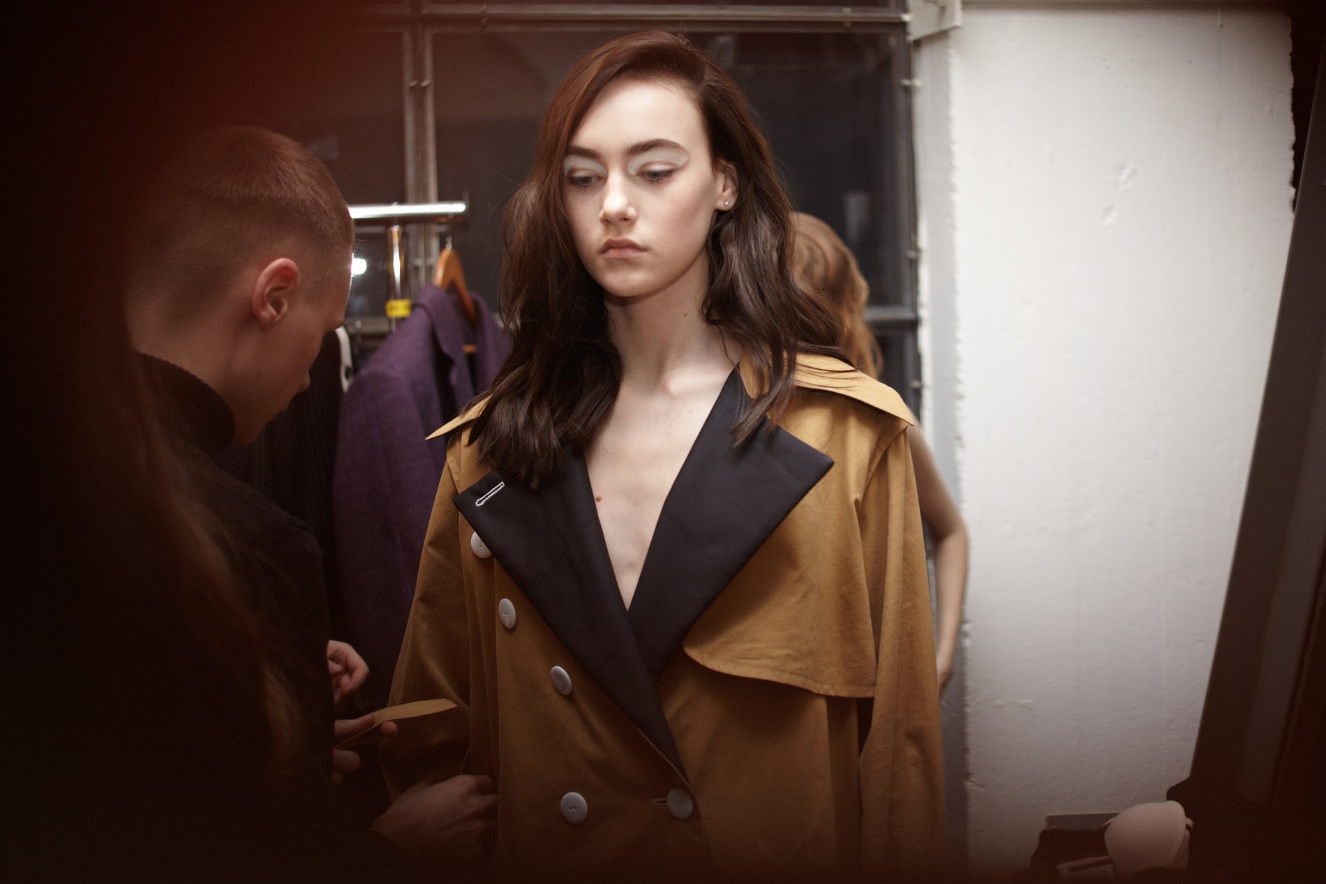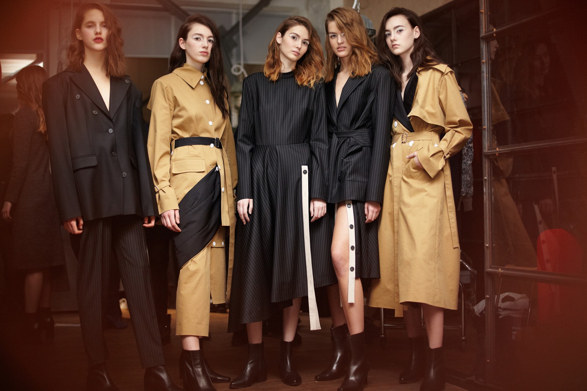 Chakshyn очень хороши в создании базовых незатейливых вещей, усложненных либо деталями кроя, либо остроумным решением с цветом, либо деталями и аксессуарами. Примером этому могут послужить платья-рубашки с дополнительными рукавами, перевязанными на талии, жакеты, перетянутые тонким поясом, и пальто, украшенные россыпью пуговиц, – кажется, любимым аксессуаром Димы Чаюна и Антона Якшина в этом сезоне.