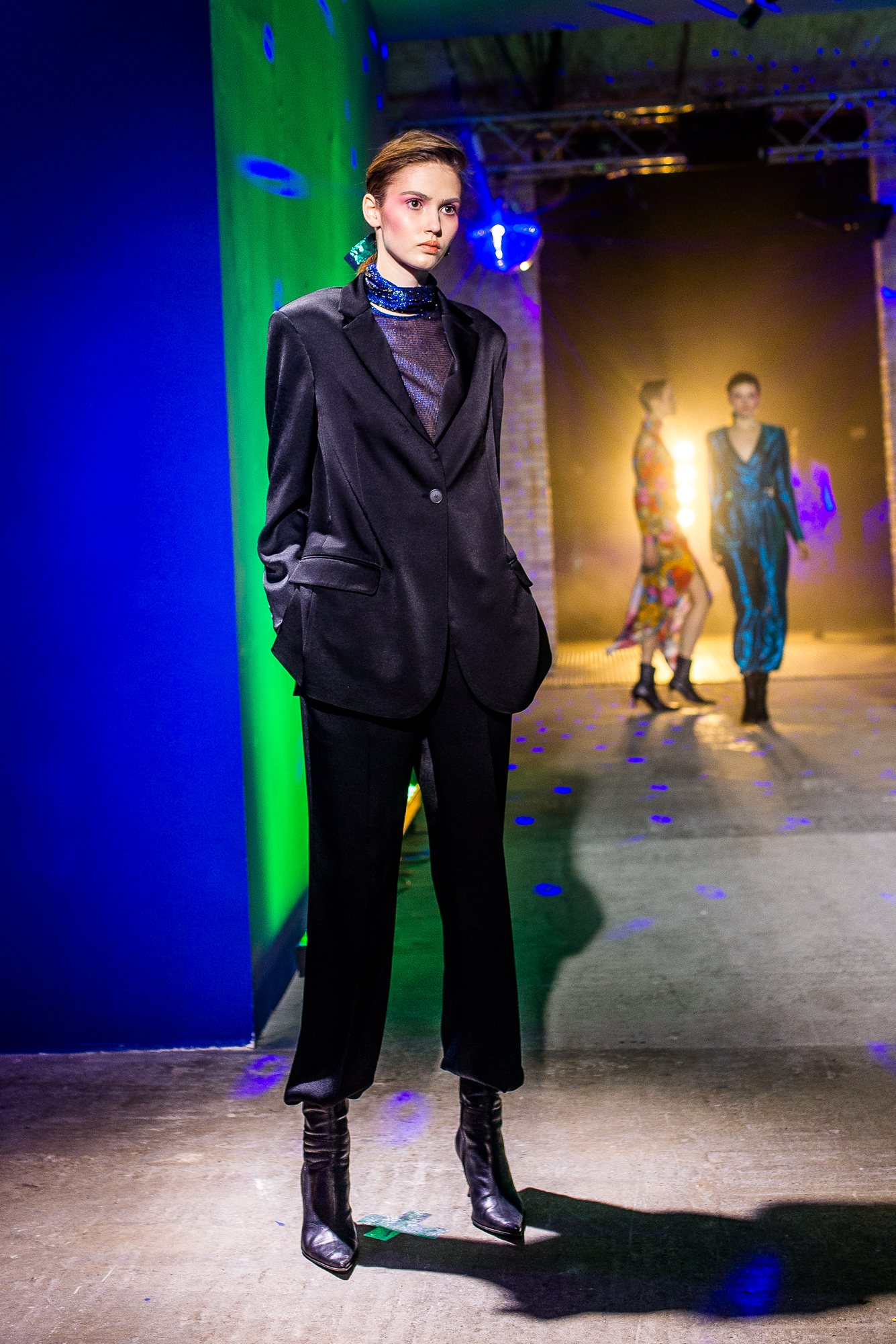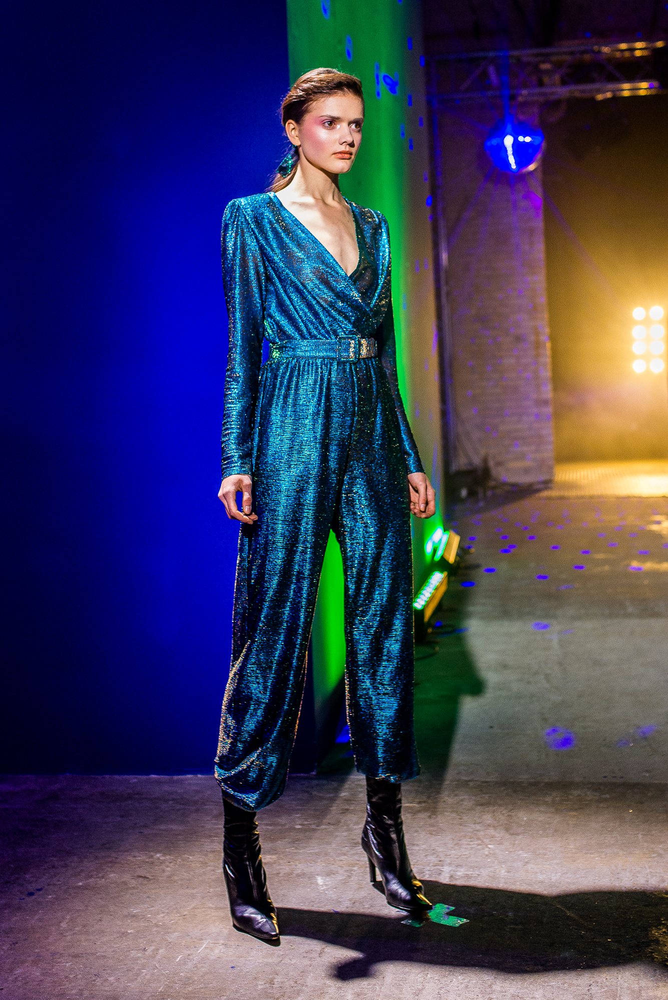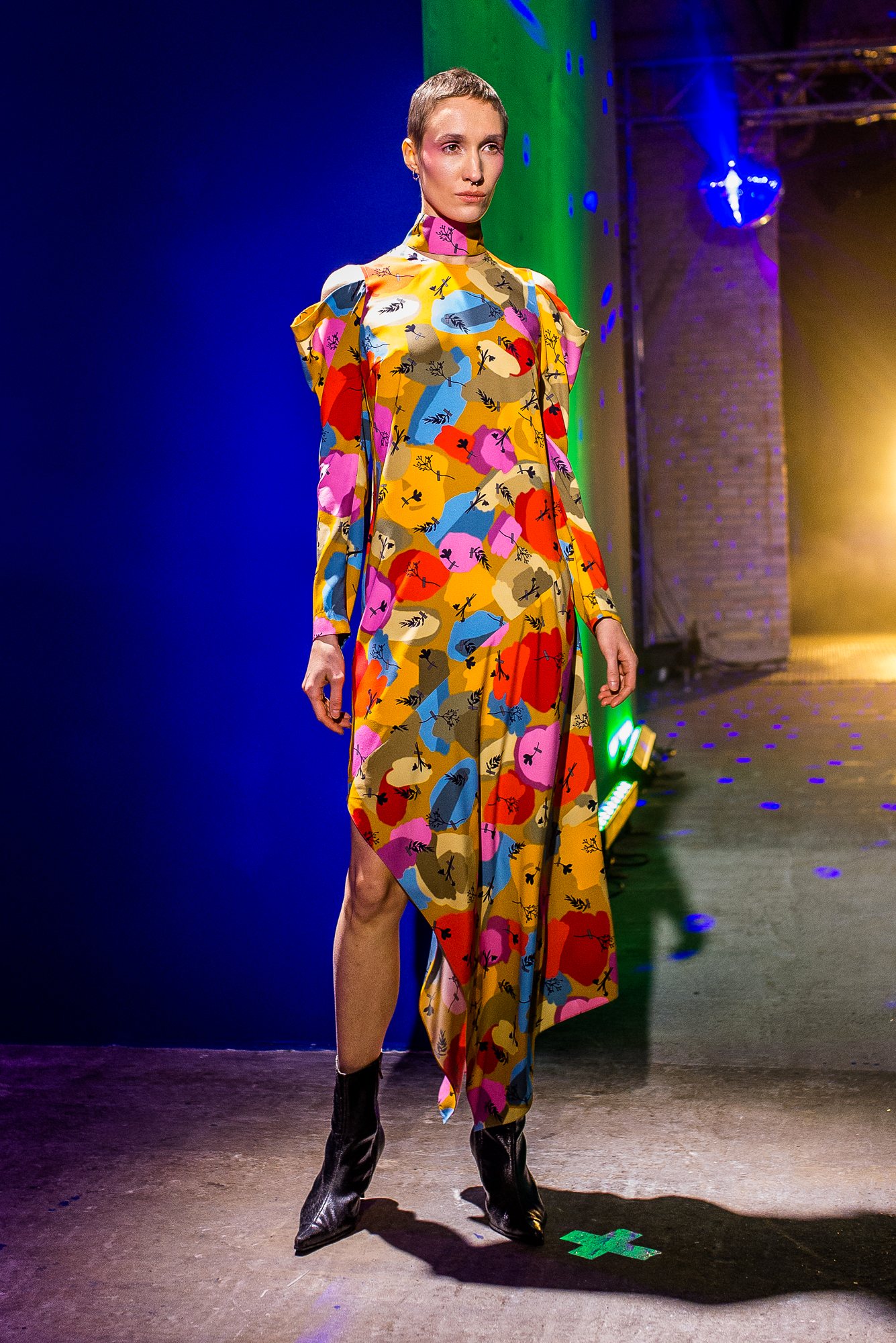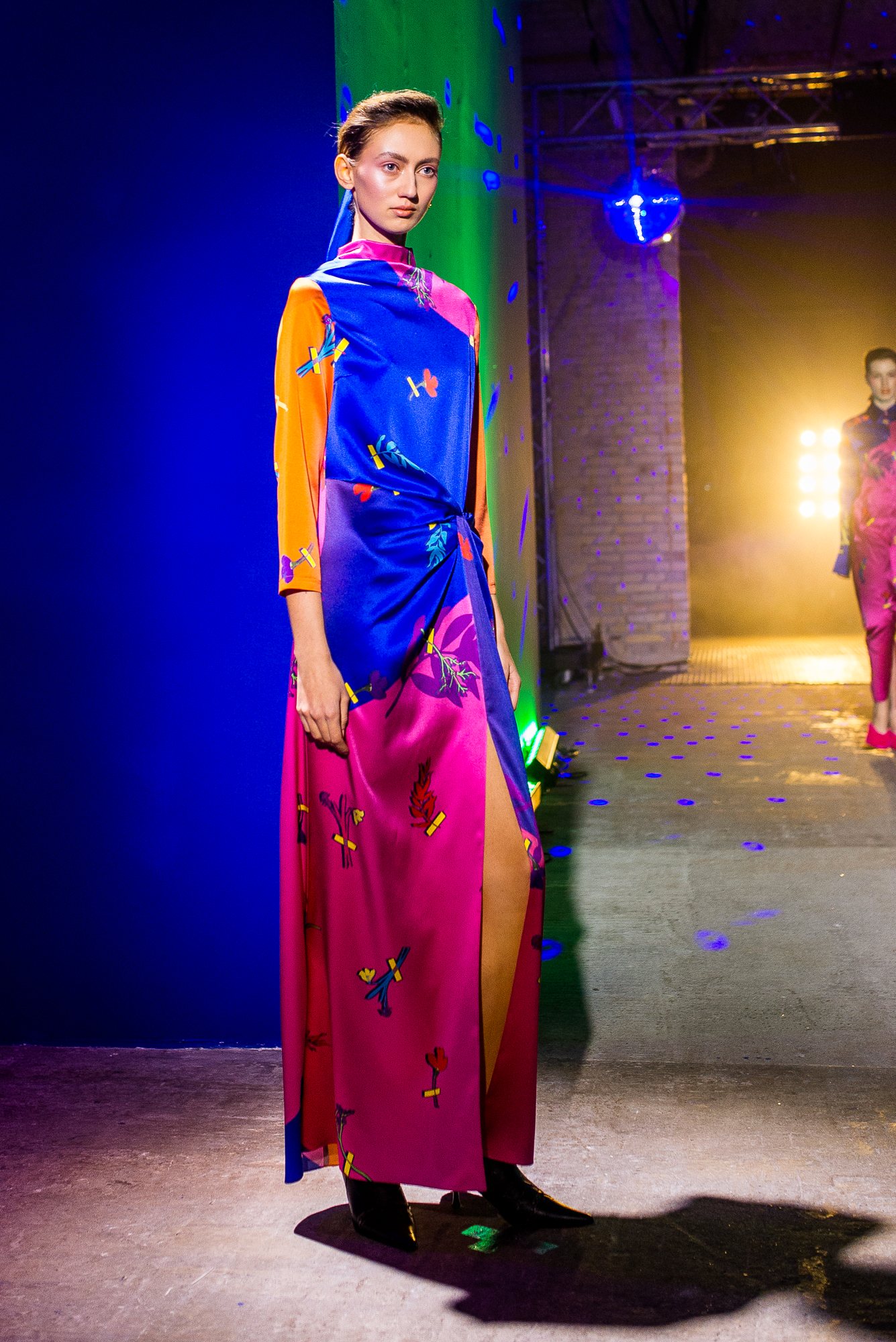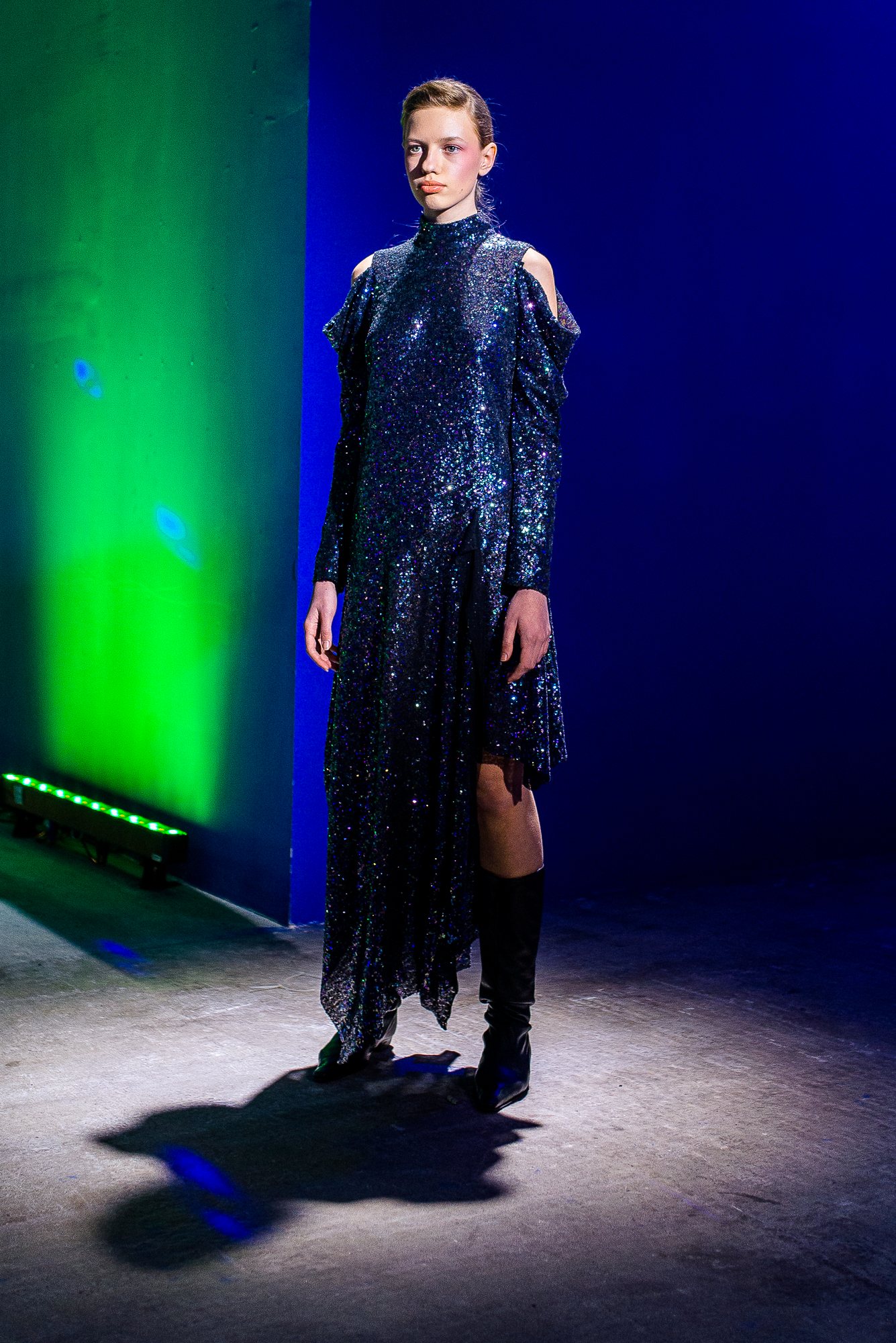 Коллекция посвящена искрящемуся, «люминесцирующему» человеку – во всех возможных значениях этого слова. Это и о том, как сейчас люди пытаются повторить природу и слиться с ней или с космосом, и о внутреннем сиянии, и о желании украшать себя блестящими текстурами или глиттером. В новой коллекции Лилии много непохожего на Poustovit, много переосмыслений привычных кодов бренда: так, даже принтованные платья, обязательные для дизайнера, представлены в необычных цветовых схемах. Платья в принципе стали основой коллекции, хотя любимый лук редакции – это все равно мерцающий сине-зеленый комбинезон. Платья-халаты, платья с высоким разрезом, яркие модели насыщенных цветов длиной в пол – и везде по-прежнему цитируется природа, хотя опять-таки в непохожем на Пустовит прочтении.