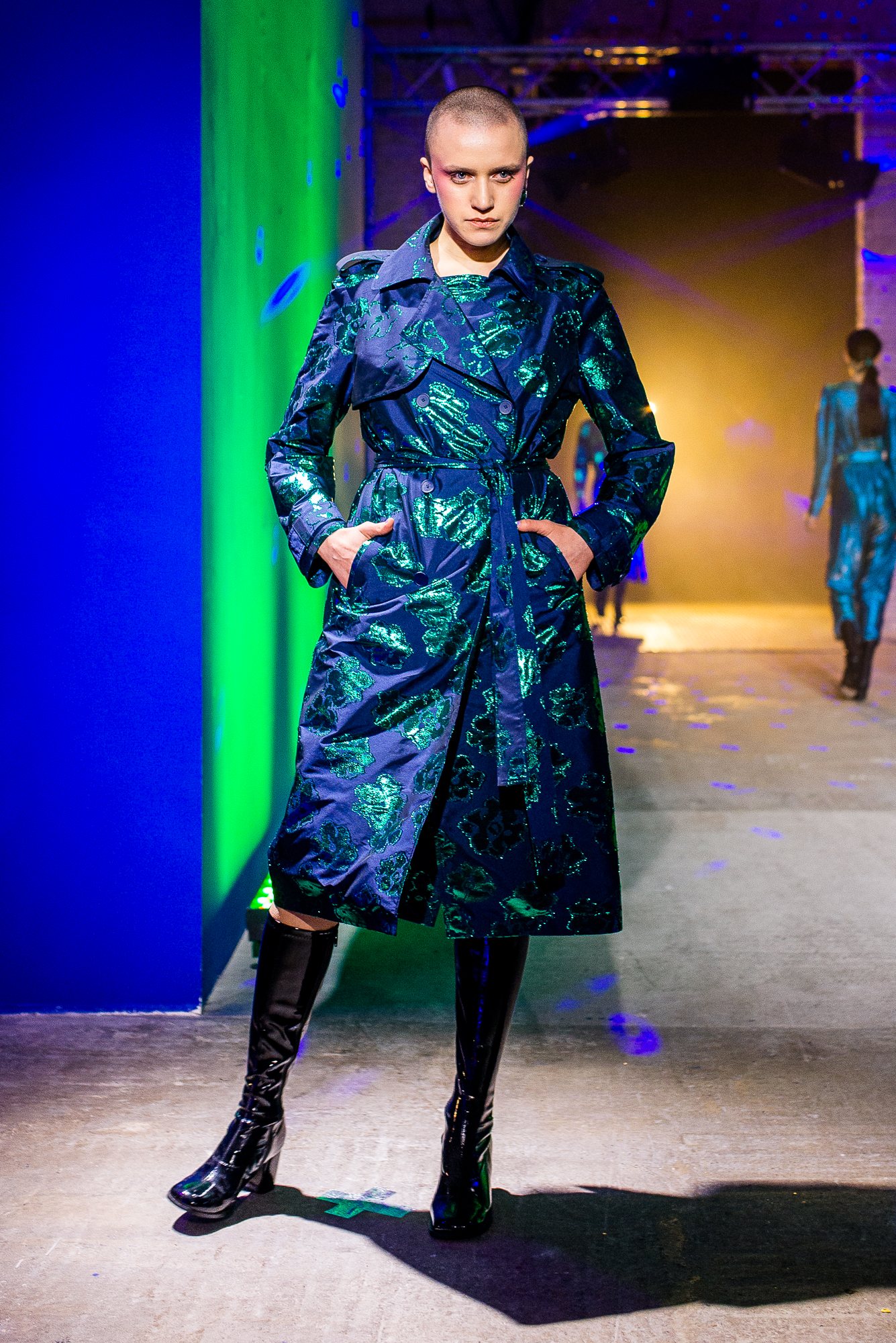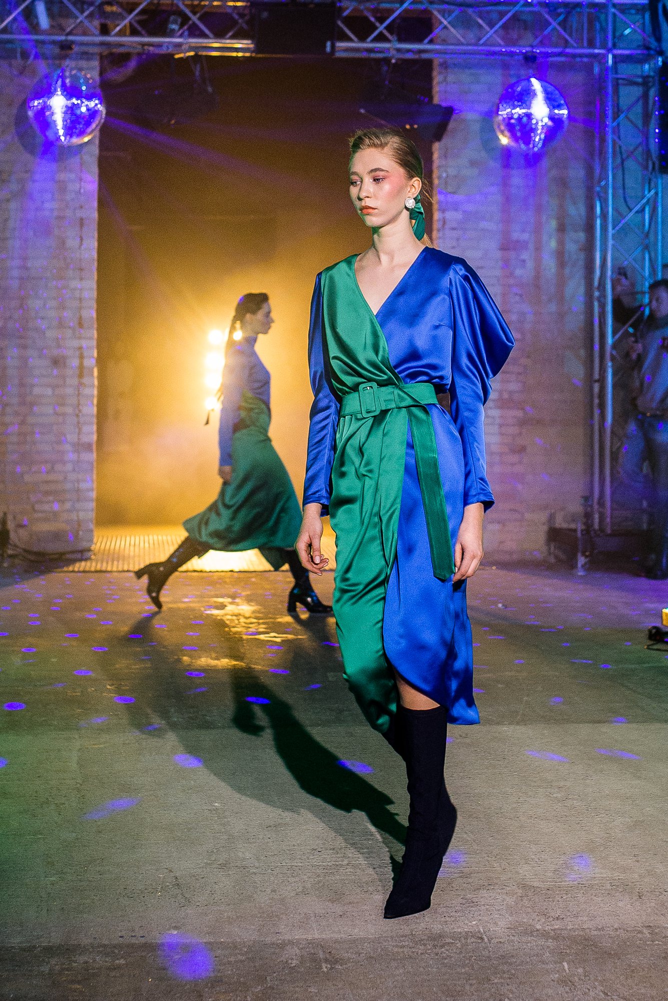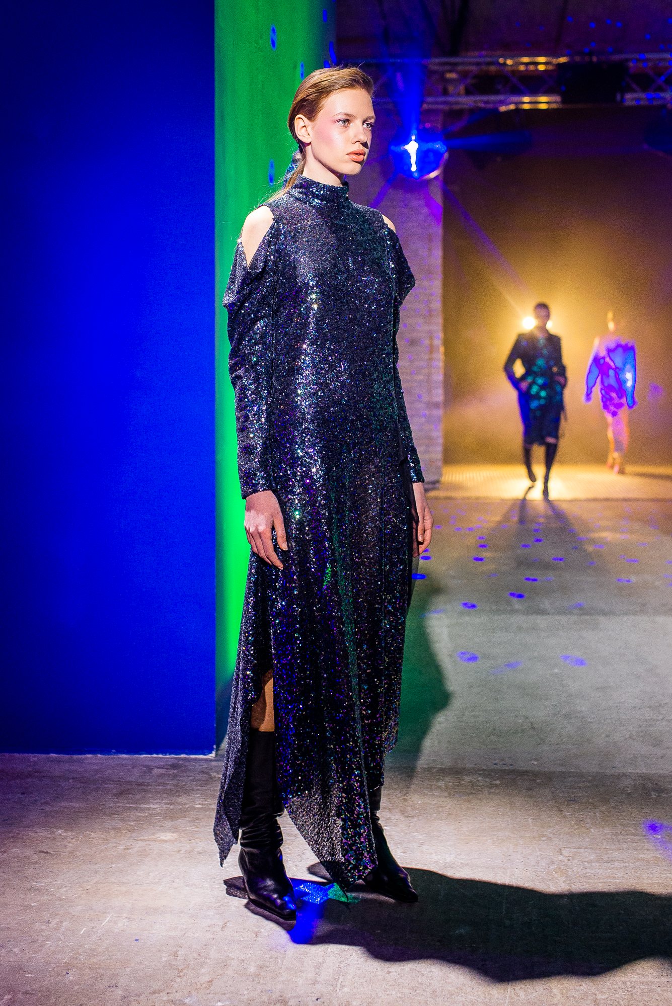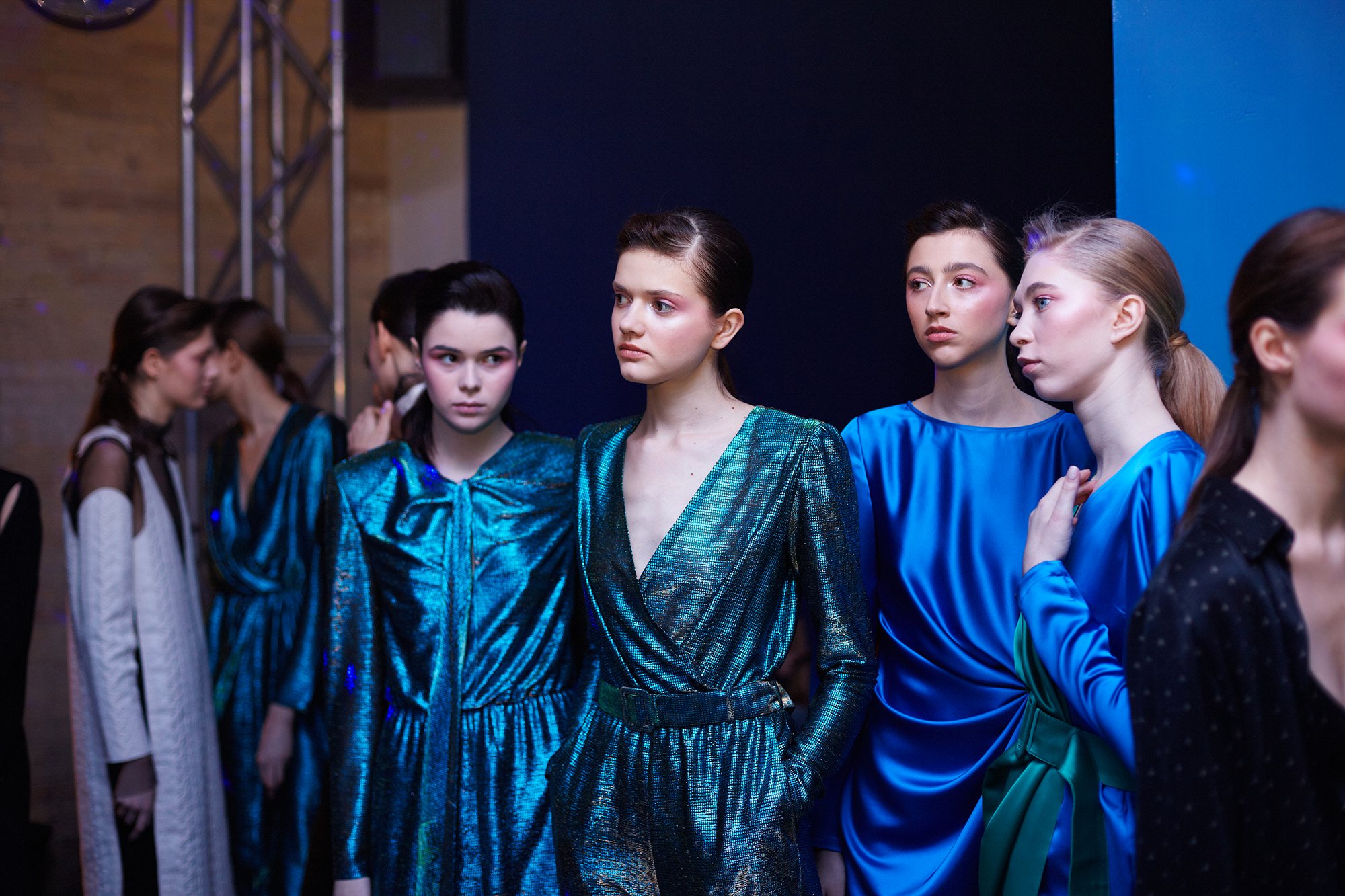Коллекция посвящена искрящемуся, «люминесцирующему» человеку – во всех возможных значениях этого слова. Это и о том, как сейчас люди пытаются повторить природу и слиться с ней или с космосом, и о внутреннем сиянии, и о желании украшать себя блестящими текстурами или глиттером. В новой коллекции Лилии много непохожего на Poustovit, много переосмыслений привычных кодов бренда: так, даже принтованные платья, обязательные для дизайнера, представлены в необычных цветовых схемах. Платья в принципе стали основой коллекции, хотя любимый лук редакции – это все равно мерцающий сине-зеленый комбинезон. Платья-халаты, платья с высоким разрезом, яркие модели насыщенных цветов длиной в пол – и везде по-прежнему цитируется природа, хотя опять-таки в непохожем на Пустовит прочтении.