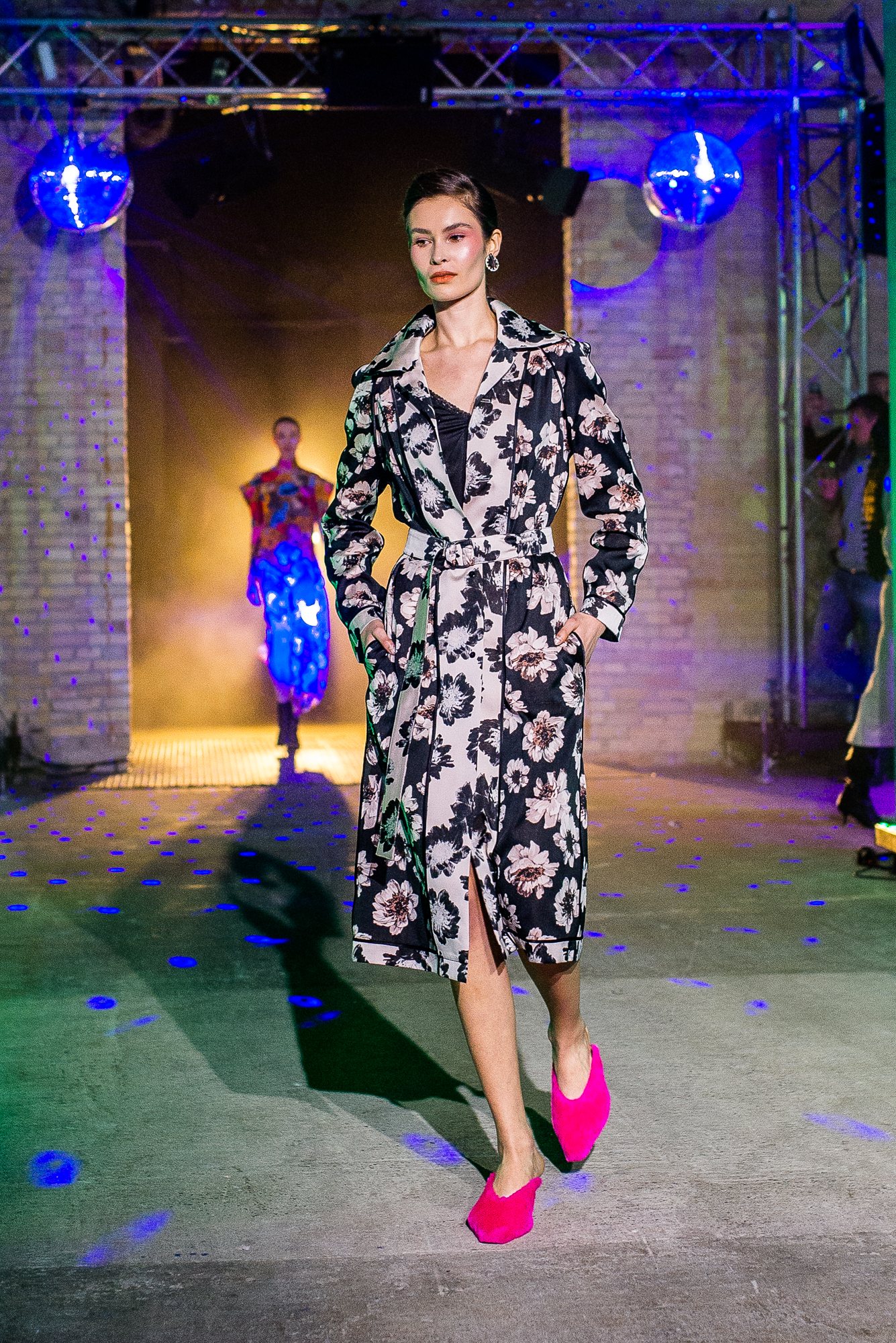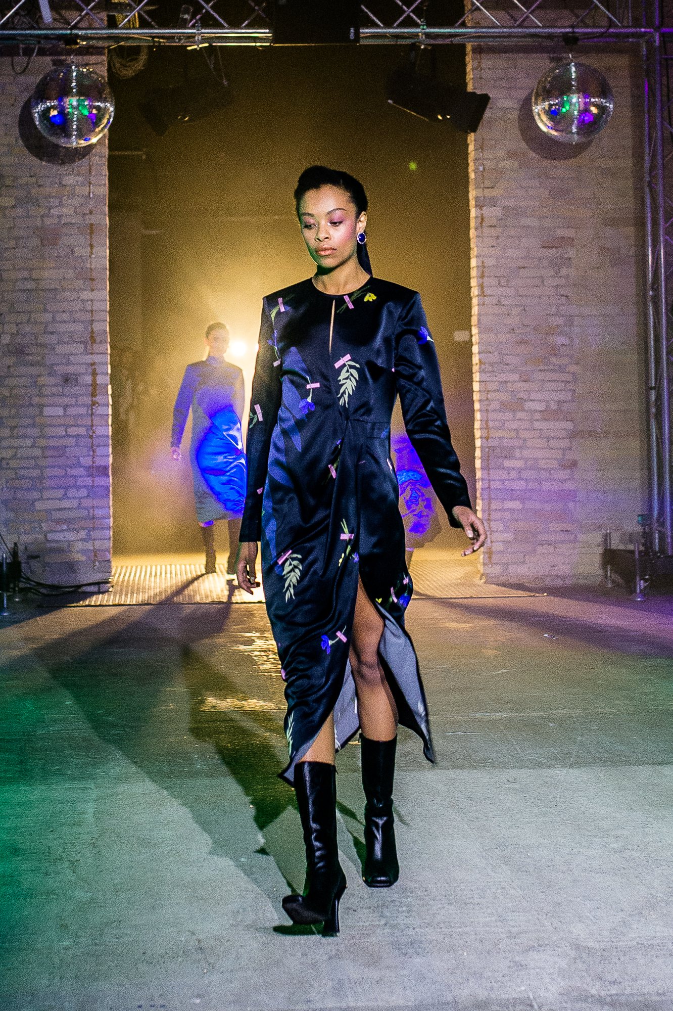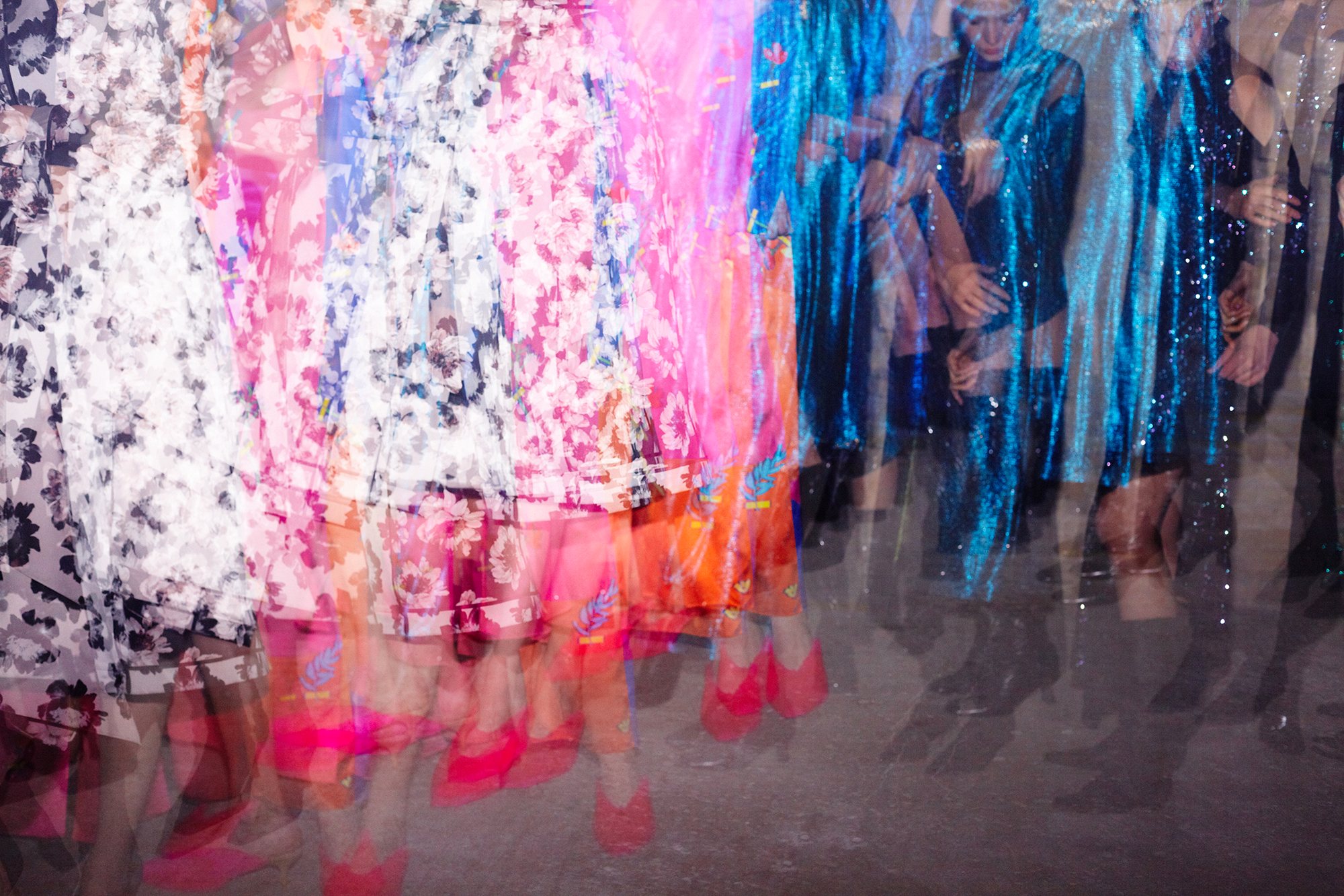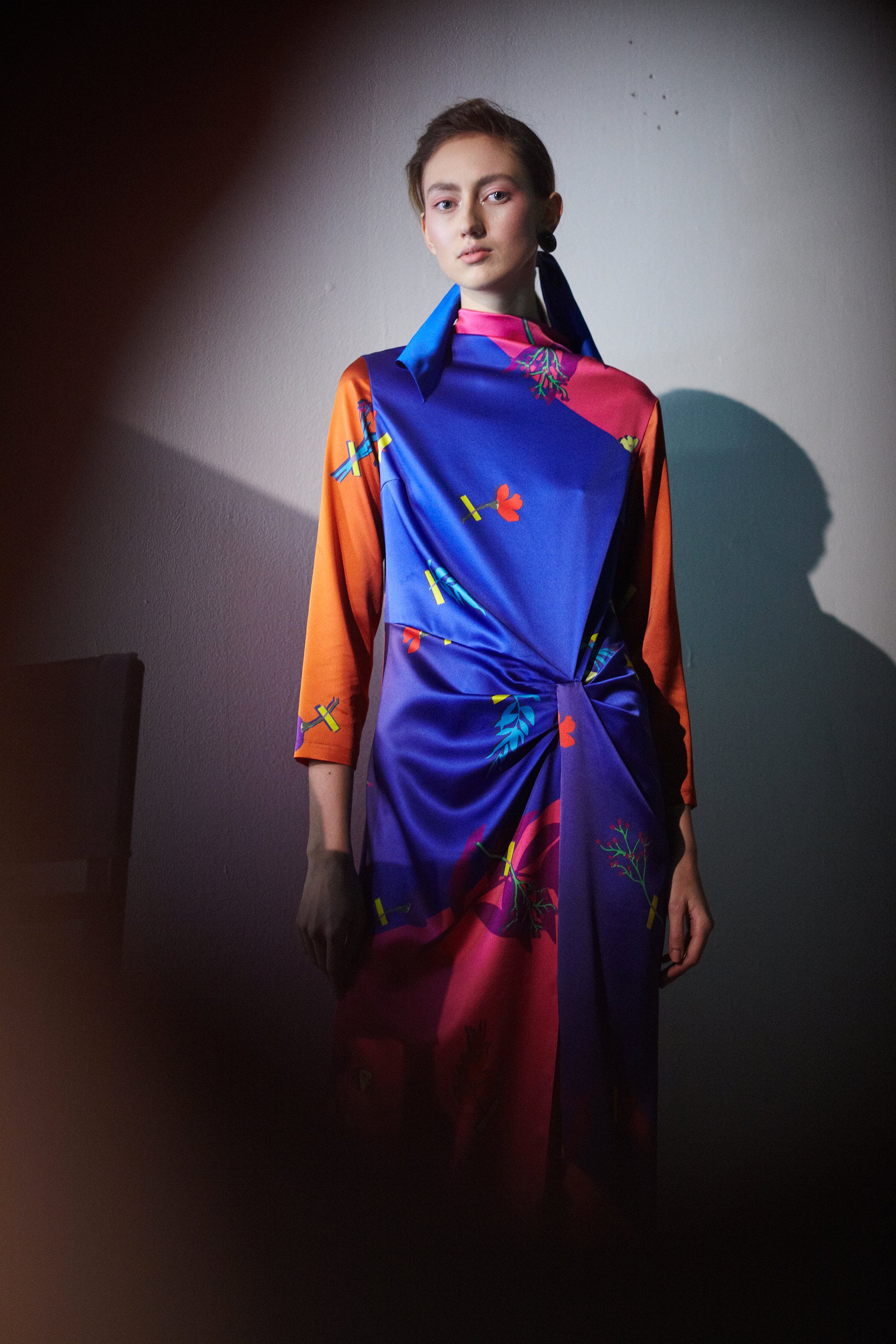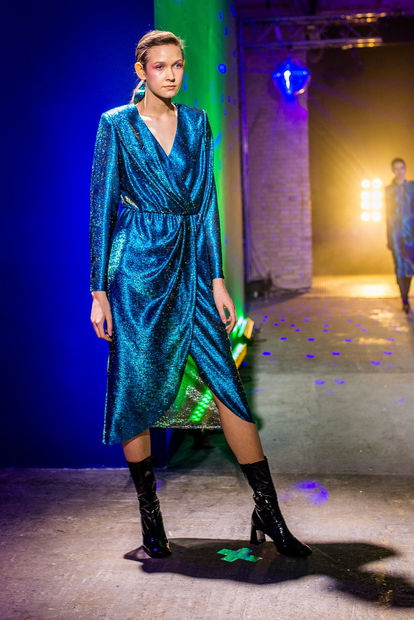 Коллекция посвящена искрящемуся, «люминесцирующему» человеку – во всех возможных значениях этого слова. Это и о том, как сейчас люди пытаются повторить природу и слиться с ней или с космосом, и о внутреннем сиянии, и о желании украшать себя блестящими текстурами или глиттером. В новой коллекции Лилии много непохожего на Poustovit, много переосмыслений привычных кодов бренда: так, даже принтованные платья, обязательные для дизайнера, представлены в необычных цветовых схемах. Платья в принципе стали основой коллекции, хотя любимый лук редакции – это все равно мерцающий сине-зеленый комбинезон. Платья-халаты, платья с высоким разрезом, яркие модели насыщенных цветов длиной в пол – и везде по-прежнему цитируется природа, хотя опять-таки в непохожем на Пустовит прочтении.
