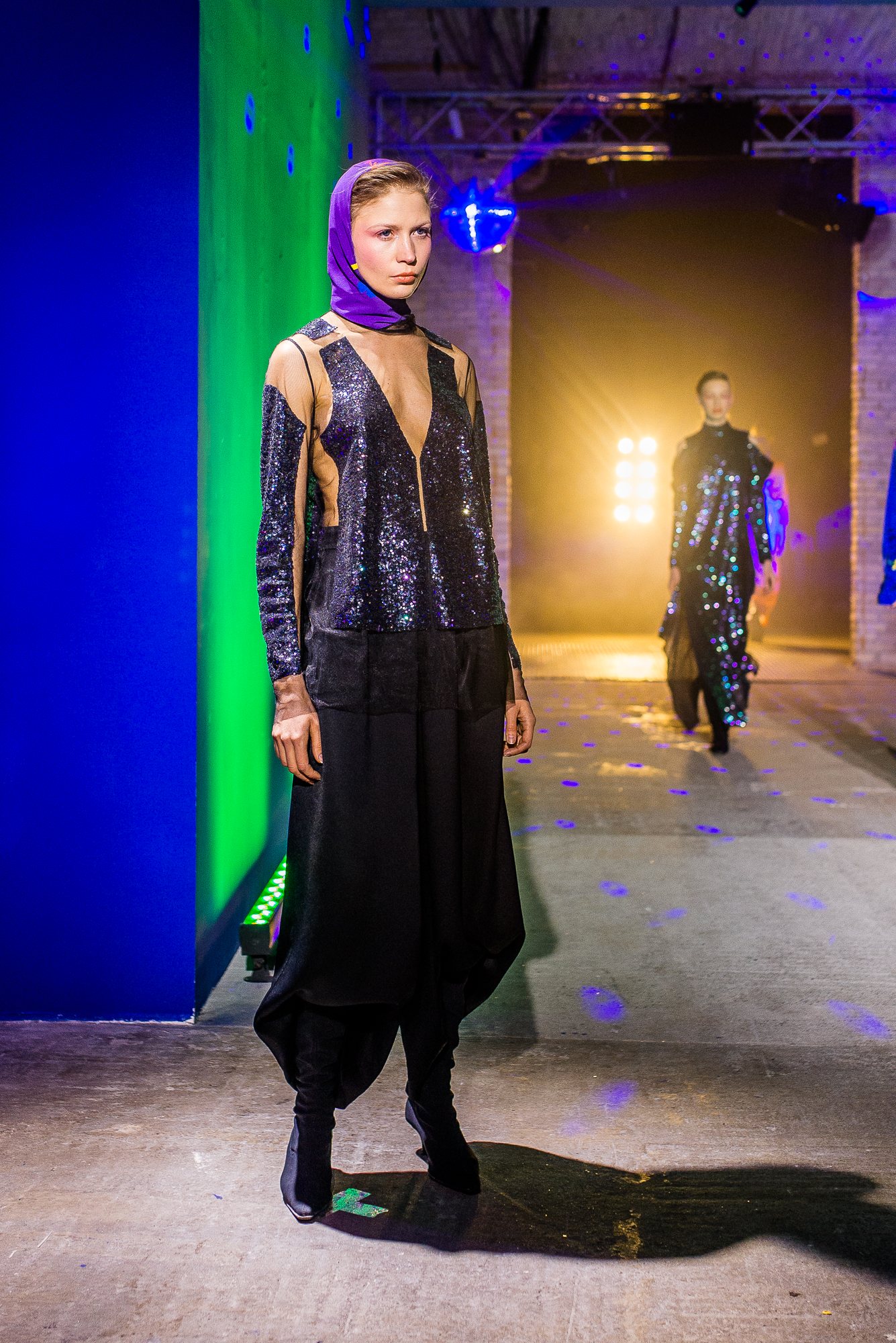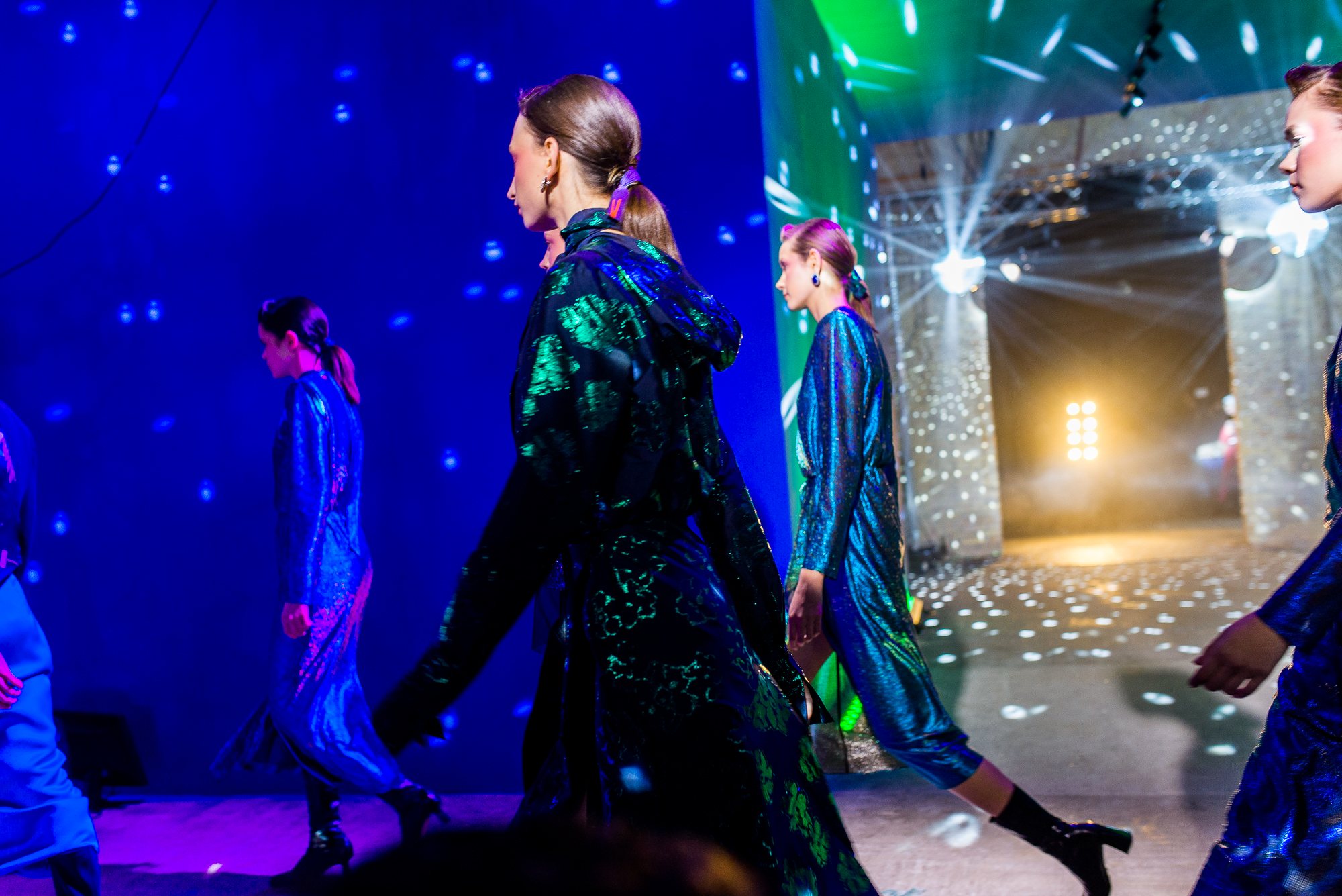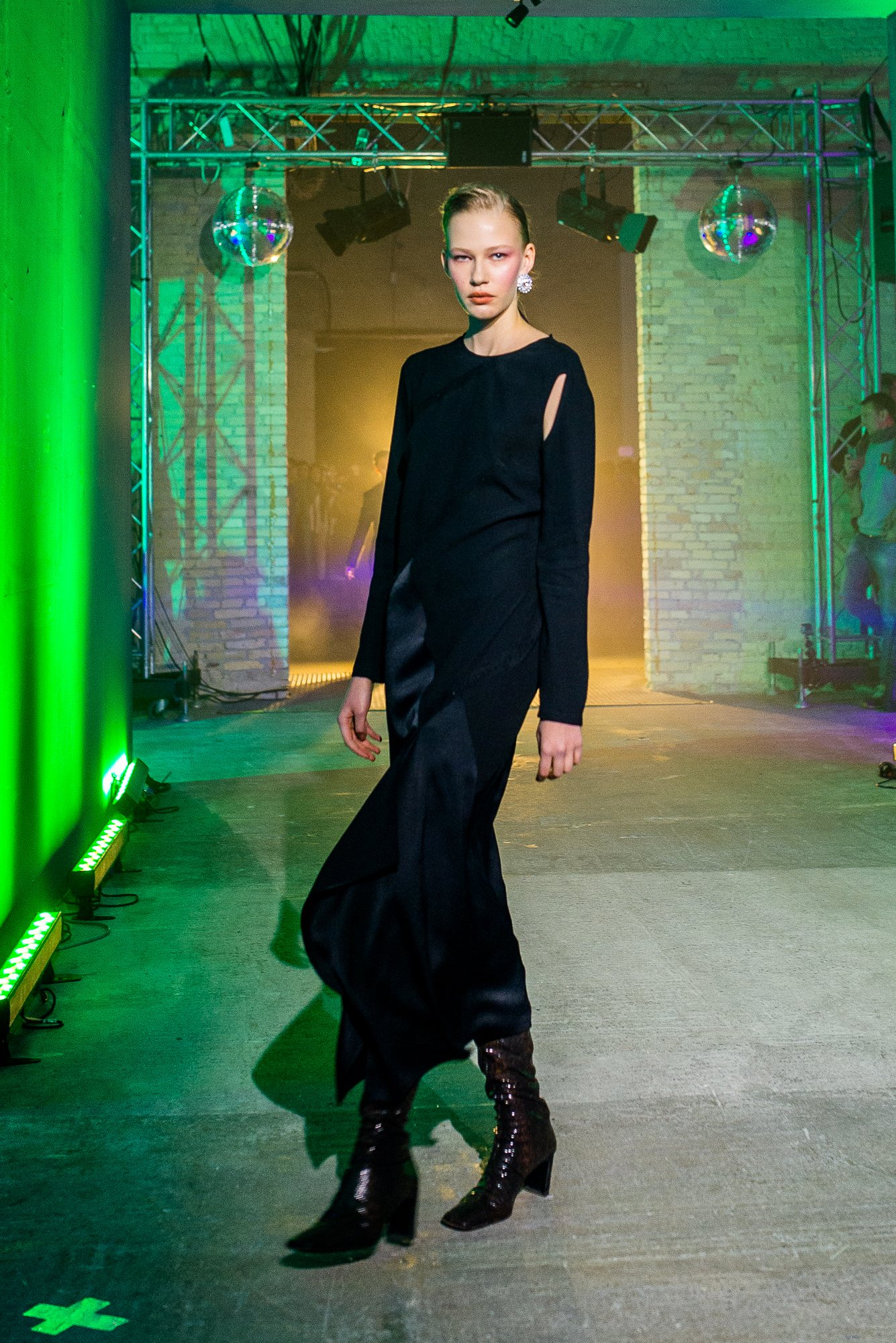 Показ Лилии Пустовит, который прошел в правом крыле Мыстецкого Арсенала, напоминал зарисовку из экранизации футуристического романа писателя-фантаста. Гости ощущали себя одновременно в отсеке космического корабля и в наивной фантазии на тему космоса – и, по словам Пустовит, именно этой дуальности они и хотели добиться. «Новая коллекция – это наивные детские воспоминания о первом полете на Луну, и в то же время – отсылка к будущему, биохакинг, которым нас сейчас пугают футурологи», – рассказывает дизайнер.