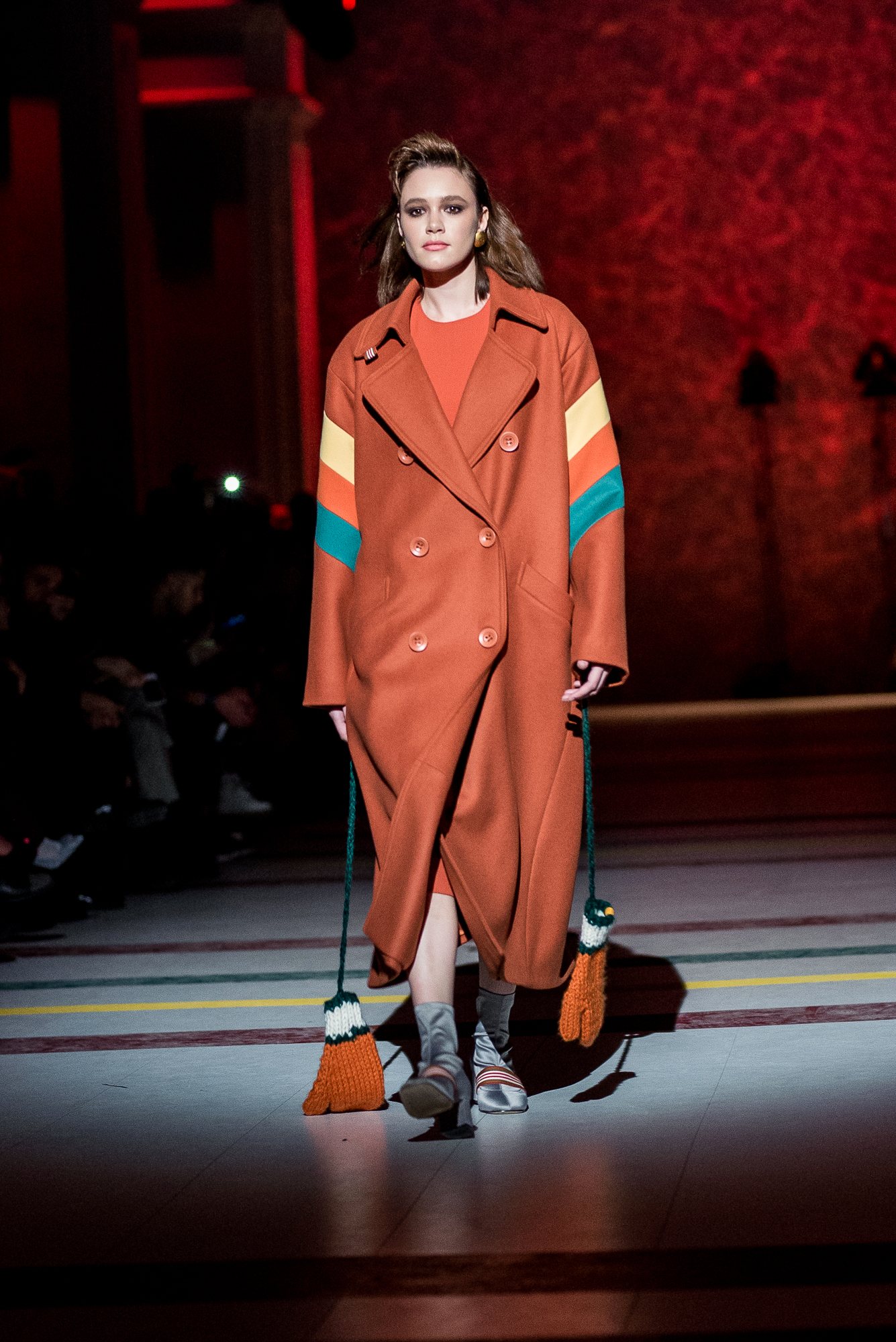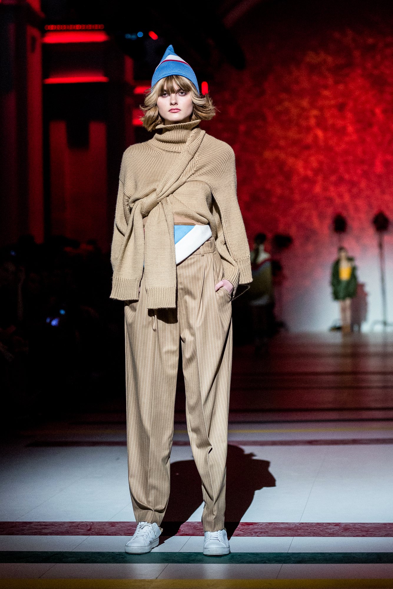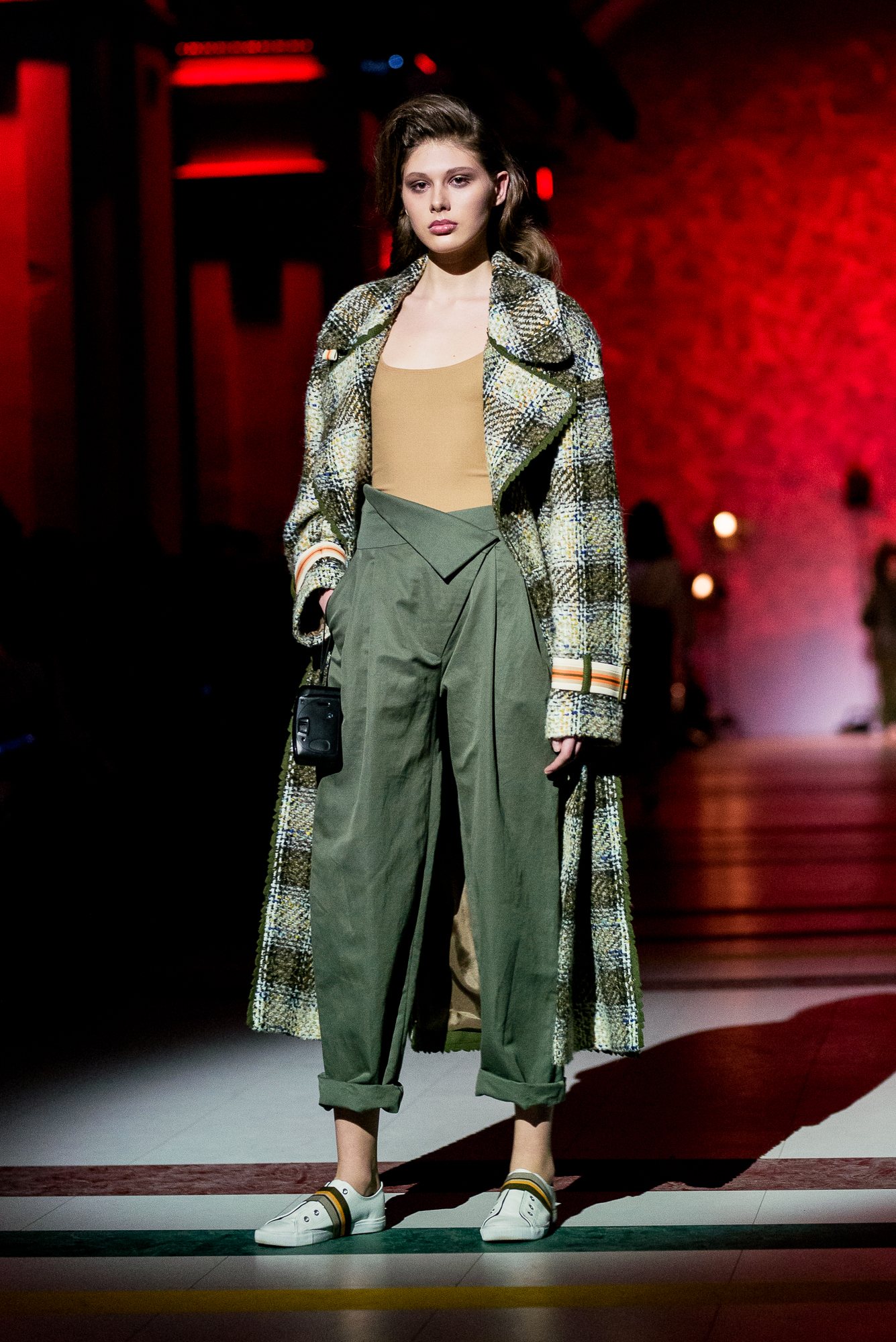 Героиня новой коллекции Сильченко полностью игнорирует монохромные цвета: ее выбор – голубой, оранжевый, желтый, зеленый и бежевый. И, несмотря на тему коллекции, раскованность – это не то качество, что определяет стиль героини: Катя представила много брючных выходов, дополненных уютными свитерами с высоким горлом, пальто или тяжелыми дубленками. Тем не менее женственности коллекции не занимать: за нее отвечают бюстье, высокие талии и тугие пояса.