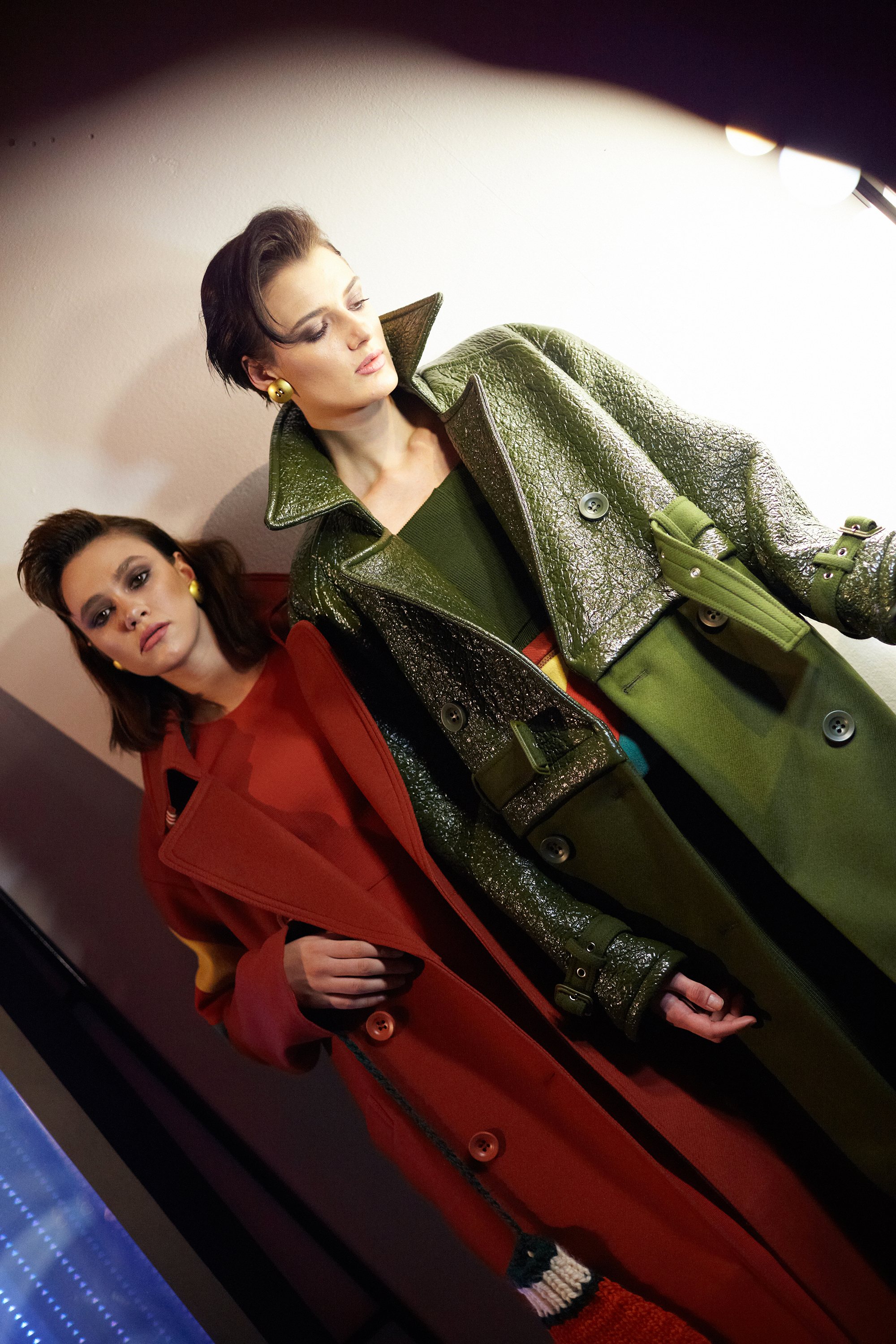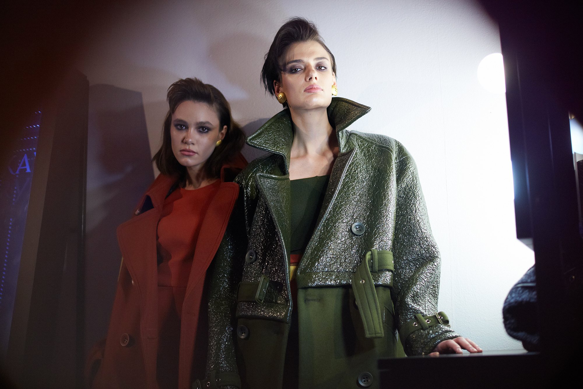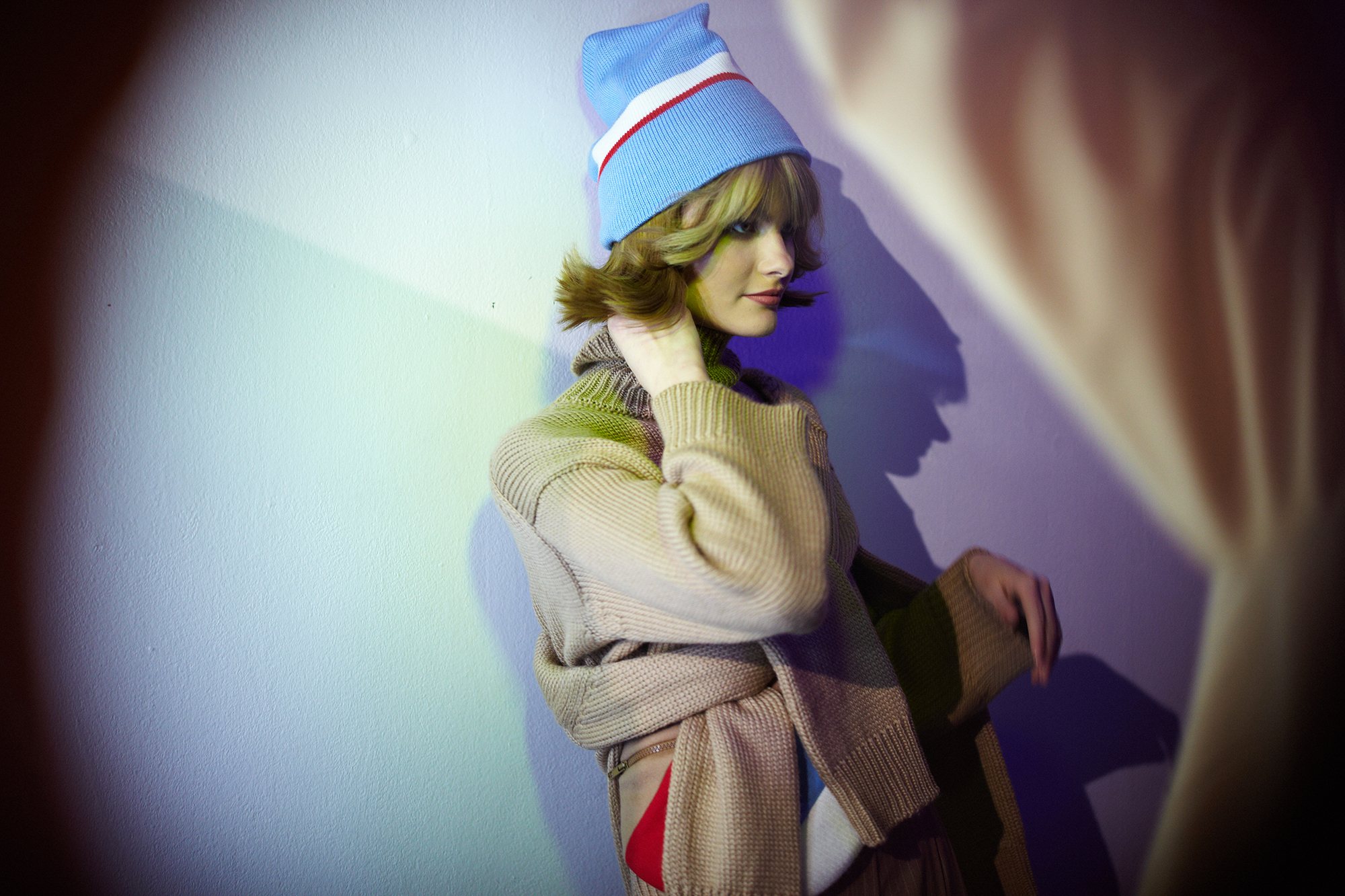Героиня новой коллекции Сильченко полностью игнорирует монохромные цвета: ее выбор – голубой, оранжевый, желтый, зеленый и бежевый. И, несмотря на тему коллекции, раскованность – это не то качество, что определяет стиль героини: Катя представила много брючных выходов, дополненных уютными свитерами с высоким горлом, пальто или тяжелыми дубленками. Тем не менее женственности коллекции не занимать: за нее отвечают бюстье, высокие талии и тугие пояса.