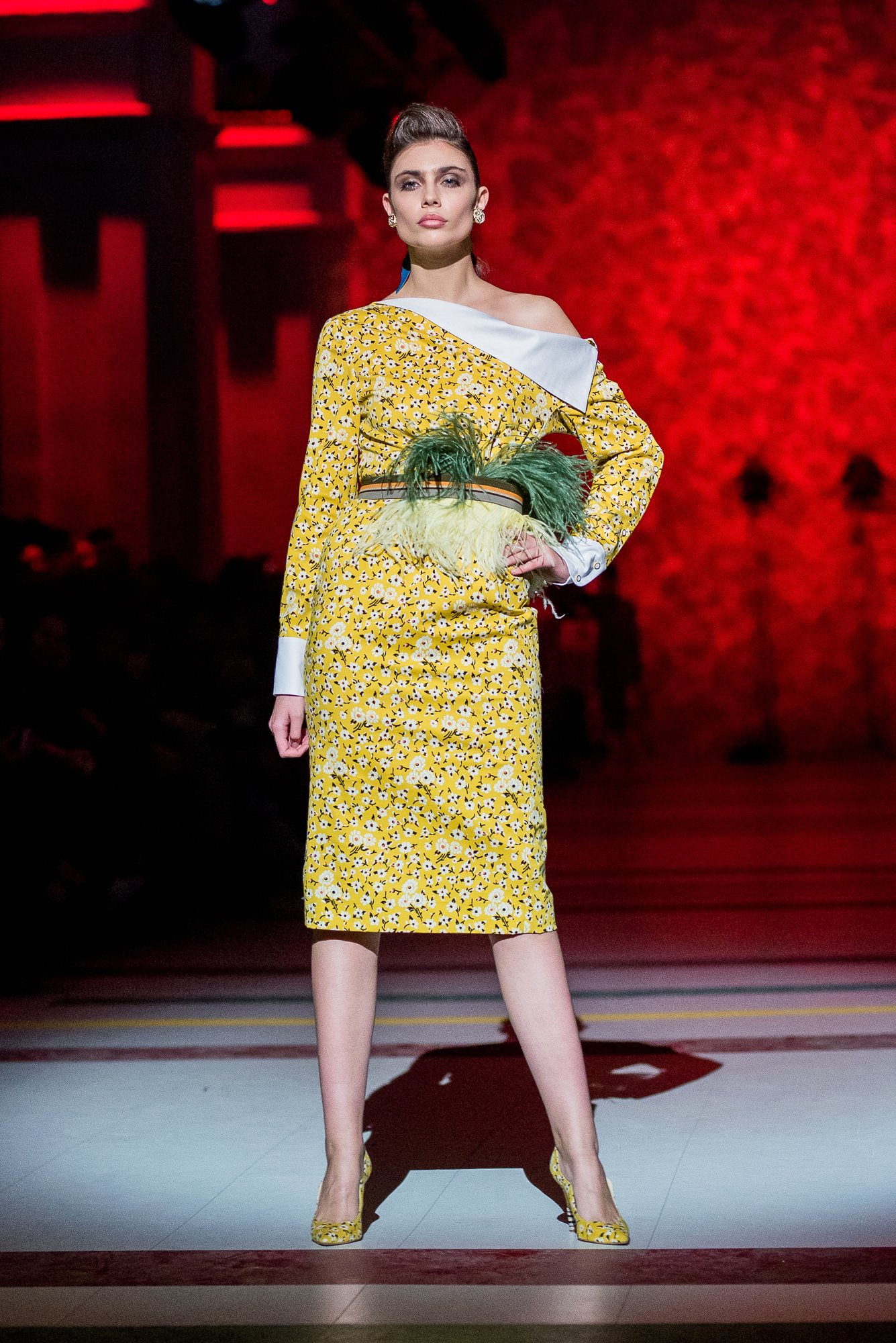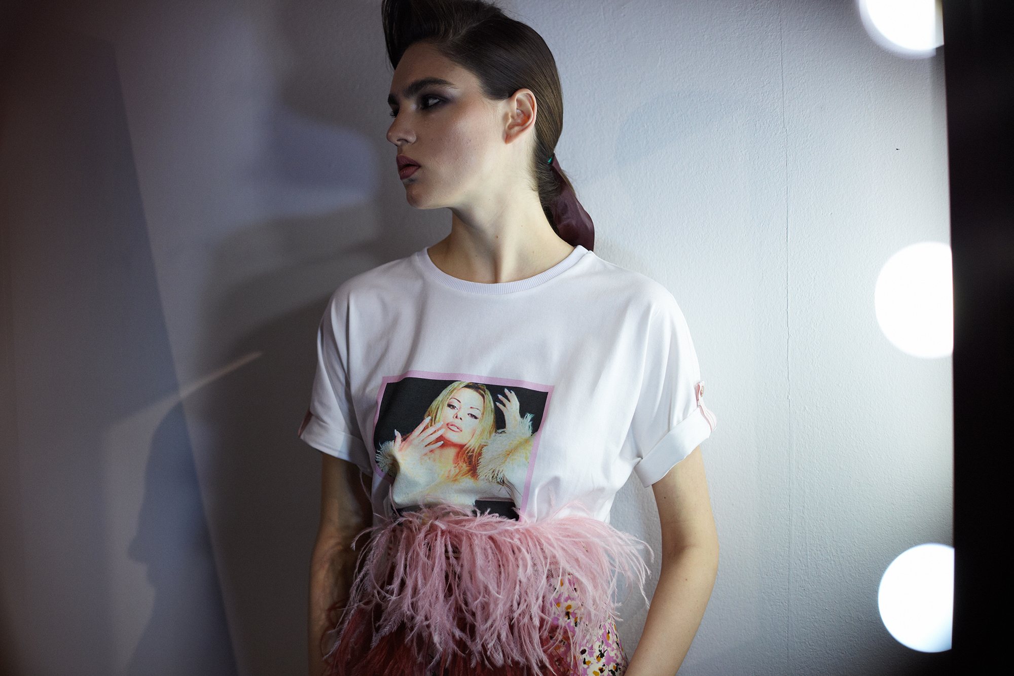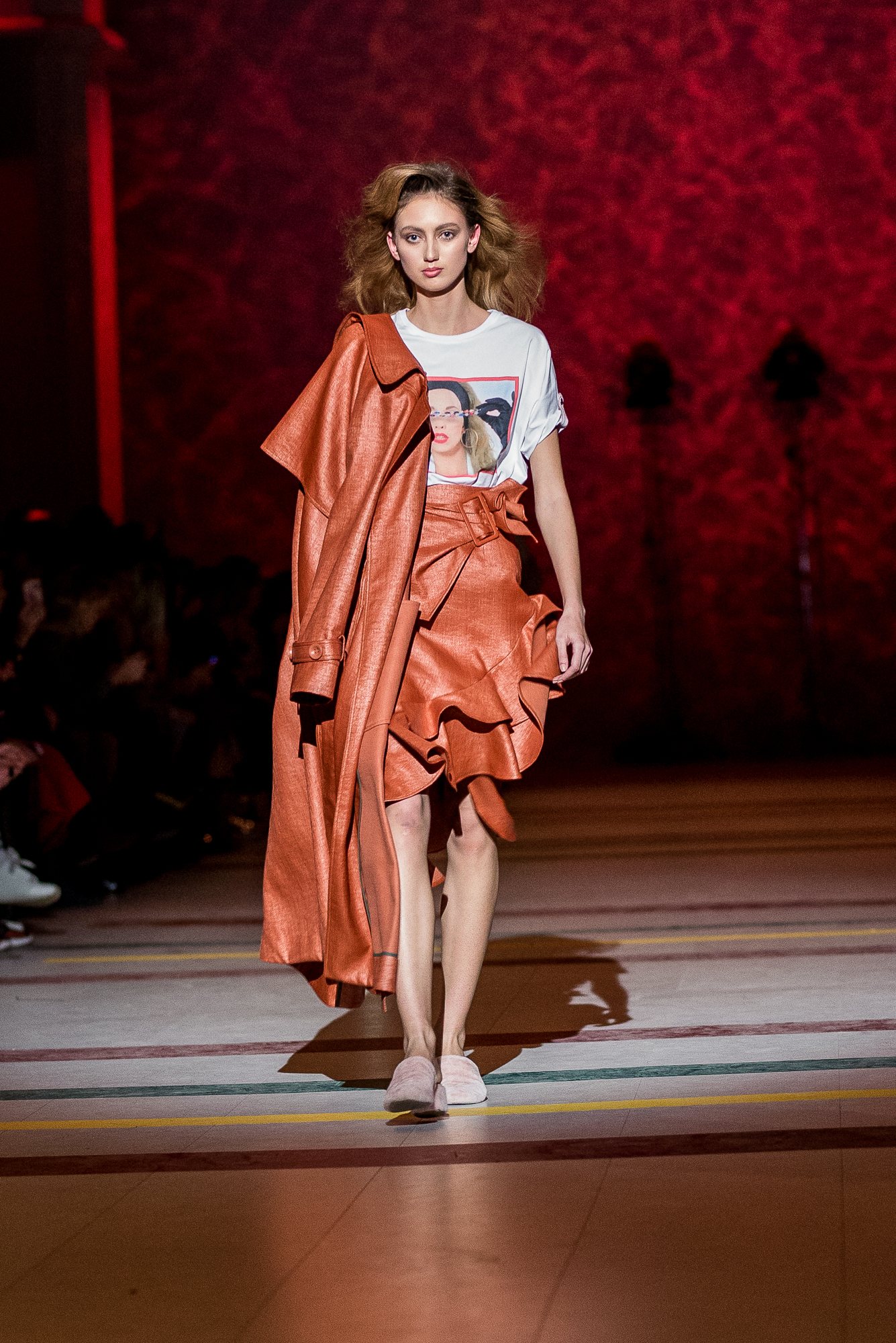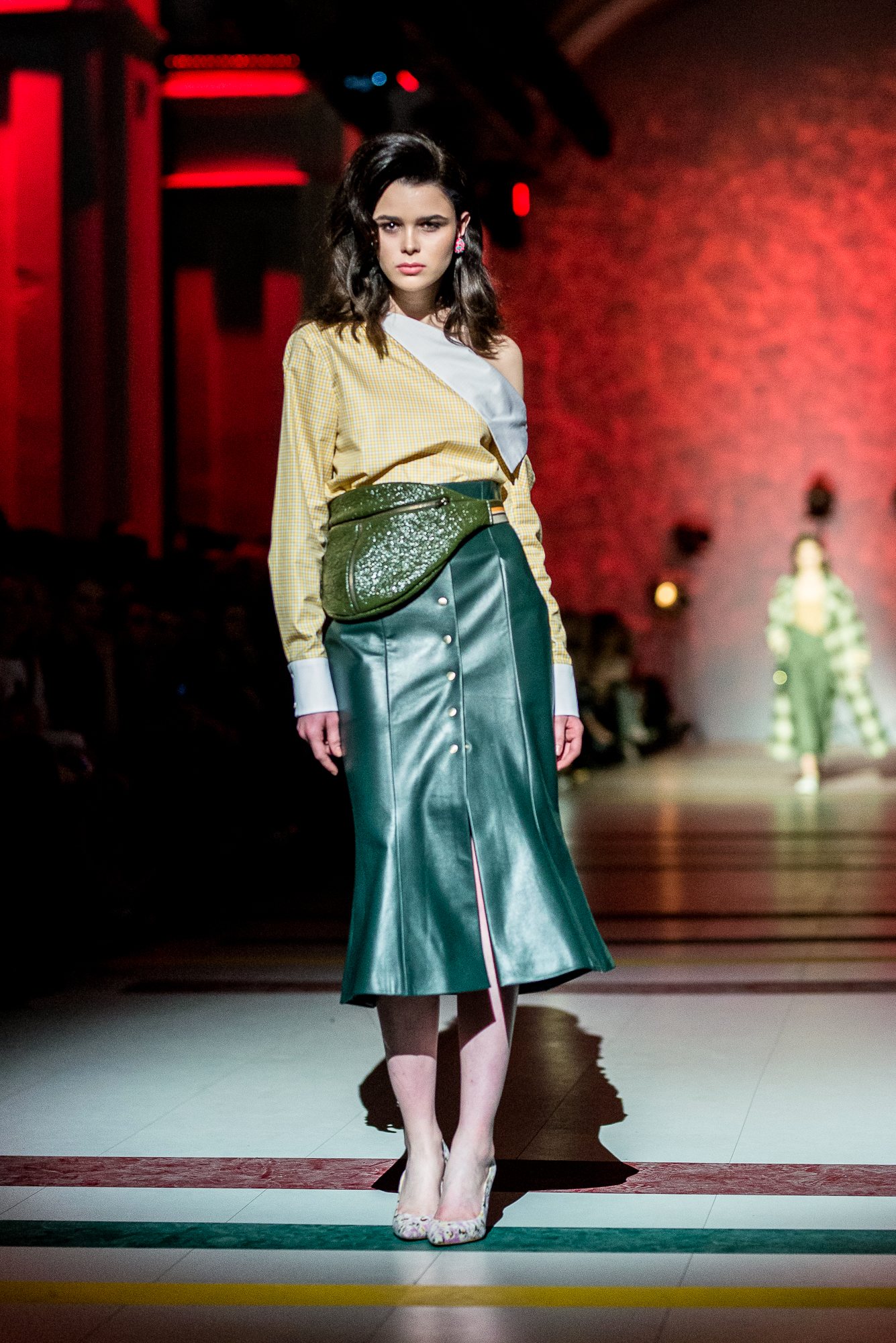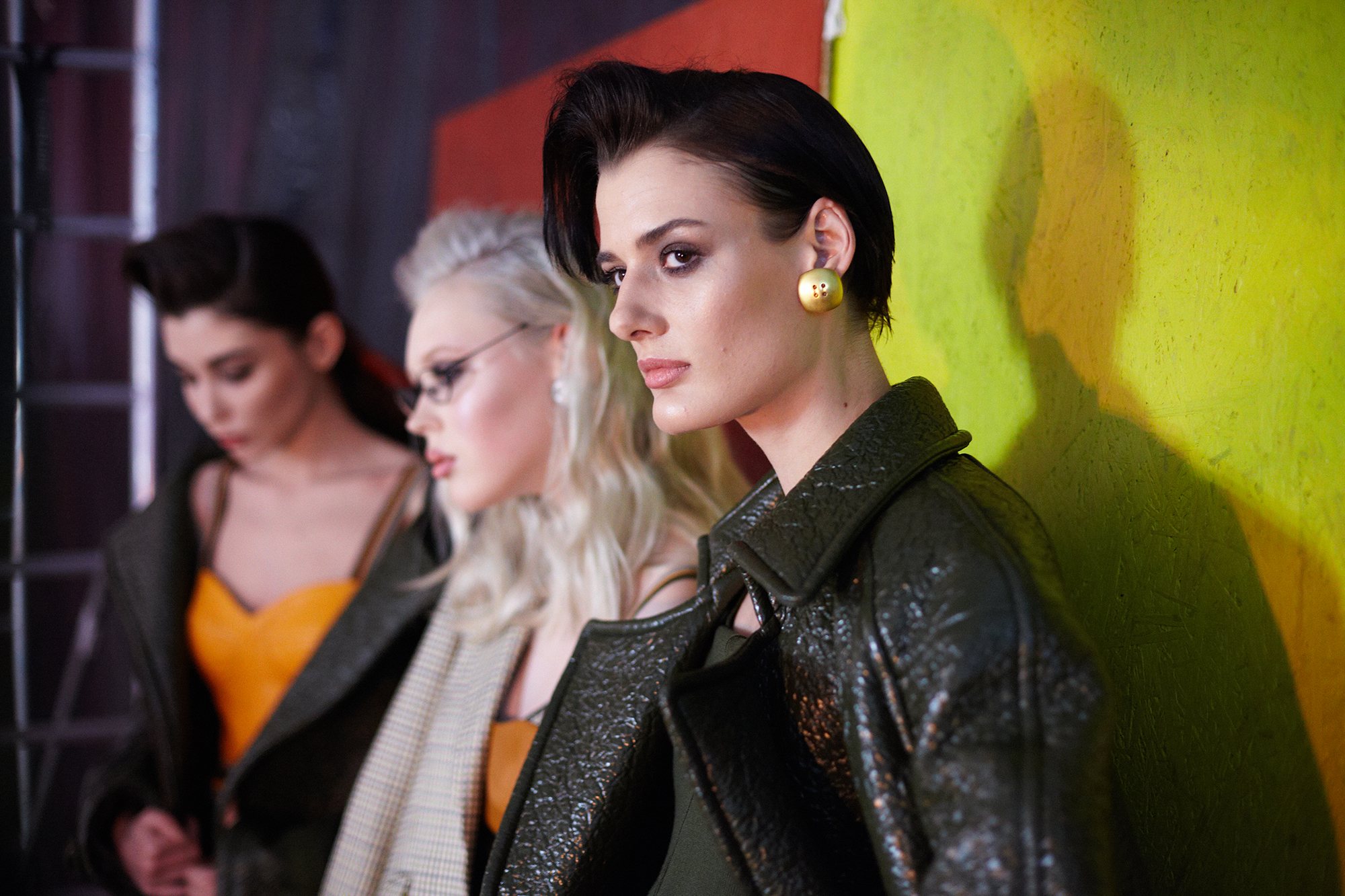 Работая над новой осенне-зимней коллекцией, дизайнер Катя Сильченко обратилась за вдохновением к 90-м, апеллируя к контрасту между серостью окружающего мира и торжественностью и пышностью эстрады и артистов. «Смелые образы исполнителей поражали своей свободой и раскрепощенностью», – вспоминает Катя. Именно эта свобода и читалась в каждом луке представленной вчера в Мыстецком Арсенале коллекции: мини-юбки, кожаные корсеты, перья – любимая декоративная деталь Сильченко, – яркие цвета и начесанные локоны возвращали нас мыслями в самый разгар 90-х.