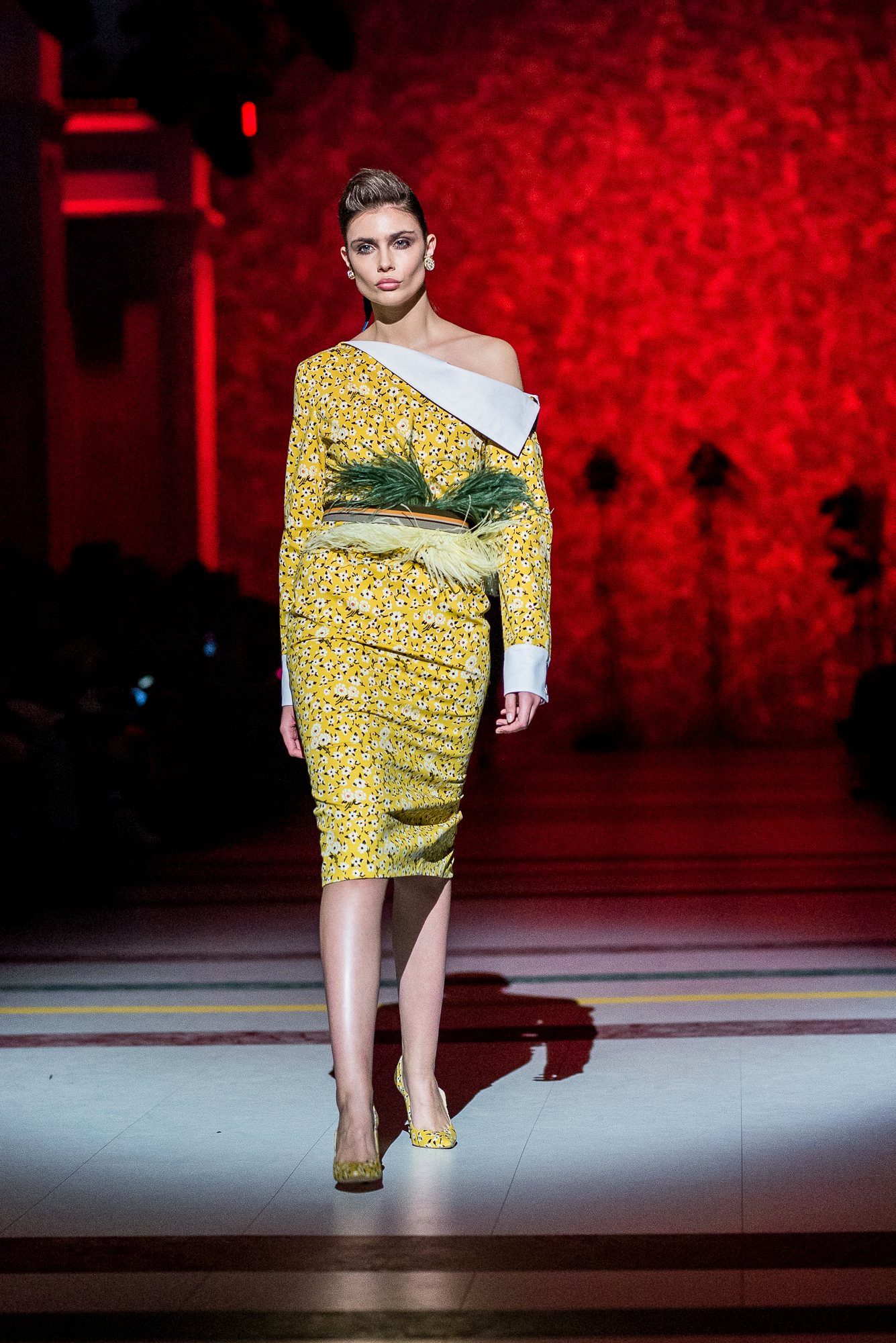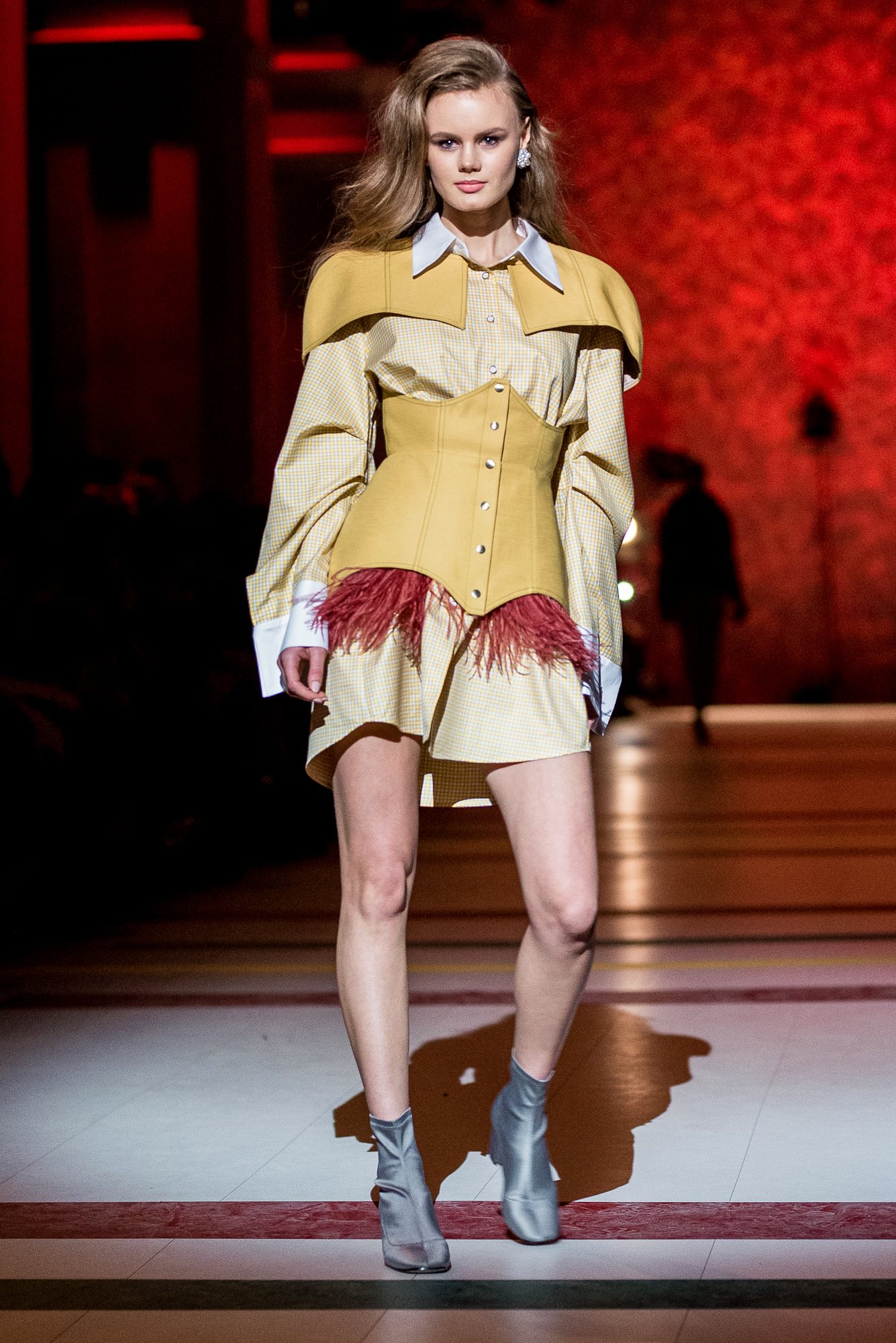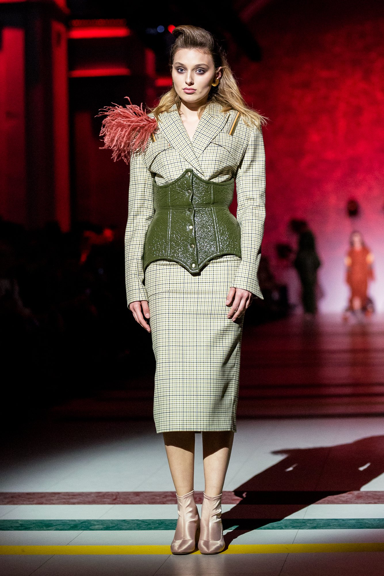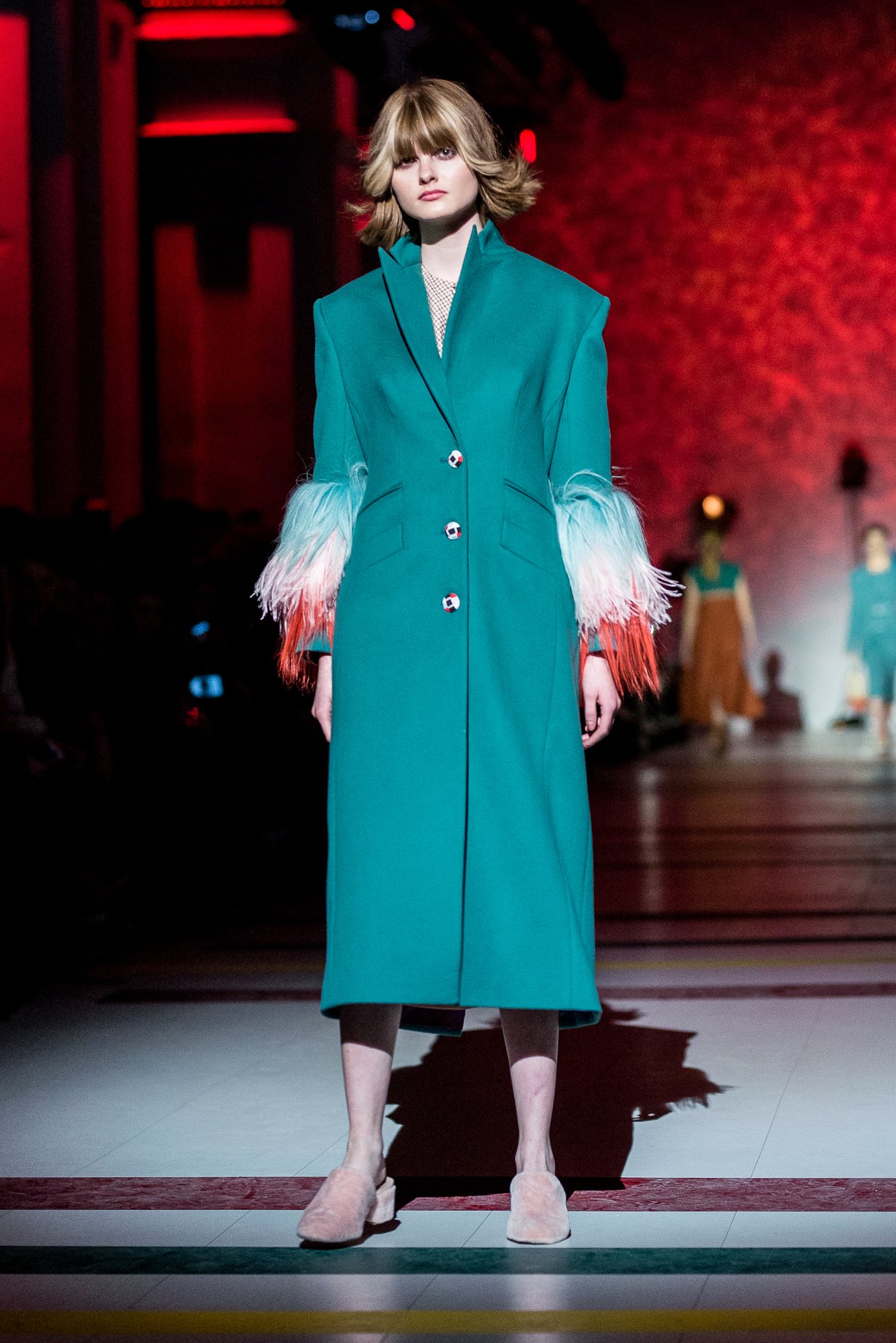 Работая над новой осенне-зимней коллекцией, дизайнер Катя Сильченко обратилась за вдохновением к 90-м, апеллируя к контрасту между серостью окружающего мира и торжественностью и пышностью эстрады и артистов. «Смелые образы исполнителей поражали своей свободой и раскрепощенностью», – вспоминает Катя. Именно эта свобода и читалась в каждом луке представленной вчера в Мыстецком Арсенале коллекции: мини-юбки, кожаные корсеты, перья – любимая декоративная деталь Сильченко, – яркие цвета и начесанные локоны возвращали нас мыслями в самый разгар 90-х.