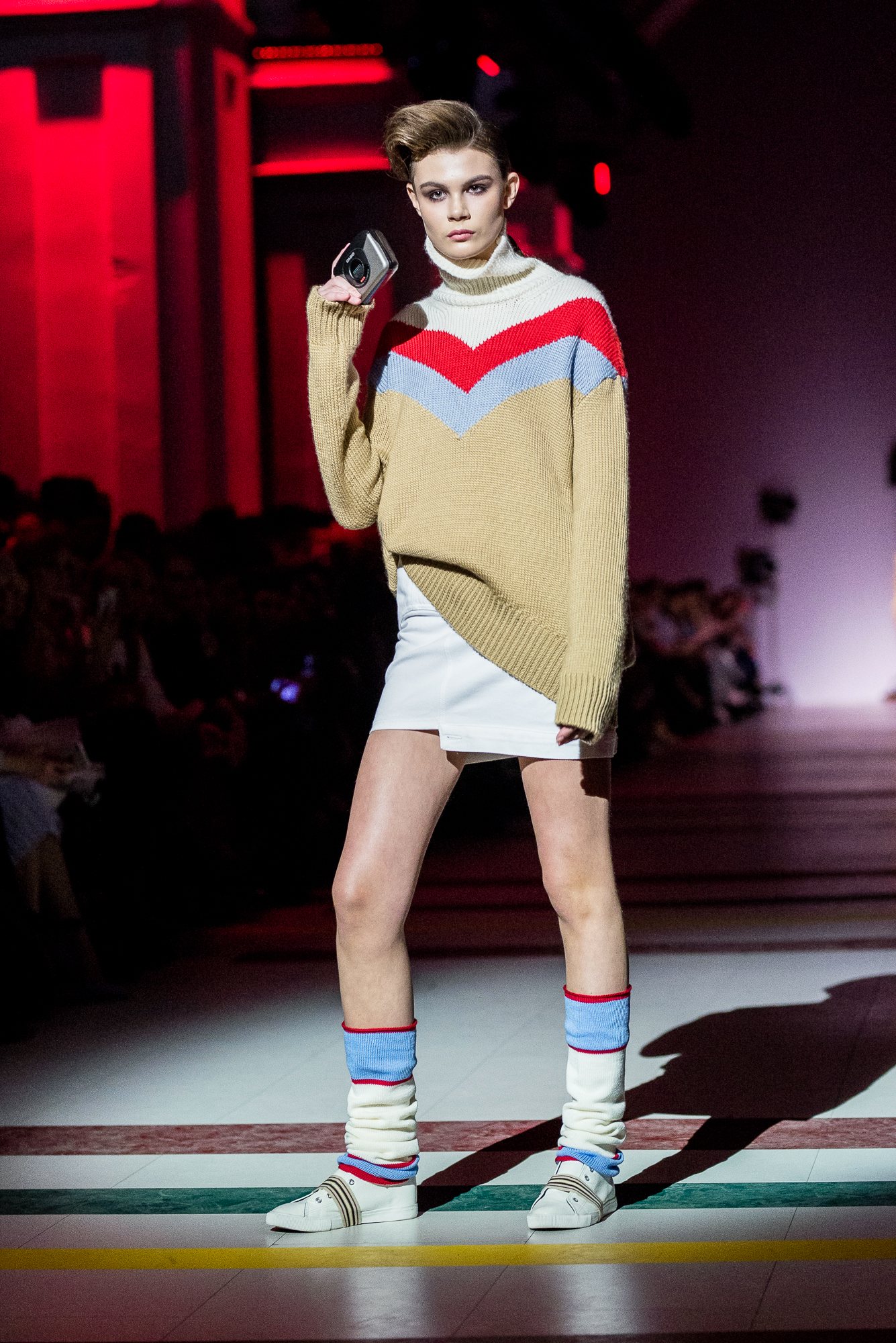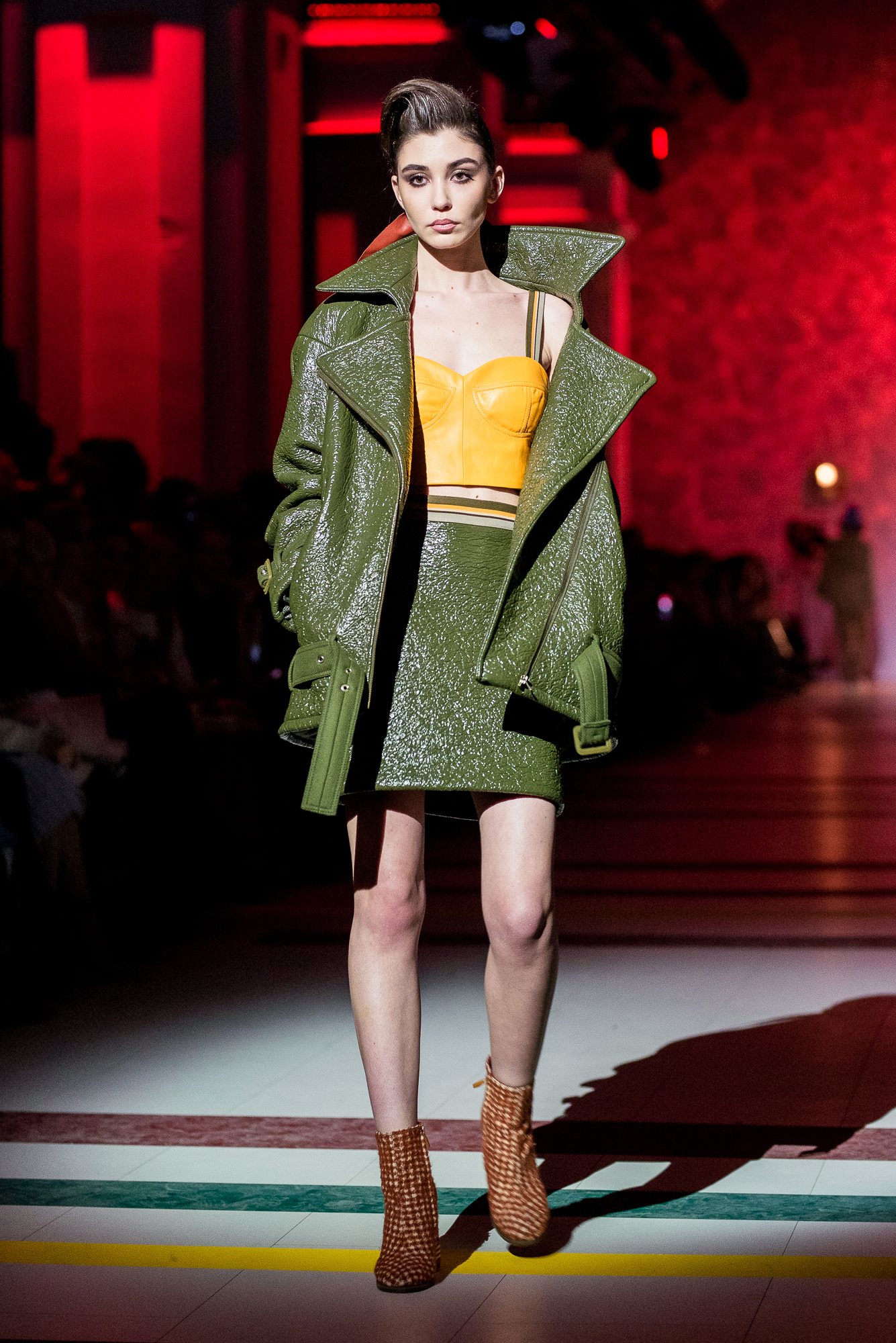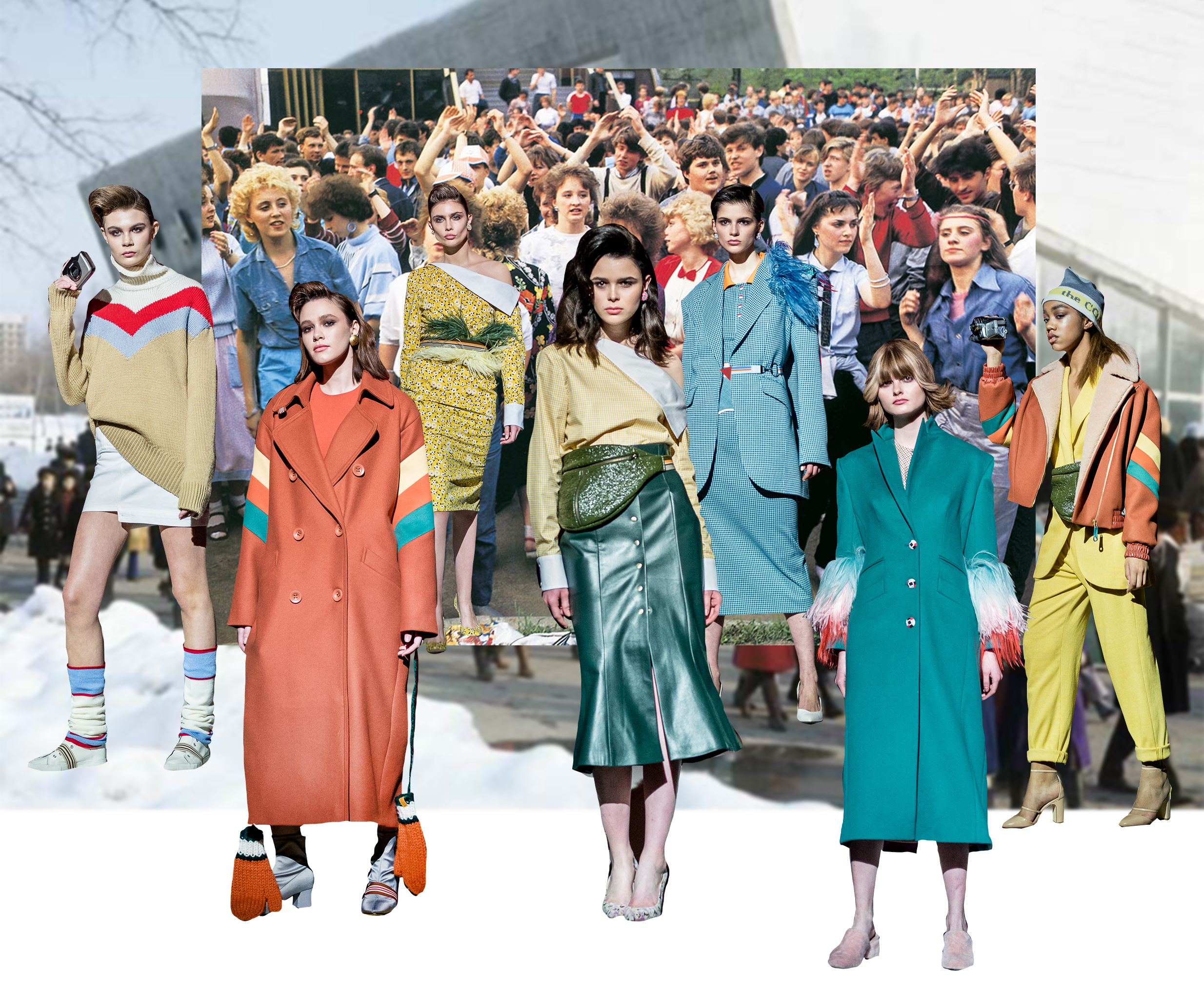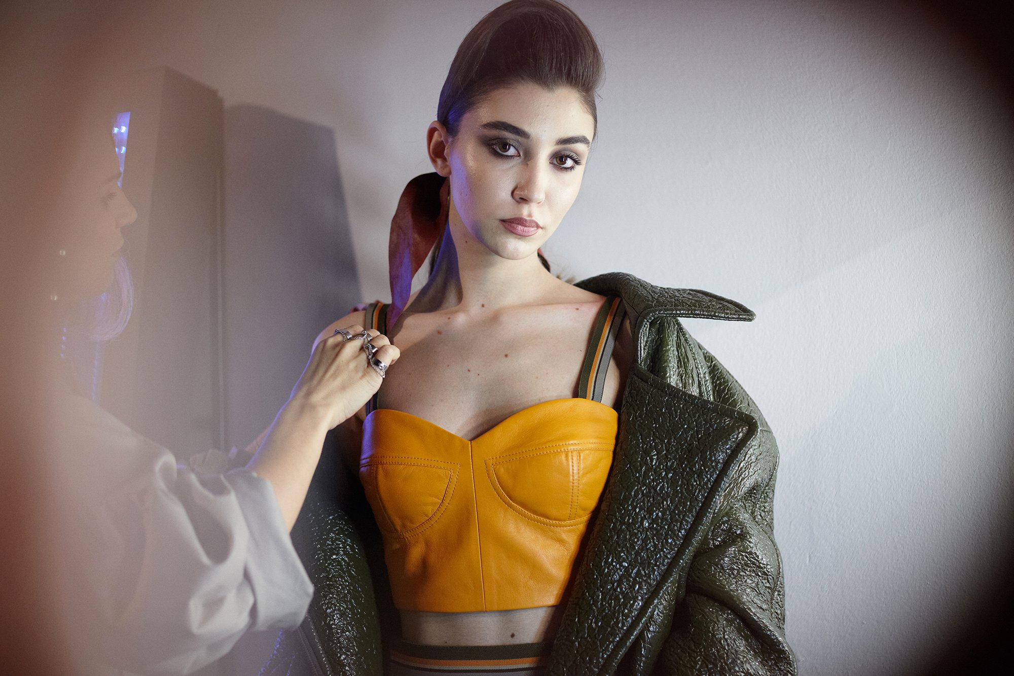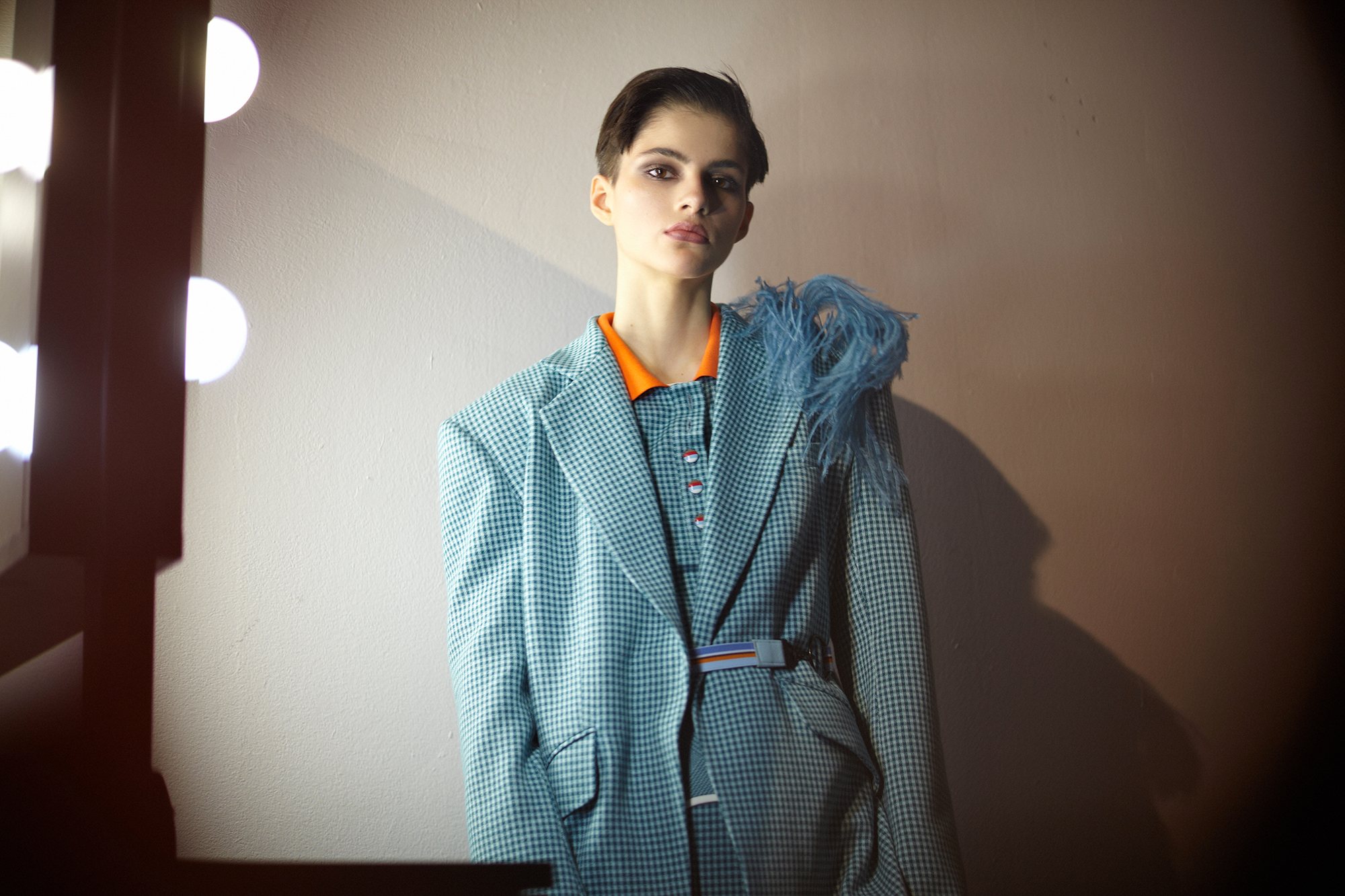 Работая над новой осенне-зимней коллекцией, дизайнер Катя Сильченко обратилась за вдохновением к 90-м, апеллируя к контрасту между серостью окружающего мира и торжественностью и пышностью эстрады и артистов. «Смелые образы исполнителей поражали своей свободой и раскрепощенностью», – вспоминает Катя. Именно эта свобода и читалась в каждом луке представленной вчера в Мыстецком Арсенале коллекции: мини-юбки, кожаные корсеты, перья – любимая декоративная деталь Сильченко, – яркие цвета и начесанные локоны возвращали нас мыслями в самый разгар 90-х.