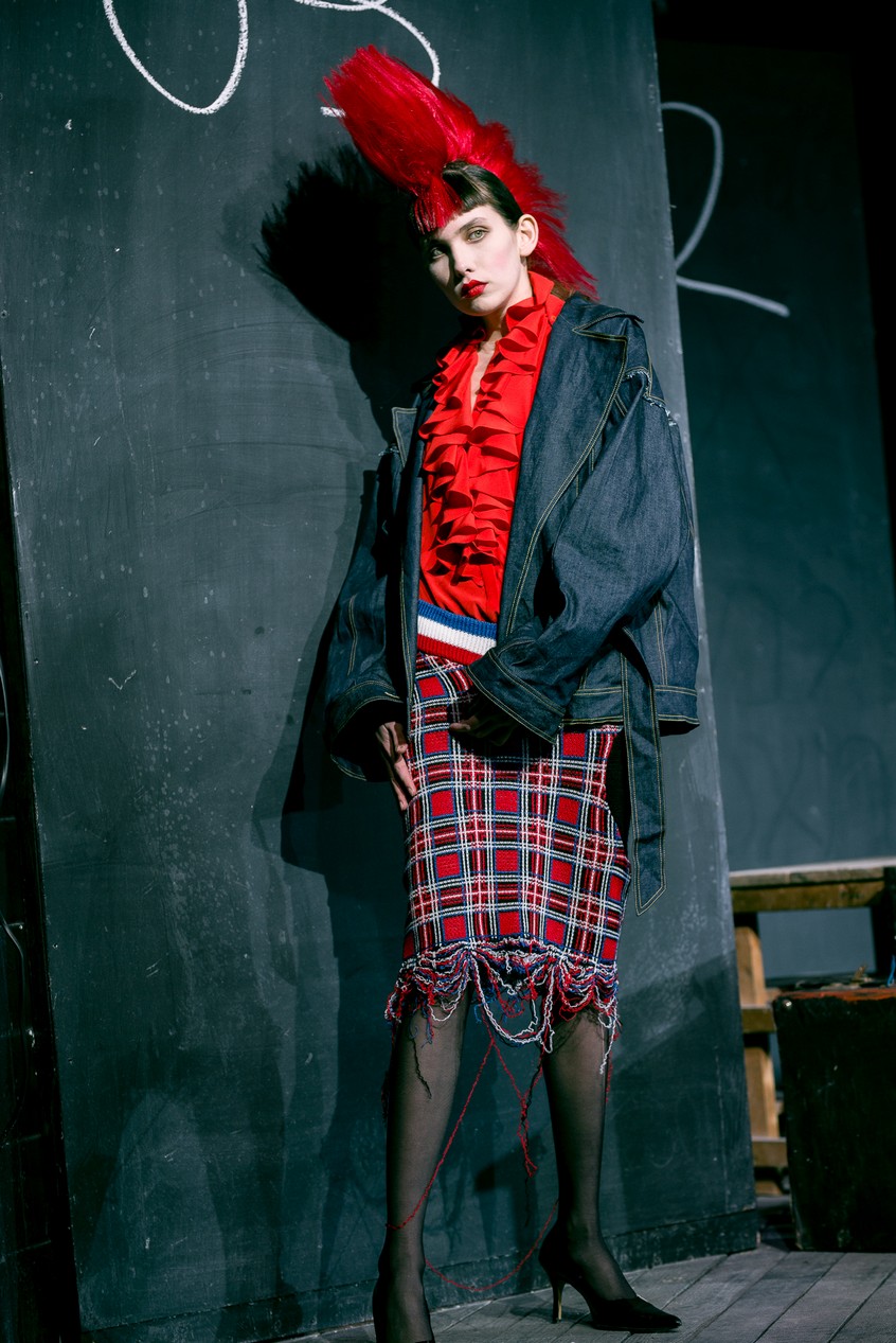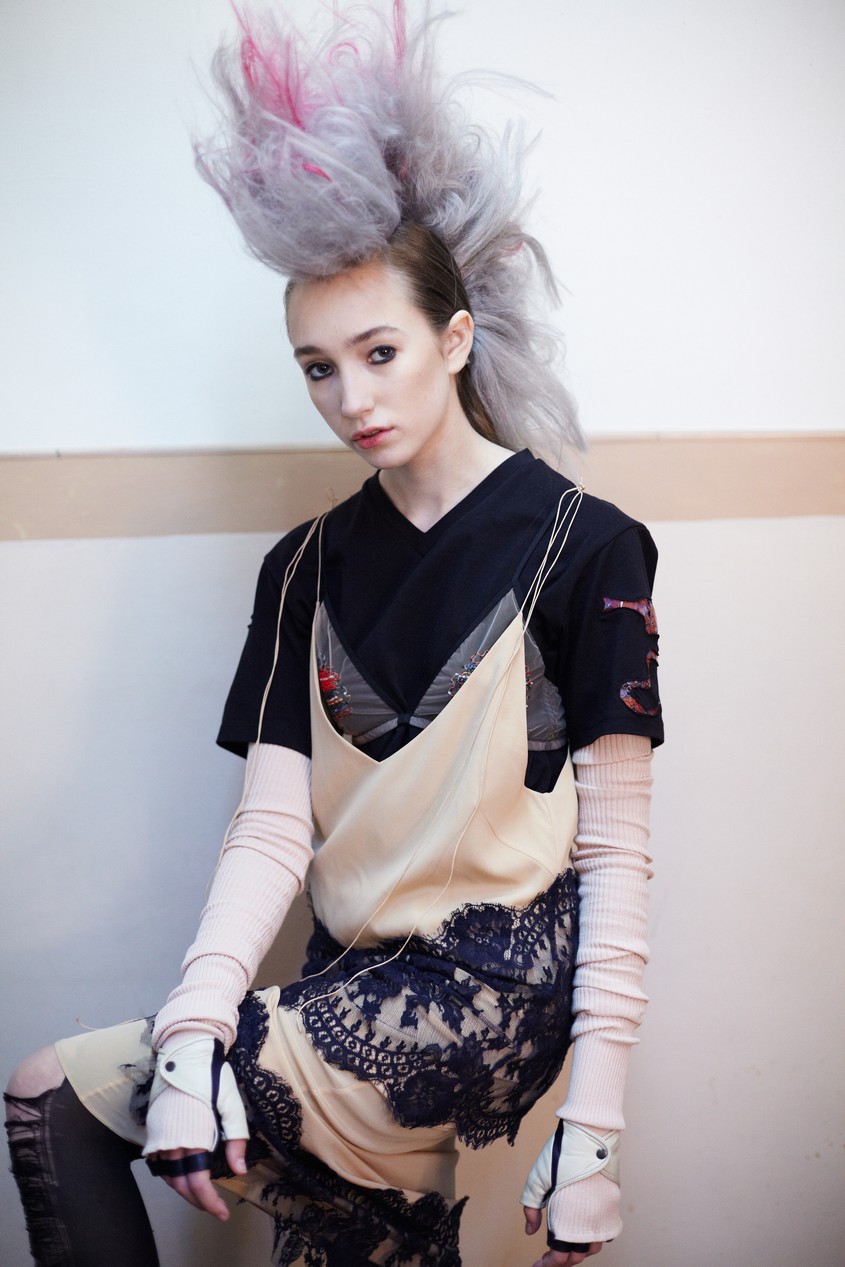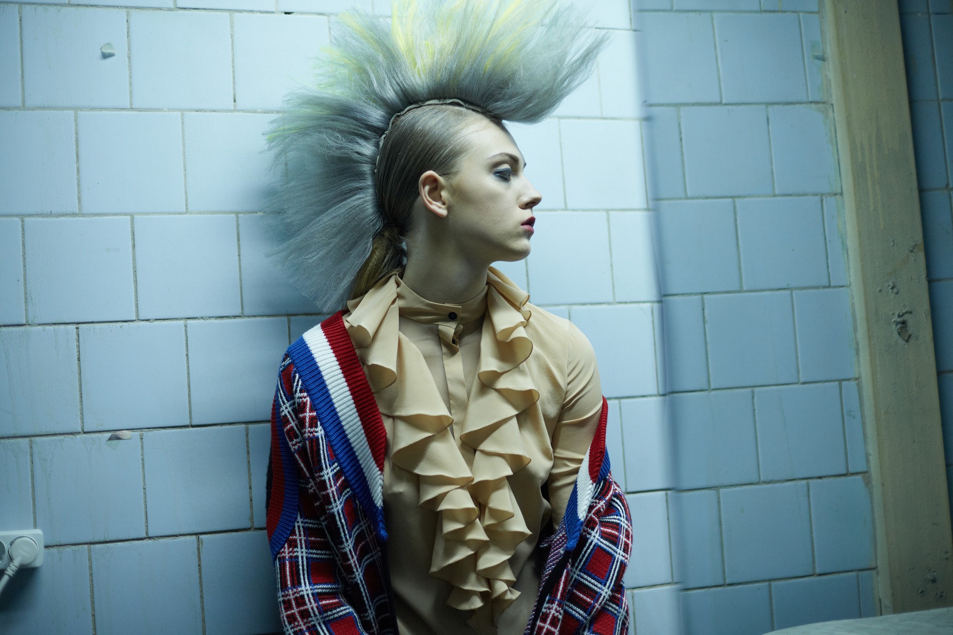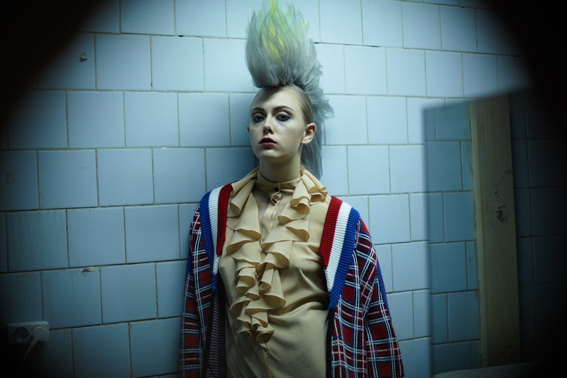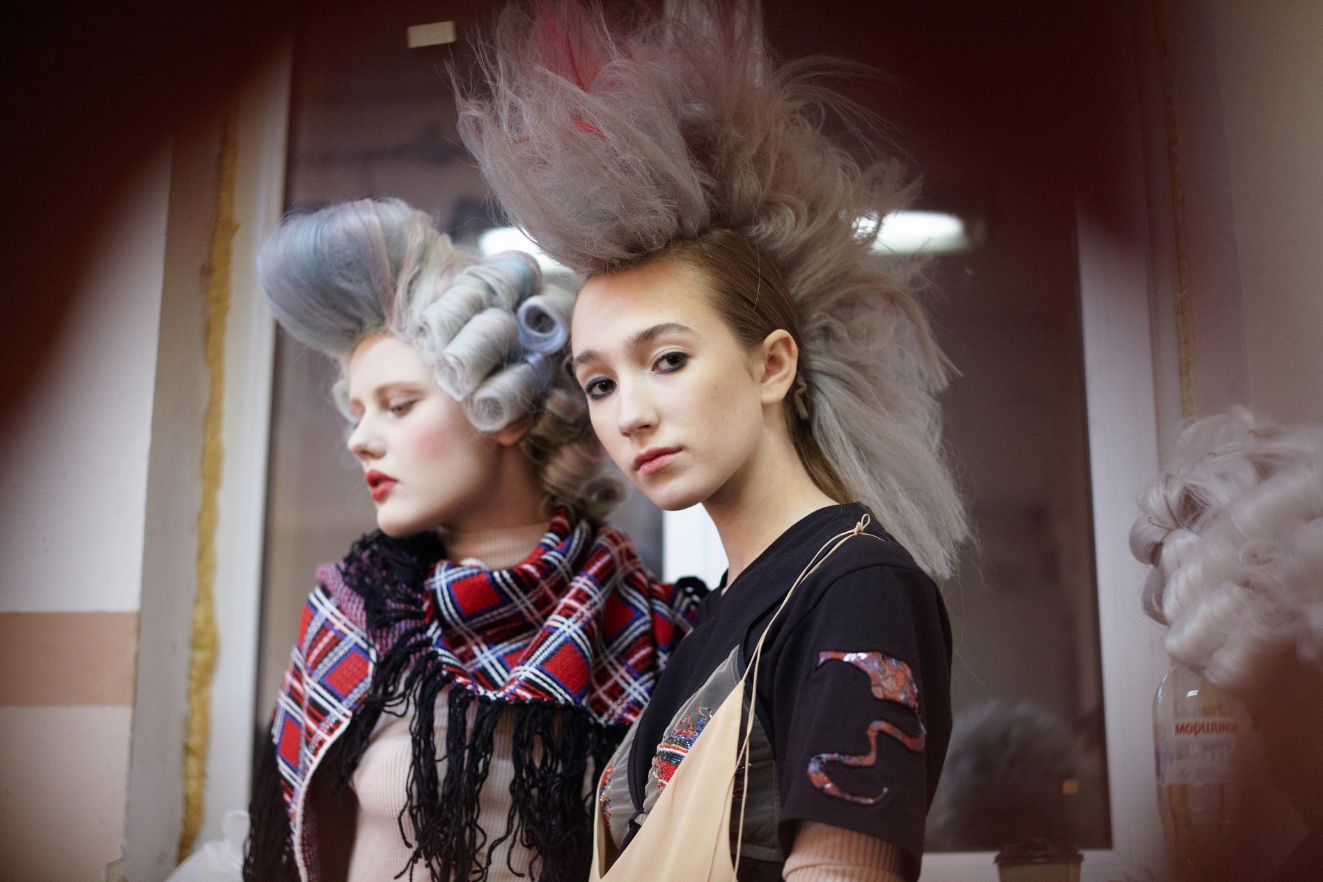 Все свои референсы Фролов пропускает через оптическое стекло своей эстетики, интеллектуальной провокации – вот и панки, субкультура, в общем-то, не самая чувственная, в его прочтении стали тонкими и сексуальными благодаря полупрозрачным текстурам, деталям вроде кружевных поясов для чулок, объемным курткам на обнаженное тело, корсетам и платьям-комбинациям. Битва двух исторических эпох, викторианства и панка, происходила не только в поле одежды, но и бьюти: модели появлялись то с грандиозными ирокезами работы Юлии Стець, то с высокими припудренными париками и выбеленными лицами. Все происходящее завершал аккомпанемент пианиста Олега Безбородько и сопрано Инны Галатенко, которые исполняли произведения Валентина Сильвестрова. И все же шоу и его зрелищность не смогли отвлечь от одежды: в этом сезоне она носибельна, разнообразна и отражает состояние современной моды, где происходит сумасшедшее броуновское движение, – впрочем, как раз это и интересно.