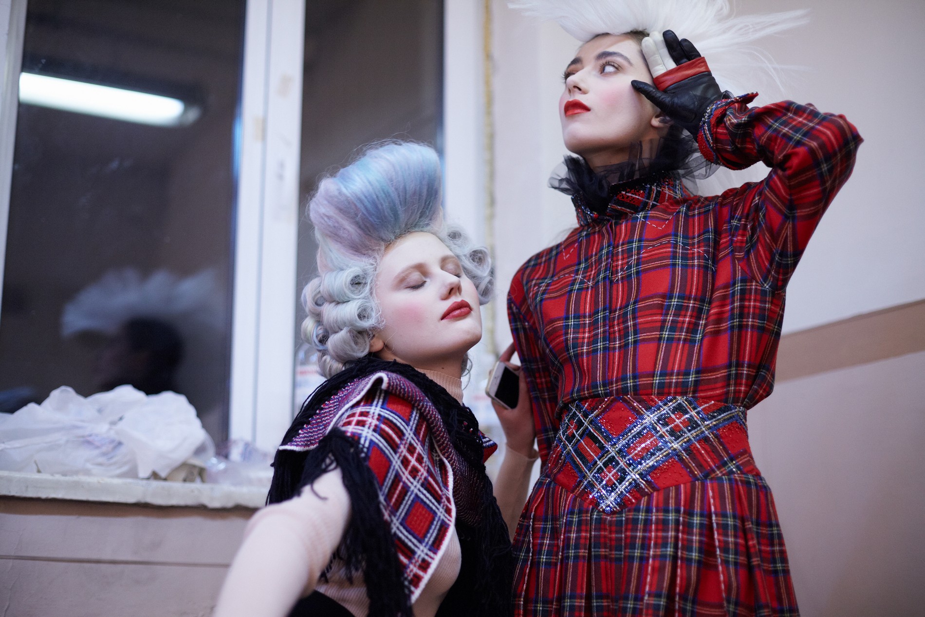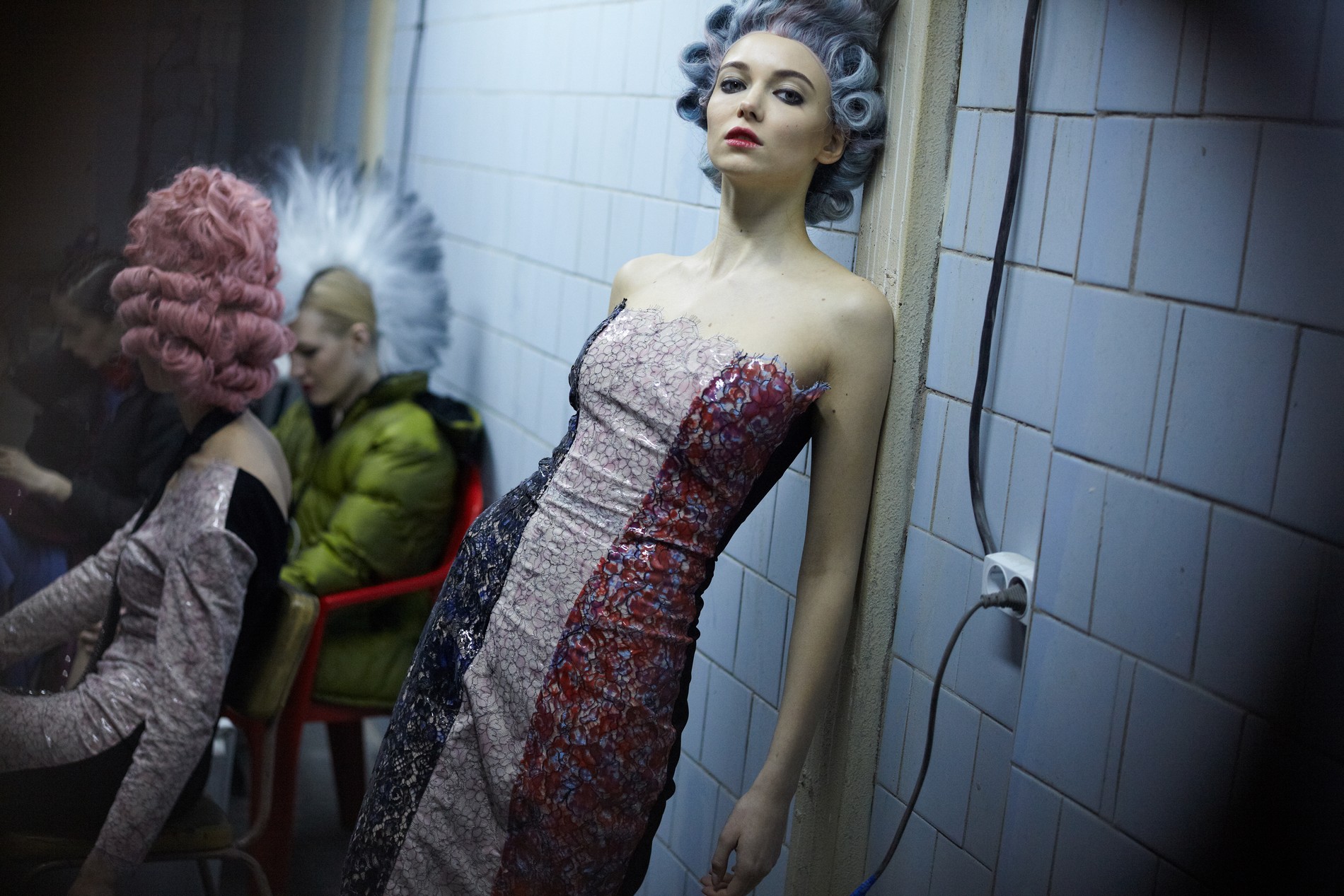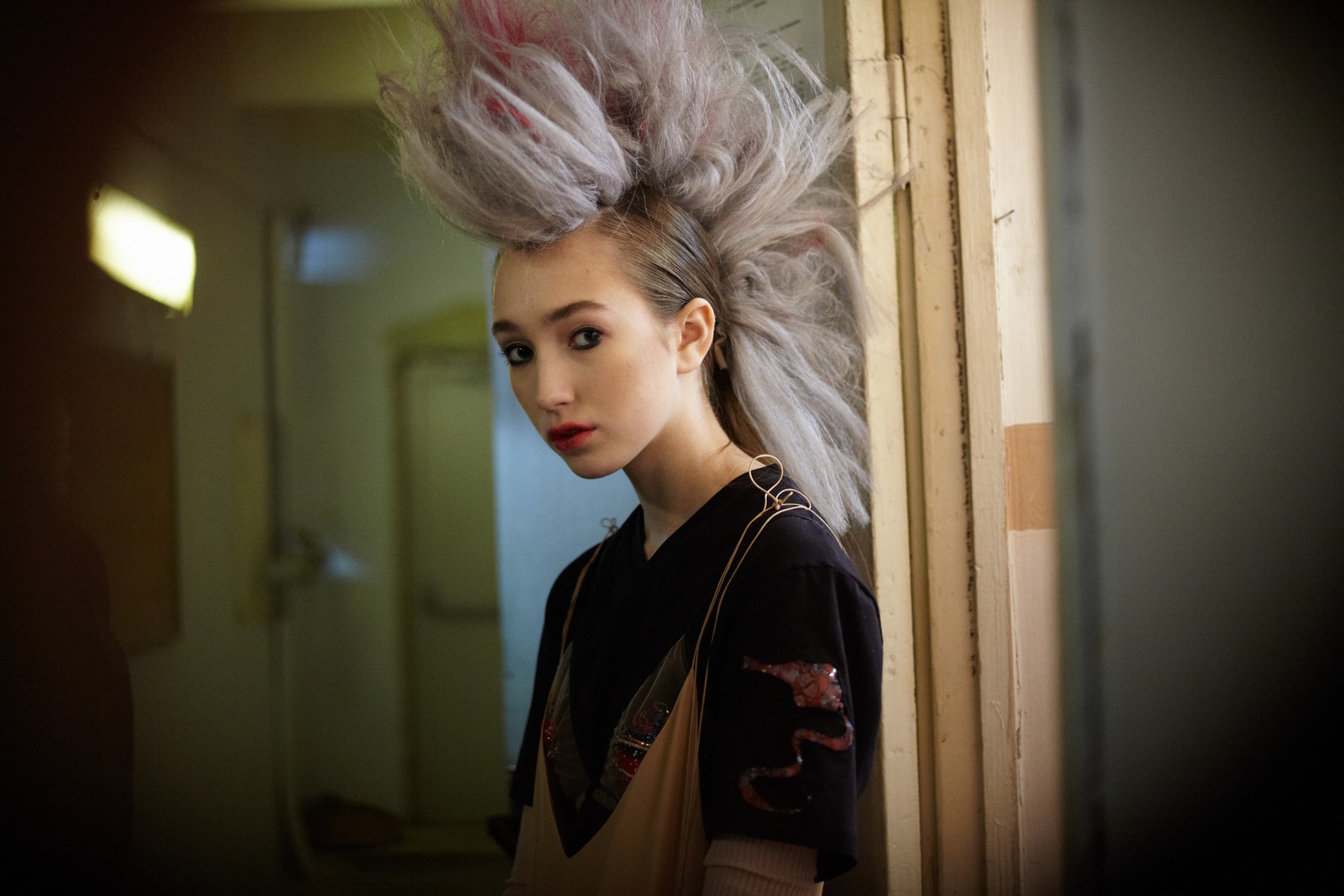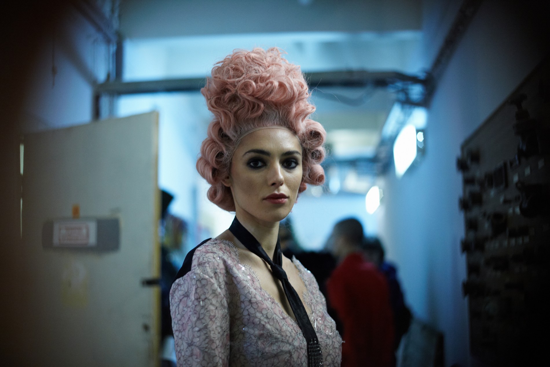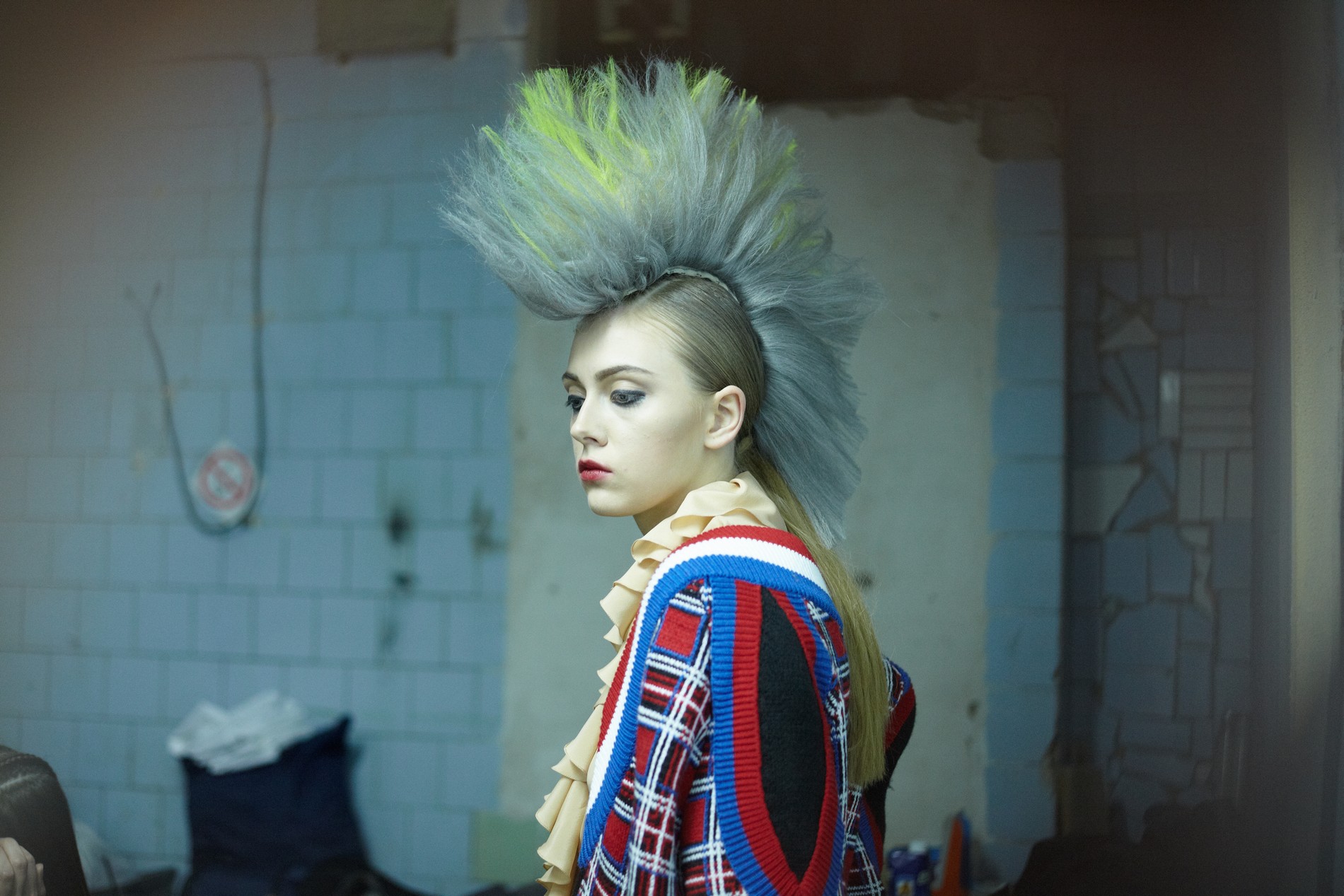 Все свои референсы Фролов пропускает через оптическое стекло своей эстетики, интеллектуальной провокации – вот и панки, субкультура, в общем-то, не самая чувственная, в его прочтении стали тонкими и сексуальными благодаря полупрозрачным текстурам, деталям вроде кружевных поясов для чулок, объемным курткам на обнаженное тело, корсетам и платьям-комбинациям. Битва двух исторических эпох, викторианства и панка, происходила не только в поле одежды, но и бьюти: модели появлялись то с грандиозными ирокезами работы Юлии Стець, то с высокими припудренными париками и выбеленными лицами. Все происходящее завершал аккомпанемент пианиста Олега Безбородько и сопрано Инны Галатенко, которые исполняли произведения Валентина Сильвестрова. И все же шоу и его зрелищность не смогли отвлечь от одежды: в этом сезоне она носибельна, разнообразна и отражает состояние современной моды, где происходит сумасшедшее броуновское движение, – впрочем, как раз это и интересно.