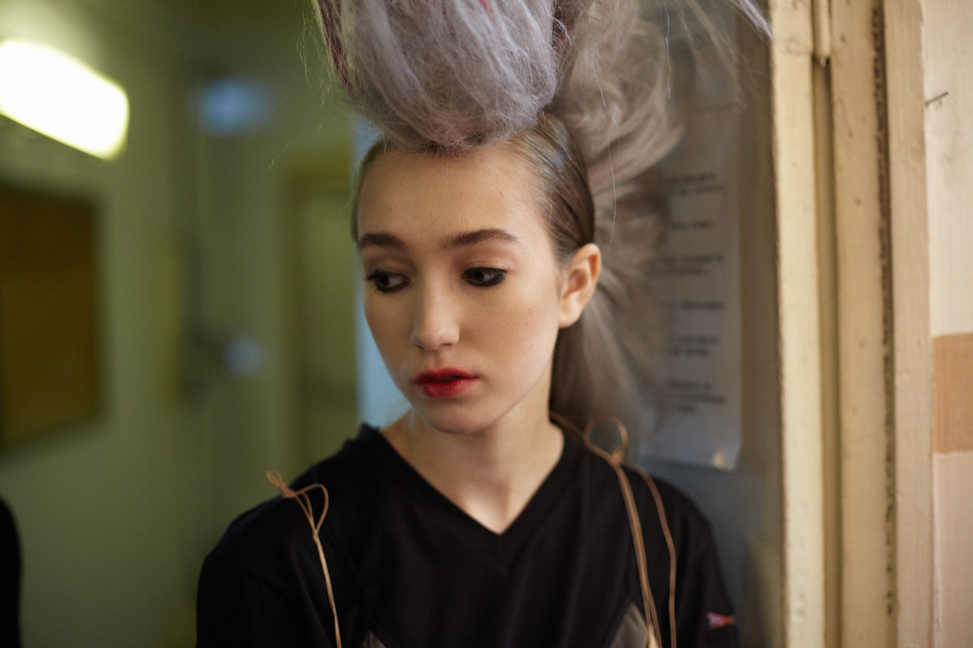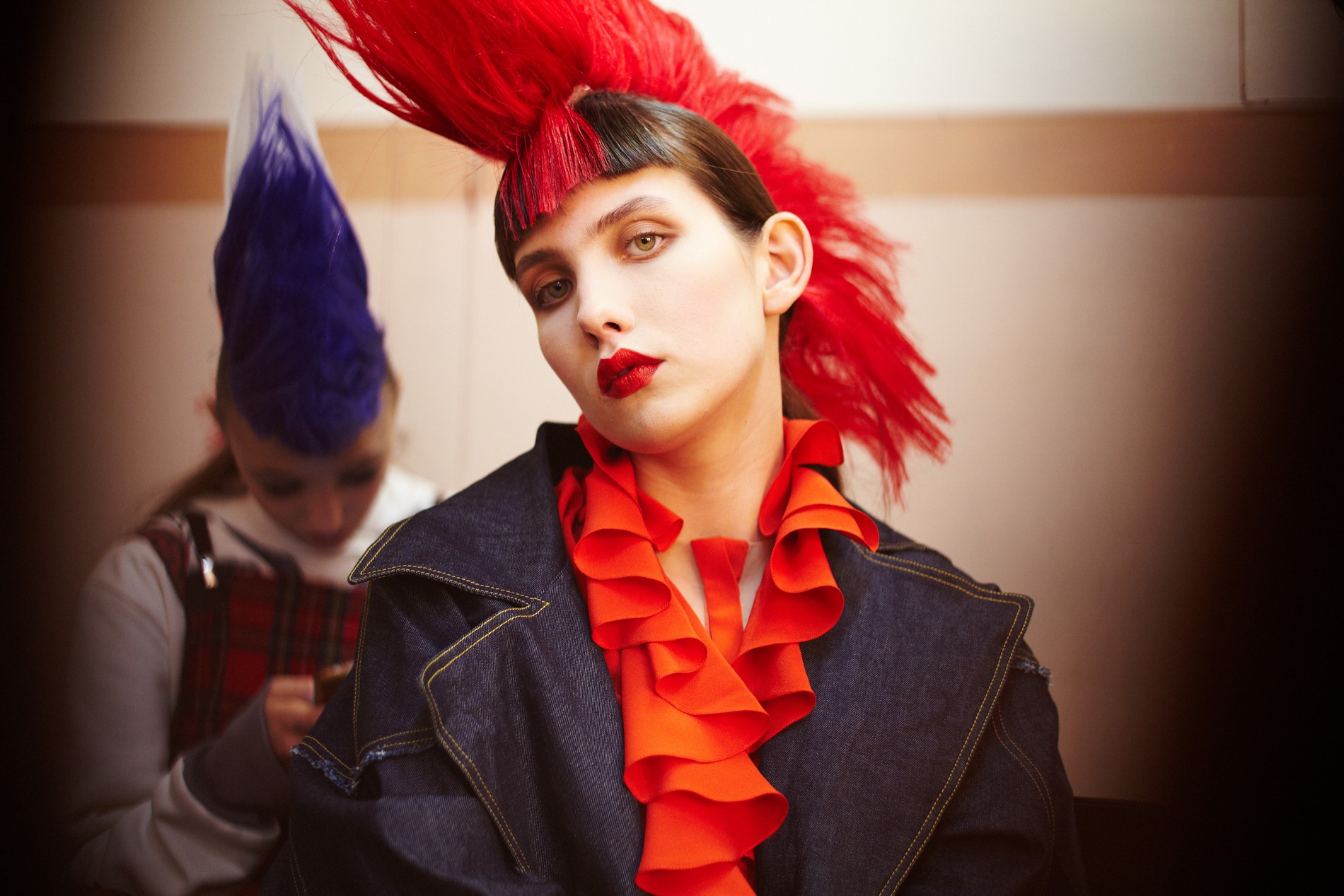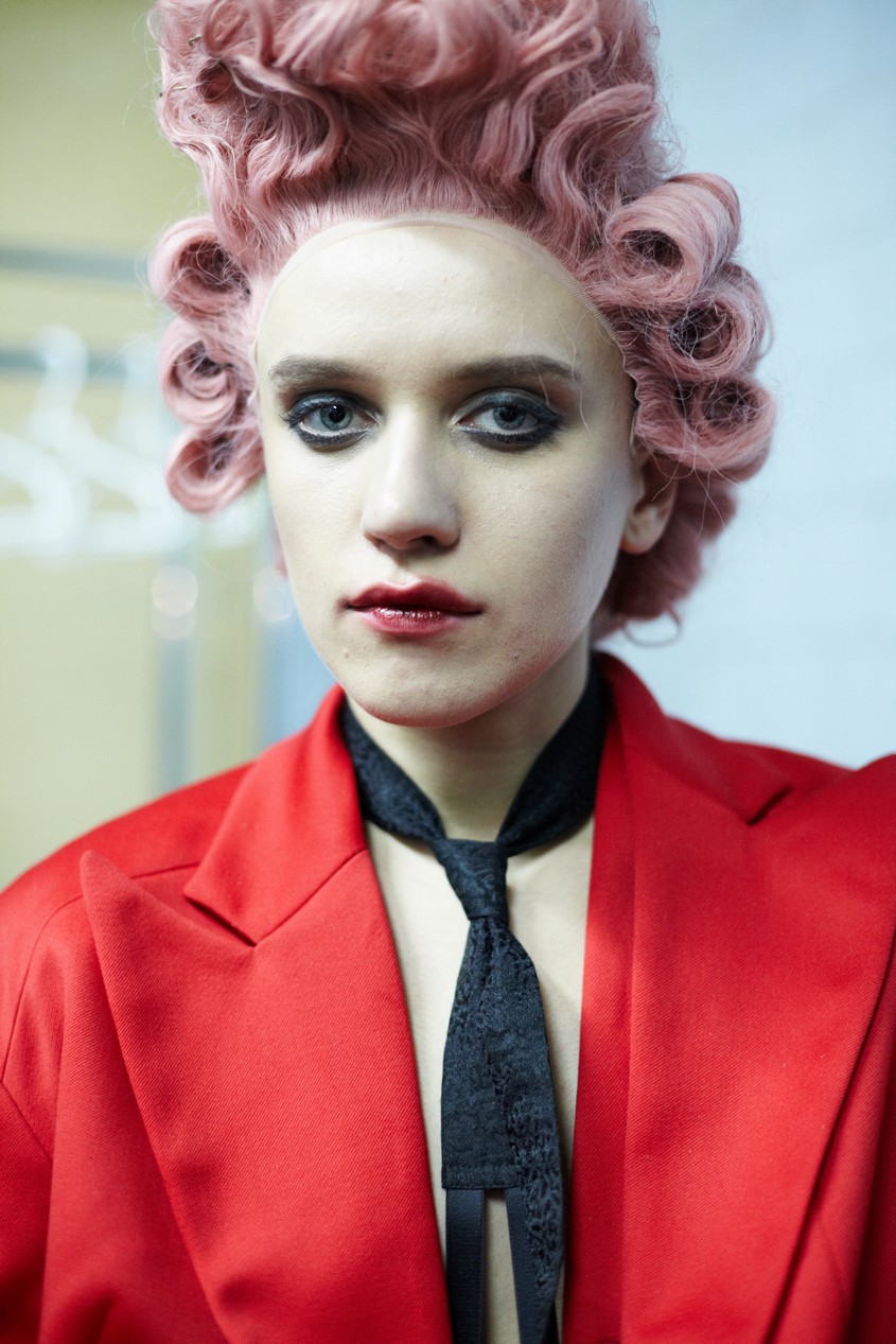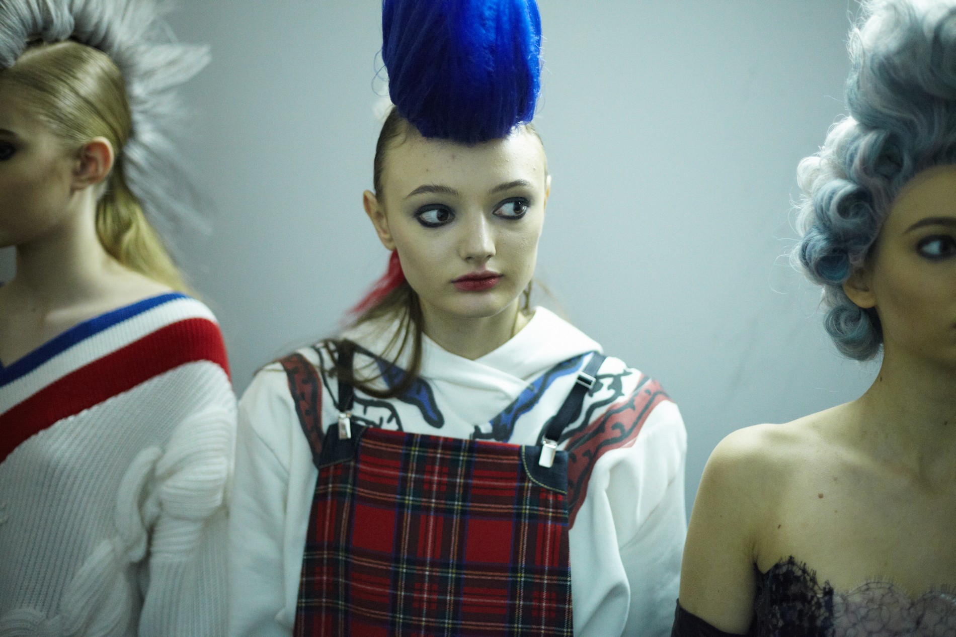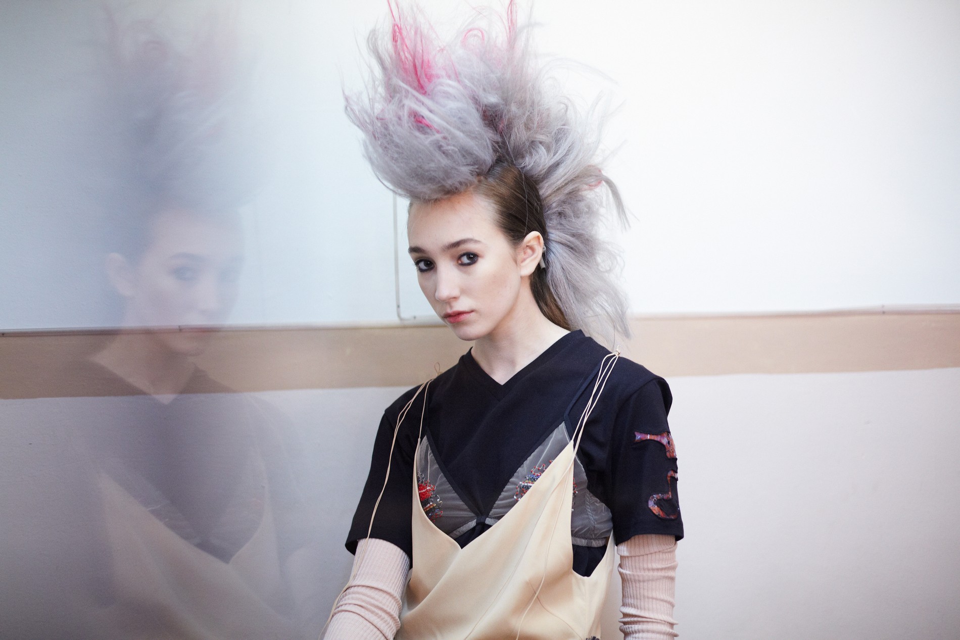 Все свои референсы Фролов пропускает через оптическое стекло своей эстетики, интеллектуальной провокации – вот и панки, субкультура, в общем-то, не самая чувственная, в его прочтении стали тонкими и сексуальными благодаря полупрозрачным текстурам, деталям вроде кружевных поясов для чулок, объемным курткам на обнаженное тело, корсетам и платьям-комбинациям. Битва двух исторических эпох, викторианства и панка, происходила не только в поле одежды, но и бьюти: модели появлялись то с грандиозными ирокезами работы Юлии Стець, то с высокими припудренными париками и выбеленными лицами. Все происходящее завершал аккомпанемент пианиста Олега Безбородько и сопрано Инны Галатенко, которые исполняли произведения Валентина Сильвестрова. И все же шоу и его зрелищность не смогли отвлечь от одежды: в этом сезоне она носибельна, разнообразна и отражает состояние современной моды, где происходит сумасшедшее броуновское движение, – впрочем, как раз это и интересно.