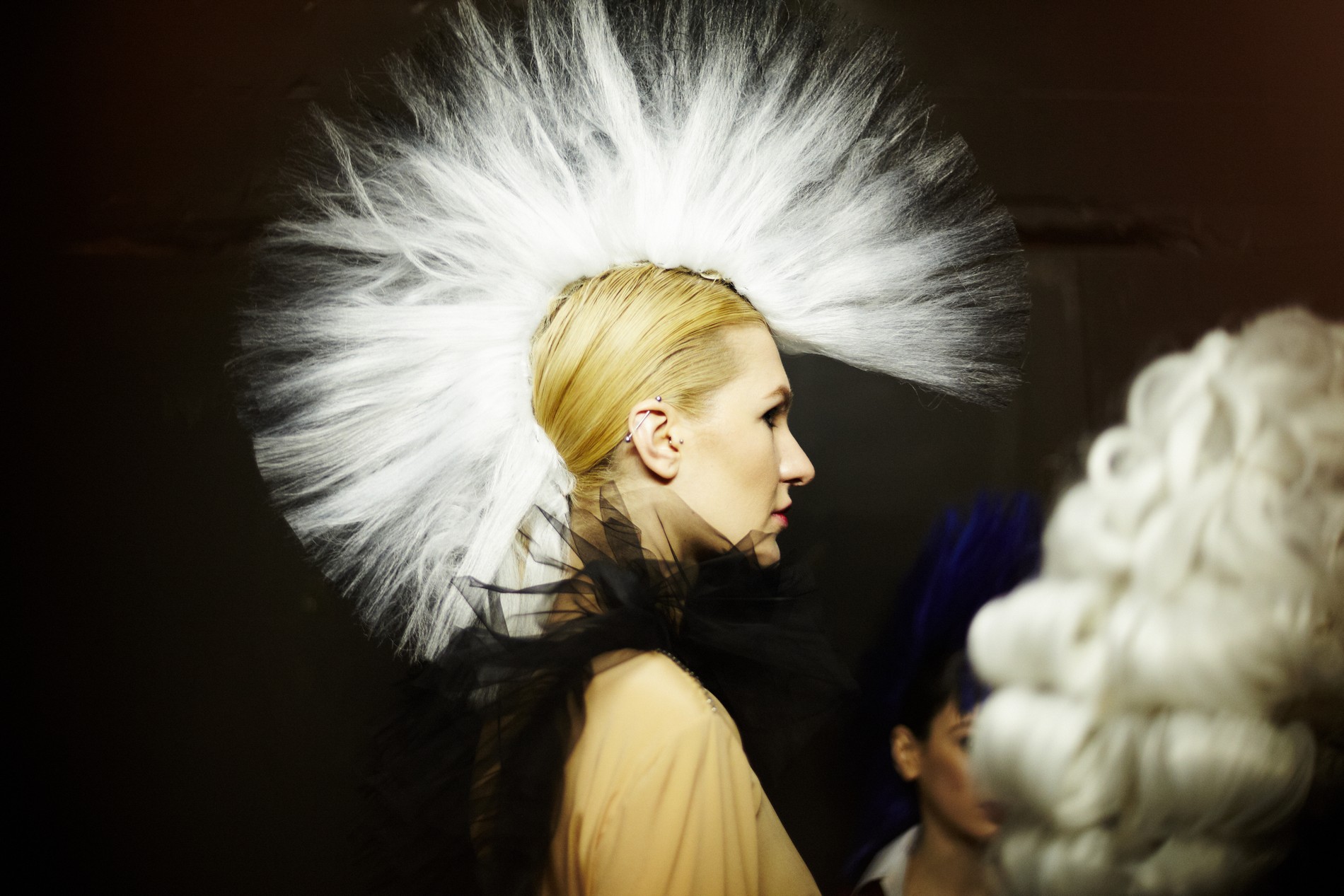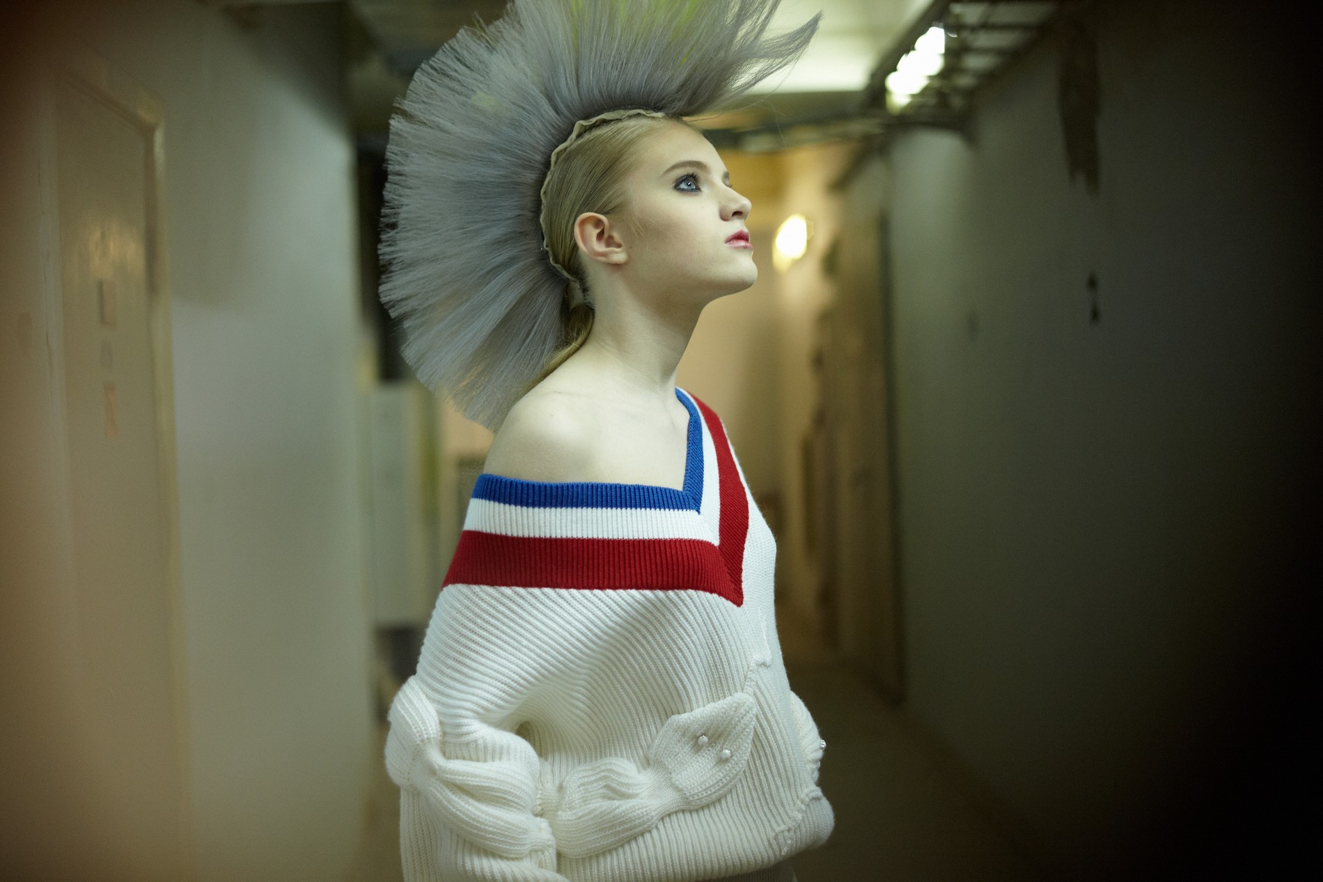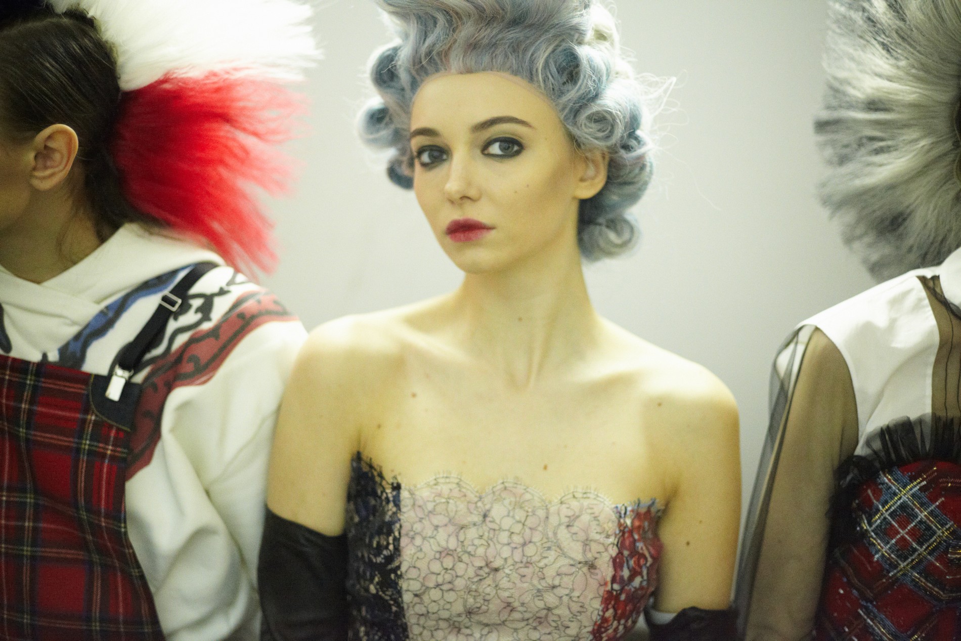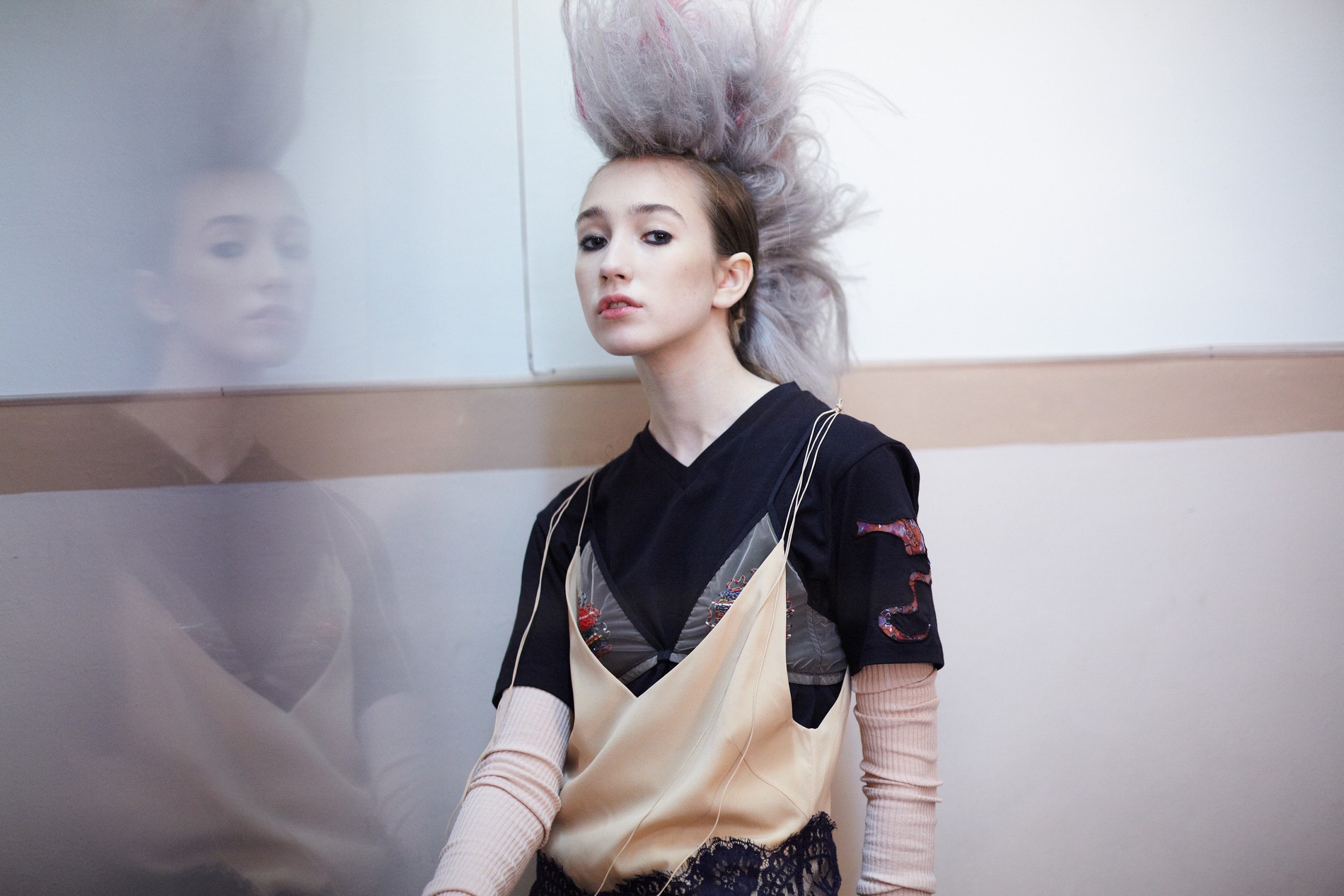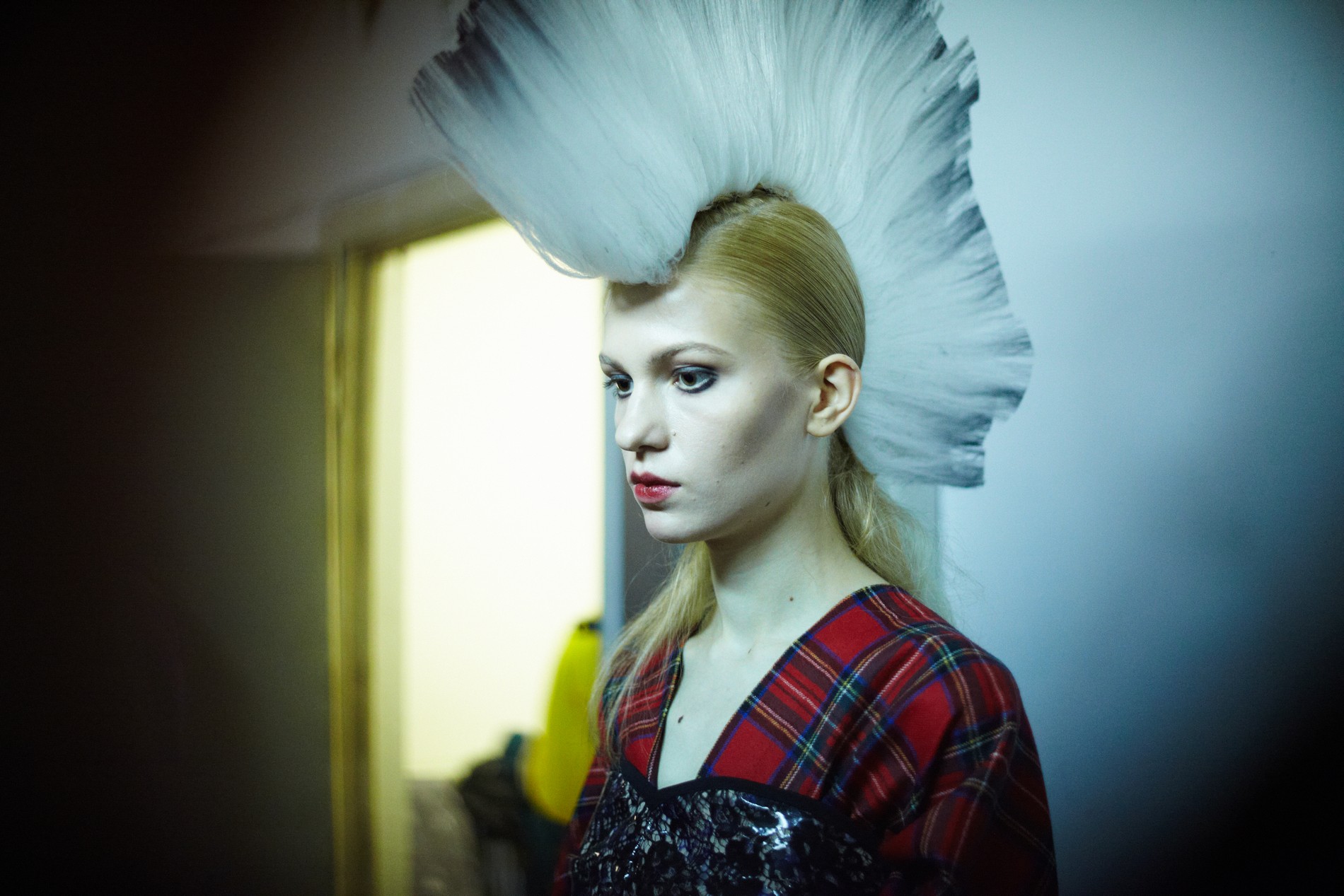 Все свои референсы Фролов пропускает через оптическое стекло своей эстетики, интеллектуальной провокации – вот и панки, субкультура, в общем-то, не самая чувственная, в его прочтении стали тонкими и сексуальными благодаря полупрозрачным текстурам, деталям вроде кружевных поясов для чулок, объемным курткам на обнаженное тело, корсетам и платьям-комбинациям. Битва двух исторических эпох, викторианства и панка, происходила не только в поле одежды, но и бьюти: модели появлялись то с грандиозными ирокезами работы Юлии Стець, то с высокими припудренными париками и выбеленными лицами. Все происходящее завершал аккомпанемент пианиста Олега Безбородько и сопрано Инны Галатенко, которые исполняли произведения Валентина Сильвестрова. И все же шоу и его зрелищность не смогли отвлечь от одежды: в этом сезоне она носибельна, разнообразна и отражает состояние современной моды, где происходит сумасшедшее броуновское движение, – впрочем, как раз это и интересно.
