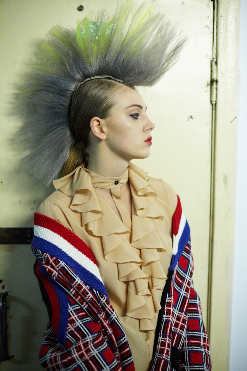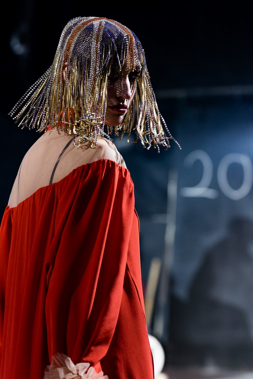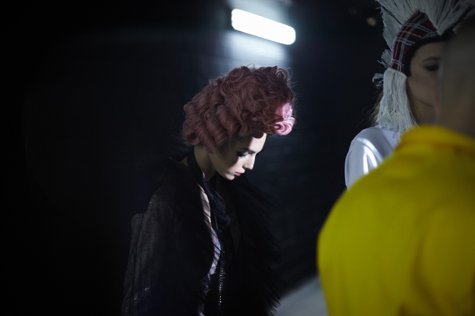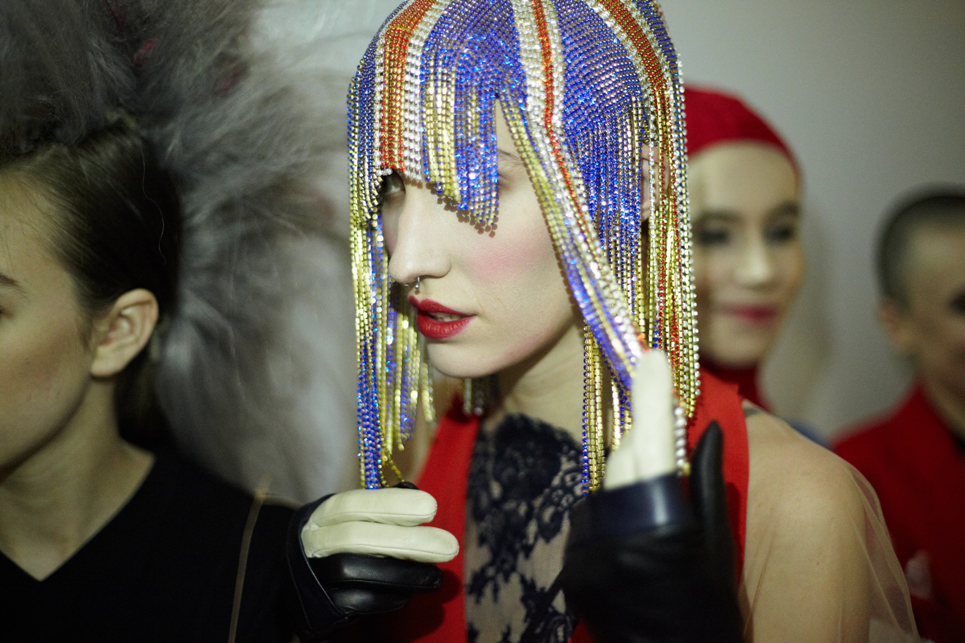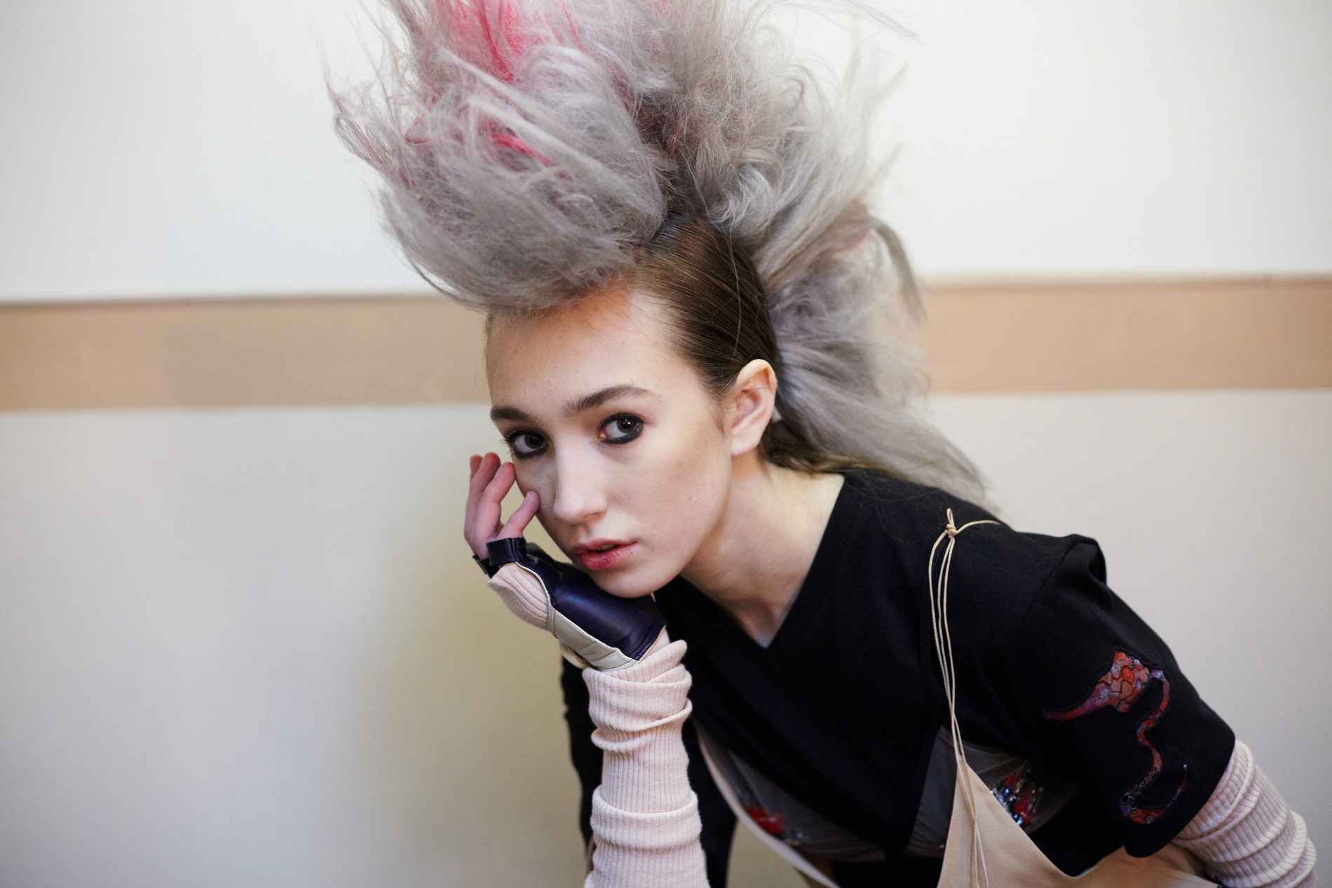 Все свои референсы Фролов пропускает через оптическое стекло своей эстетики, интеллектуальной провокации – вот и панки, субкультура, в общем-то, не самая чувственная, в его прочтении стали тонкими и сексуальными благодаря полупрозрачным текстурам, деталям вроде кружевных поясов для чулок, объемным курткам на обнаженное тело, корсетам и платьям-комбинациям. Битва двух исторических эпох, викторианства и панка, происходила не только в поле одежды, но и бьюти: модели появлялись то с грандиозными ирокезами работы Юлии Стець, то с высокими припудренными париками и выбеленными лицами. Все происходящее завершал аккомпанемент пианиста Олега Безбородько и сопрано Инны Галатенко, которые исполняли произведения Валентина Сильвестрова. И все же шоу и его зрелищность не смогли отвлечь от одежды: в этом сезоне она носибельна, разнообразна и отражает состояние современной моды, где происходит сумасшедшее броуновское движение, – впрочем, как раз это и интересно.