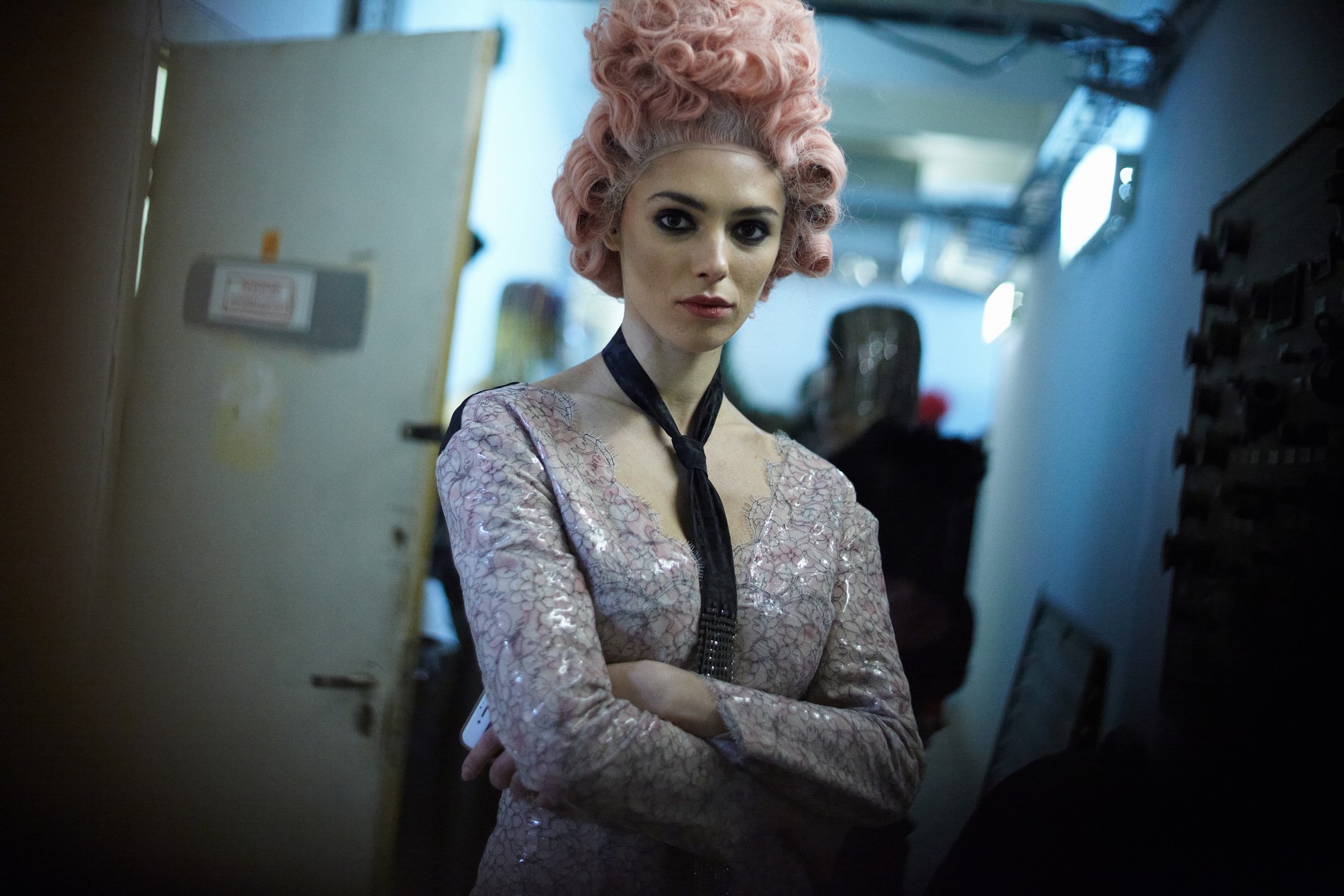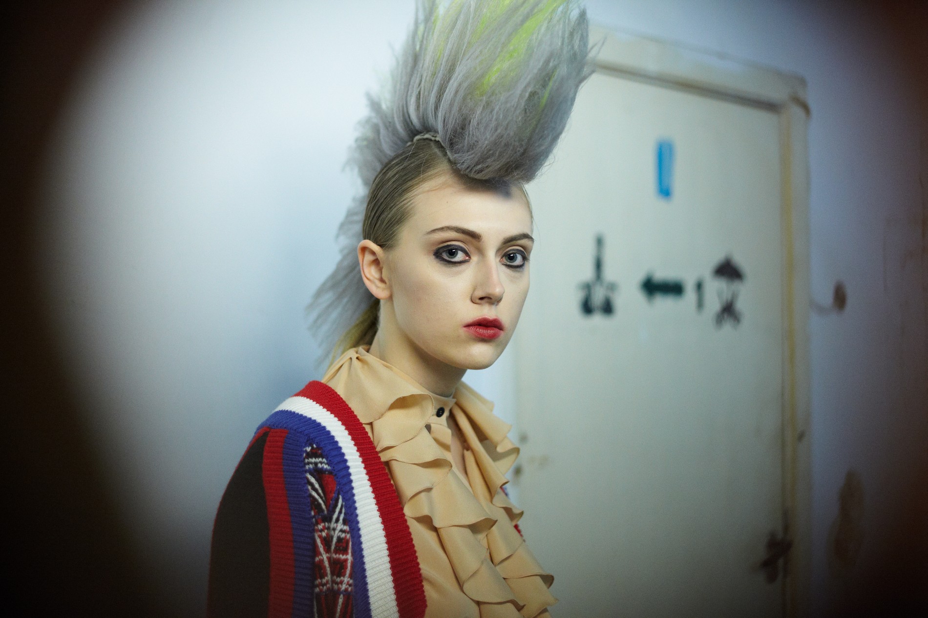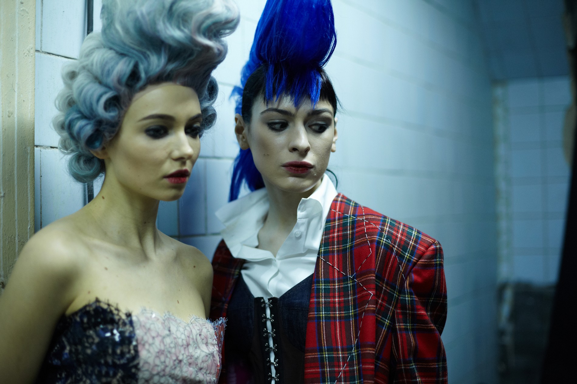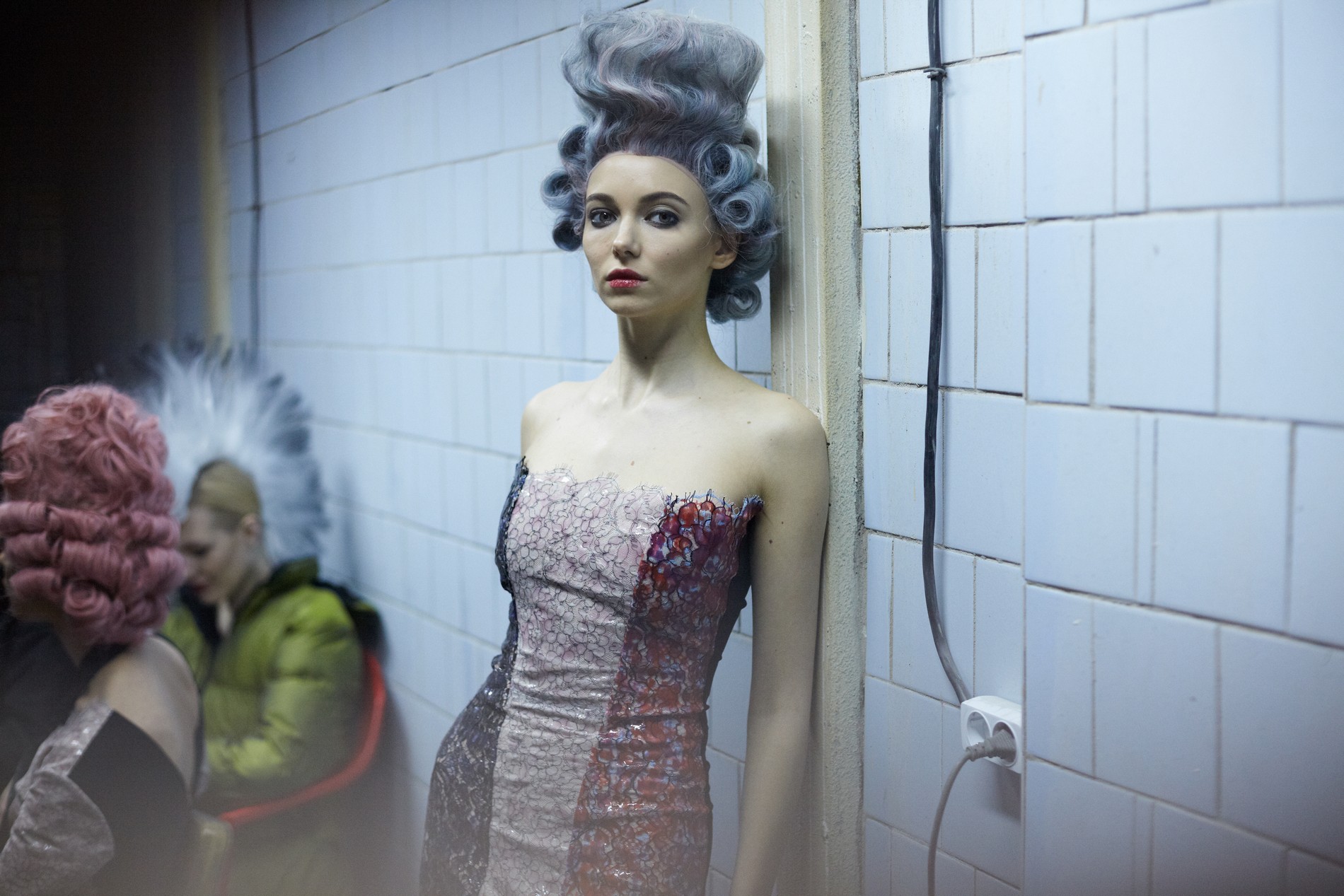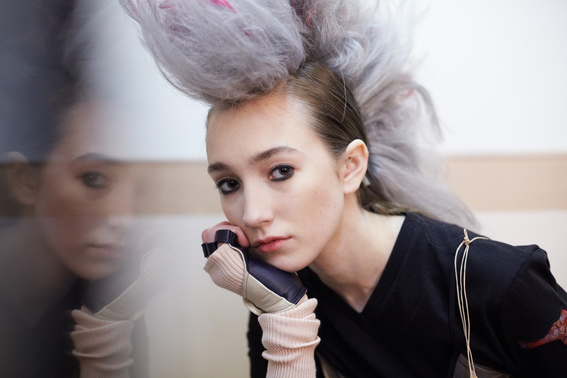 Все свои референсы Фролов пропускает через оптическое стекло своей эстетики, интеллектуальной провокации – вот и панки, субкультура, в общем-то, не самая чувственная, в его прочтении стали тонкими и сексуальными благодаря полупрозрачным текстурам, деталям вроде кружевных поясов для чулок, объемным курткам на обнаженное тело, корсетам и платьям-комбинациям. Битва двух исторических эпох, викторианства и панка, происходила не только в поле одежды, но и бьюти: модели появлялись то с грандиозными ирокезами работы Юлии Стець, то с высокими припудренными париками и выбеленными лицами. Все происходящее завершал аккомпанемент пианиста Олега Безбородько и сопрано Инны Галатенко, которые исполняли произведения Валентина Сильвестрова. И все же шоу и его зрелищность не смогли отвлечь от одежды: в этом сезоне она носибельна, разнообразна и отражает состояние современной моды, где происходит сумасшедшее броуновское движение, – впрочем, как раз это и интересно.