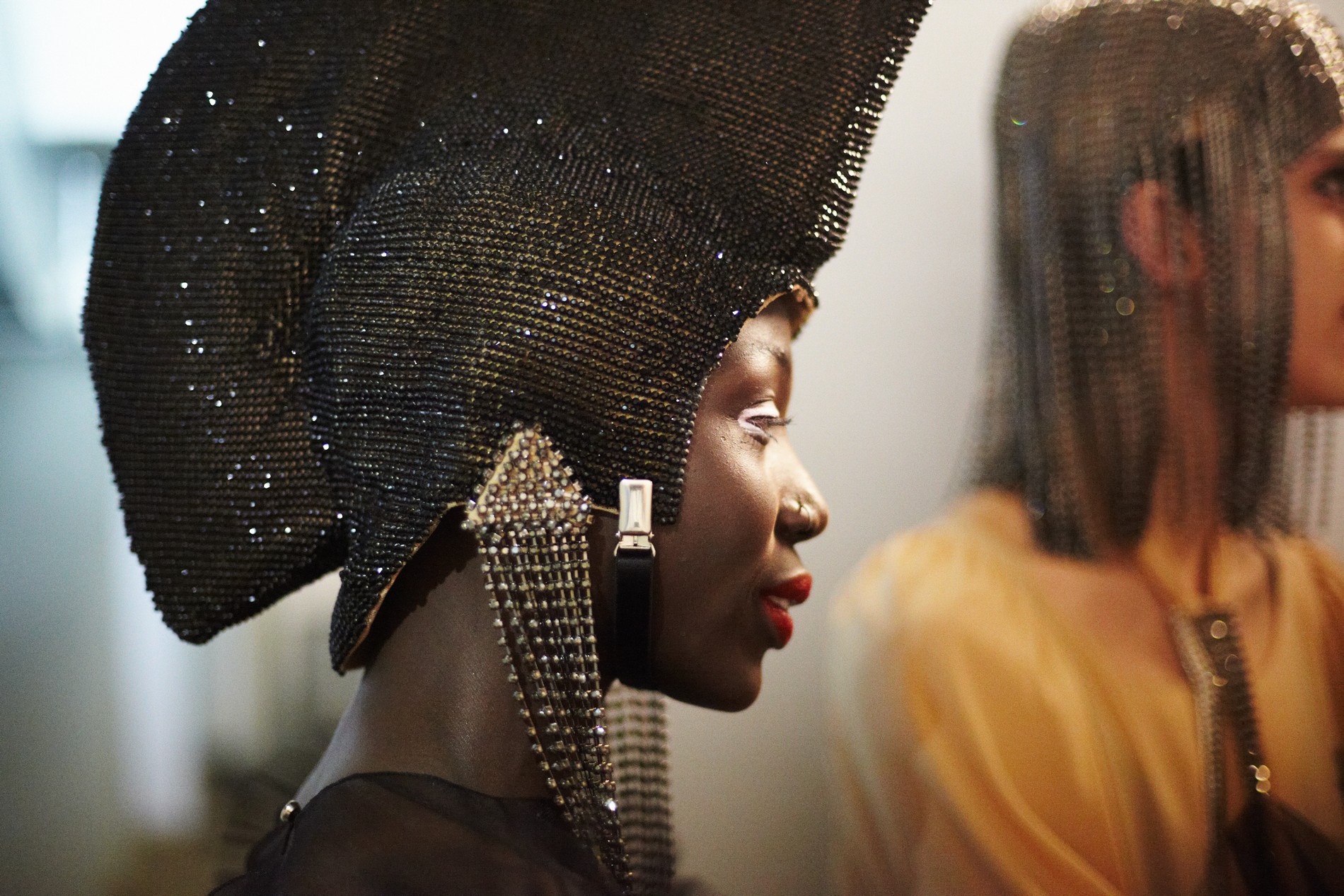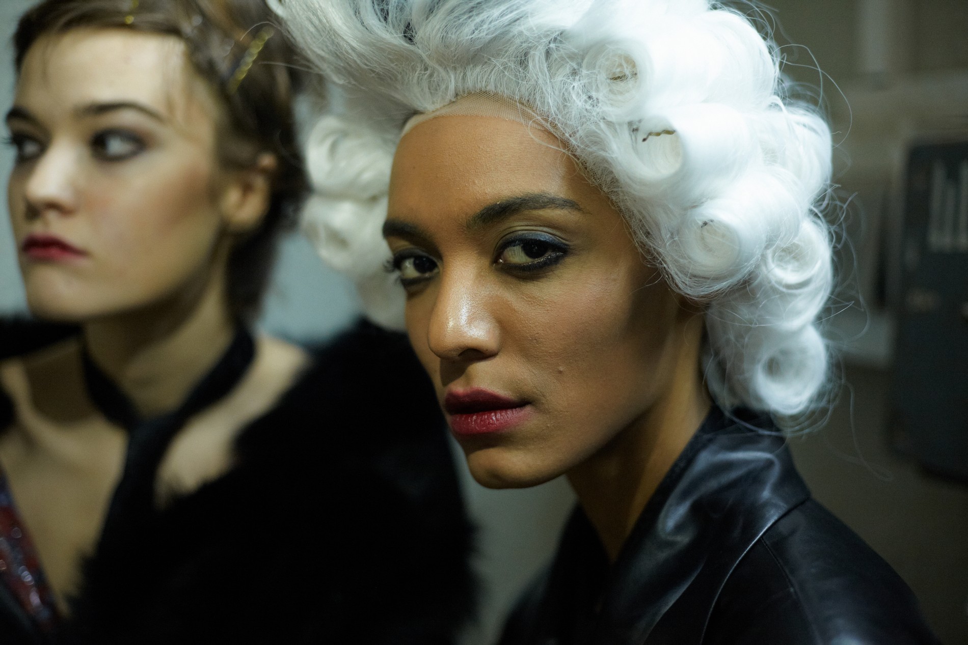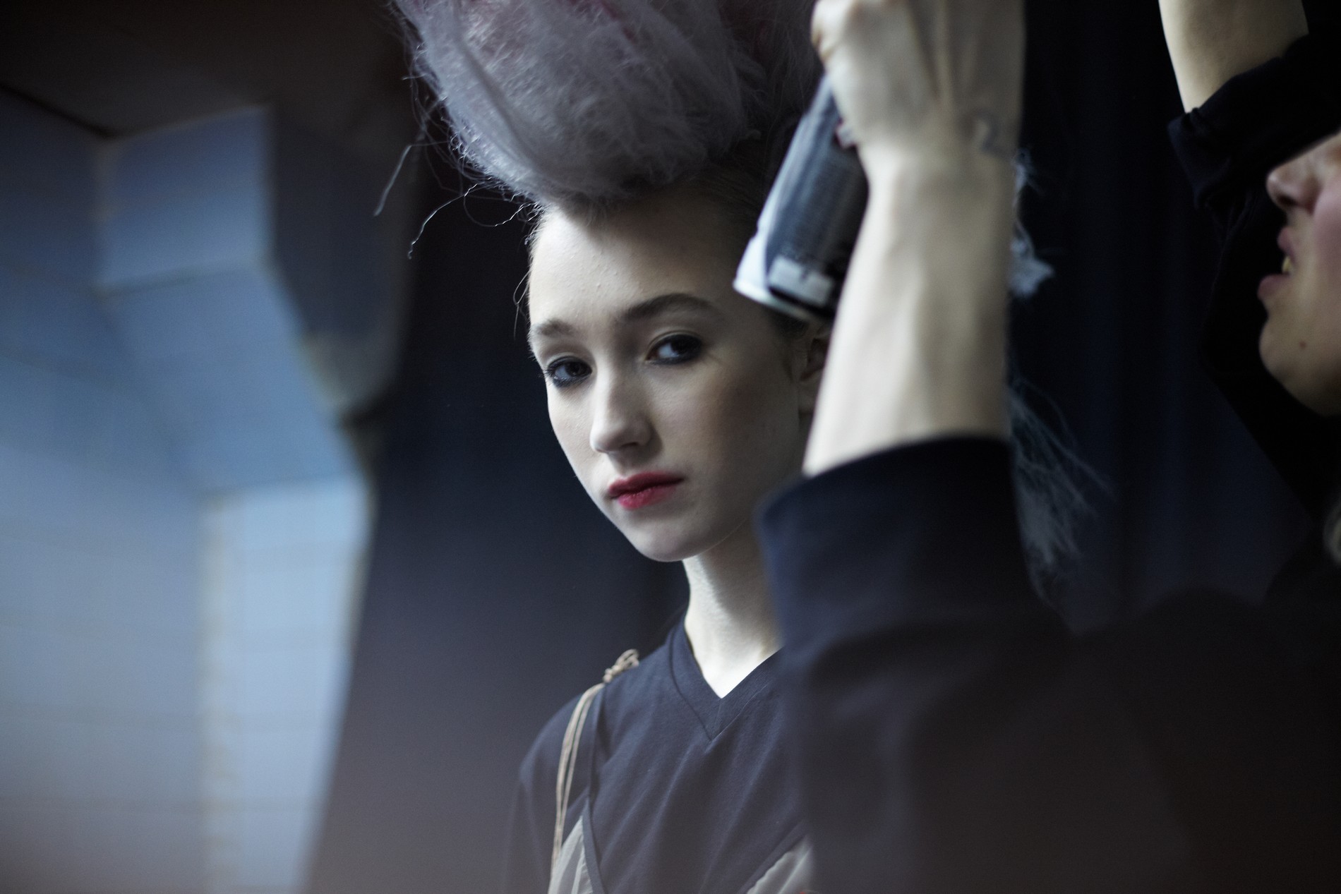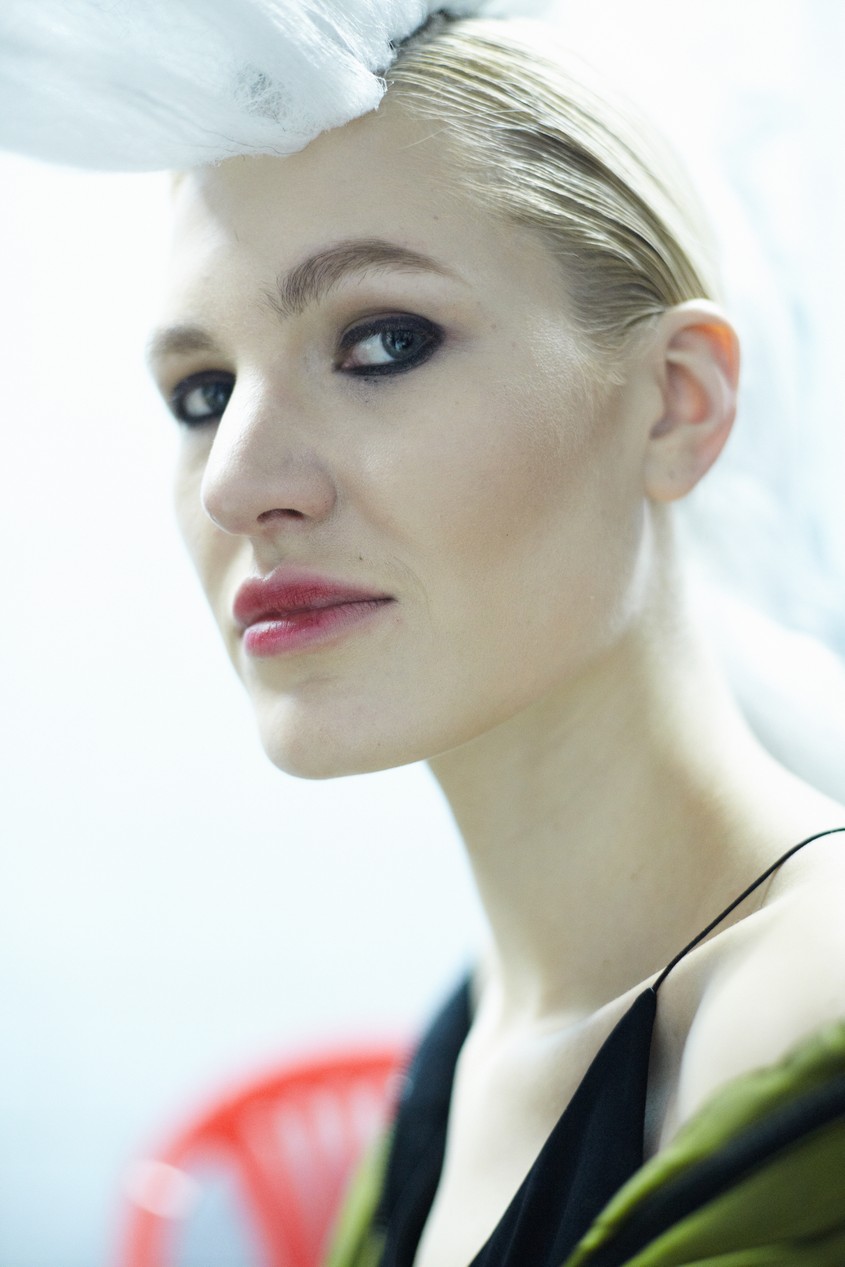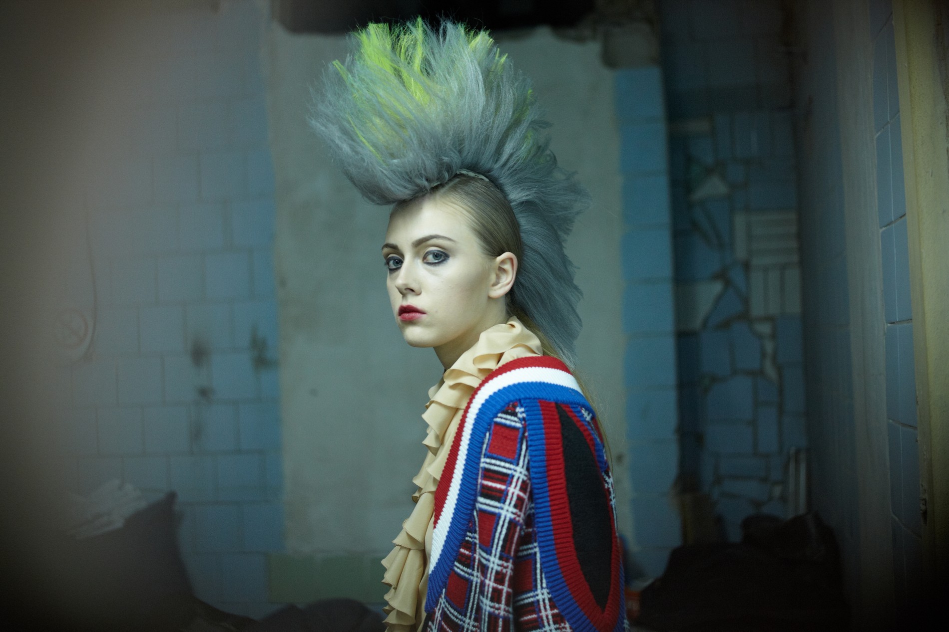 Все свои референсы Фролов пропускает через оптическое стекло своей эстетики, интеллектуальной провокации – вот и панки, субкультура, в общем-то, не самая чувственная, в его прочтении стали тонкими и сексуальными благодаря полупрозрачным текстурам, деталям вроде кружевных поясов для чулок, объемным курткам на обнаженное тело, корсетам и платьям-комбинациям. Битва двух исторических эпох, викторианства и панка, происходила не только в поле одежды, но и бьюти: модели появлялись то с грандиозными ирокезами работы Юлии Стець, то с высокими припудренными париками и выбеленными лицами. Все происходящее завершал аккомпанемент пианиста Олега Безбородько и сопрано Инны Галатенко, которые исполняли произведения Валентина Сильвестрова. И все же шоу и его зрелищность не смогли отвлечь от одежды: в этом сезоне она носибельна, разнообразна и отражает состояние современной моды, где происходит сумасшедшее броуновское движение, – впрочем, как раз это и интересно.