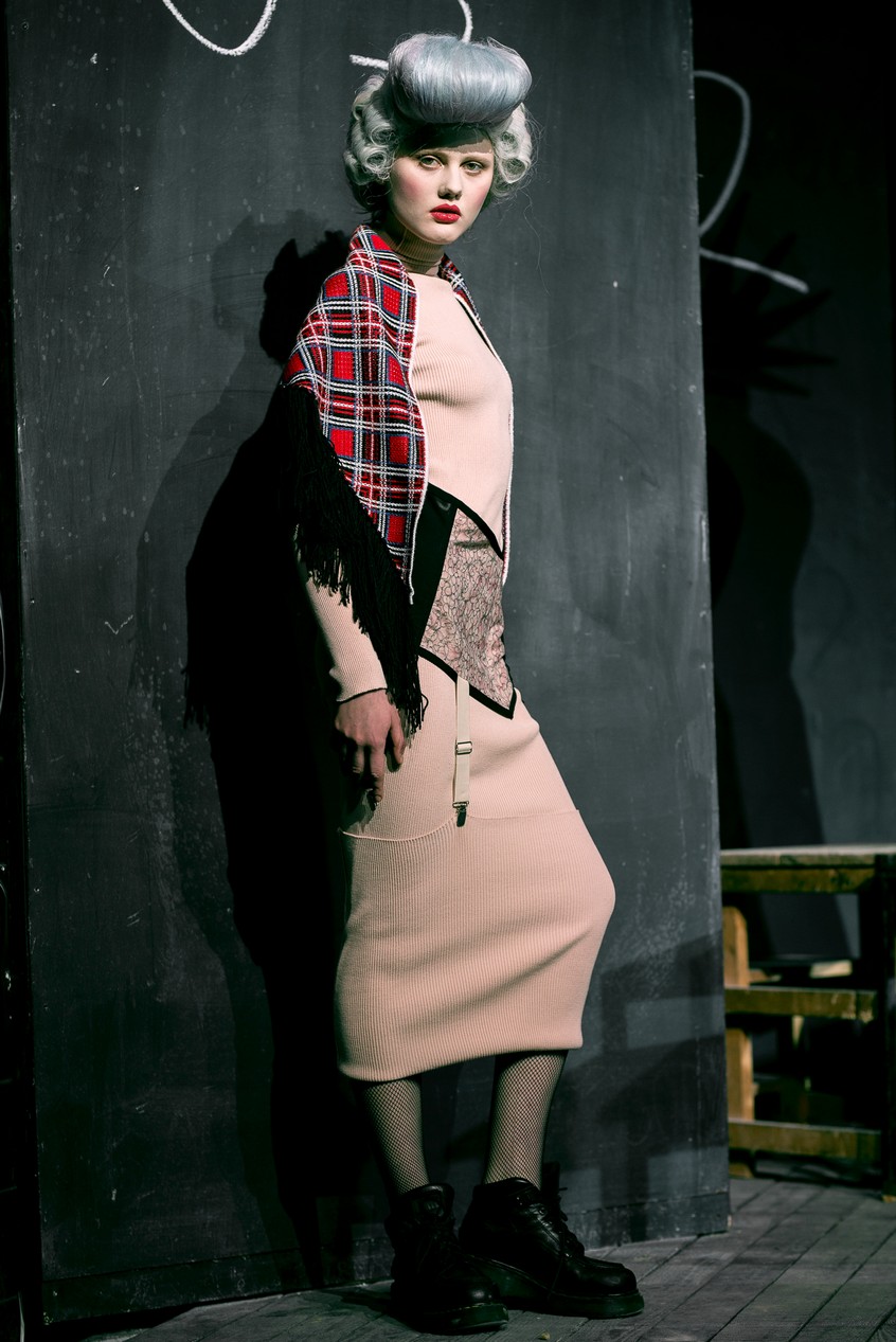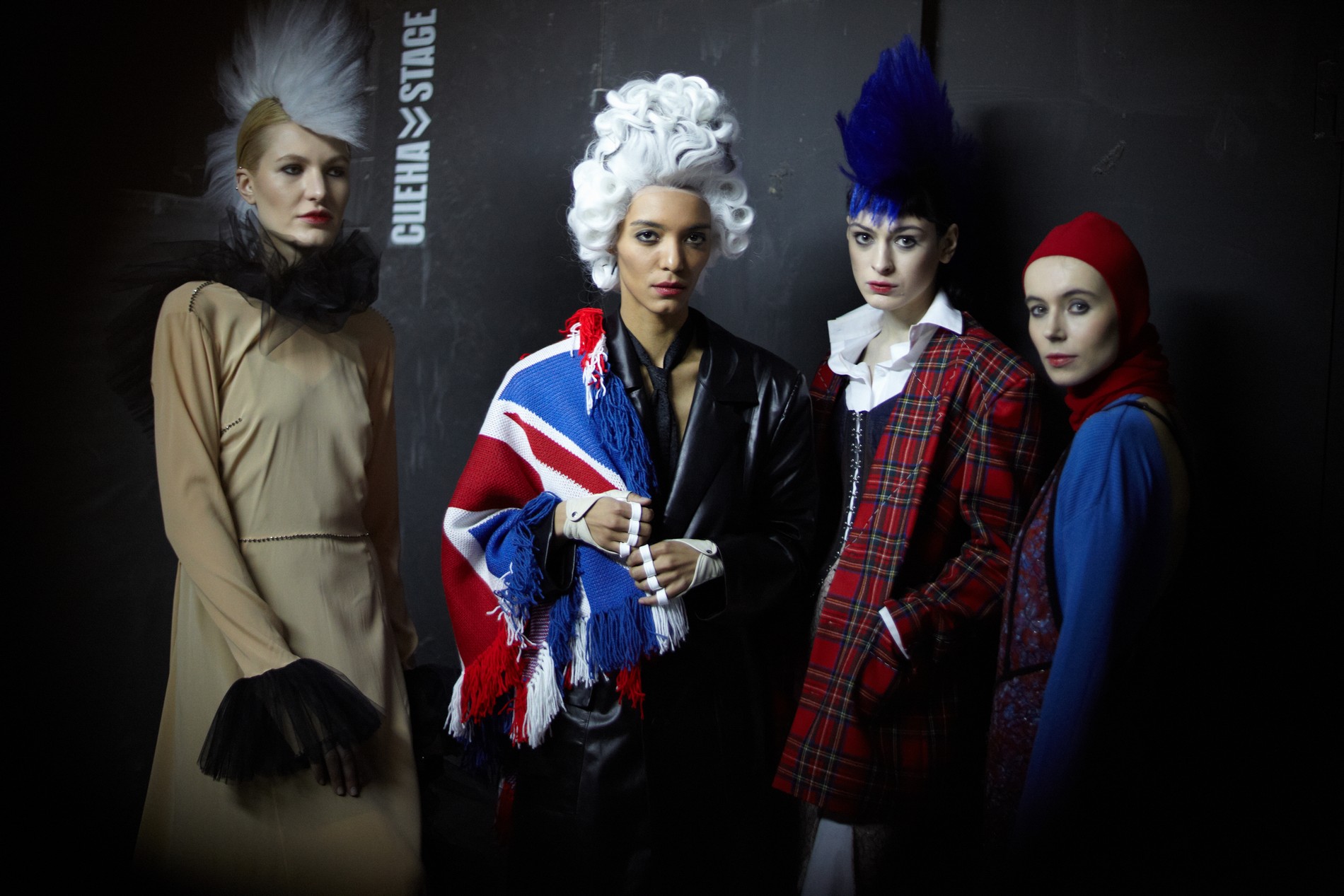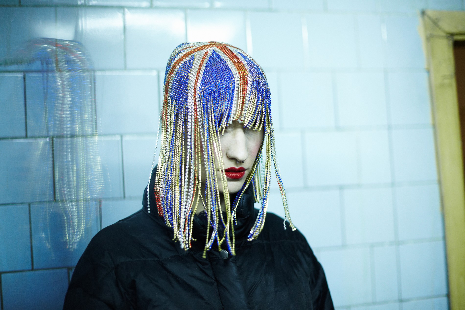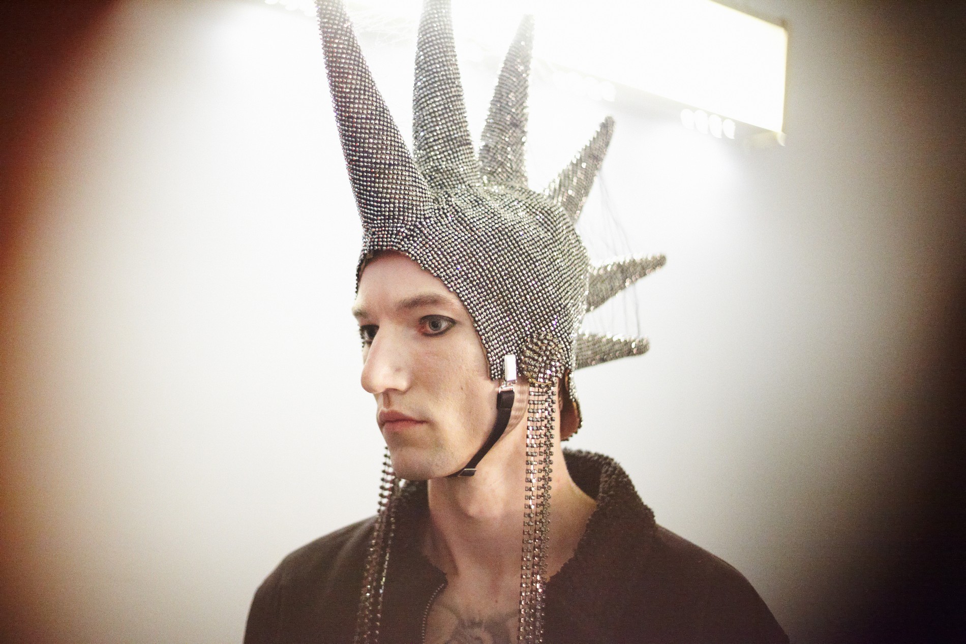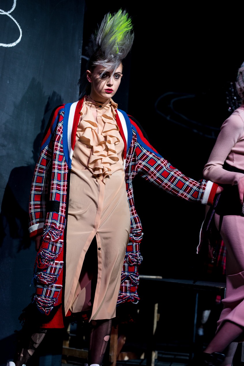 Идеи дизайнера Ивана Фролова всегда подкупают своей многоуровневостью и сложностью. Судите сами: взяв за основу коллекции британский панк, Иван развивает тему свободомыслия и свободного духа, возвращается в викторианскую эпоху с ее порой легкомысленными нравами и добавляет и эту историю в общий котел референсов. Дальше мысль дизайнера движется в сторону интрижек горничных из этой исторической эпохи: он представляет себе их ночные побеги и скоропалительные романы в садовых лабиринтах и вдохновляется и самой концепцией лабиринта с его бесконечными запутанными ходами. Это отправляет Фролова в Древнюю Грецию, где лабиринты были и архитектурными формами, и деталью росписей, и важной частью мифотворчества, – и там дизайнер обнаруживает театр. Именно поэтому шоу прошло на Сцене 6 в центре Довженко – это оплот современного панковского театра, что завершает этот цикл референсов. Простите за долгое предисловие, но такой полет мысли и правда впечатляет.
