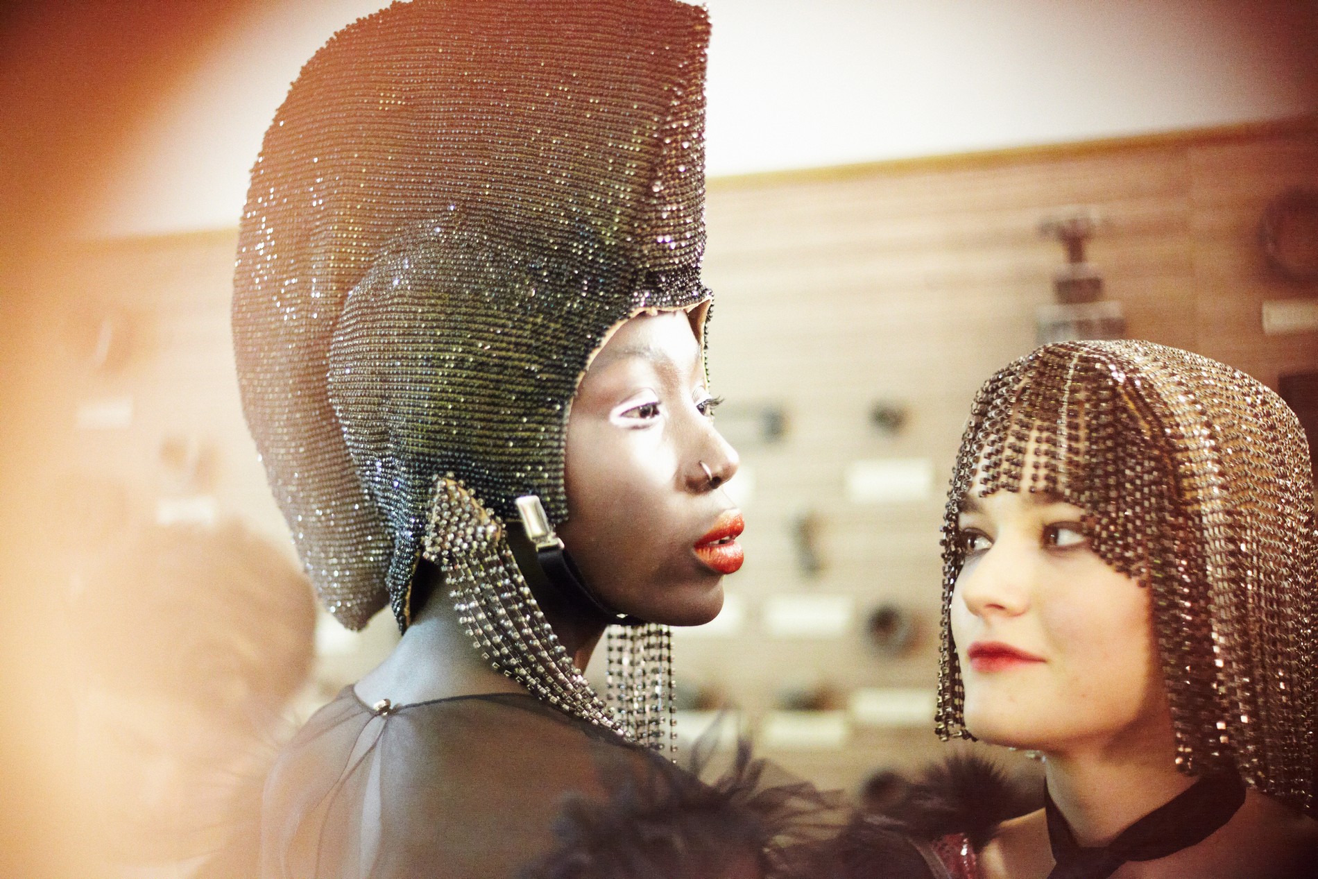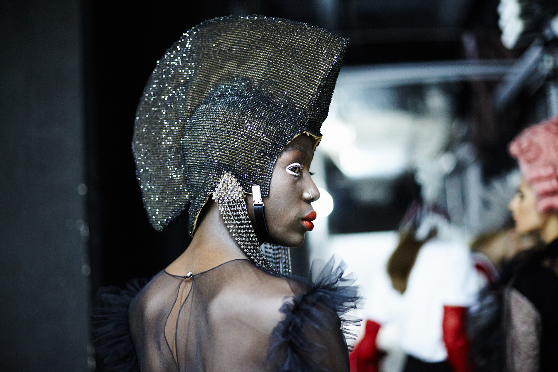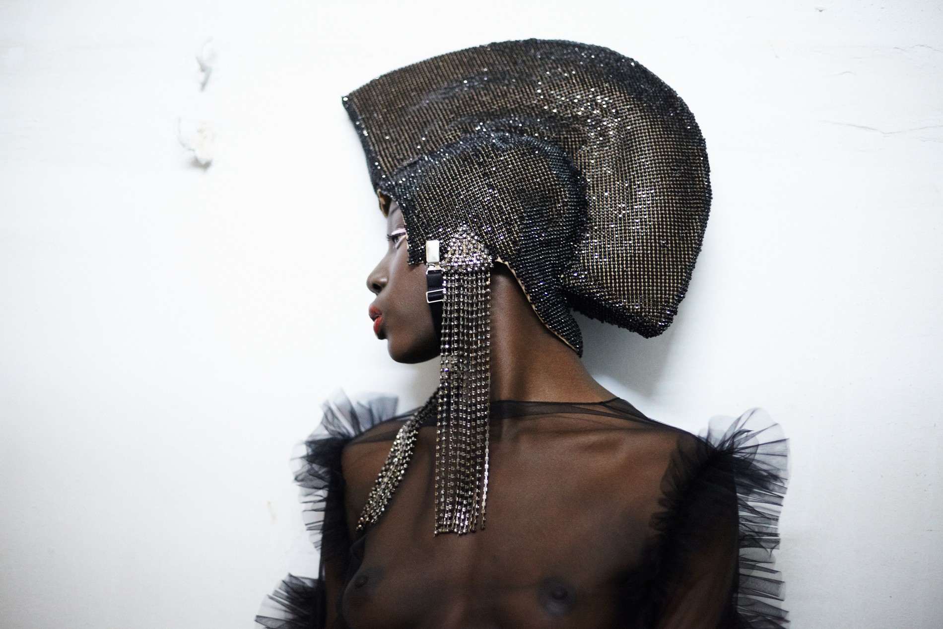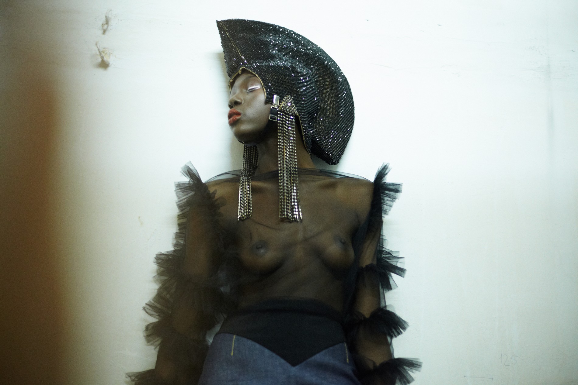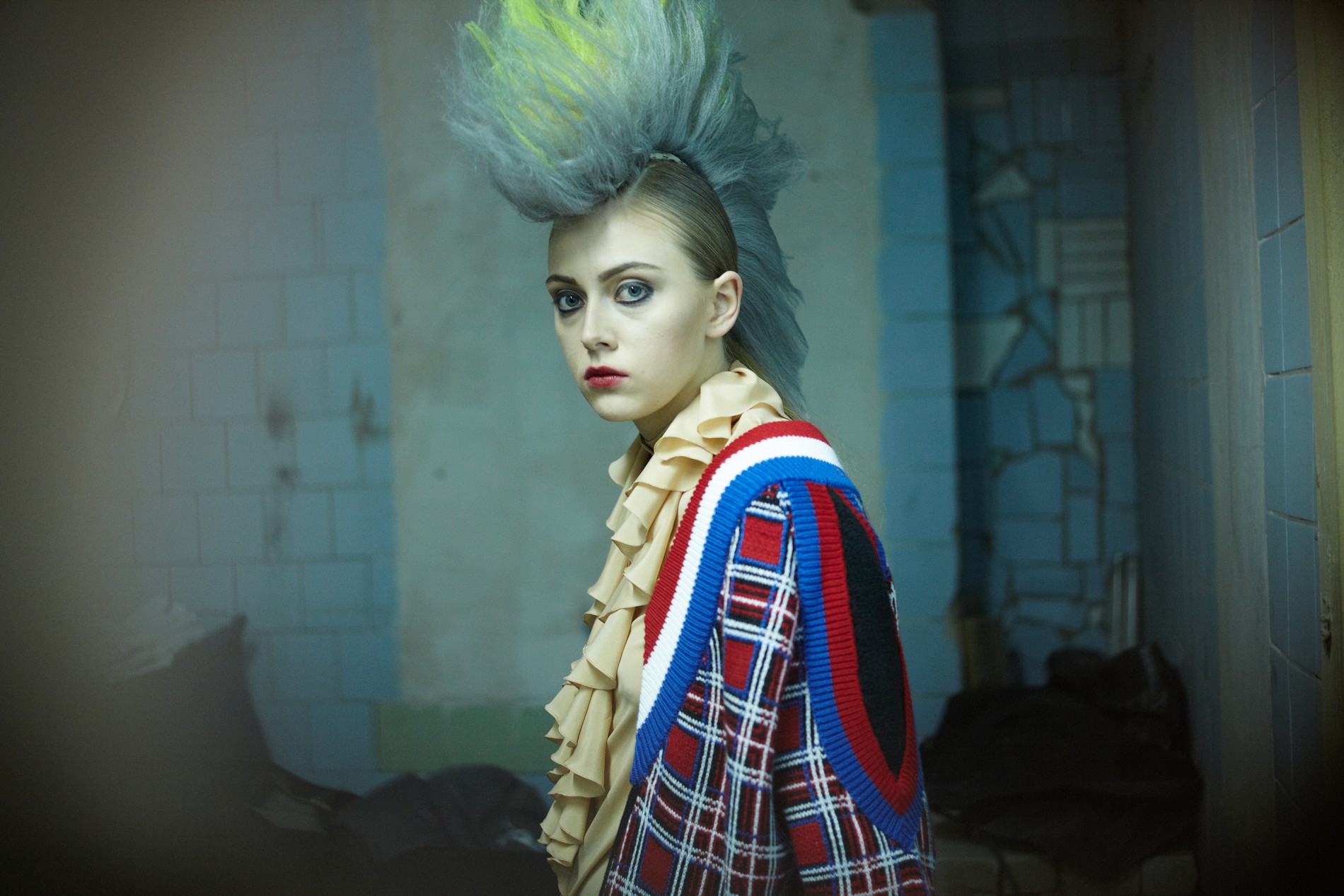 Идеи дизайнера Ивана Фролова всегда подкупают своей многоуровневостью и сложностью. Судите сами: взяв за основу коллекции британский панк, Иван развивает тему свободомыслия и свободного духа, возвращается в викторианскую эпоху с ее порой легкомысленными нравами и добавляет и эту историю в общий котел референсов. Дальше мысль дизайнера движется в сторону интрижек горничных из этой исторической эпохи: он представляет себе их ночные побеги и скоропалительные романы в садовых лабиринтах и вдохновляется и самой концепцией лабиринта с его бесконечными запутанными ходами. Это отправляет Фролова в Древнюю Грецию, где лабиринты были и архитектурными формами, и деталью росписей, и важной частью мифотворчества, – и там дизайнер обнаруживает театр. Именно поэтому шоу прошло на Сцене 6 в центре Довженко – это оплот современного панковского театра, что завершает этот цикл референсов. Простите за долгое предисловие, но такой полет мысли и правда впечатляет.