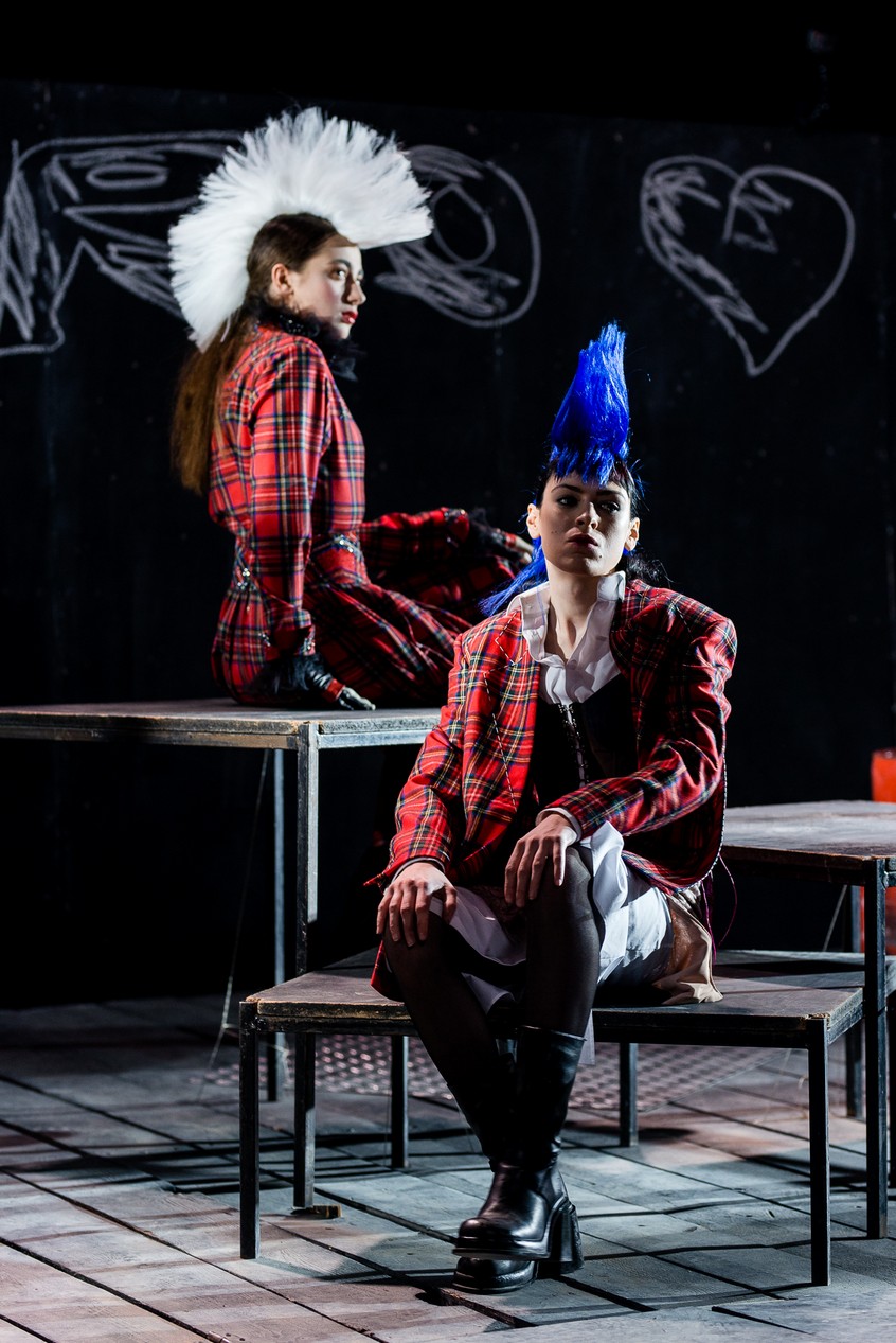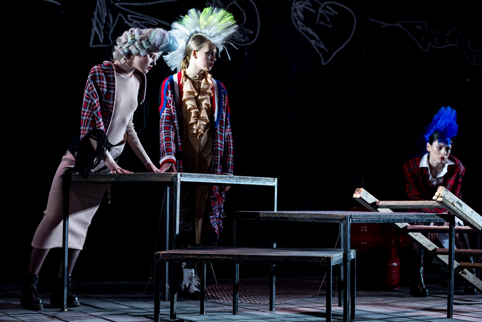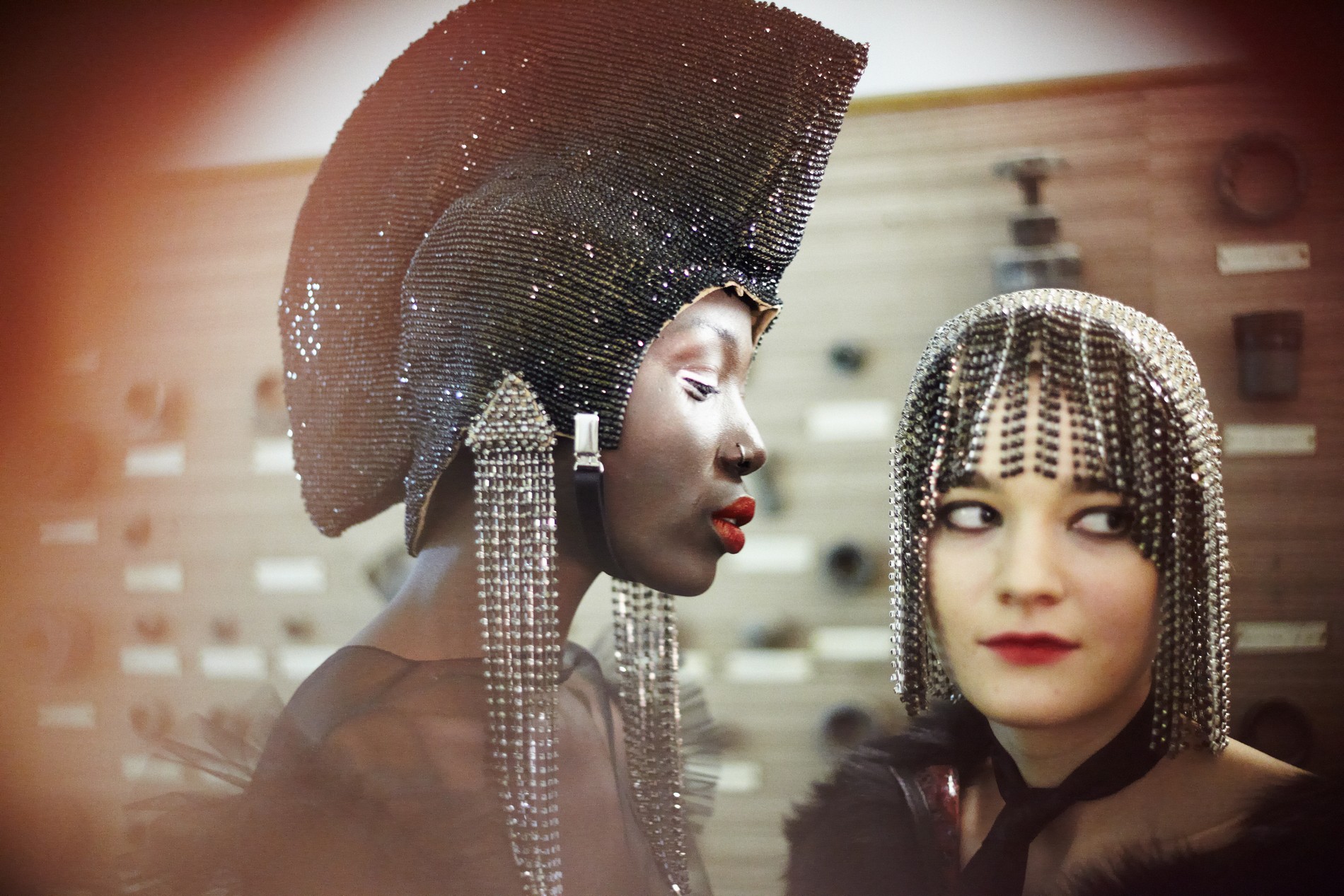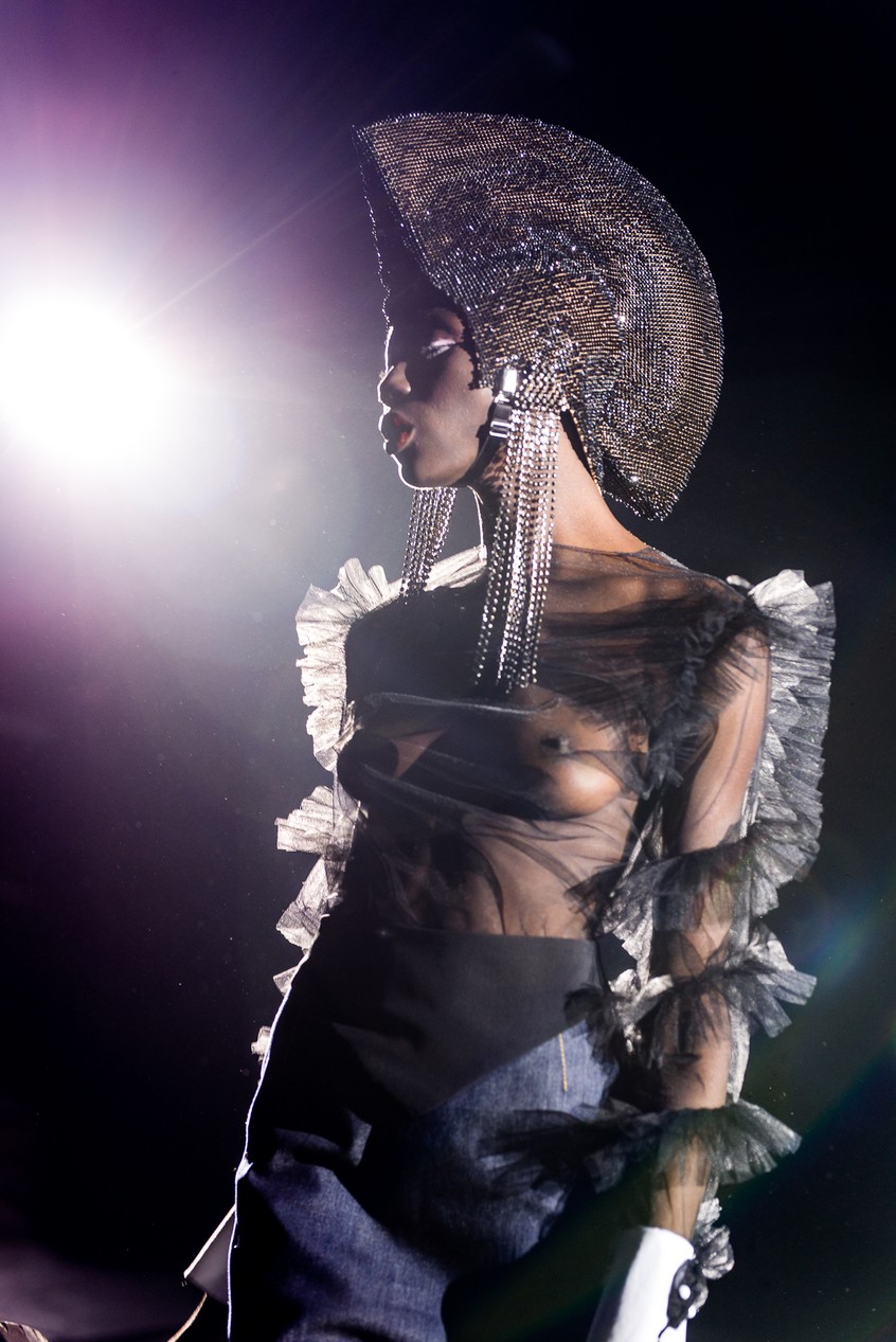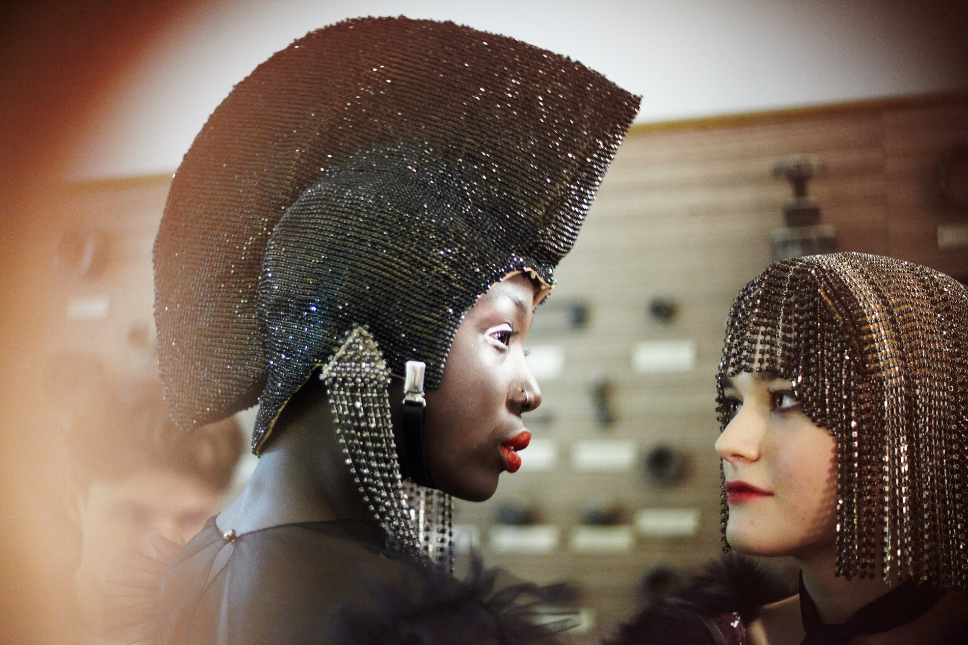 Идеи дизайнера Ивана Фролова всегда подкупают своей многоуровневостью и сложностью. Судите сами: взяв за основу коллекции британский панк, Иван развивает тему свободомыслия и свободного духа, возвращается в викторианскую эпоху с ее порой легкомысленными нравами и добавляет и эту историю в общий котел референсов. Дальше мысль дизайнера движется в сторону интрижек горничных из этой исторической эпохи: он представляет себе их ночные побеги и скоропалительные романы в садовых лабиринтах и вдохновляется и самой концепцией лабиринта с его бесконечными запутанными ходами. Это отправляет Фролова в Древнюю Грецию, где лабиринты были и архитектурными формами, и деталью росписей, и важной частью мифотворчества, – и там дизайнер обнаруживает театр. Именно поэтому шоу прошло на Сцене 6 в центре Довженко – это оплот современного панковского театра, что завершает этот цикл референсов. Простите за долгое предисловие, но такой полет мысли и правда впечатляет.
