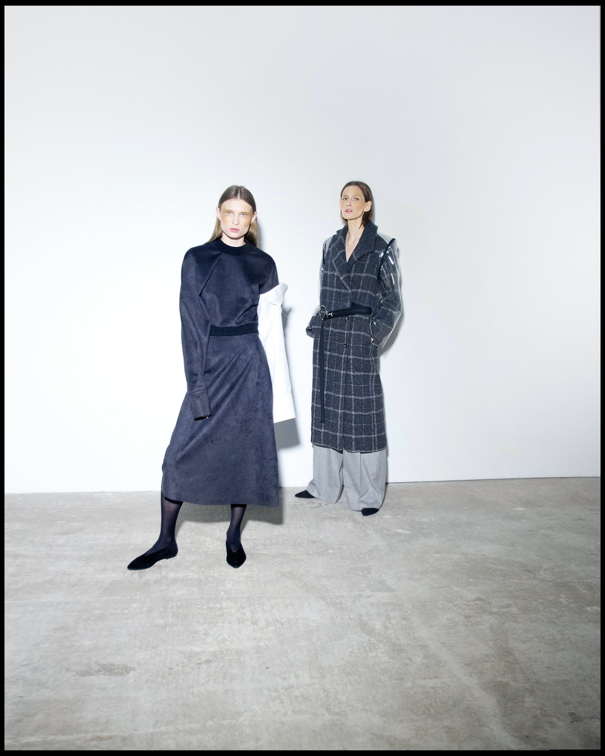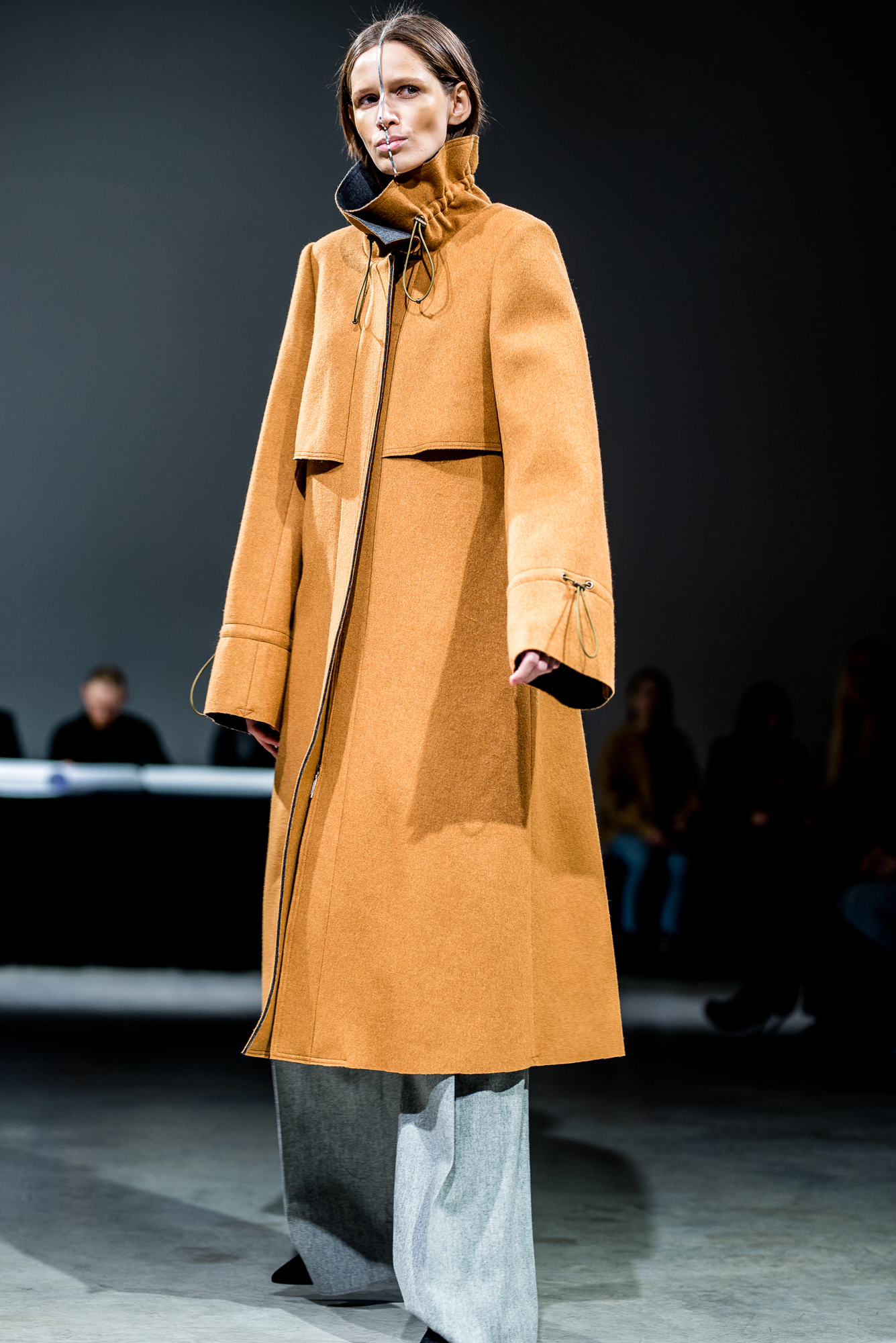 Коллекция – что делает ей особенную честь такой зимой, как эта, – даже на снимках выглядит теплой и уютной, что сразу же поднимает ее рейтинг в наших глазах. Пржонская добивается идеального баланса между футуризмом и ретро с помощью комбинирования силуэтов и фактур: первые отвечают за 40-е, вторые – за современность. Так и получились пальто винтажного кроя со вставками из пластика, например. А за сорочку с деталями из пластика мы и вовсе готовы побороться!