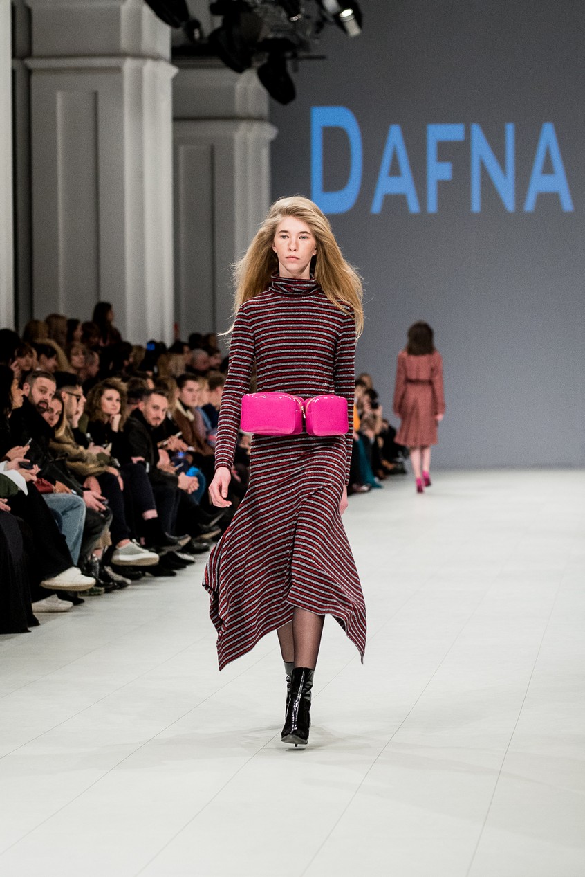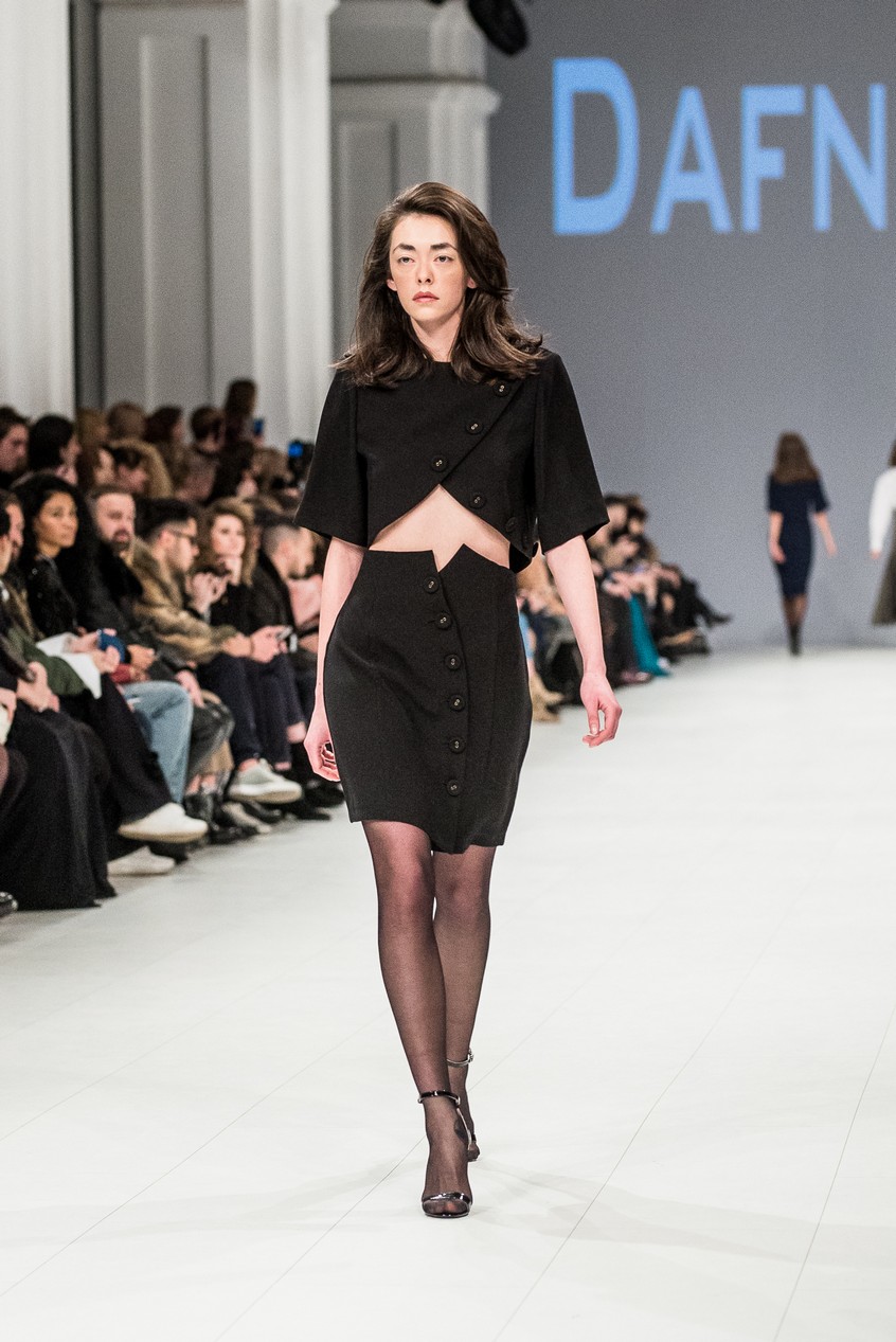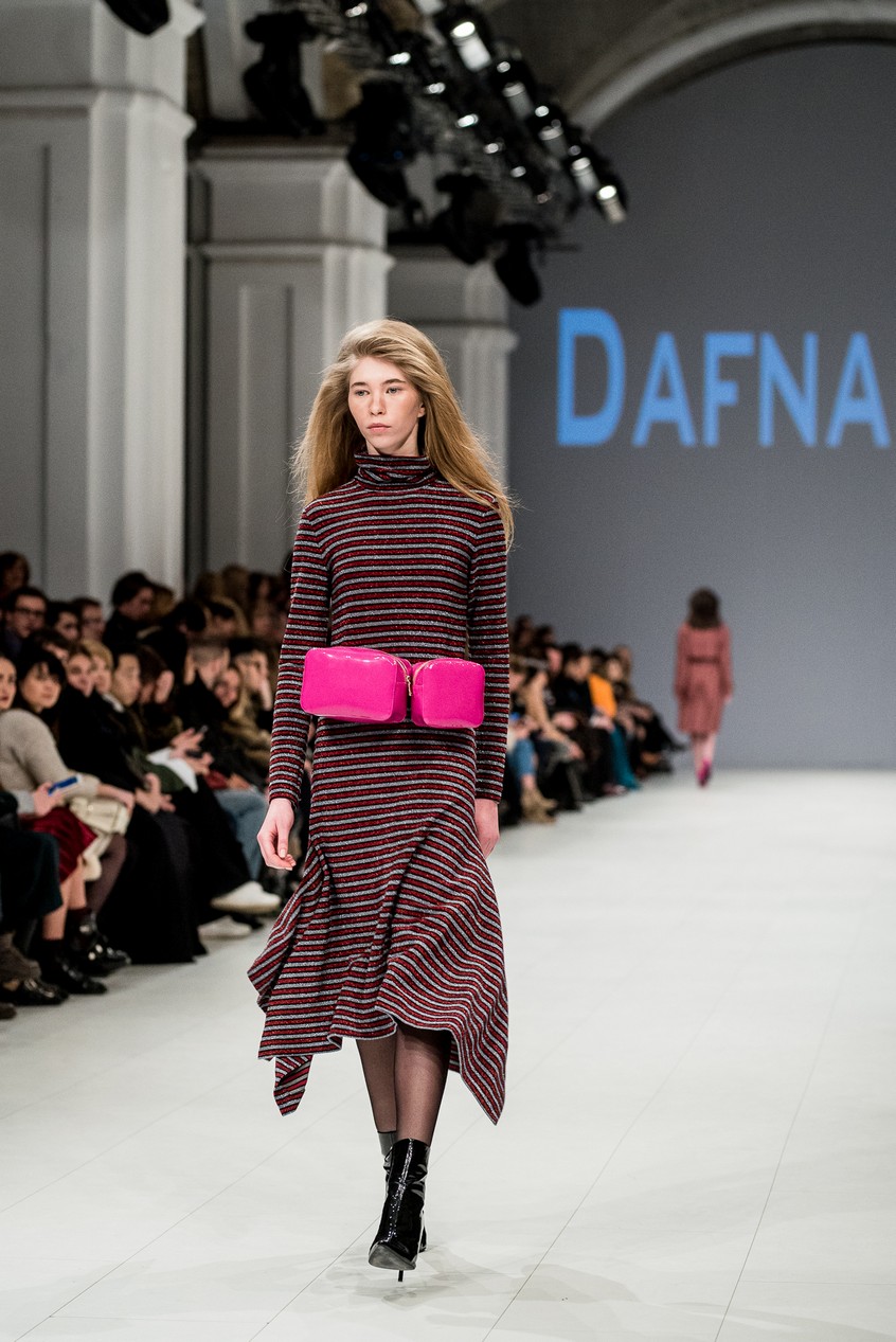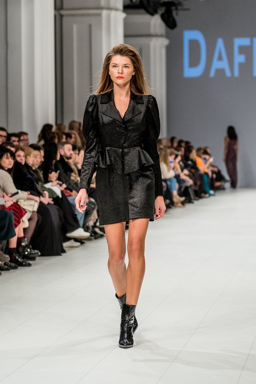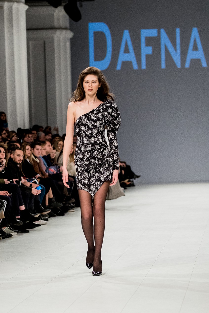 Дафна Майберг, дизайнер бренда Dafna May, устроила в Мыстецком Арсенале свою версию показа Versace: ее шоу завершилось триумфальным выходом украинских моделей Эллы Кандыбы, Эвелины Мамбетовой и Юлианы Дементьевой. Девушки появились на подиуме в футболках с остроумным принтом с черной икрой и в многослойных юбках, объединяя кутюрные и «масс-маркетовые» приемы.