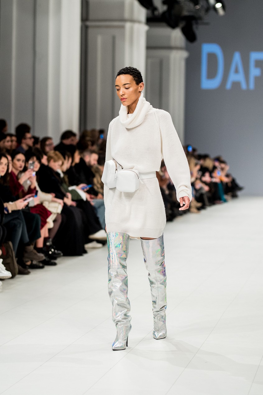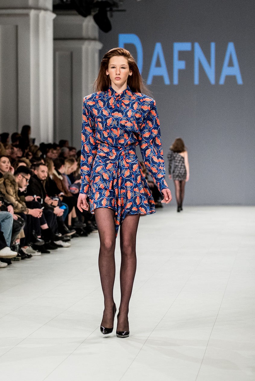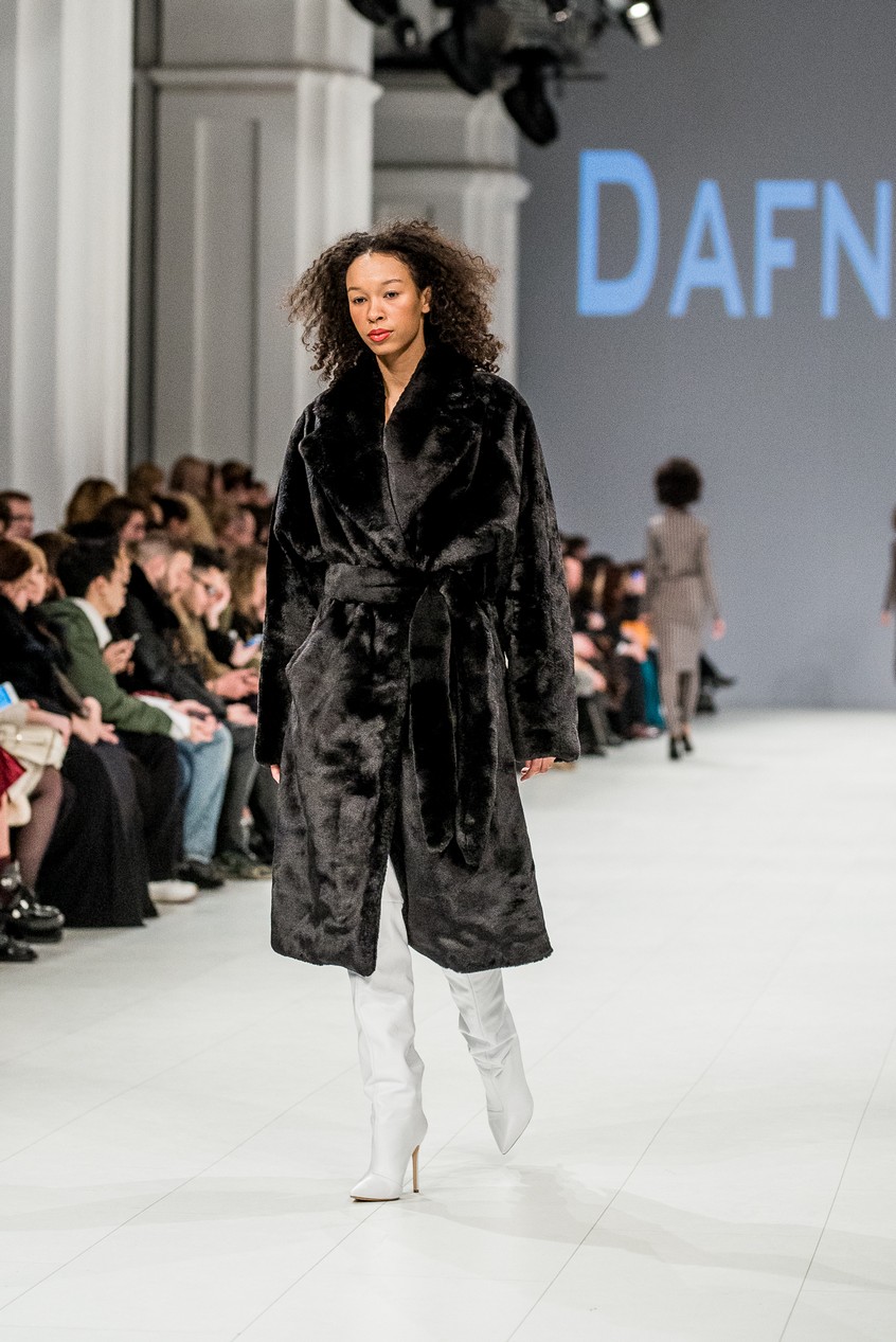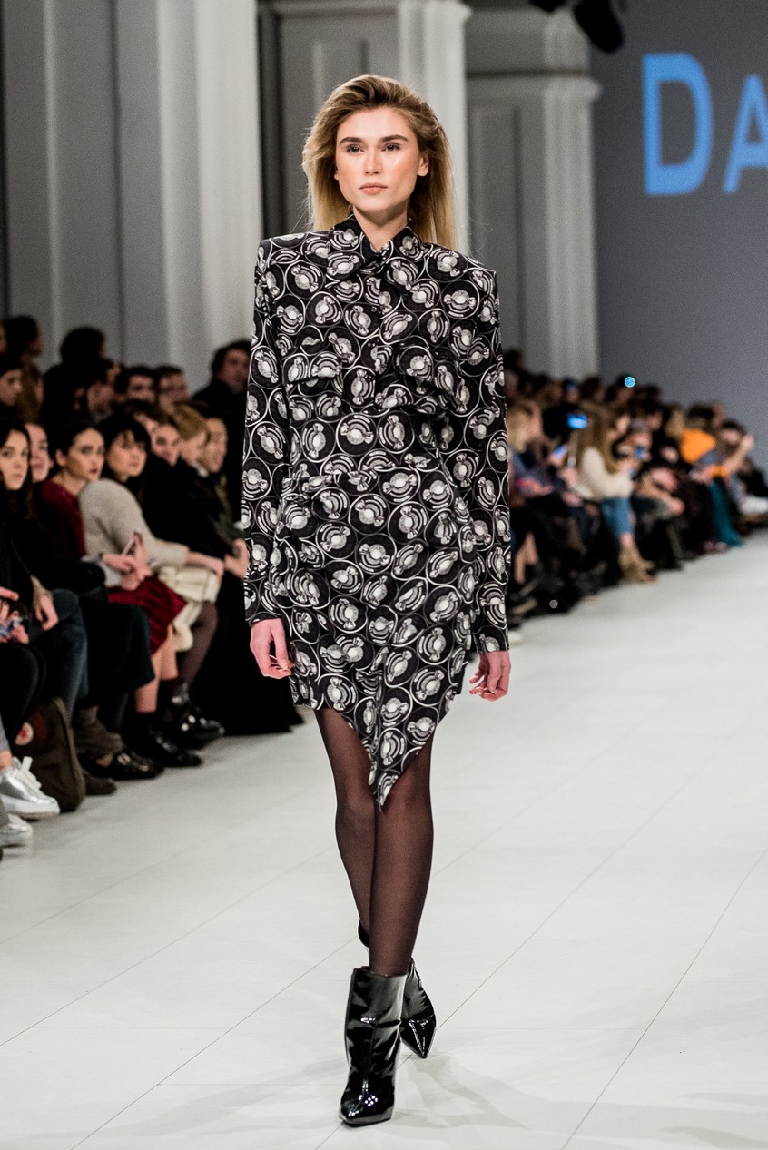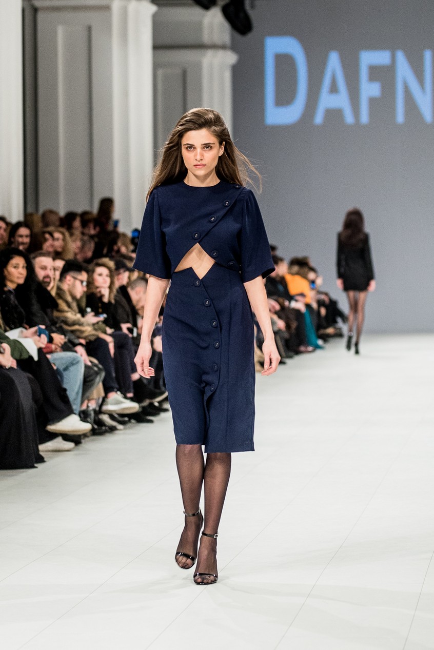 Дафна Майберг, дизайнер бренда Dafna May, устроила в Мыстецком Арсенале свою версию показа Versace: ее шоу завершилось триумфальным выходом украинских моделей Эллы Кандыбы, Эвелины Мамбетовой и Юлианы Дементьевой. Девушки появились на подиуме в футболках с остроумным принтом с черной икрой и в многослойных юбках, объединяя кутюрные и «масс-маркетовые» приемы.
