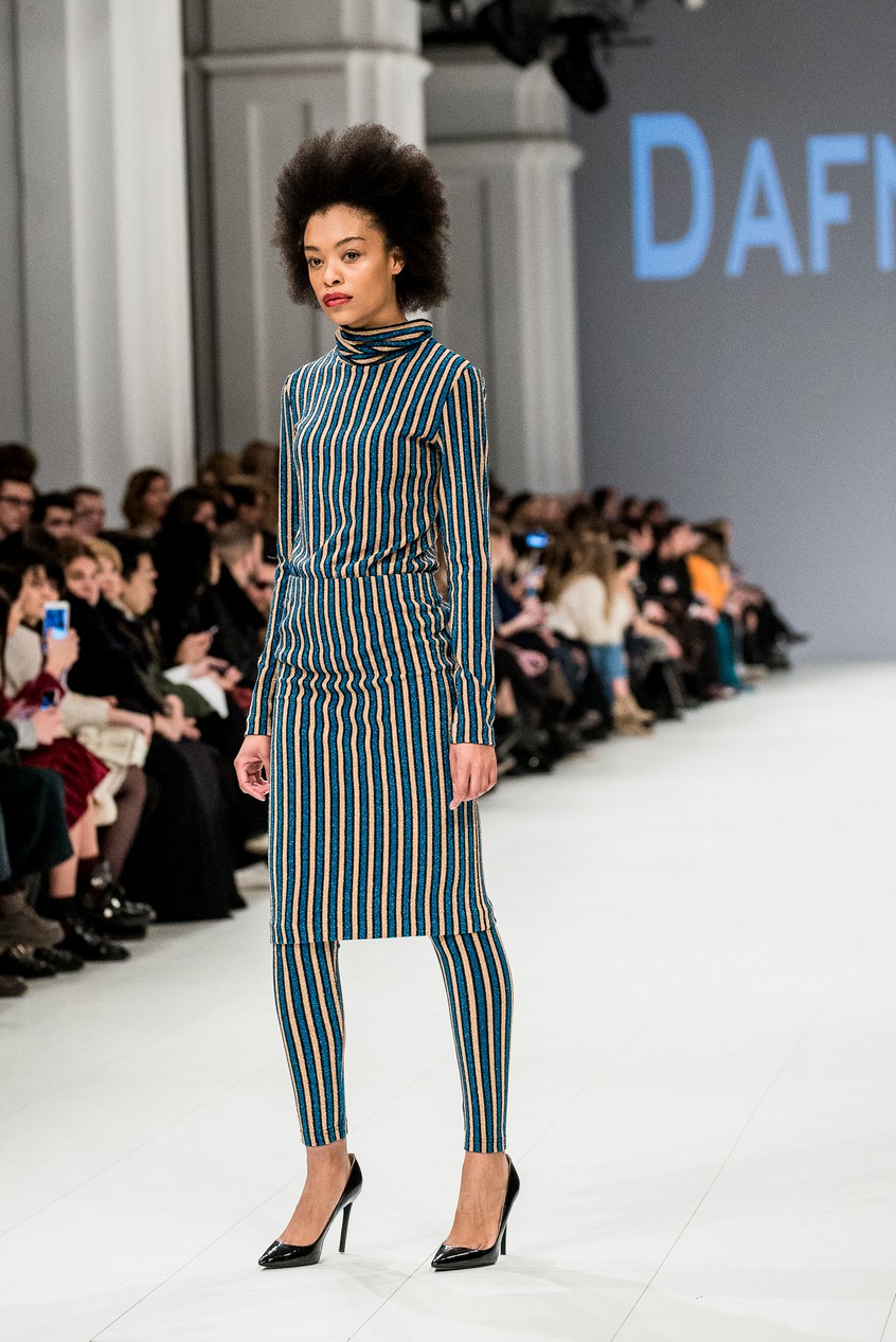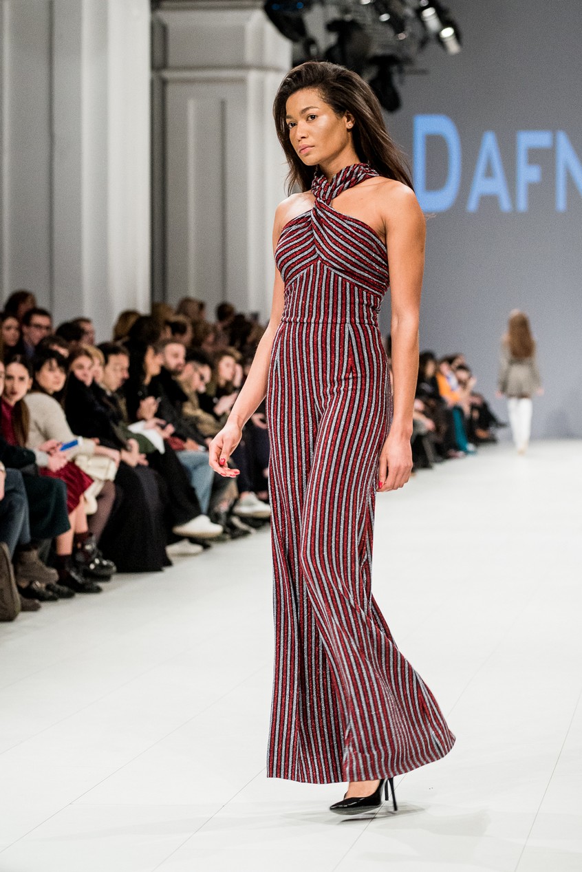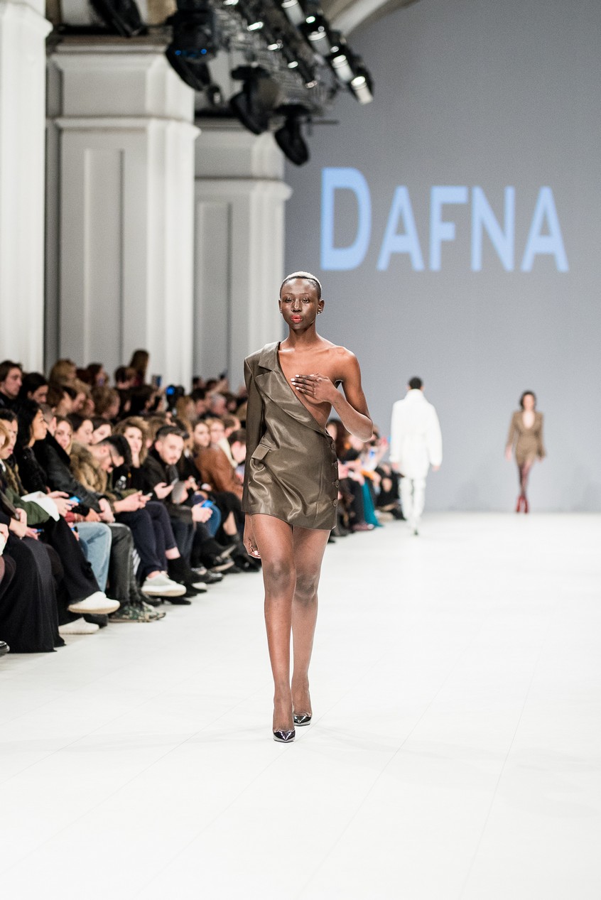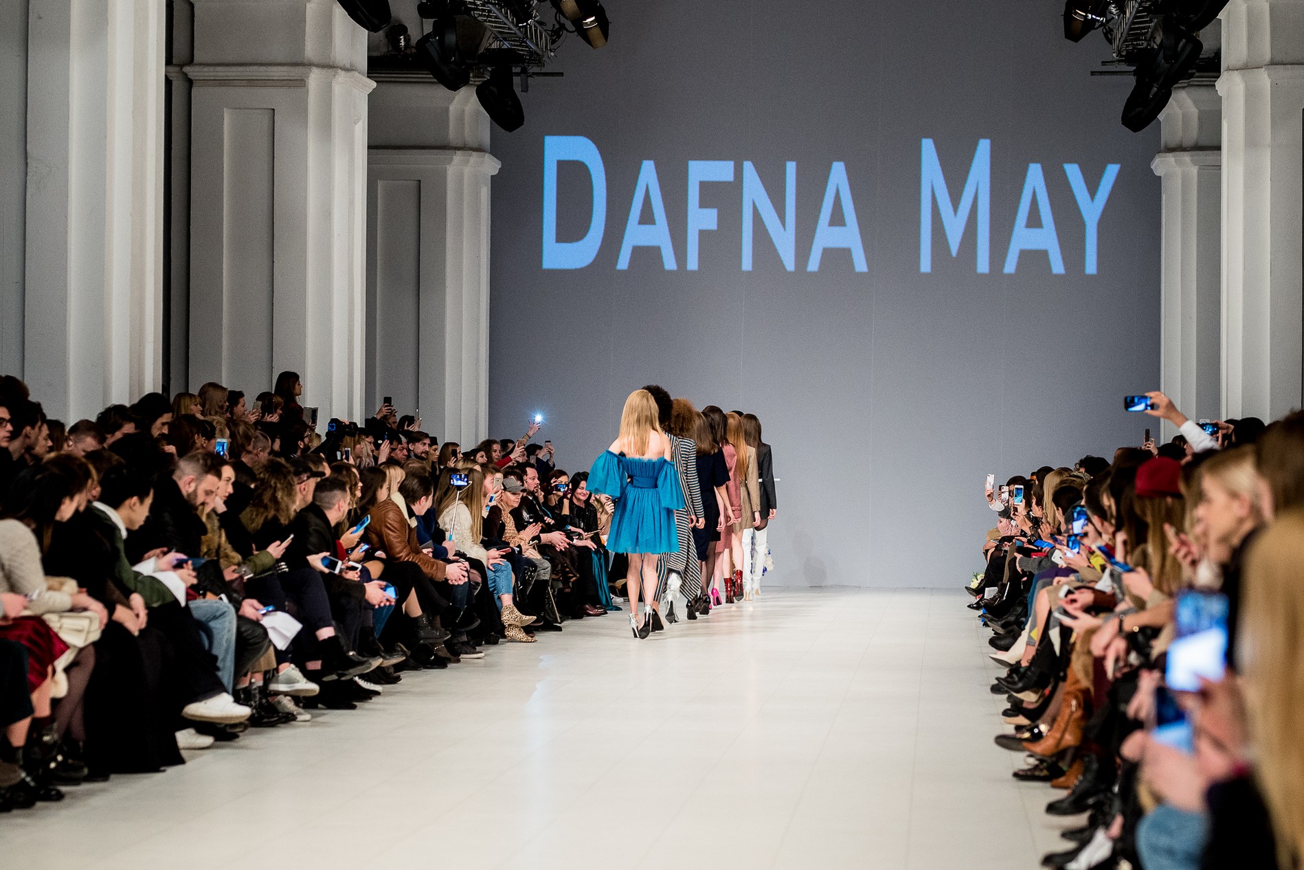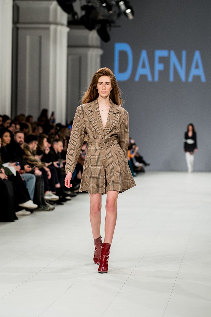 Дафна Майберг, дизайнер бренда Dafna May, устроила в Мыстецком Арсенале свою версию показа Versace: ее шоу завершилось триумфальным выходом украинских моделей Эллы Кандыбы, Эвелины Мамбетовой и Юлианы Дементьевой. Девушки появились на подиуме в футболках с остроумным принтом с черной икрой и в многослойных юбках, объединяя кутюрные и «масс-маркетовые» приемы.