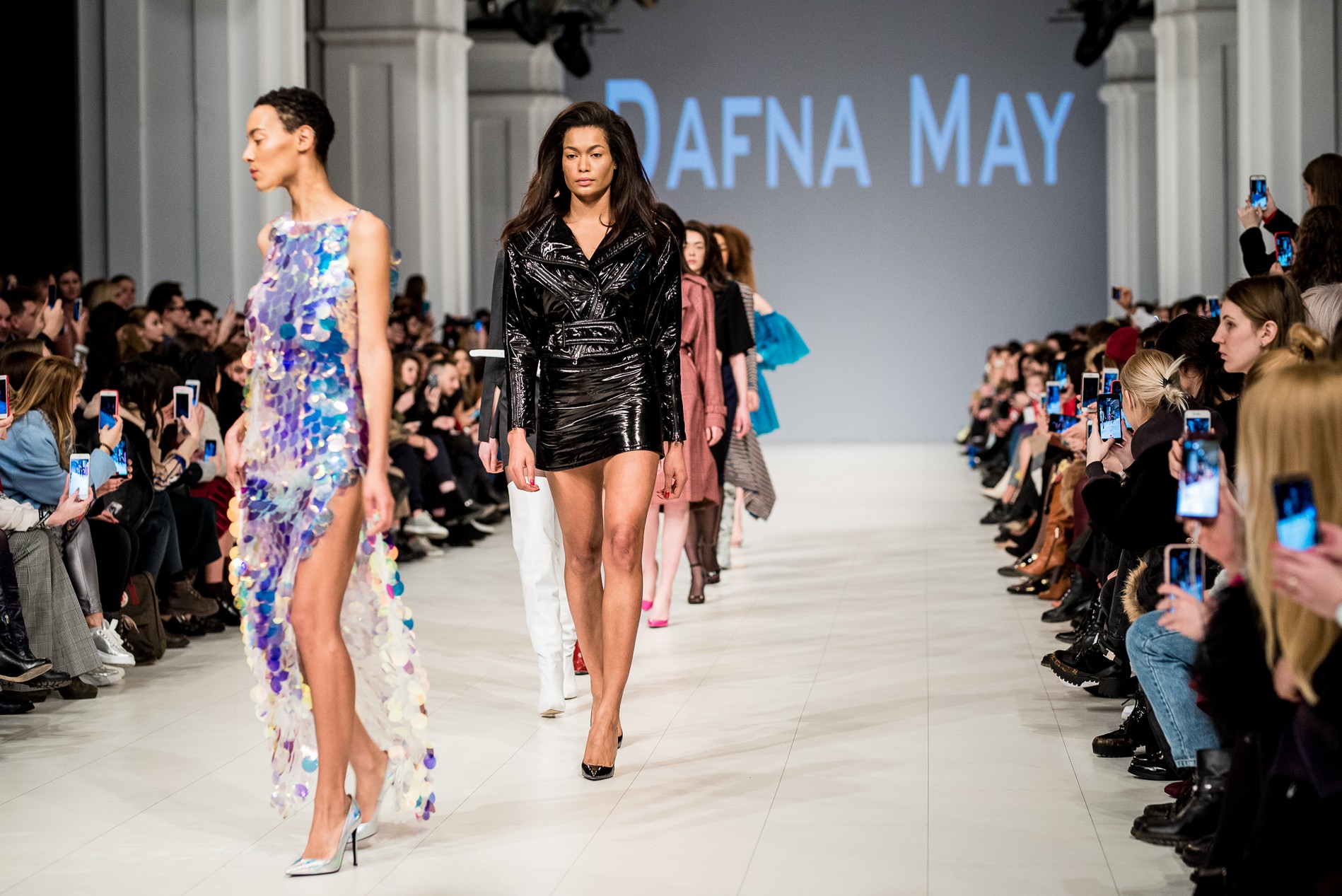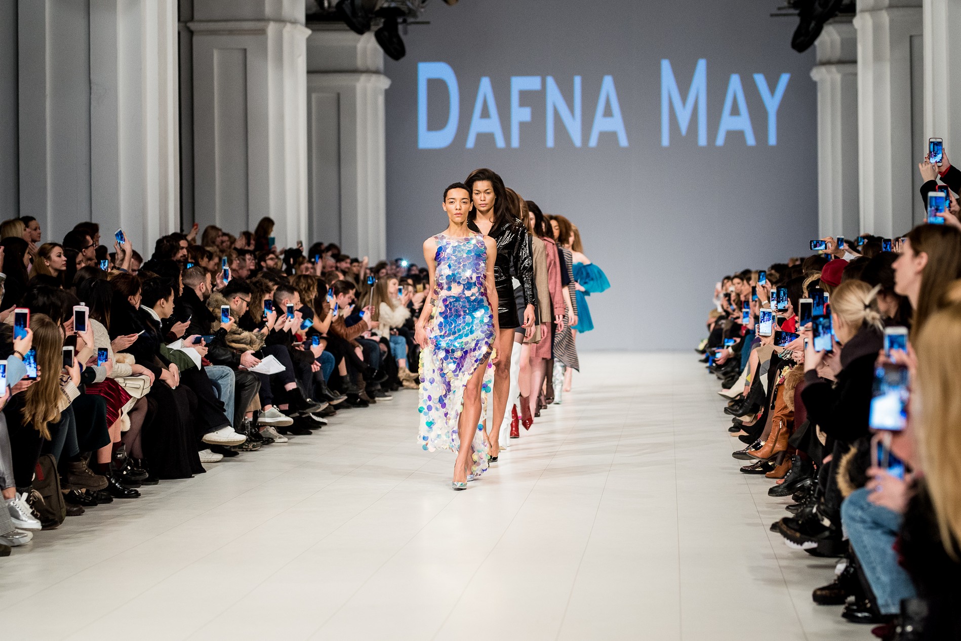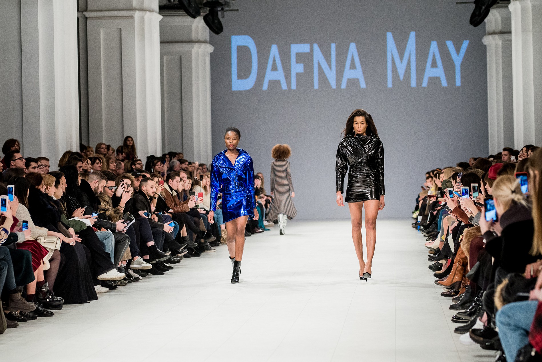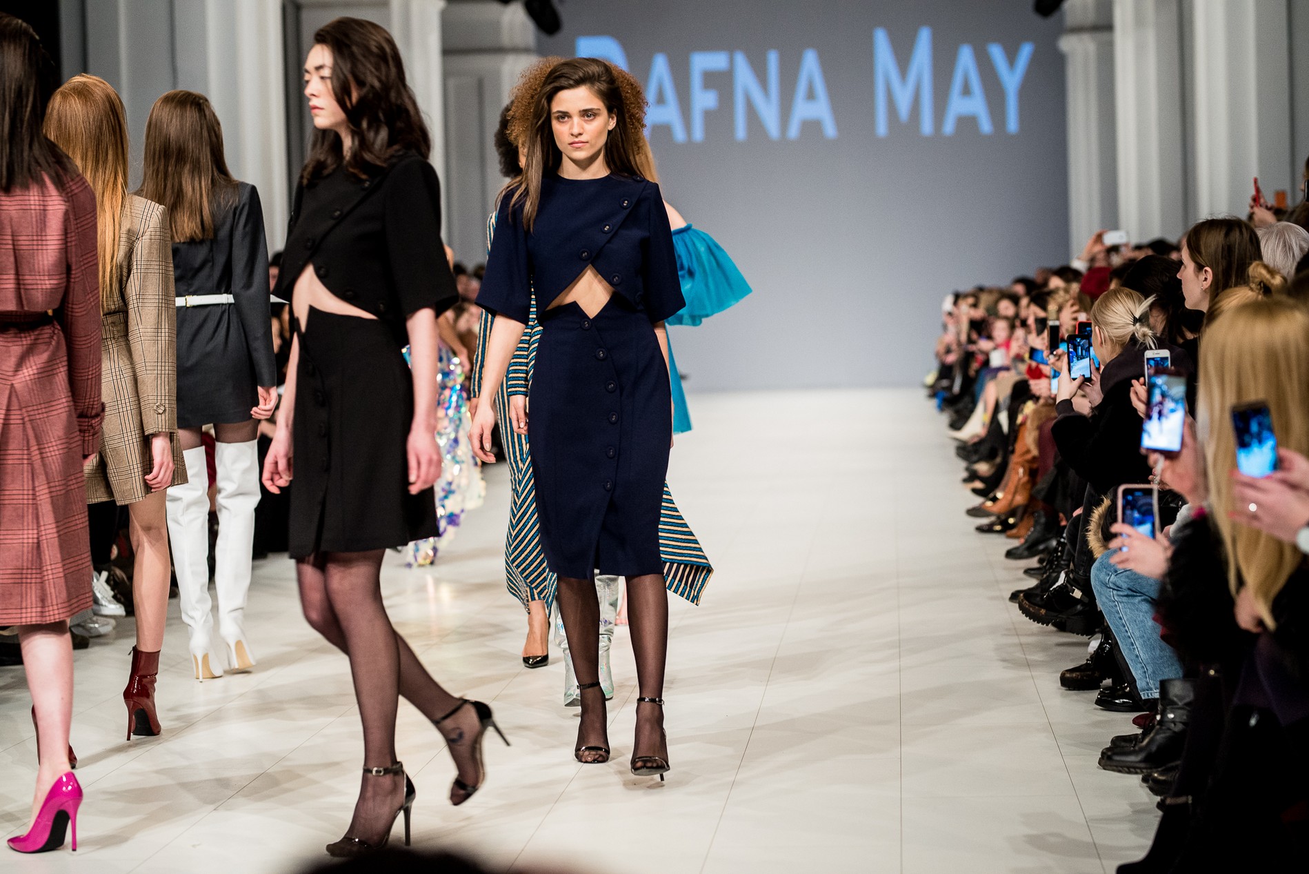 Дафна Майберг, дизайнер бренда Dafna May, устроила в Мыстецком Арсенале свою версию показа Versace: ее шоу завершилось триумфальным выходом украинских моделей Эллы Кандыбы, Эвелины Мамбетовой и Юлианы Дементьевой. Девушки появились на подиуме в футболках с остроумным принтом с черной икрой и в многослойных юбках, объединяя кутюрные и «масс-маркетовые» приемы.