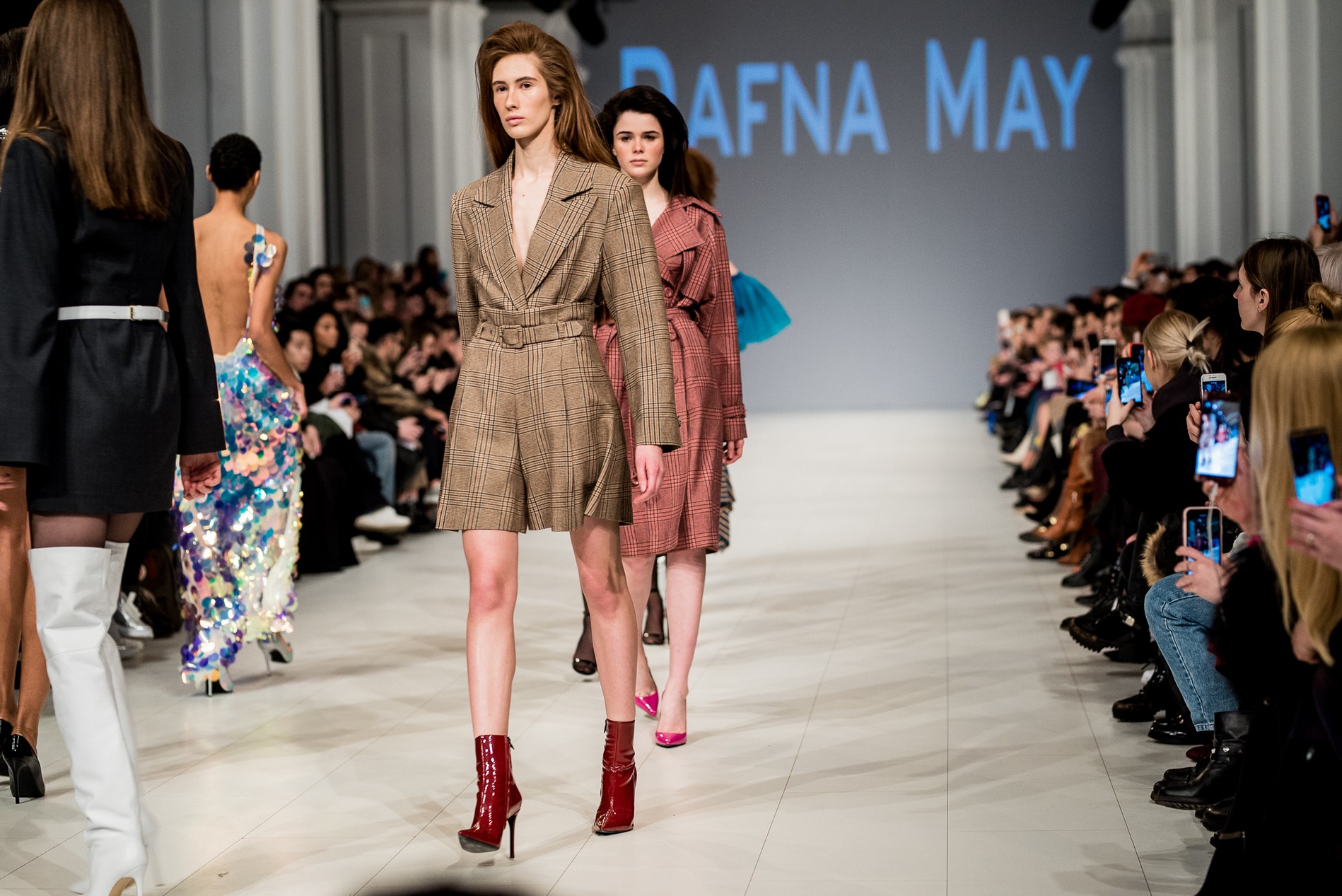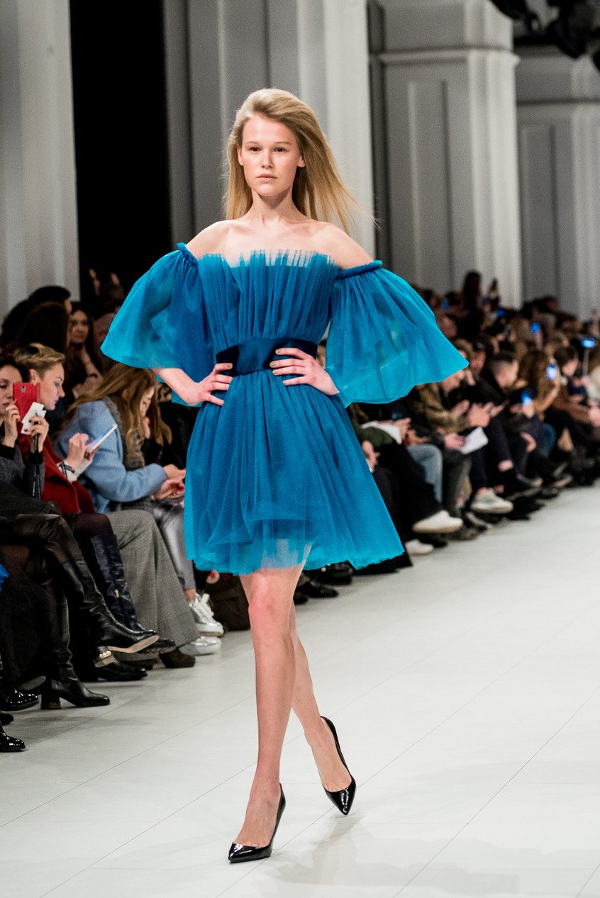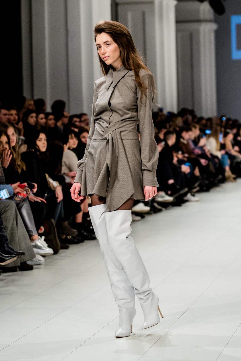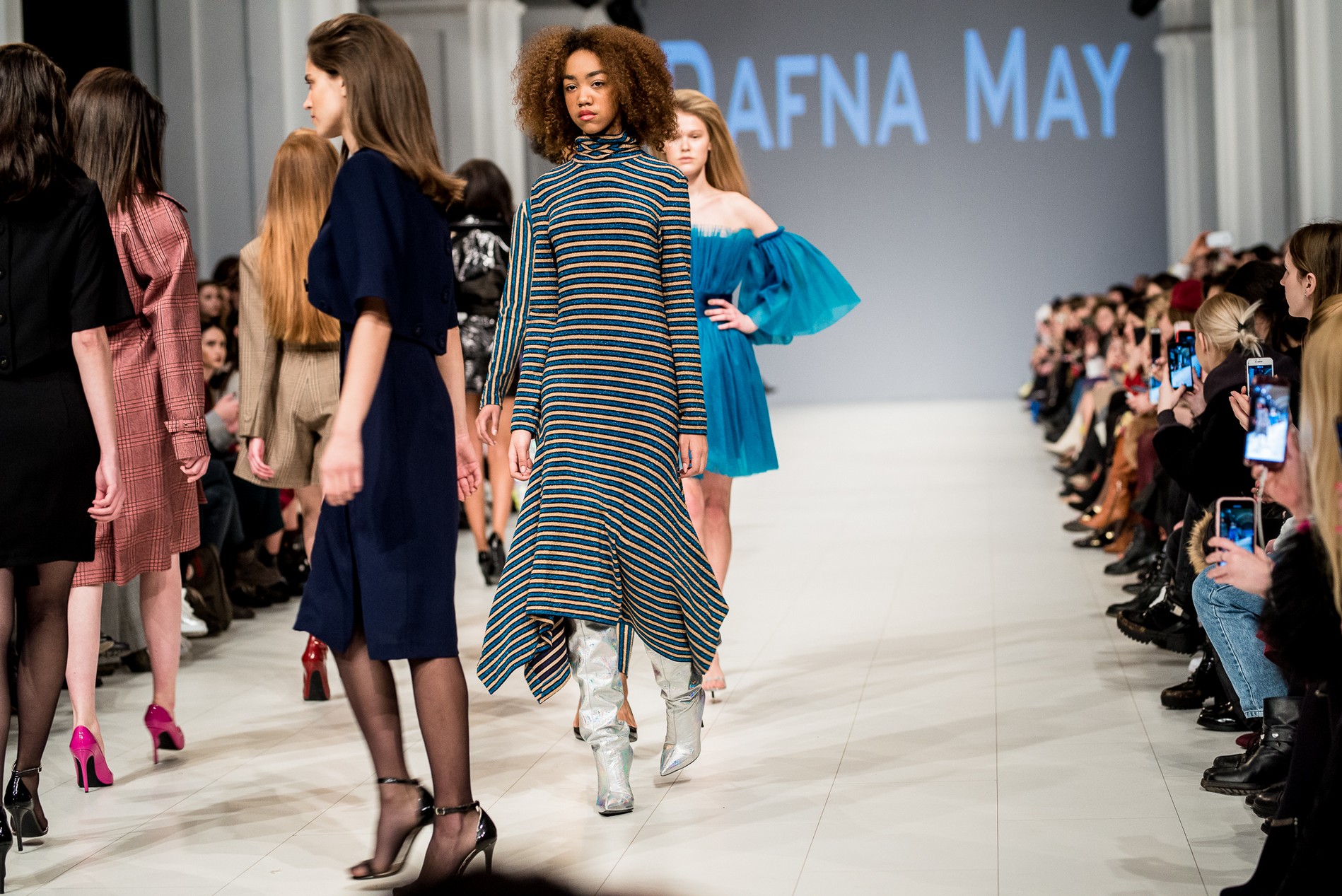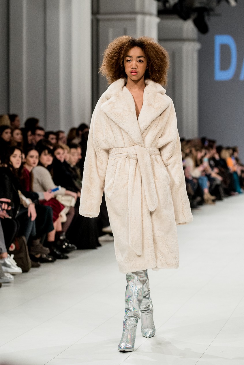 Дафна Майберг, дизайнер бренда Dafna May, устроила в Мыстецком Арсенале свою версию показа Versace: ее шоу завершилось триумфальным выходом украинских моделей Эллы Кандыбы, Эвелины Мамбетовой и Юлианы Дементьевой. Девушки появились на подиуме в футболках с остроумным принтом с черной икрой и в многослойных юбках, объединяя кутюрные и «масс-маркетовые» приемы.