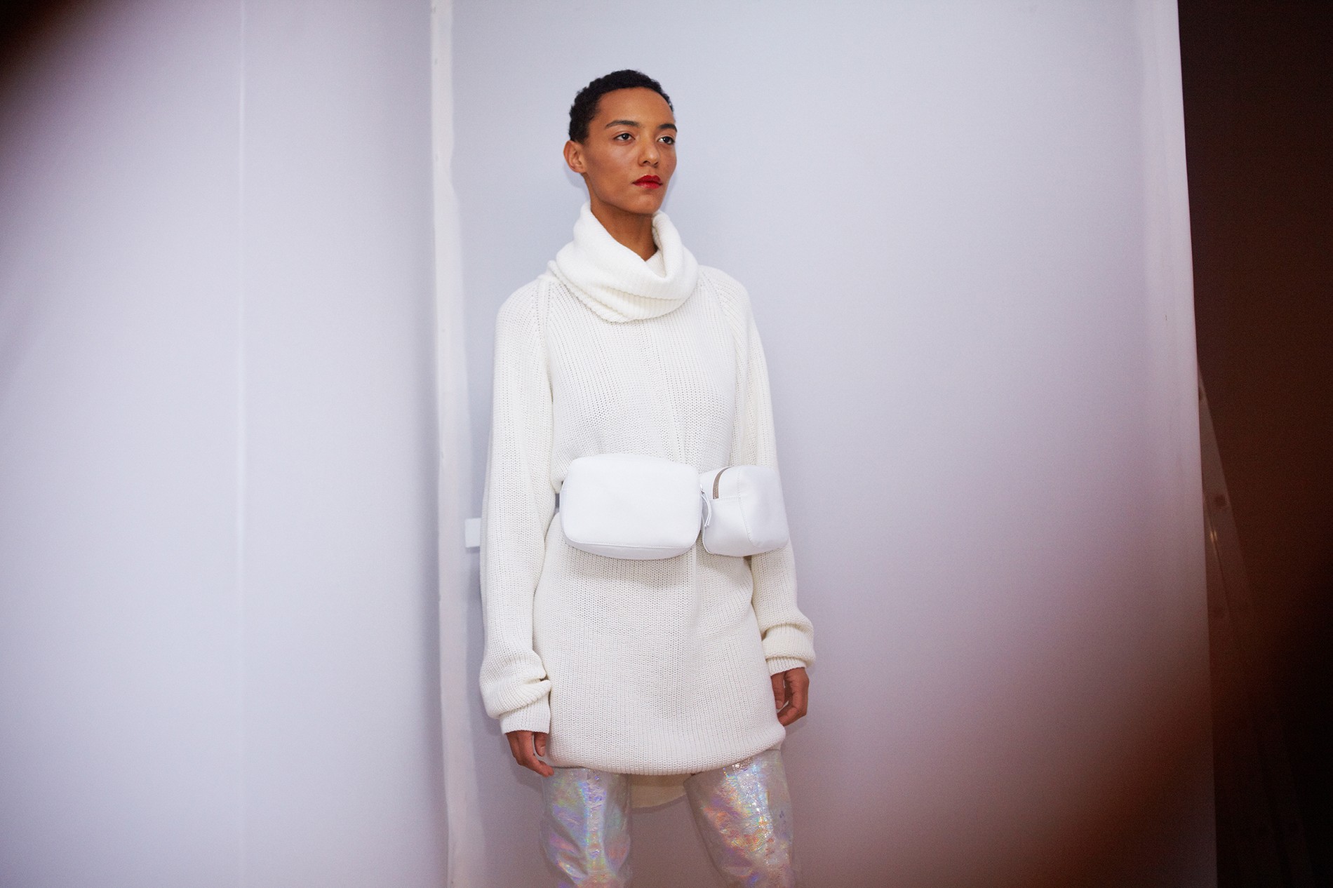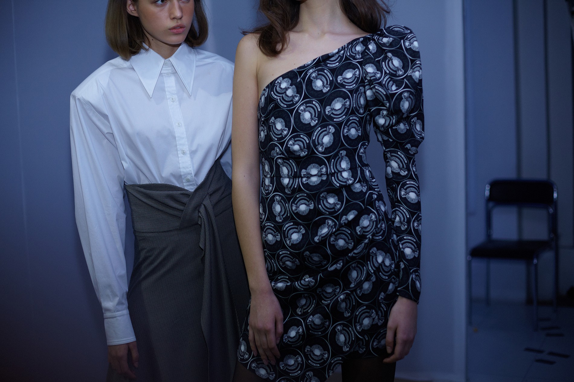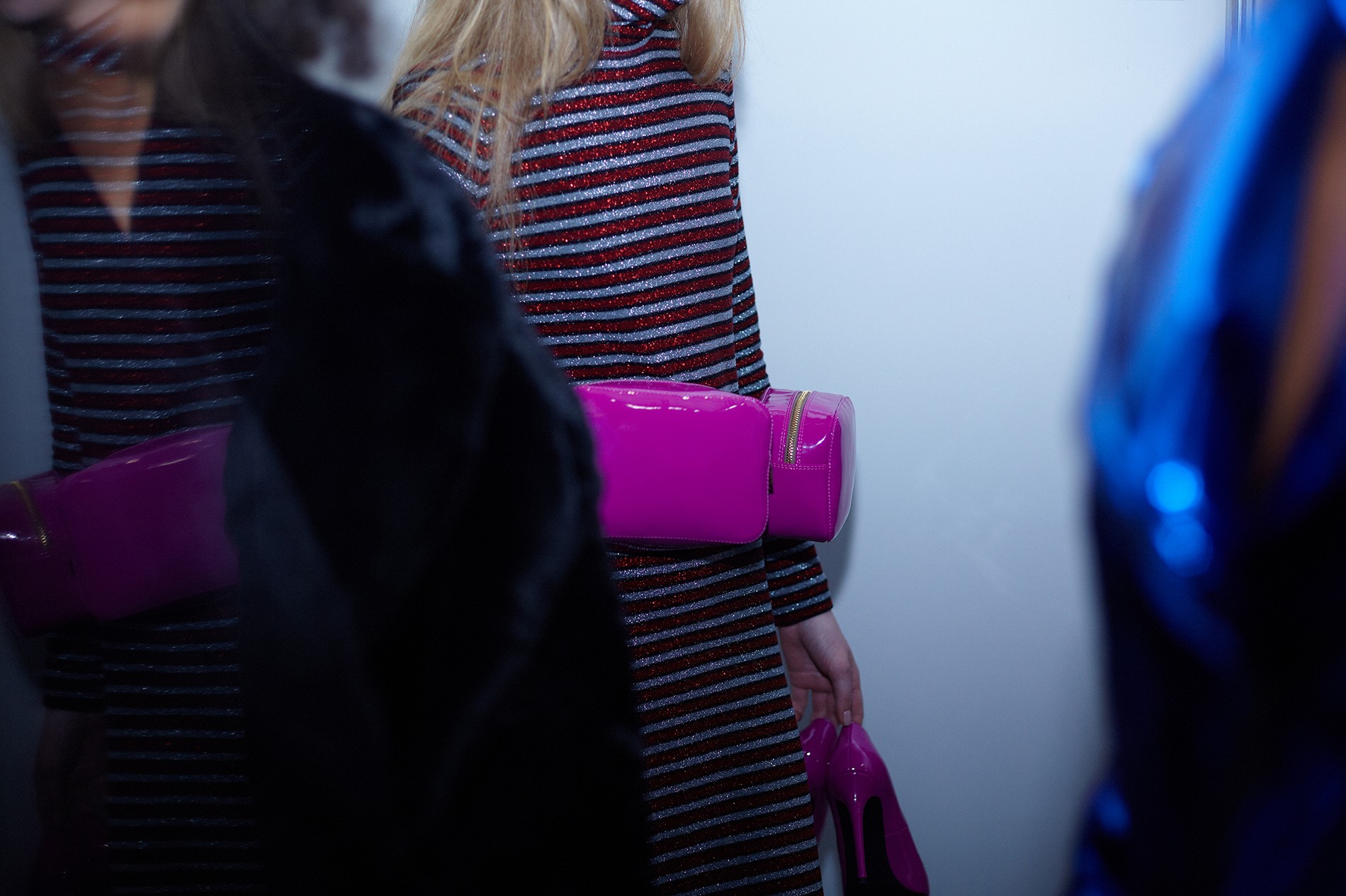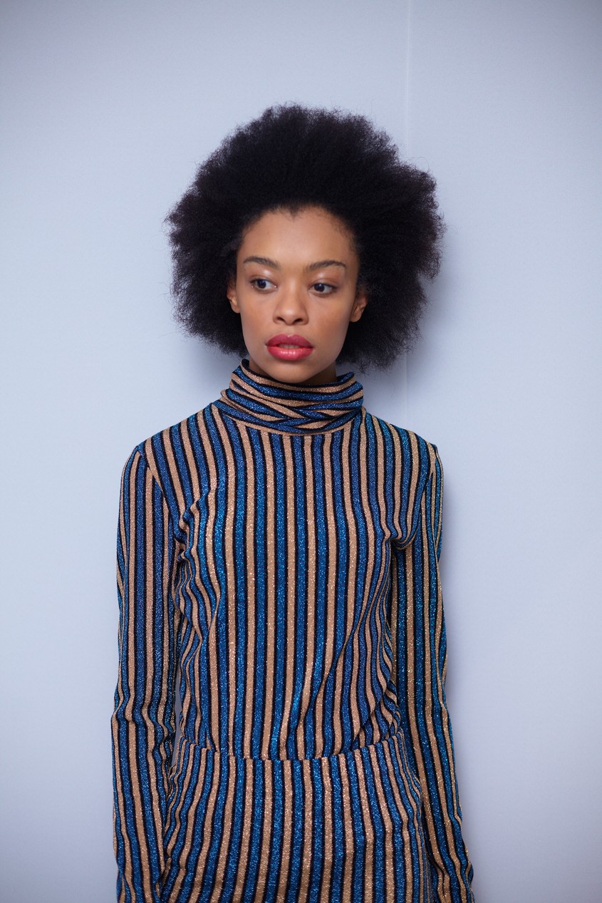 Коллекция вышла женственной с большой и внушительной буквы «Ж» – длина мини, тонкая талия, высокие сапоги и обтягивающие наряды, лакированная кожа, а еще – ироничный и аппетитный принт с конфетой. Майберг особенно удались аксессуары: белые и металлизированные ботфорты и сумки на пояс электрического розового цвета. Отдельной редакторской любви удостоились костюмы из юбки на высокой талии и укороченного топа – одновременно и деловито, и по-девичьи.