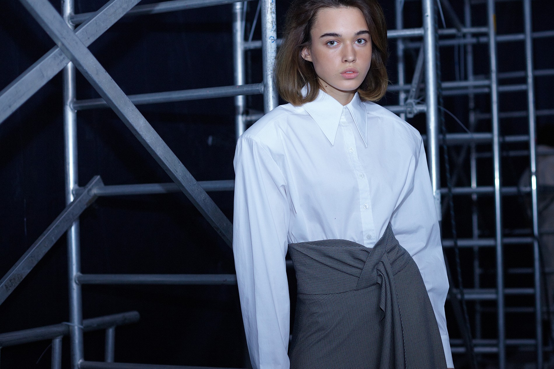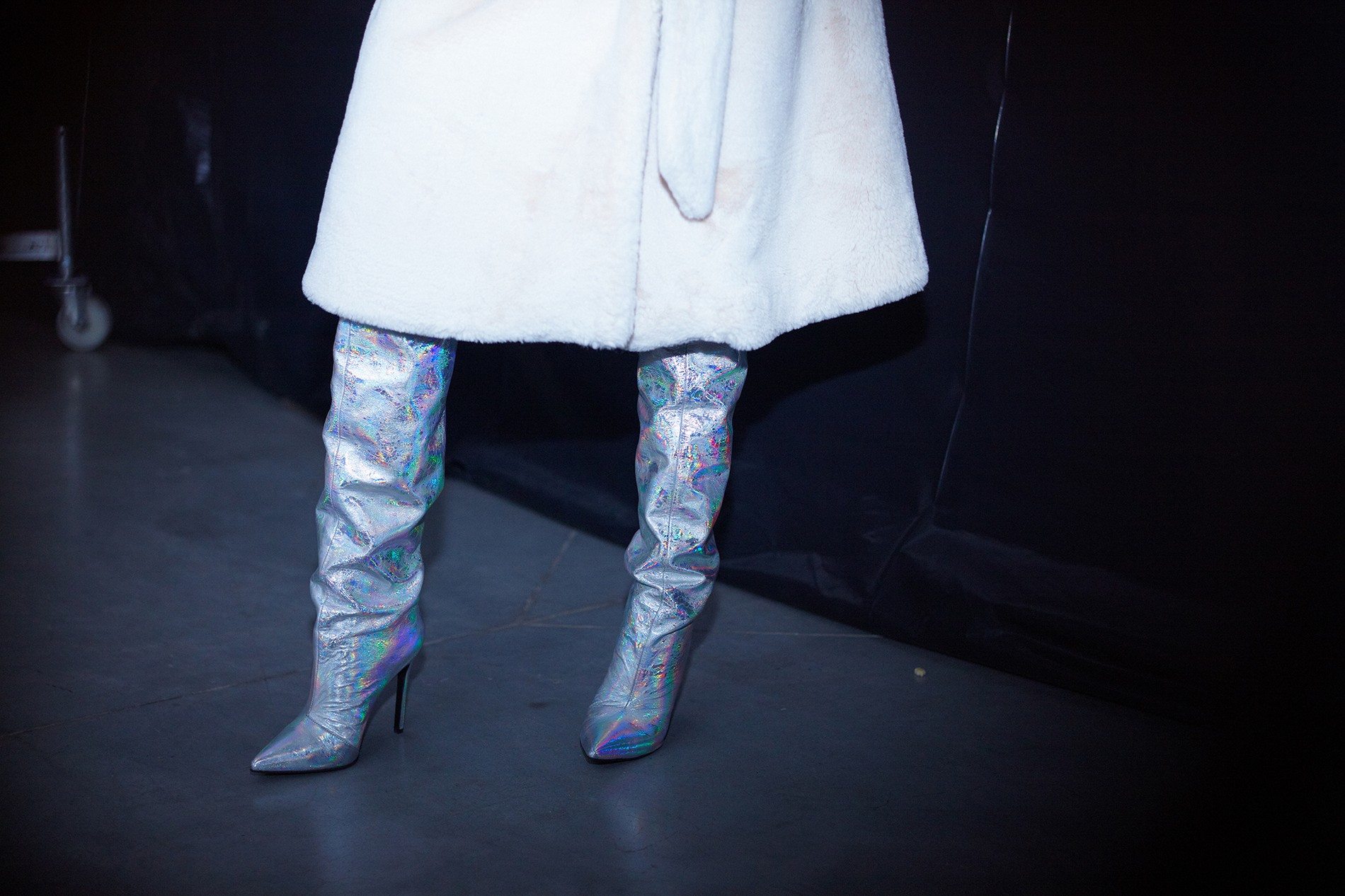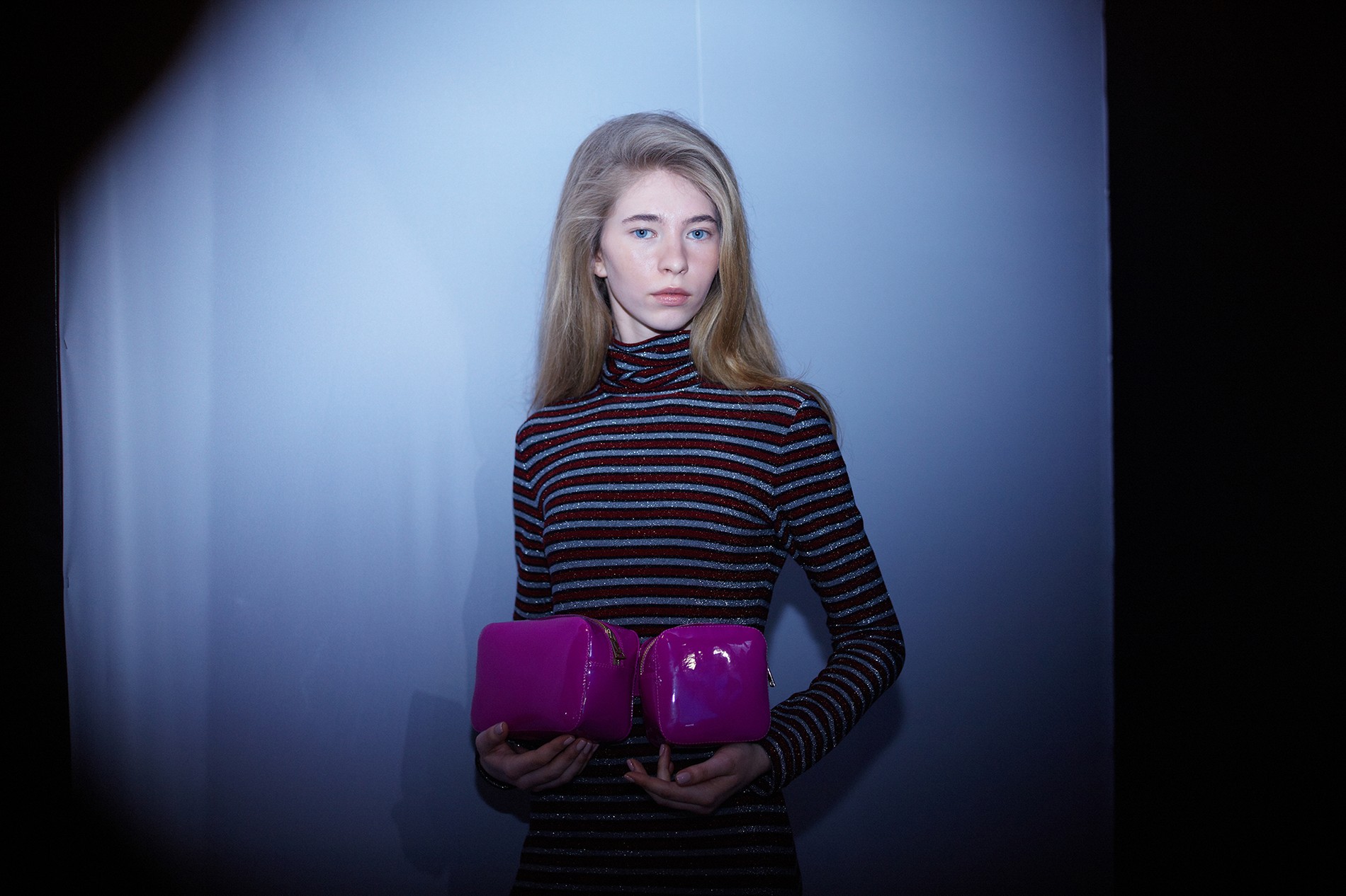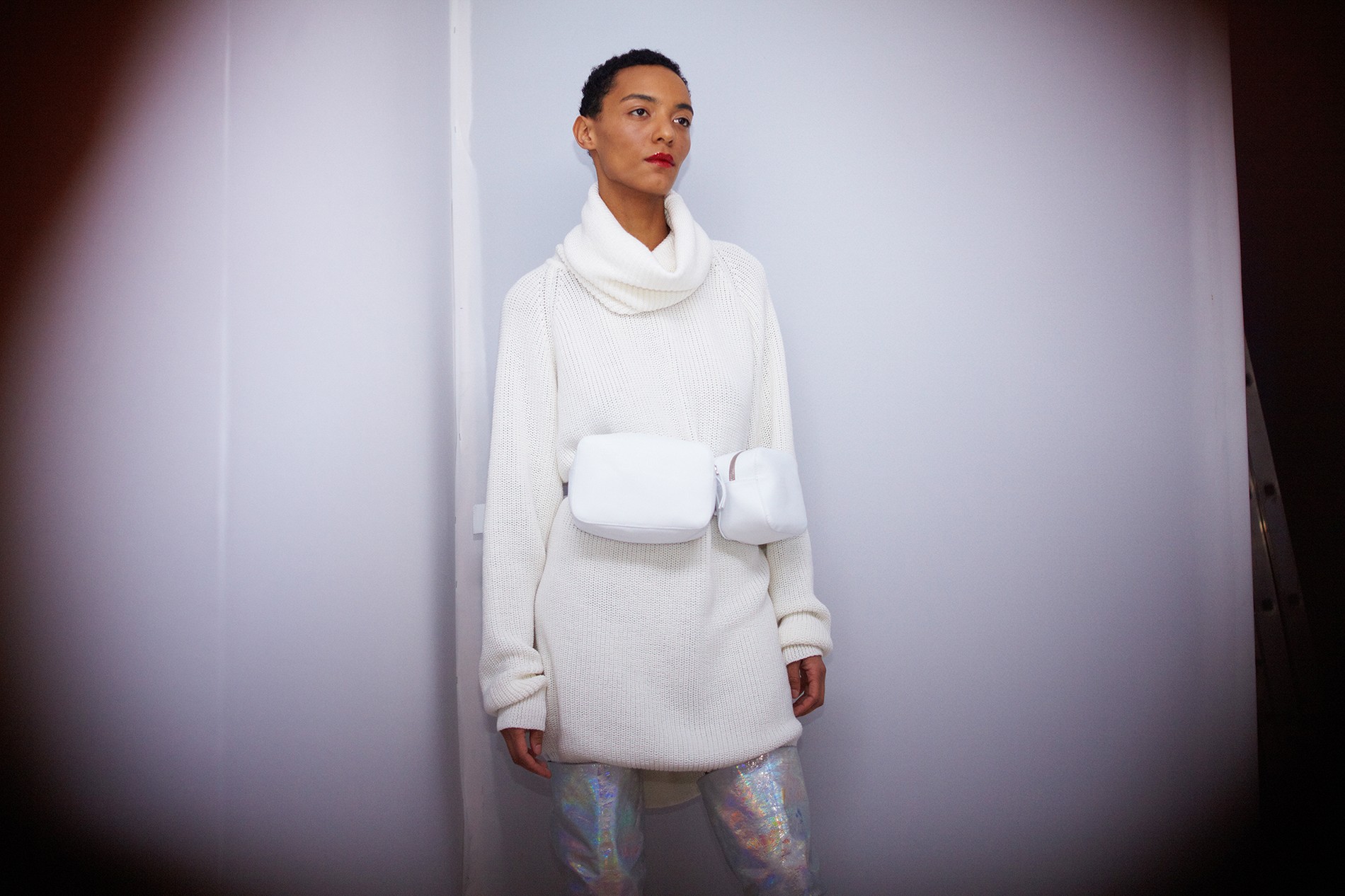 Коллекция вышла женственной с большой и внушительной буквы «Ж» – длина мини, тонкая талия, высокие сапоги и обтягивающие наряды, лакированная кожа, а еще – ироничный и аппетитный принт с конфетой. Майберг особенно удались аксессуары: белые и металлизированные ботфорты и сумки на пояс электрического розового цвета. Отдельной редакторской любви удостоились костюмы из юбки на высокой талии и укороченного топа – одновременно и деловито, и по-девичьи.