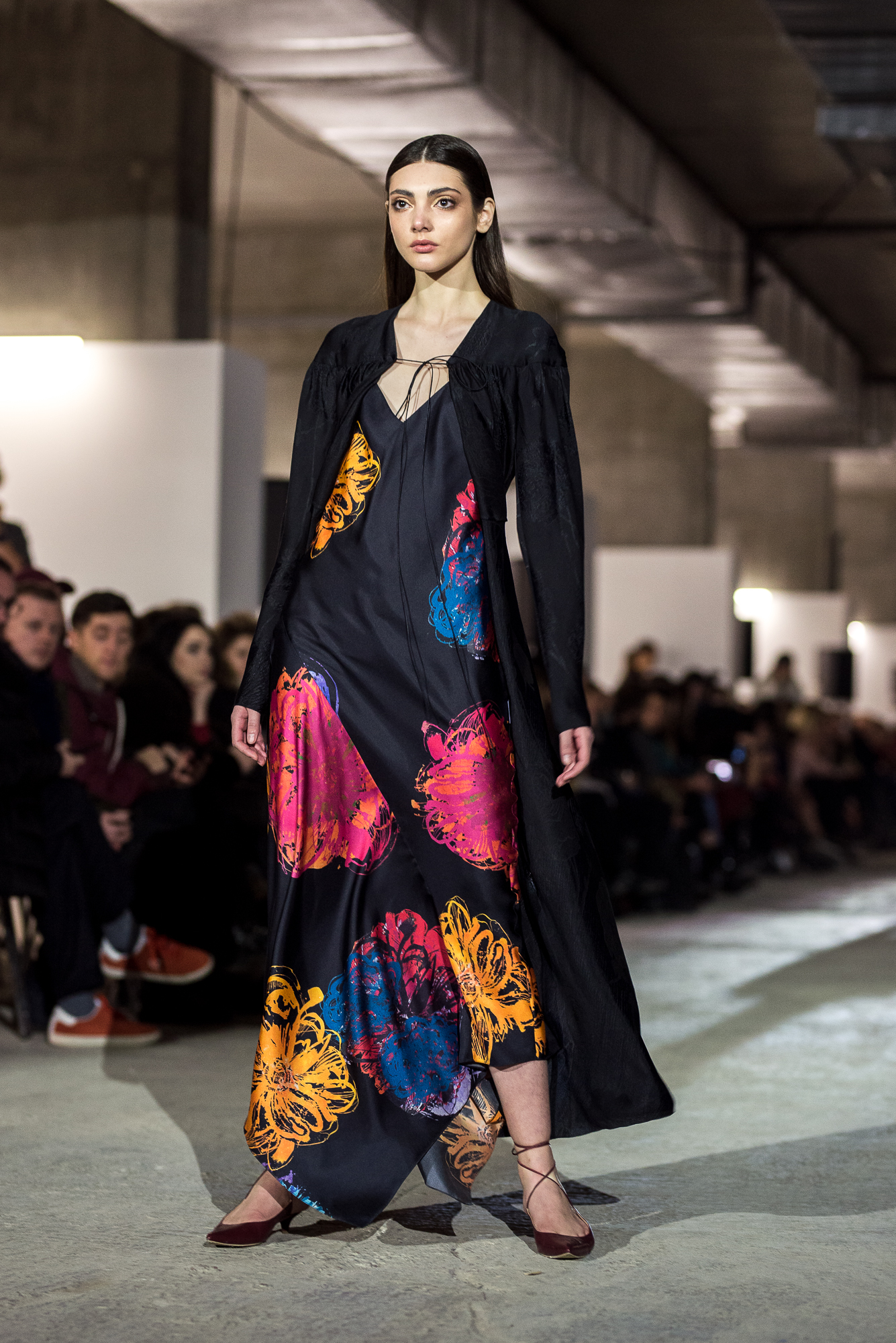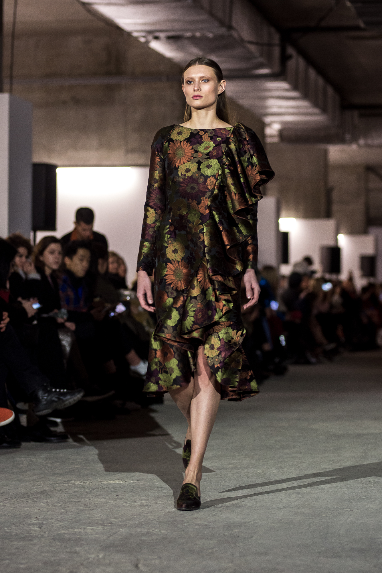 Шоу Lake Studio началось щебетанием птиц и звуками весеннего леса, эхом отдававшимися в каменных стенах центра Торонто, – команда бренда, возведя природу в статус главного источника своего вдохновения, привезла ее прямо в киевские бетонные джунгли. И это было здорово – на миг представить, что ты не в бизнес-центре в разгар Недель моды, а где-нибудь на залитом солнцем лугу в окружении мелодично вопящих пернатых. Коллекция вторила антуражу: вдохновленная творчеством Олега Грищенко, художника, цитирующего в своем творчестве природные и растительные мотивы, она была посвящена красоте окружающего нас мира и цветам.