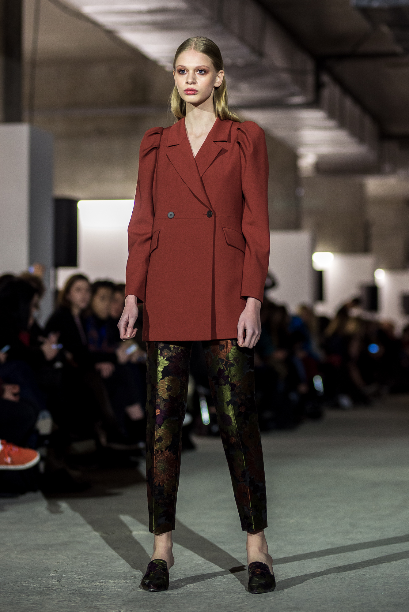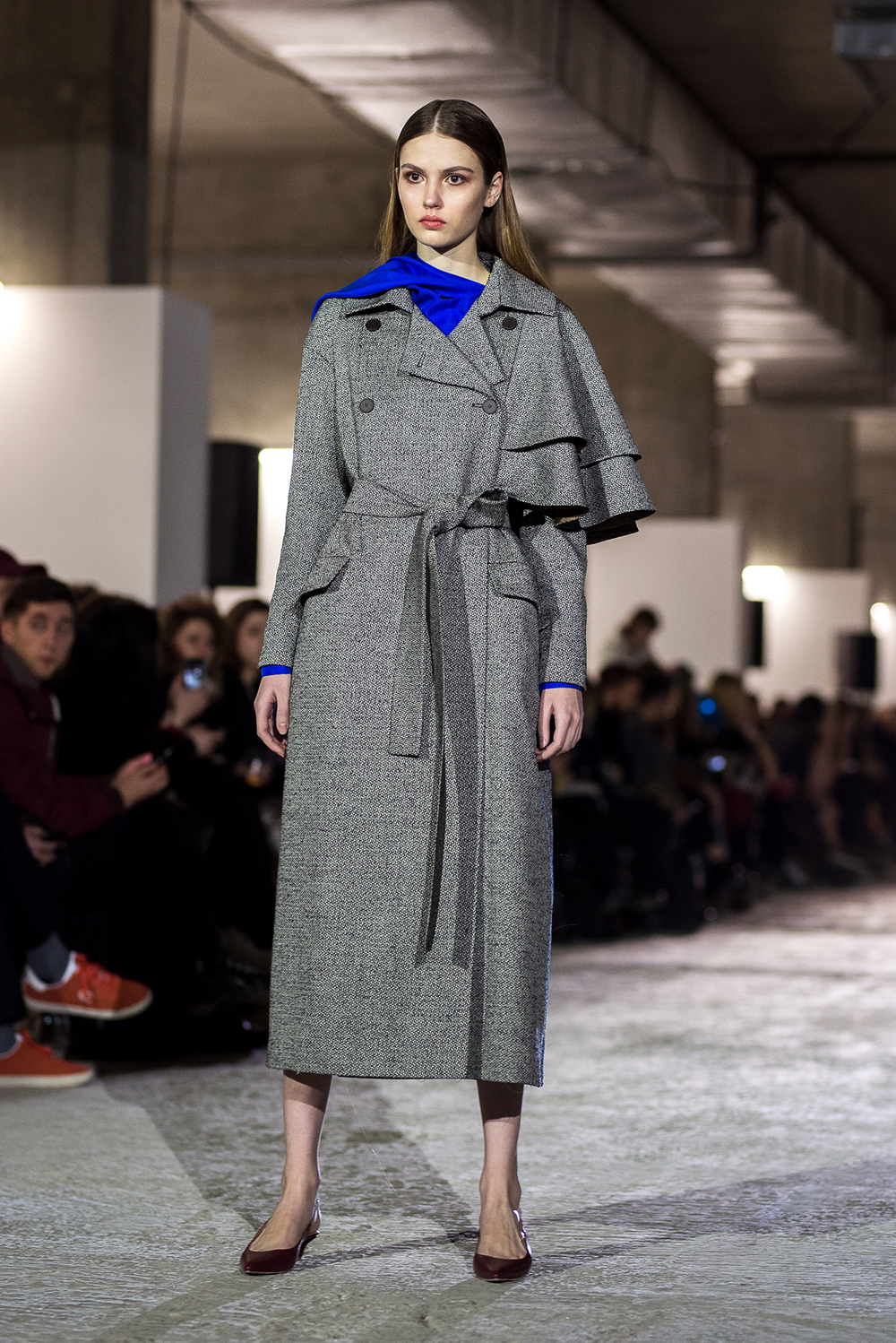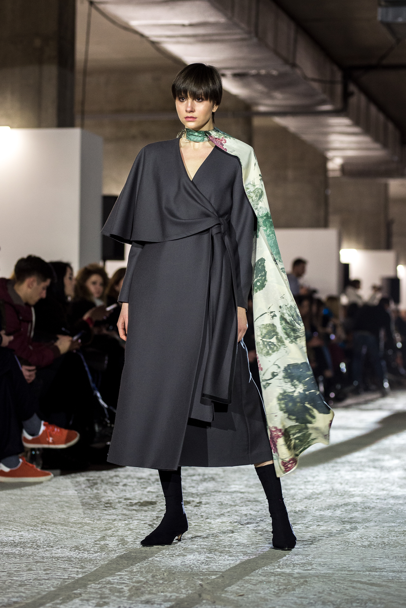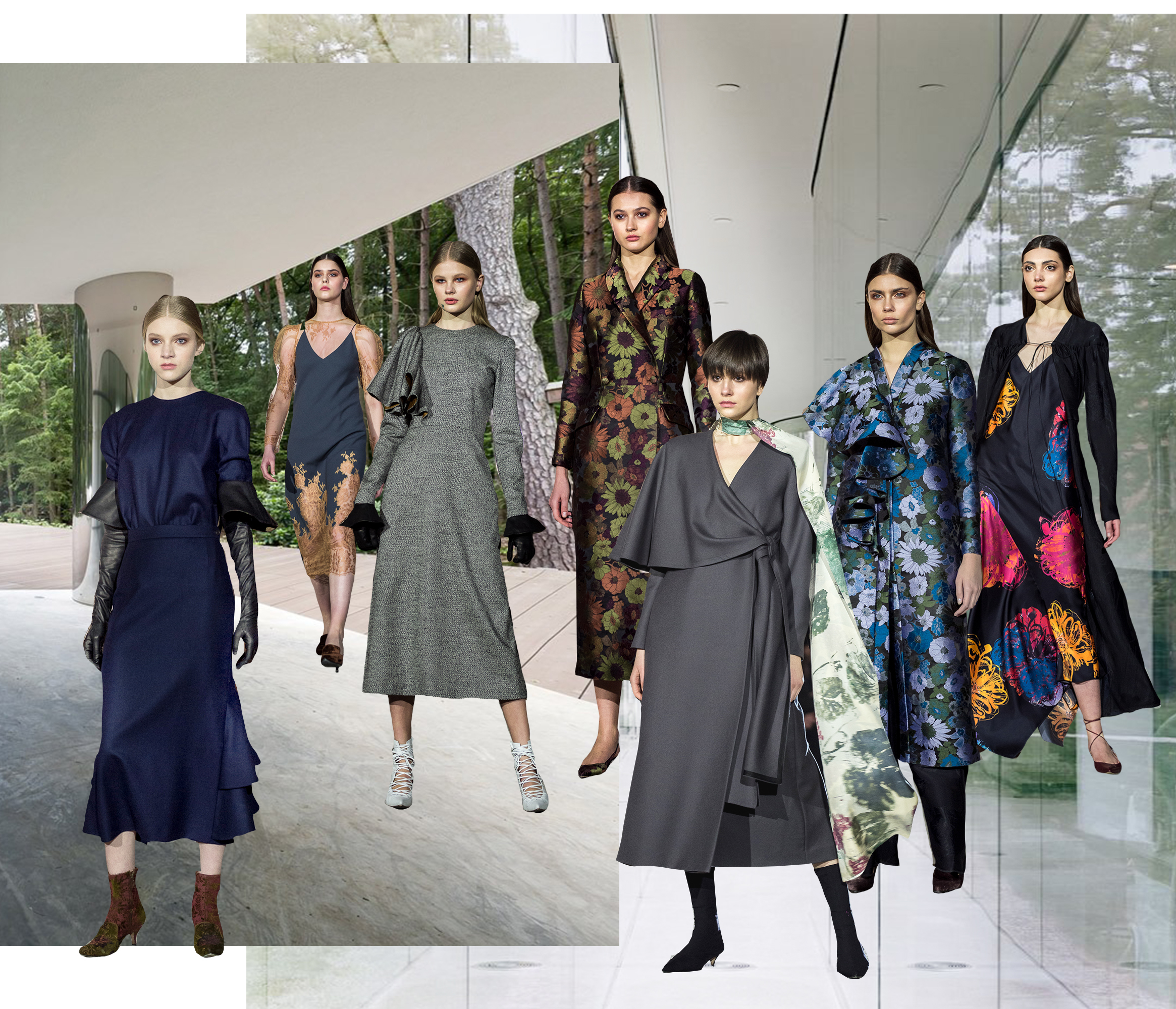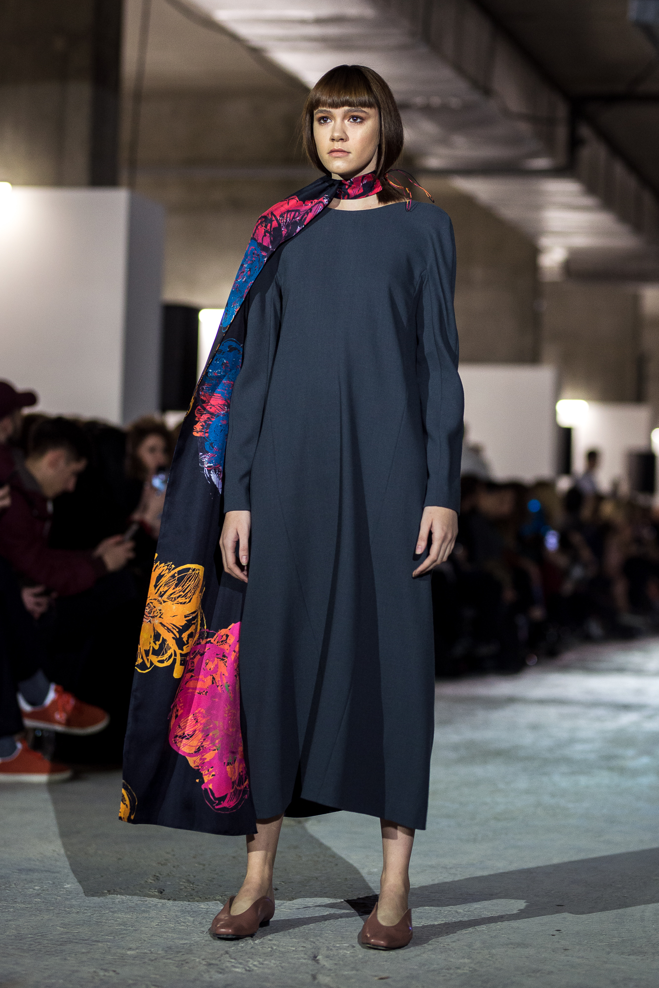 Практически отказавшись в этом сезоне от вышивки, которая раньше была одним из главных и любимых декоративных приемов Олеси Кононовой и Анастасии Рябоконь, дизайнеры акцентируют внимание на принтах – к счастью, от них они не избавились – и сложном крое и конструкции нарядов. В качестве рисунков на ткани выступили элементы полотен Грищенко – цветы распустились на шелковых платьях, брюках, халатах и шарфах, оттеняя драпировки и складки тканей на жакетах и пальто. Последние тоже были вдохновлены естественными формами растений и цветов: бутоны оживают в оборках и поясах, а тугие переплетения стеблей – в силуэтах пальто и затянутых поясах жакетов.