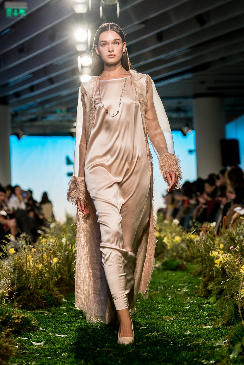 Дизайнер обещает, что в основе линии одежды всегда будут присутствовать переосмысленные версии исторических силуэтов – Петрова намерена адаптировать к современности кимоно, восточный халат и утреннее платье. В своей дебютной работе Лида апеллировала к многогранной эстетике культового фильма «Любовное настроение» Вонга Карвая – к восточным мотивам, шелкам, халатам и интерьерным материалам вроде бархата. В коллекцию вошли как кимоно, стилистическая база бренда, так и платья, блузы, жакеты и пальто. Конструкция кимоно была взята Петровой из собственного гардероба: когда-то она приобрела винтажную модель на барахолке в Париже и теперь вместе со своими швеями и конструкторами разобрала ее, чтобы использовать уже в собственной коллекции.