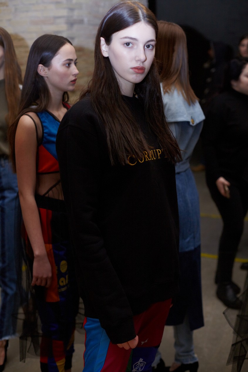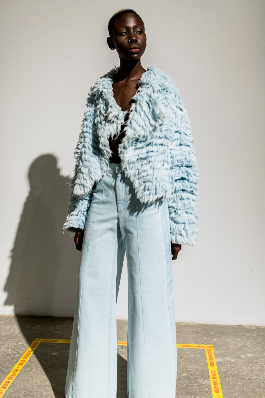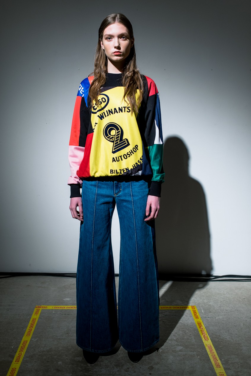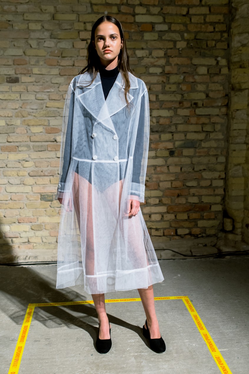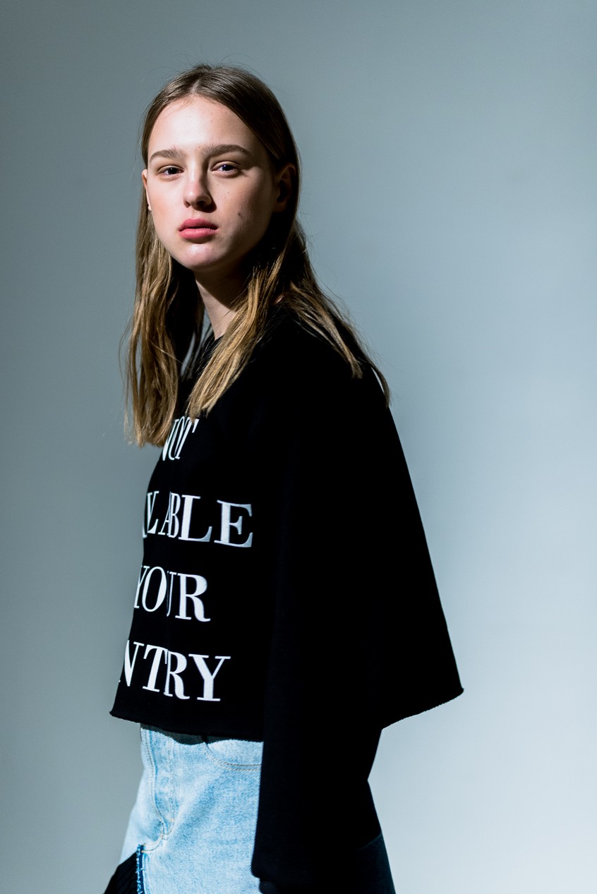 Презентация новой коллекции Ksenia Schnaider прошла в правом крыле Мыстецкого Арсенала. Модели примерили на себя роль объектов искусства – каждая из них была ограждена квадратом из желтой линии с подписью «Обережно: крихке». Ксения продолжает размышлять на тему актуальной уличной одежды: в ее коллекции – только удобные и практичные вещи, оттененные яркими цветами. Дизайнер не забывает о главных составляющих ДНК своего бренда: спортивные детали, колорблокинг и деним – в коллекцию вошли худи с ироничными принтами вроде Not Available In Your Country, юбки, жакеты, платья из денима – из этого материала дизайнер представила даже шапку и аксессуар для волос, не забыв, конечно, о джинсах demi-denims. Свое увлечение экомодой дизайнер тоже продолжает развивать: кроме recycled-вещей, в ее коллекции появилась шуба из экологического меха – напомним, ранее Ксения выпускала модель из денима.