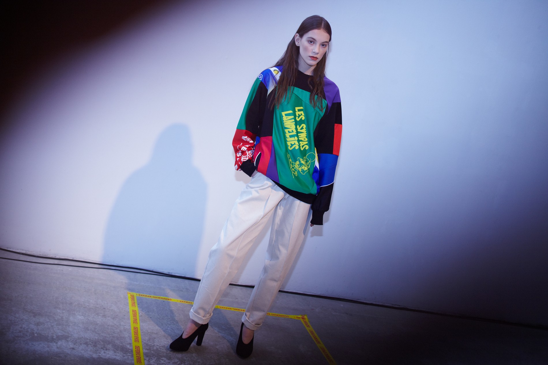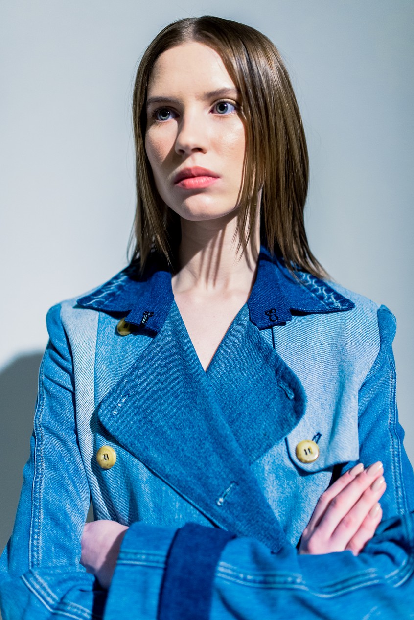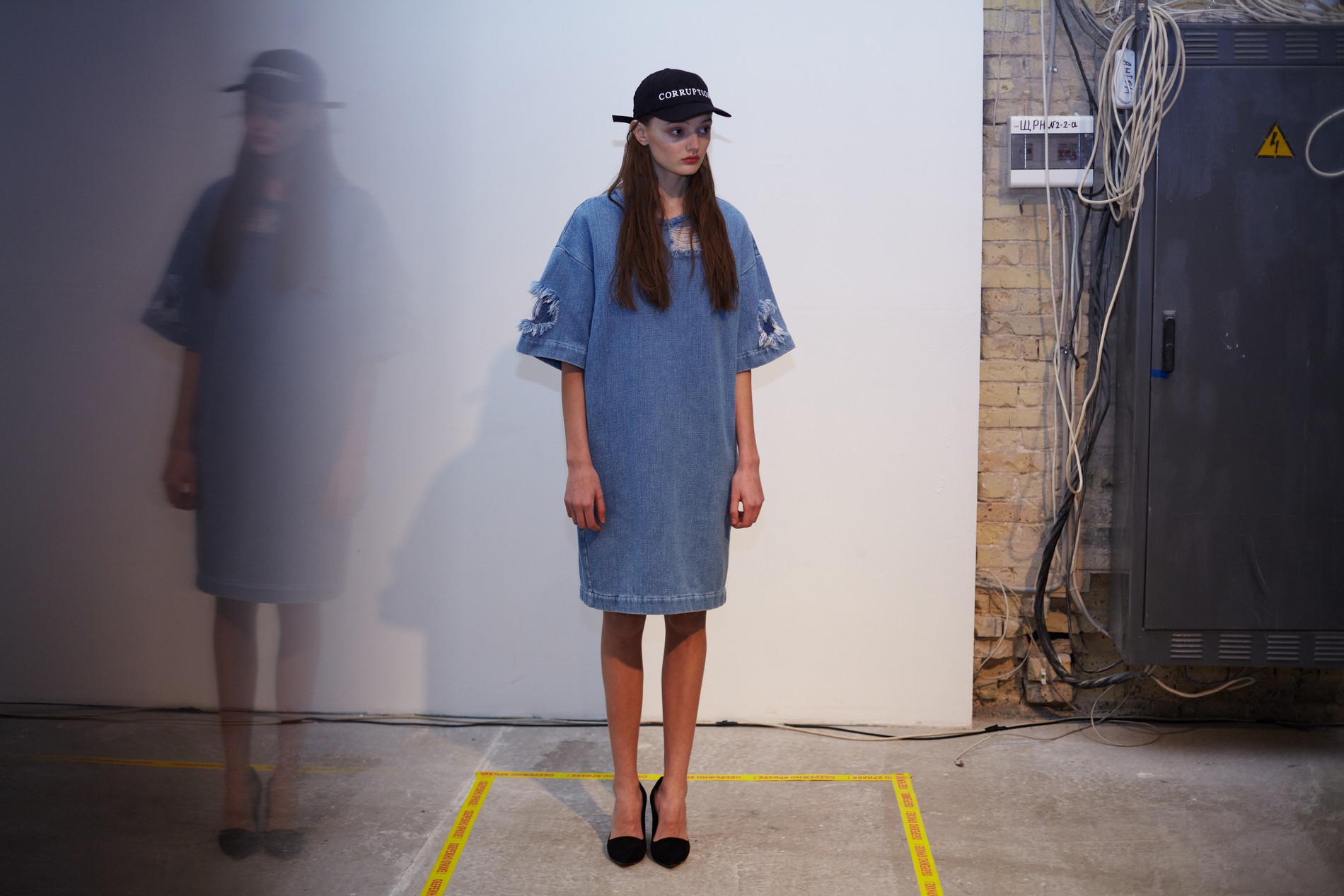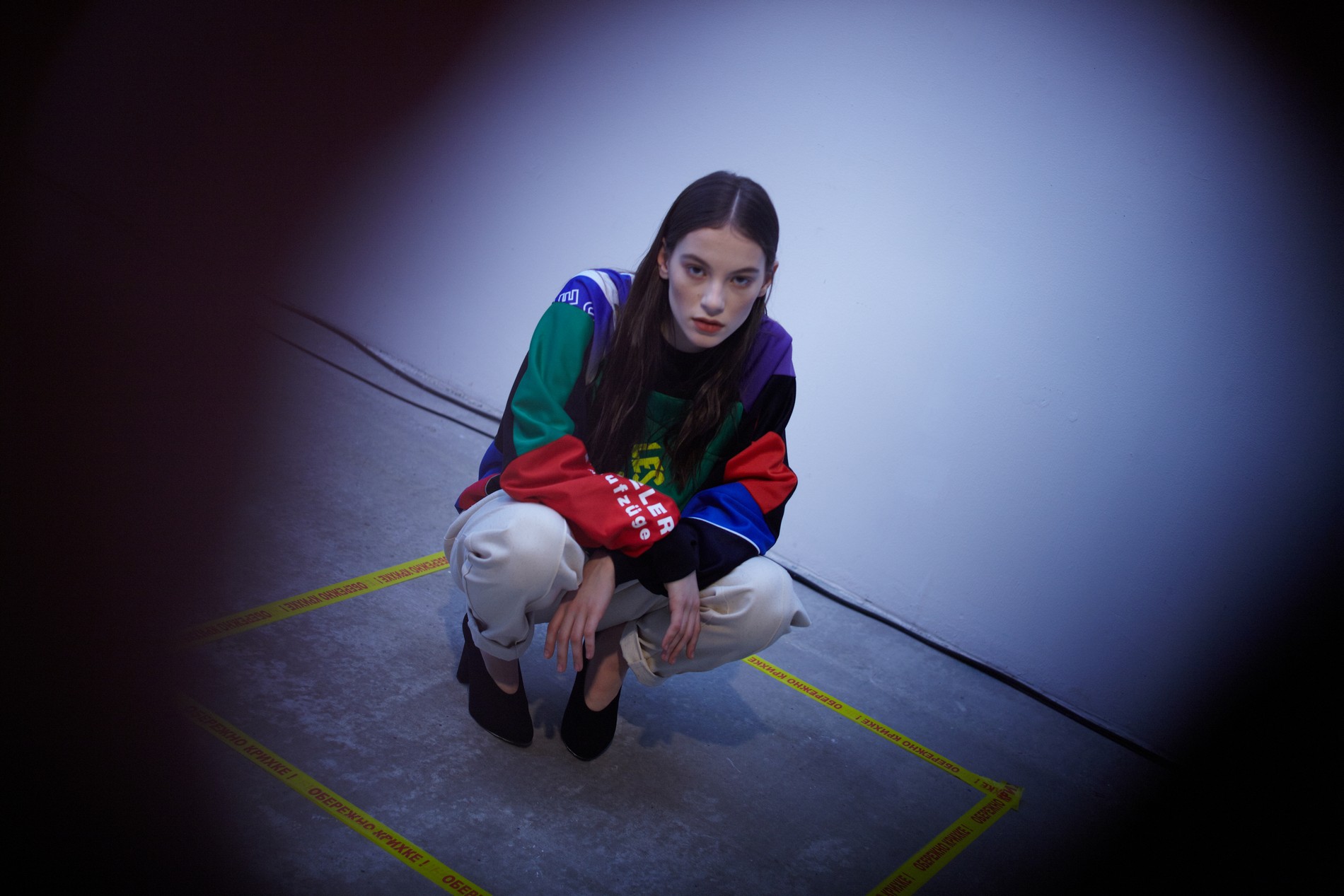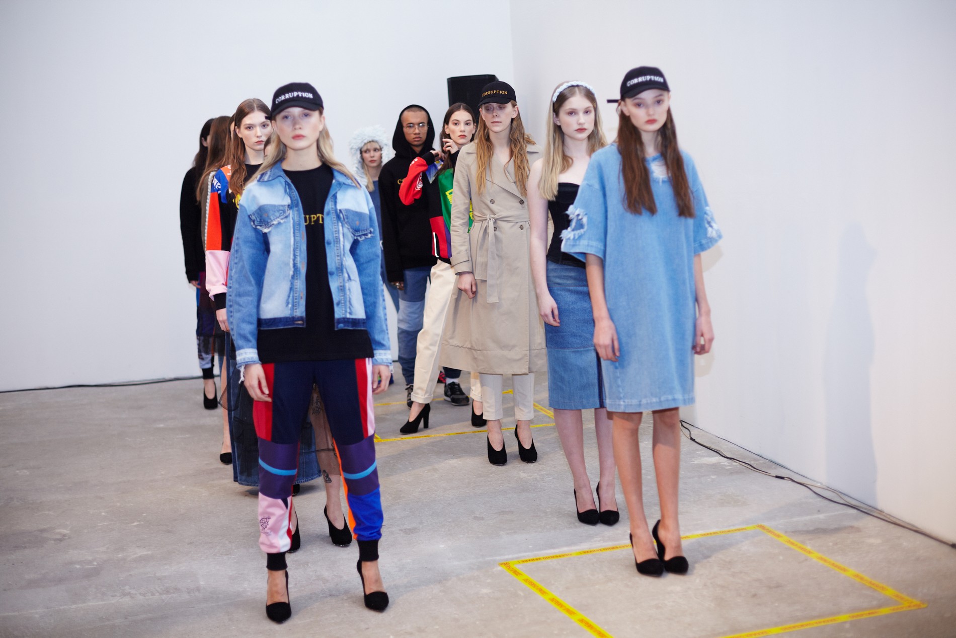 Презентация новой коллекции Ksenia Schnaider прошла в правом крыле Мыстецкого Арсенала. Модели примерили на себя роль объектов искусства – каждая из них была ограждена квадратом из желтой линии с подписью «Обережно: крихке». Ксения продолжает размышлять на тему актуальной уличной одежды: в ее коллекции – только удобные и практичные вещи, оттененные яркими цветами. Дизайнер не забывает о главных составляющих ДНК своего бренда: спортивные детали, колорблокинг и деним – в коллекцию вошли худи с ироничными принтами вроде Not Available In Your Country, юбки, жакеты, платья из денима – из этого материала дизайнер представила даже шапку и аксессуар для волос, не забыв, конечно, о джинсах demi-denims. Свое увлечение экомодой дизайнер тоже продолжает развивать: кроме recycled-вещей, в ее коллекции появилась шуба из экологического меха – напомним, ранее Ксения выпускала модель из денима.