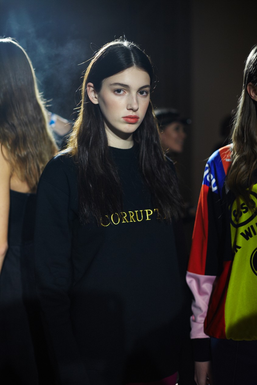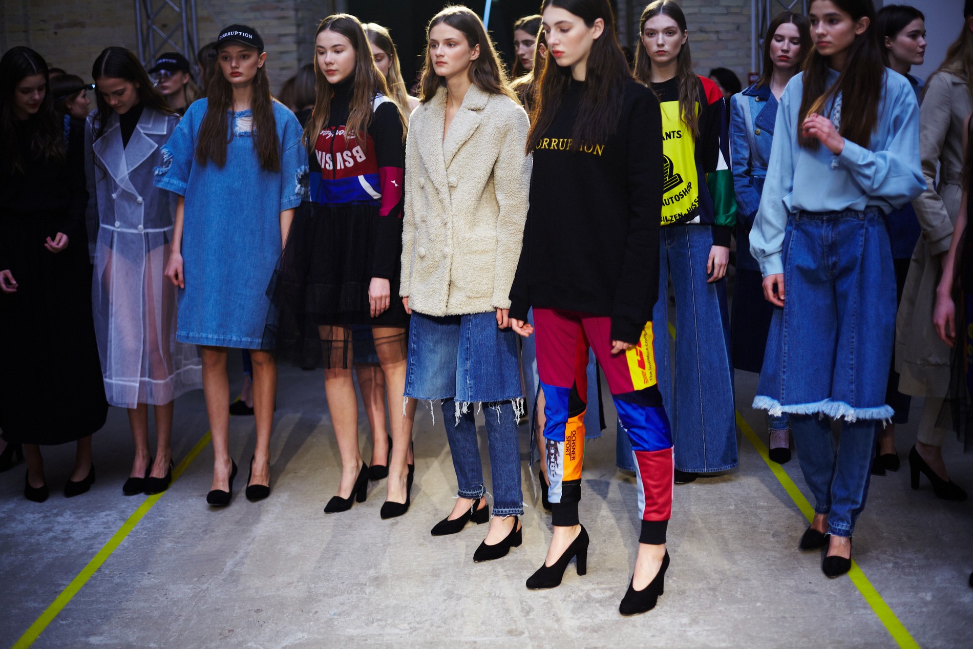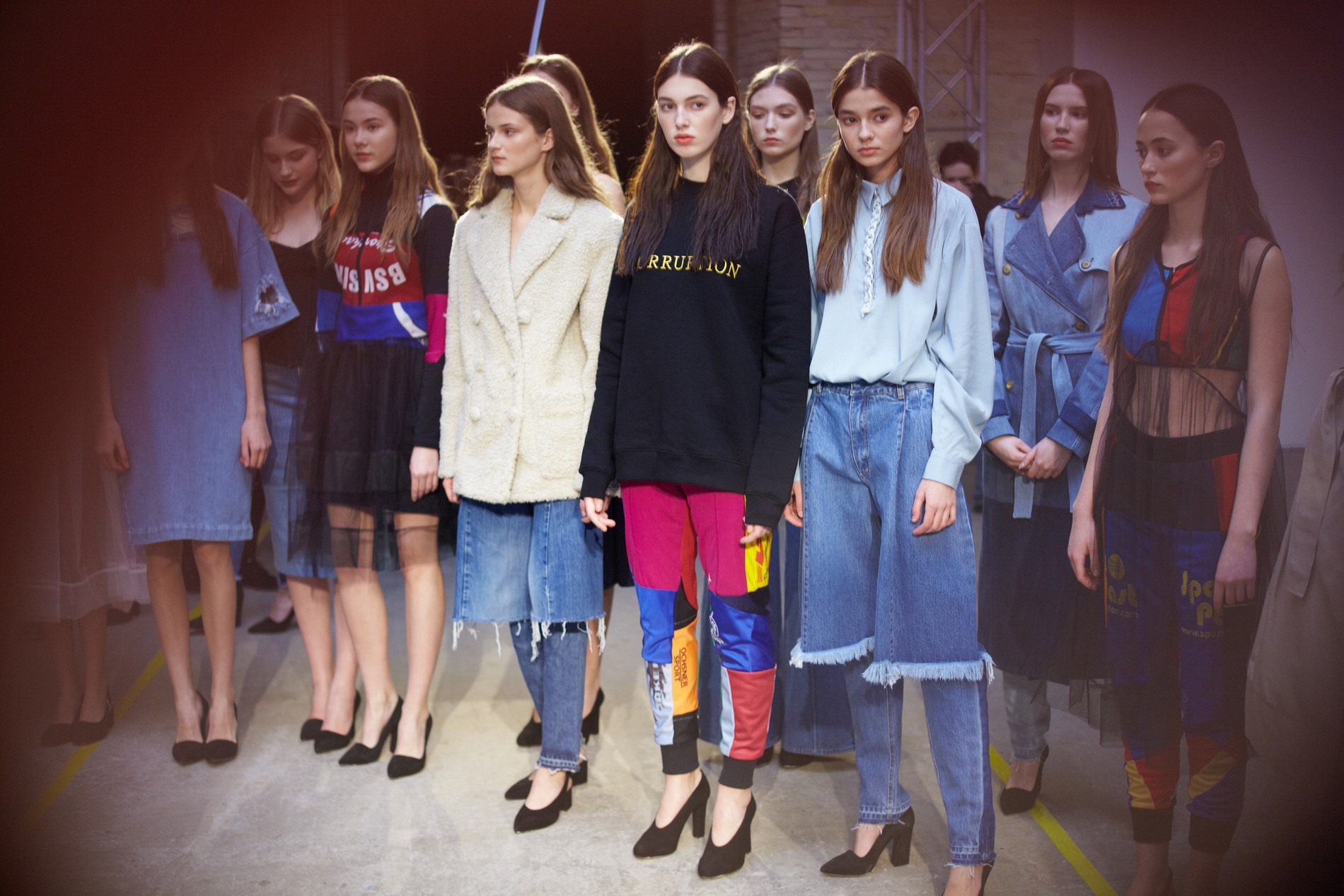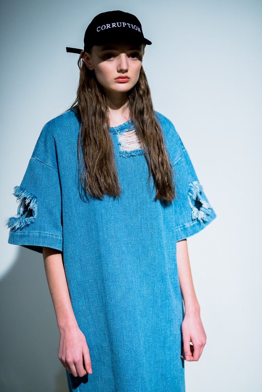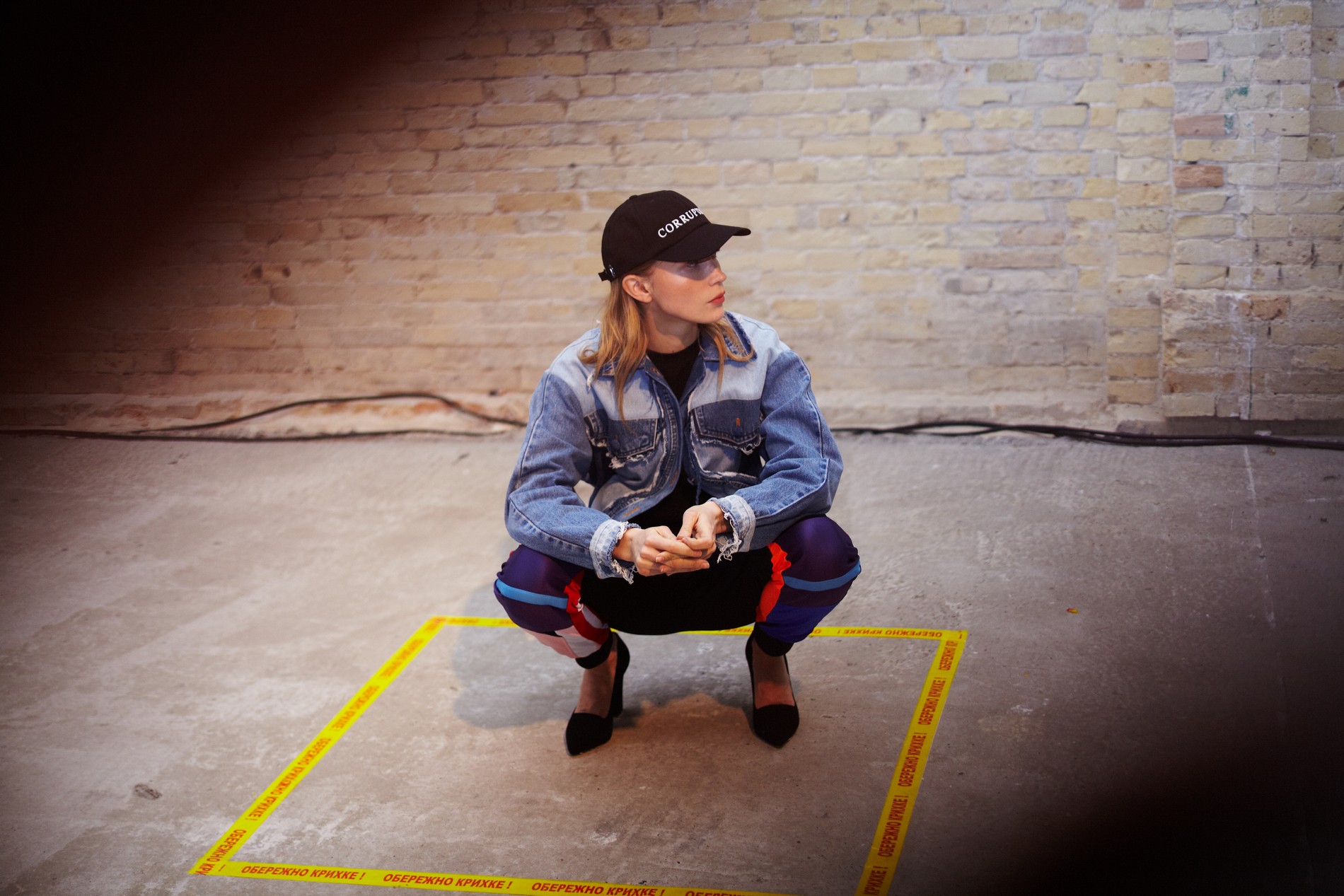 Презентация новой коллекции Ksenia Schnaider прошла в правом крыле Мыстецкого Арсенала. Модели примерили на себя роль объектов искусства – каждая из них была ограждена квадратом из желтой линии с подписью «Обережно: крихке». Ксения продолжает размышлять на тему актуальной уличной одежды: в ее коллекции – только удобные и практичные вещи, оттененные яркими цветами. Дизайнер не забывает о главных составляющих ДНК своего бренда: спортивные детали, колорблокинг и деним – в коллекцию вошли худи с ироничными принтами вроде Not Available In Your Country, юбки, жакеты, платья из денима – из этого материала дизайнер представила даже шапку и аксессуар для волос, не забыв, конечно, о джинсах demi-denims. Свое увлечение экомодой дизайнер тоже продолжает развивать: кроме recycled-вещей, в ее коллекции появилась шуба из экологического меха – напомним, ранее Ксения выпускала модель из денима.