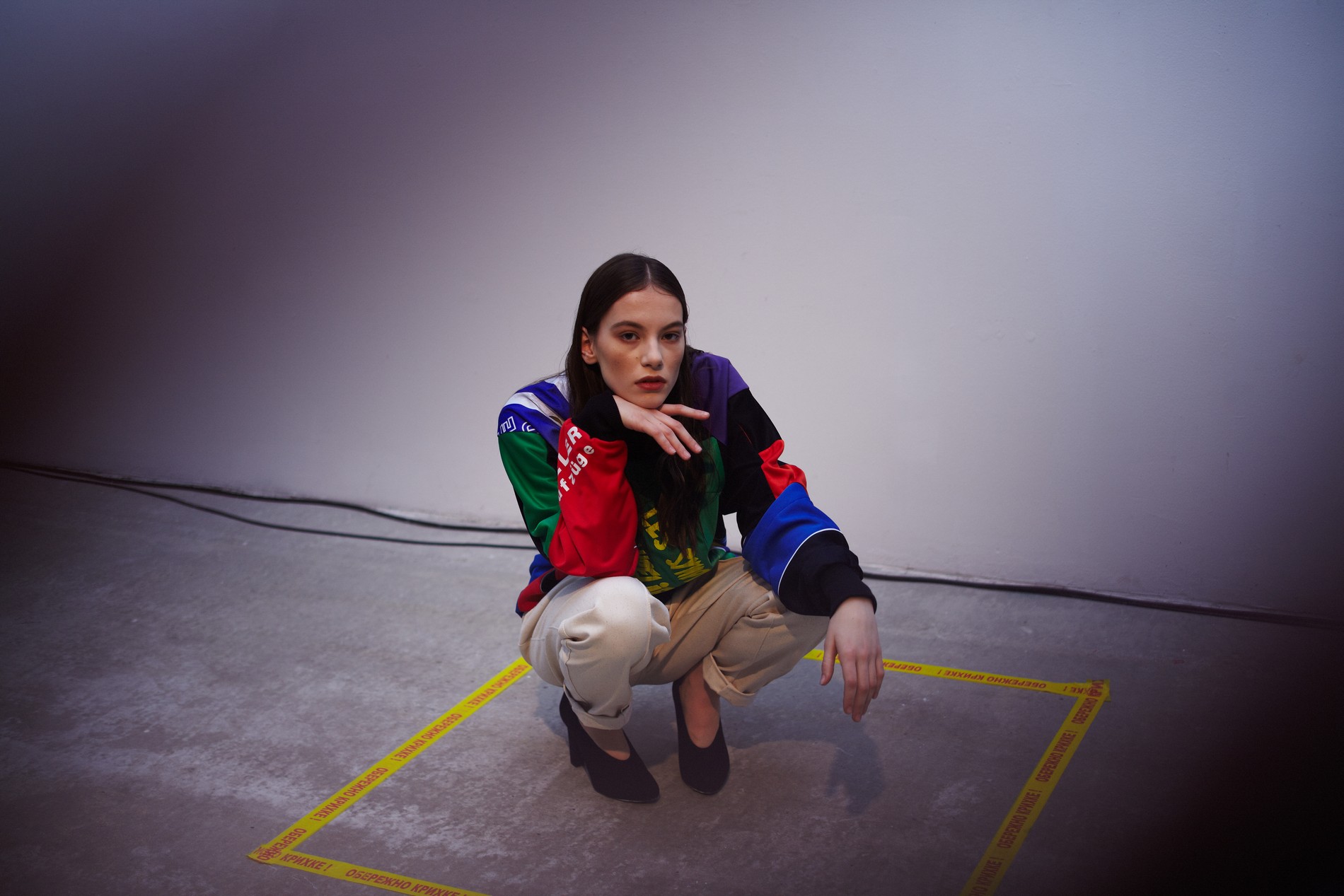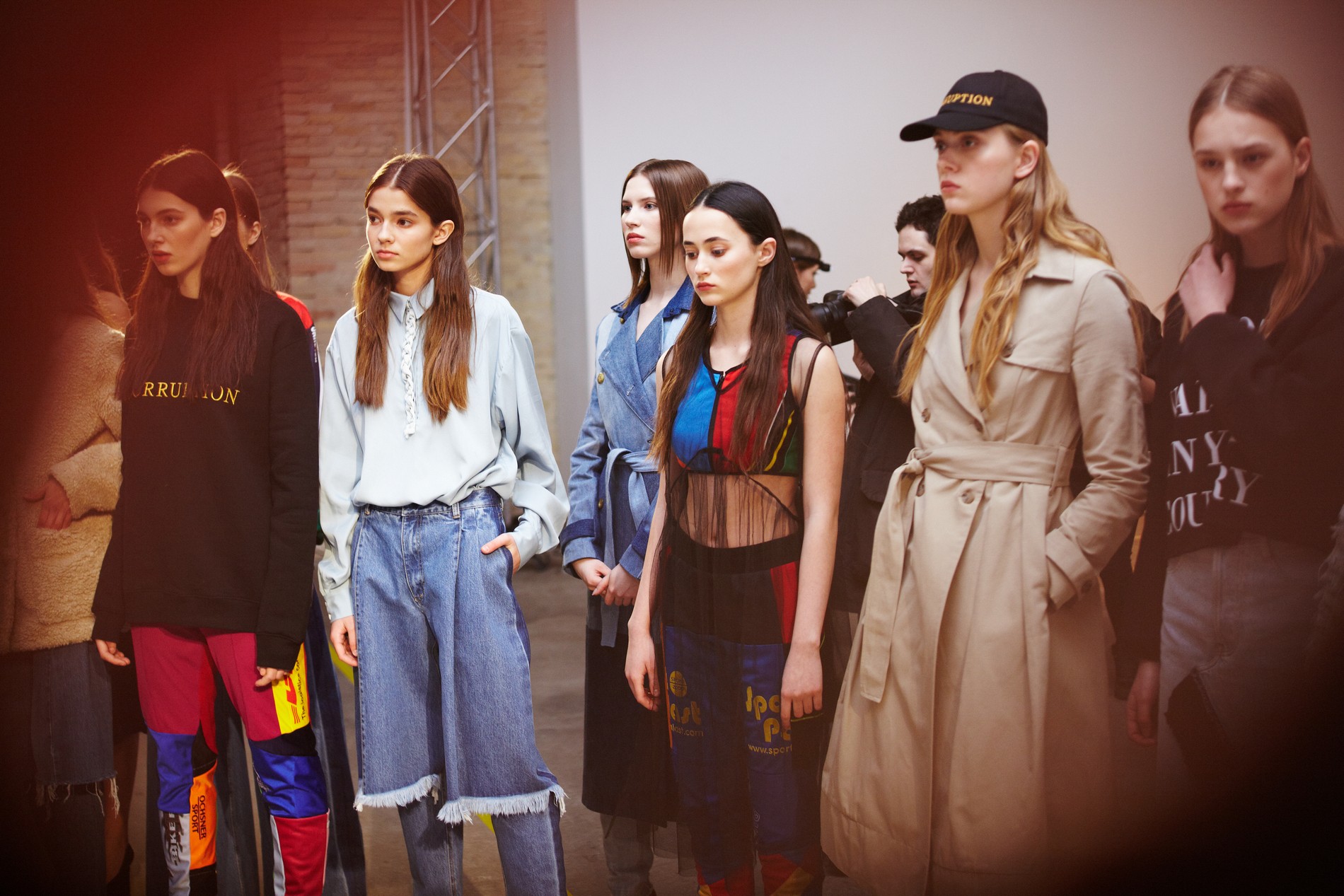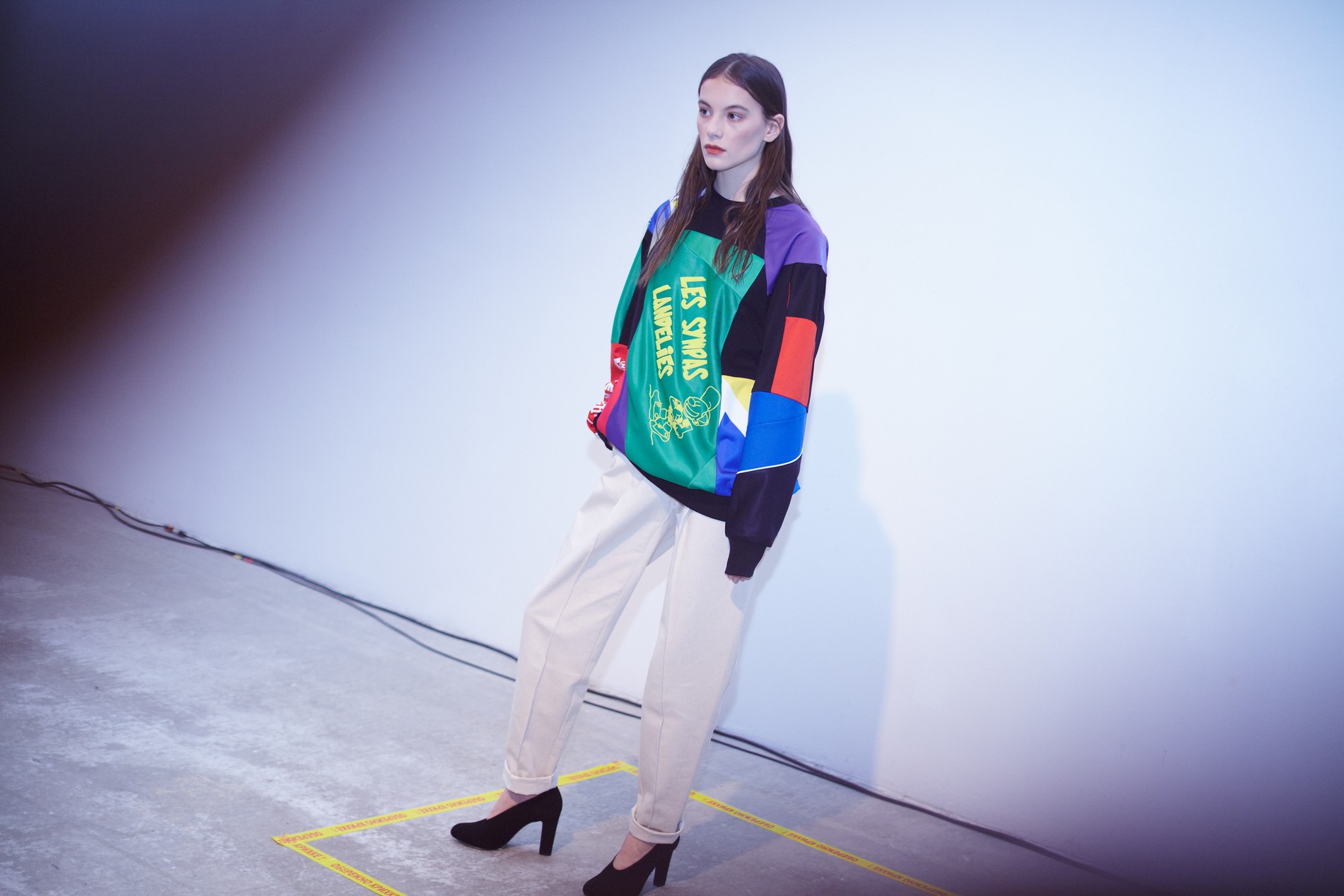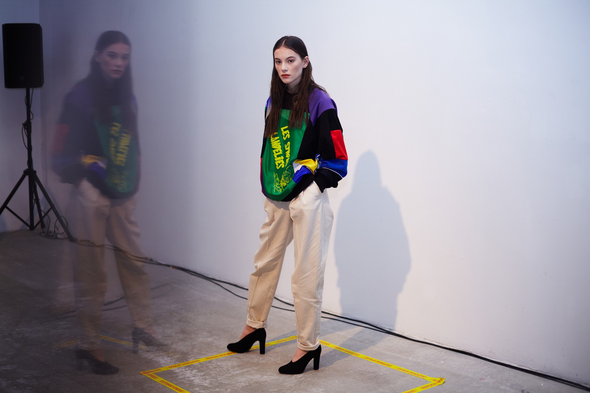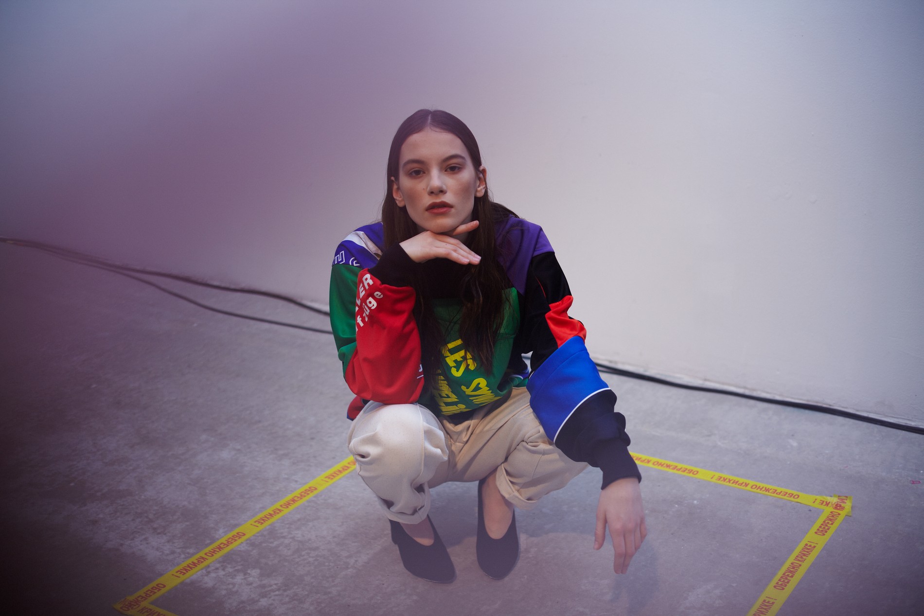 Презентация новой коллекции Ksenia Schnaider прошла в правом крыле Мыстецкого Арсенала. Модели примерили на себя роль объектов искусства – каждая из них была ограждена квадратом из желтой линии с подписью «Обережно: крихке». Ксения продолжает размышлять на тему актуальной уличной одежды: в ее коллекции – только удобные и практичные вещи, оттененные яркими цветами. Дизайнер не забывает о главных составляющих ДНК своего бренда: спортивные детали, колорблокинг и деним – в коллекцию вошли худи с ироничными принтами вроде Not Available In Your Country, юбки, жакеты, платья из денима – из этого материала дизайнер представила даже шапку и аксессуар для волос, не забыв, конечно, о джинсах demi-denims. Свое увлечение экомодой дизайнер тоже продолжает развивать: кроме recycled-вещей, в ее коллекции появилась шуба из экологического меха – напомним, ранее Ксения выпускала модель из денима.