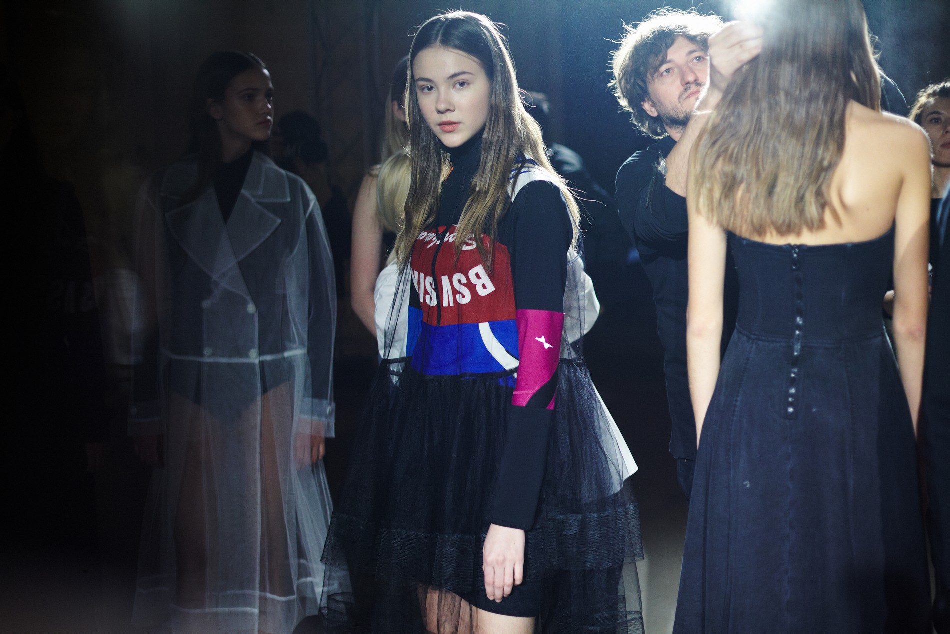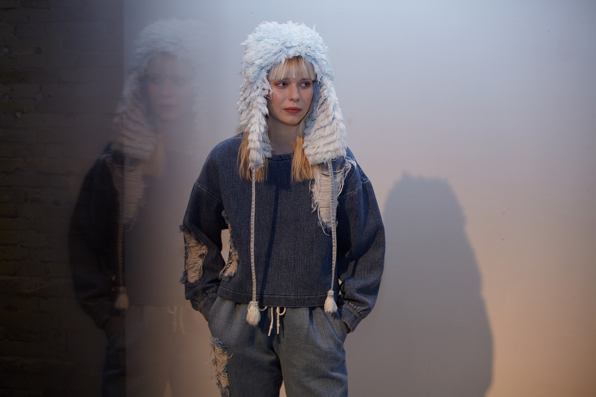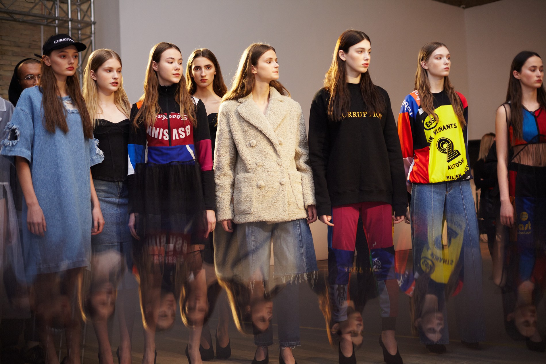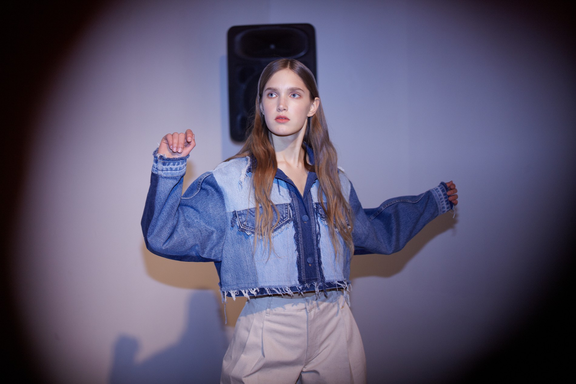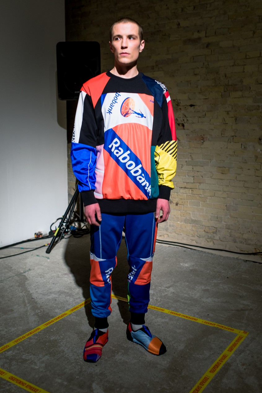 Презентация новой коллекции Ksenia Schnaider прошла в правом крыле Мыстецкого Арсенала. Модели примерили на себя роль объектов искусства – каждая из них была ограждена квадратом из желтой линии с подписью «Обережно: крихке». Ксения продолжает размышлять на тему актуальной уличной одежды: в ее коллекции – только удобные и практичные вещи, оттененные яркими цветами. Дизайнер не забывает о главных составляющих ДНК своего бренда: спортивные детали, колорблокинг и деним – в коллекцию вошли худи с ироничными принтами вроде Not Available In Your Country, юбки, жакеты, платья из денима – из этого материала дизайнер представила даже шапку и аксессуар для волос, не забыв, конечно, о джинсах demi-denims. Свое увлечение экомодой дизайнер тоже продолжает развивать: кроме recycled-вещей, в ее коллекции появилась шуба из экологического меха – напомним, ранее Ксения выпускала модель из денима.