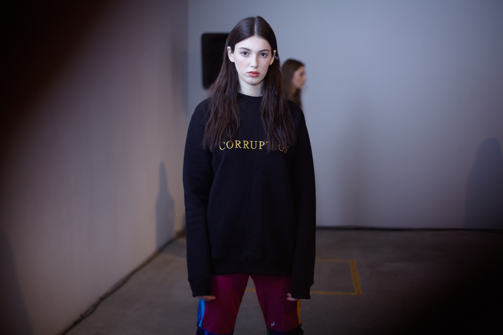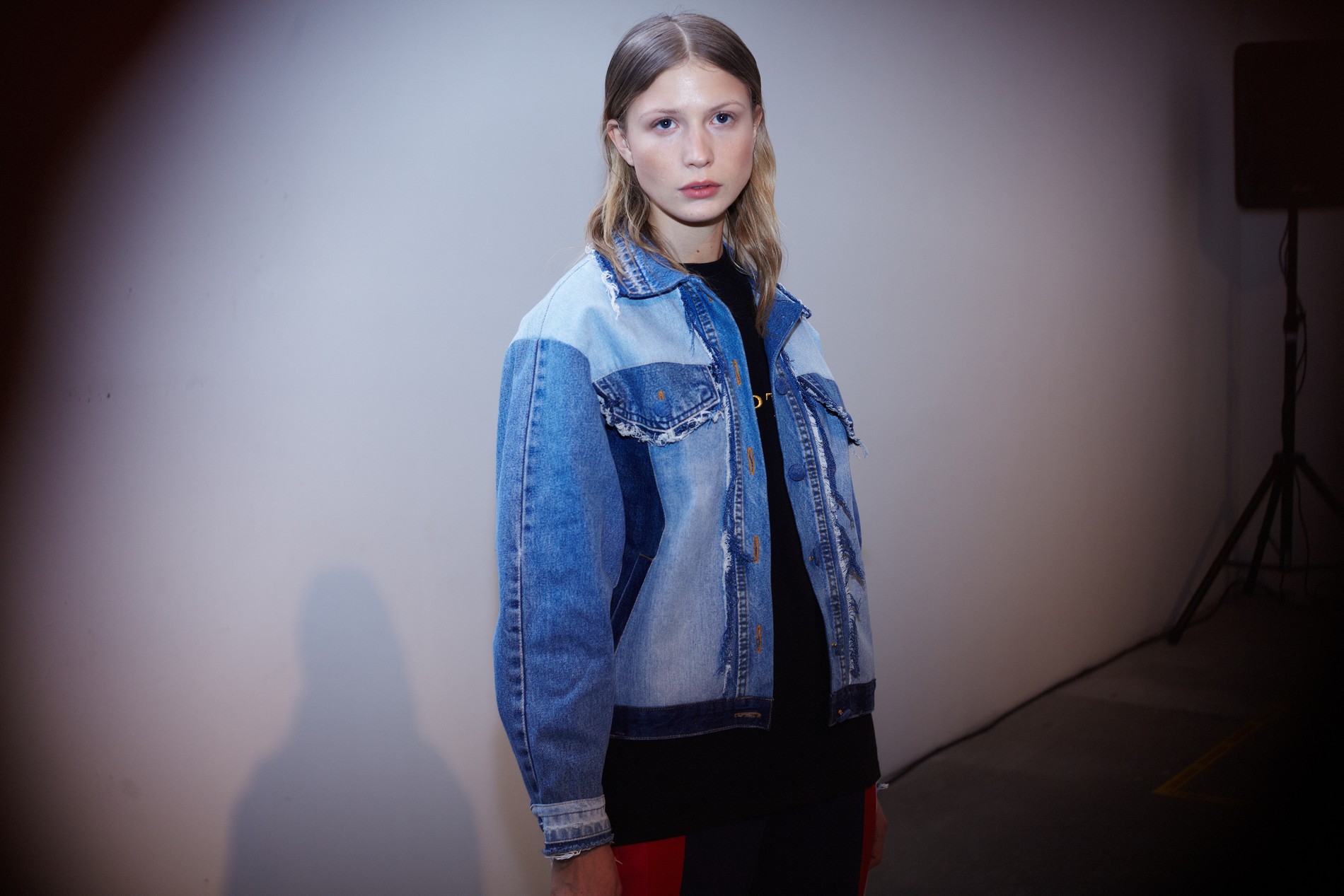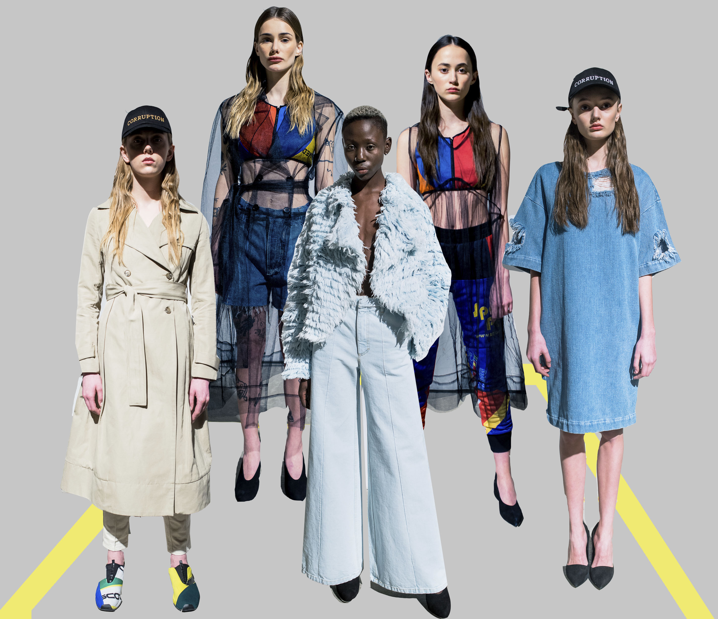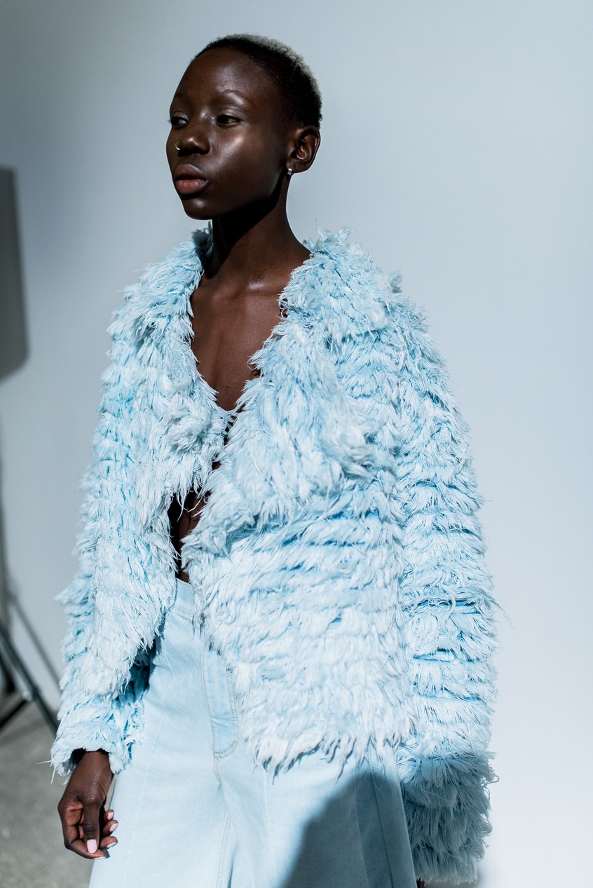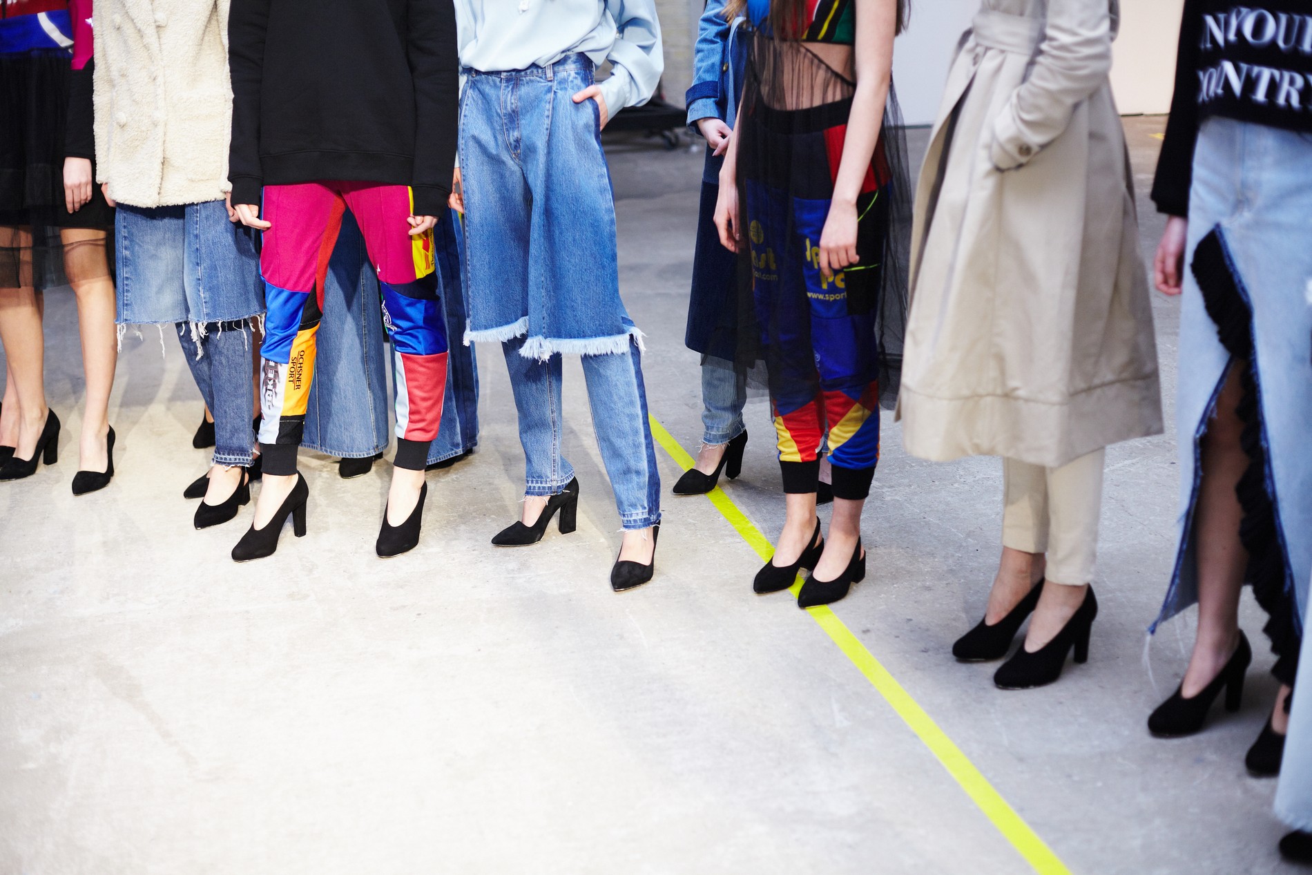 Презентация новой коллекции Ksenia Schnaider прошла в правом крыле Мыстецкого Арсенала. Модели примерили на себя роль объектов искусства – каждая из них была ограждена квадратом из желтой линии с подписью «Обережно: крихке». Ксения продолжает размышлять на тему актуальной уличной одежды: в ее коллекции – только удобные и практичные вещи, оттененные яркими цветами. Дизайнер не забывает о главных составляющих ДНК своего бренда: спортивные детали, колорблокинг и деним – в коллекцию вошли худи с ироничными принтами вроде Not Available In Your Country, юбки, жакеты, платья из денима – из этого материала дизайнер представила даже шапку и аксессуар для волос, не забыв, конечно, о джинсах demi-denims. Свое увлечение экомодой дизайнер тоже продолжает развивать: кроме recycled-вещей, в ее коллекции появилась шуба из экологического меха – напомним, ранее Ксения выпускала модель из денима.