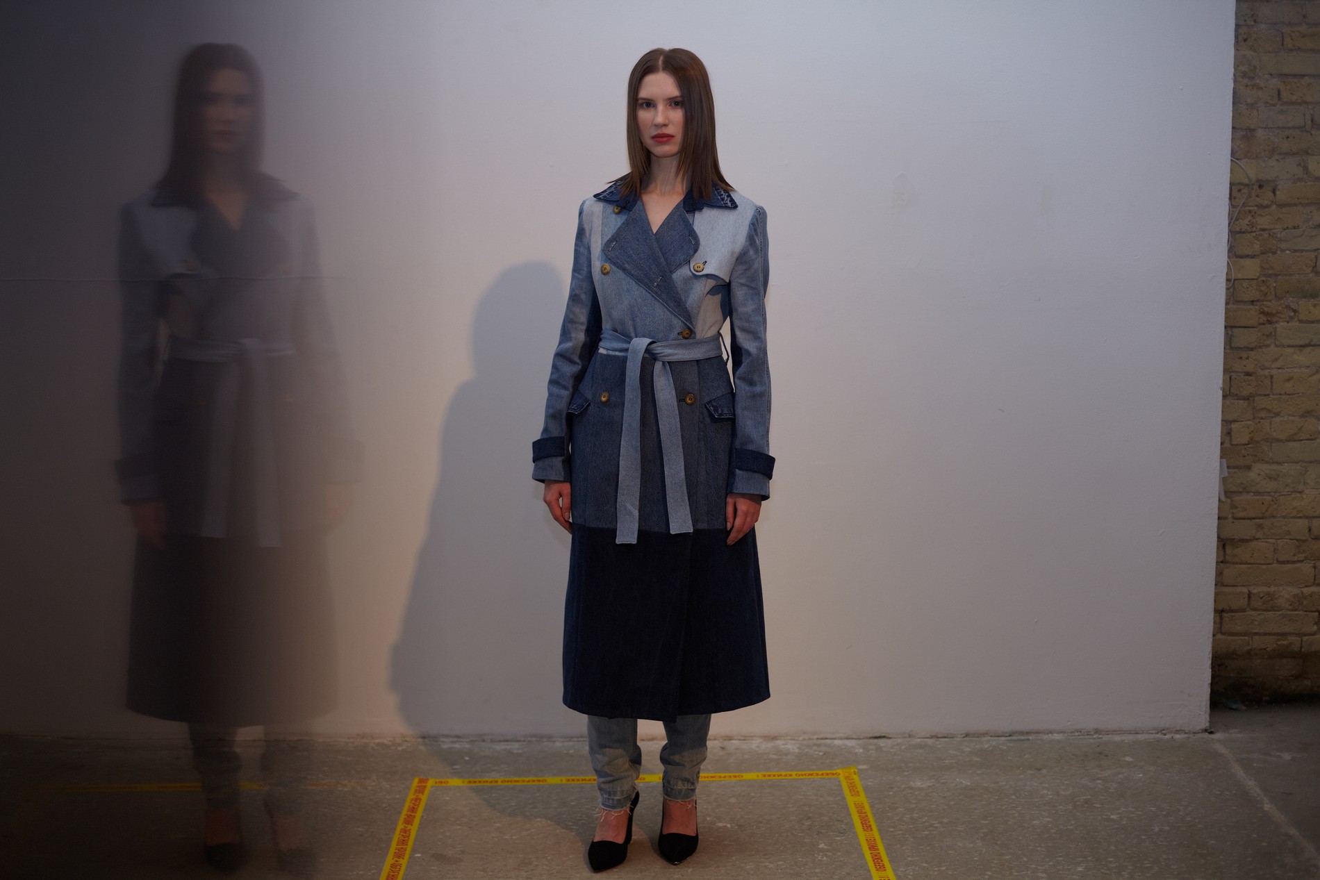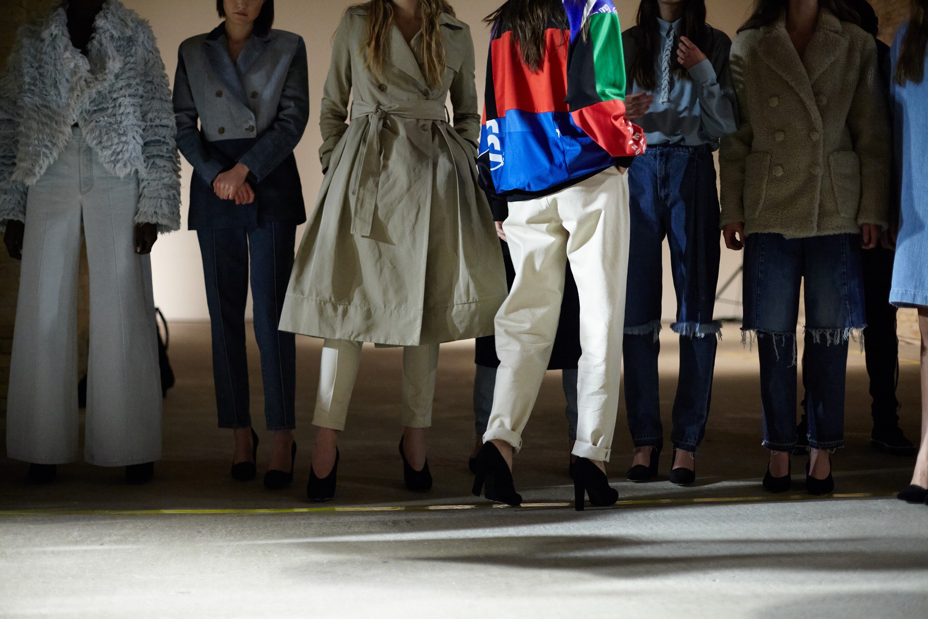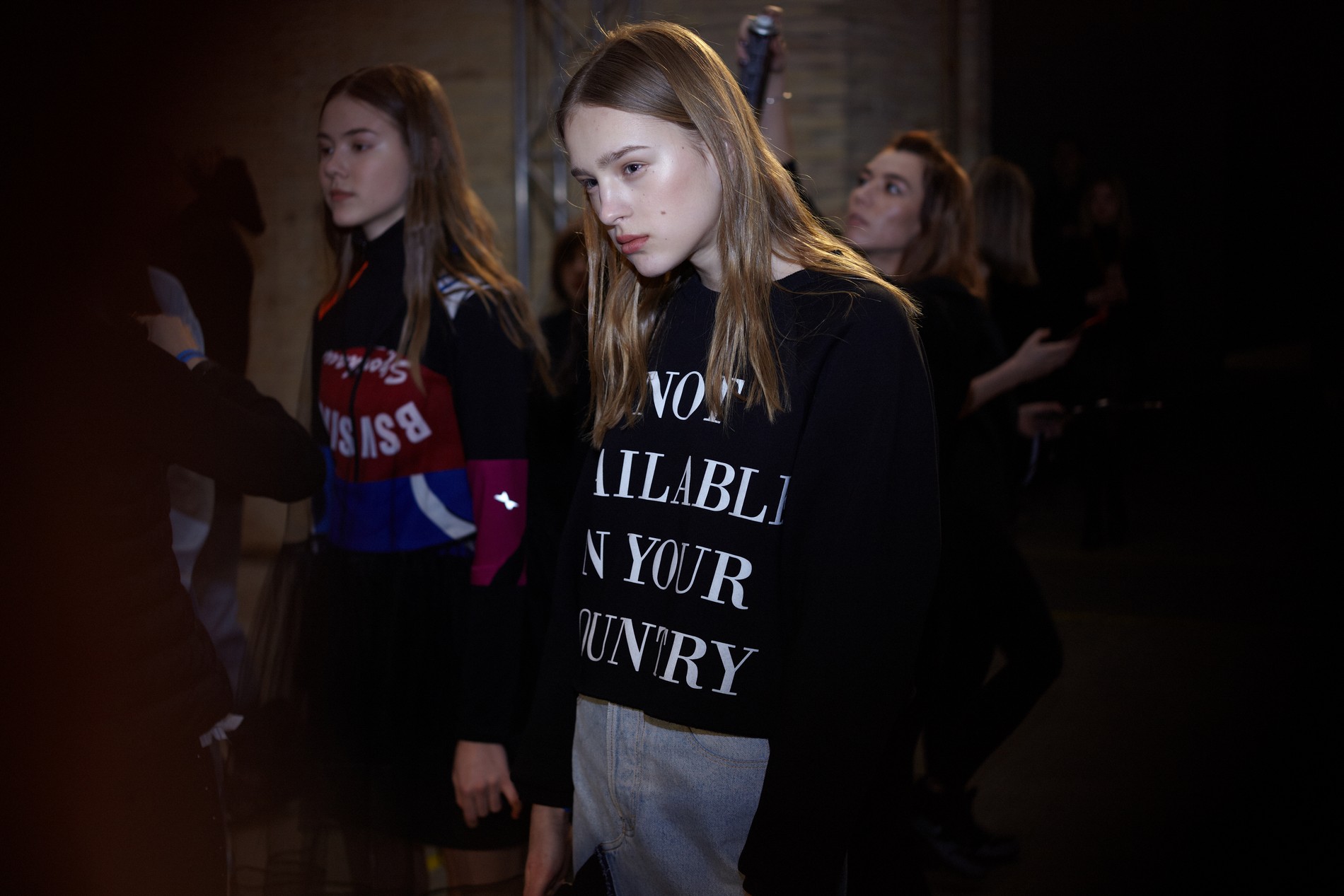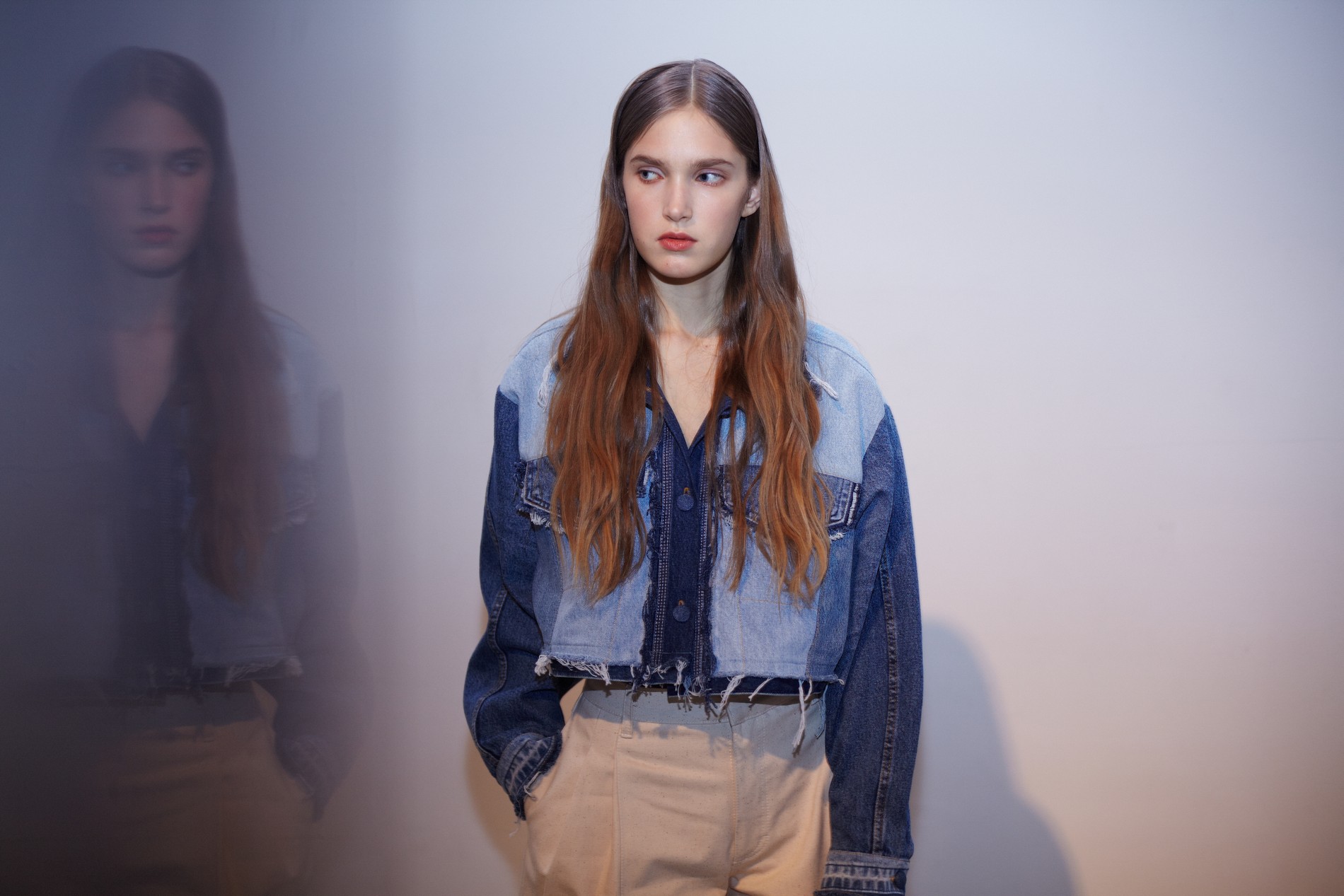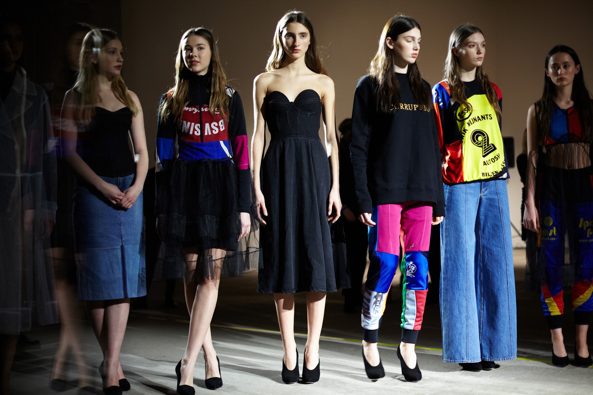 Презентация новой коллекции Ksenia Schnaider прошла в правом крыле Мыстецкого Арсенала. Модели примерили на себя роль объектов искусства – каждая из них была ограждена квадратом из желтой линии с подписью «Обережно: крихке». Ксения продолжает размышлять на тему актуальной уличной одежды: в ее коллекции – только удобные и практичные вещи, оттененные яркими цветами. Дизайнер не забывает о главных составляющих ДНК своего бренда: спортивные детали, колорблокинг и деним – в коллекцию вошли худи с ироничными принтами вроде Not Available In Your Country, юбки, жакеты, платья из денима – из этого материала дизайнер представила даже шапку и аксессуар для волос, не забыв, конечно, о джинсах demi-denims. Свое увлечение экомодой дизайнер тоже продолжает развивать: кроме recycled-вещей, в ее коллекции появилась шуба из экологического меха – напомним, ранее Ксения выпускала модель из денима.