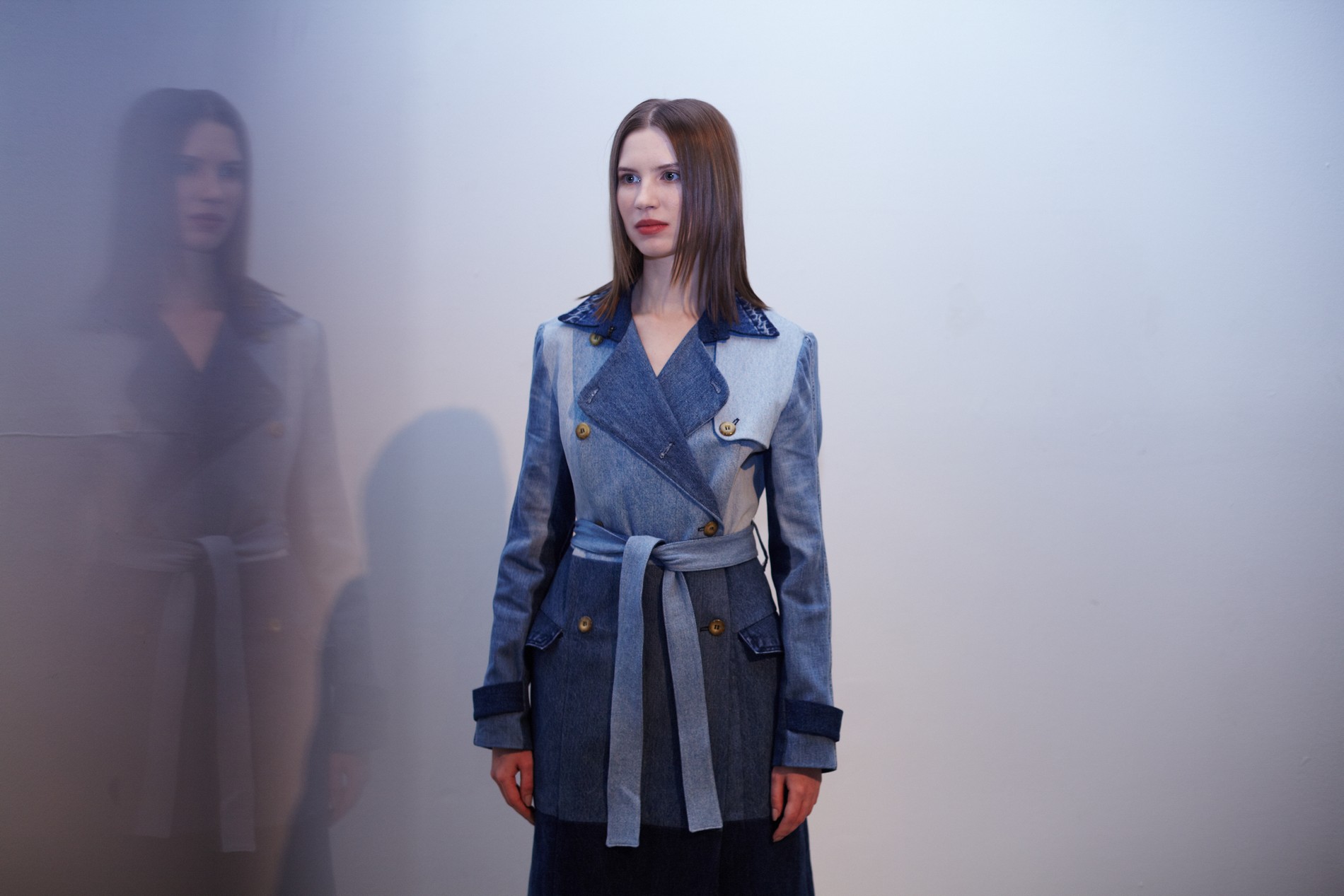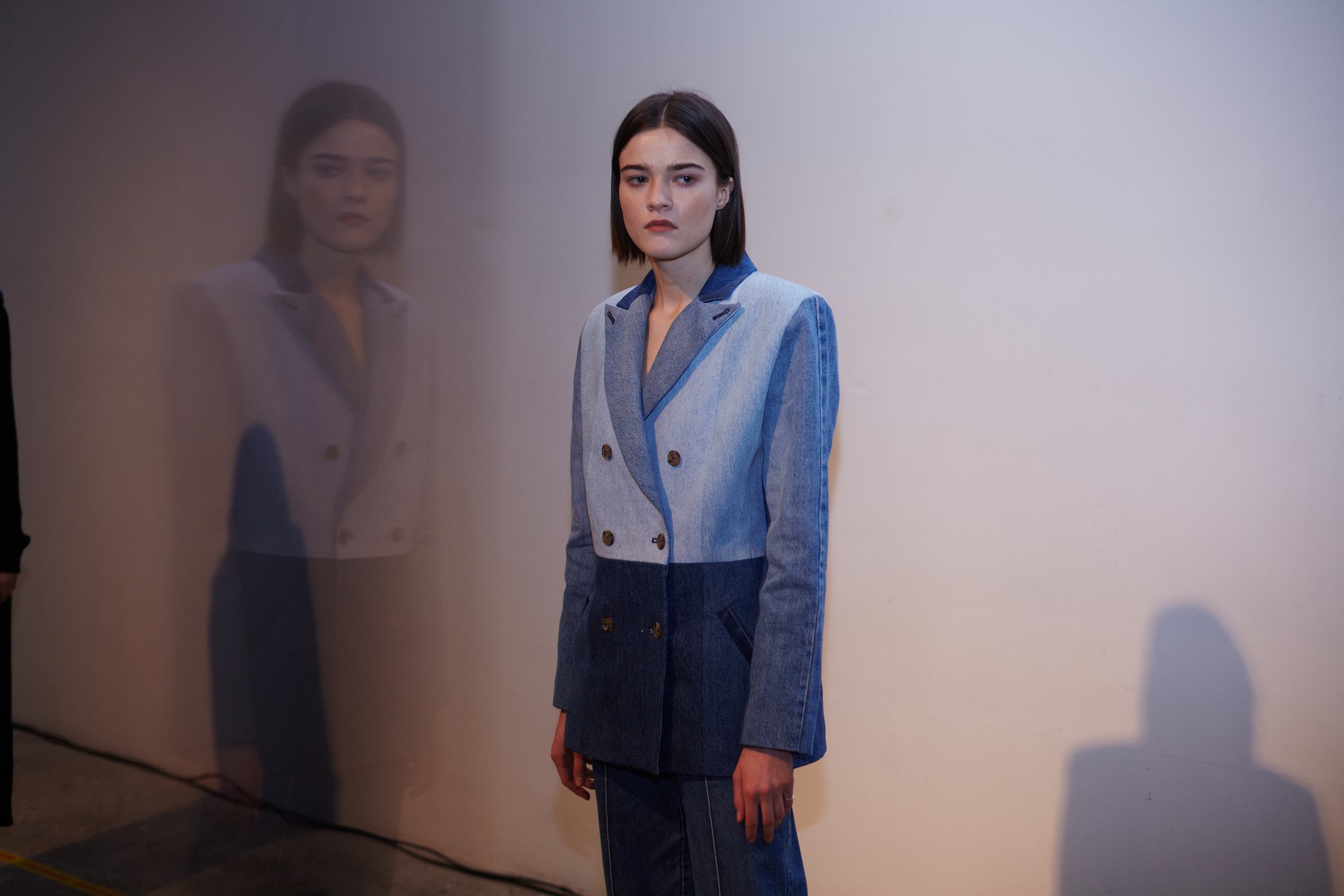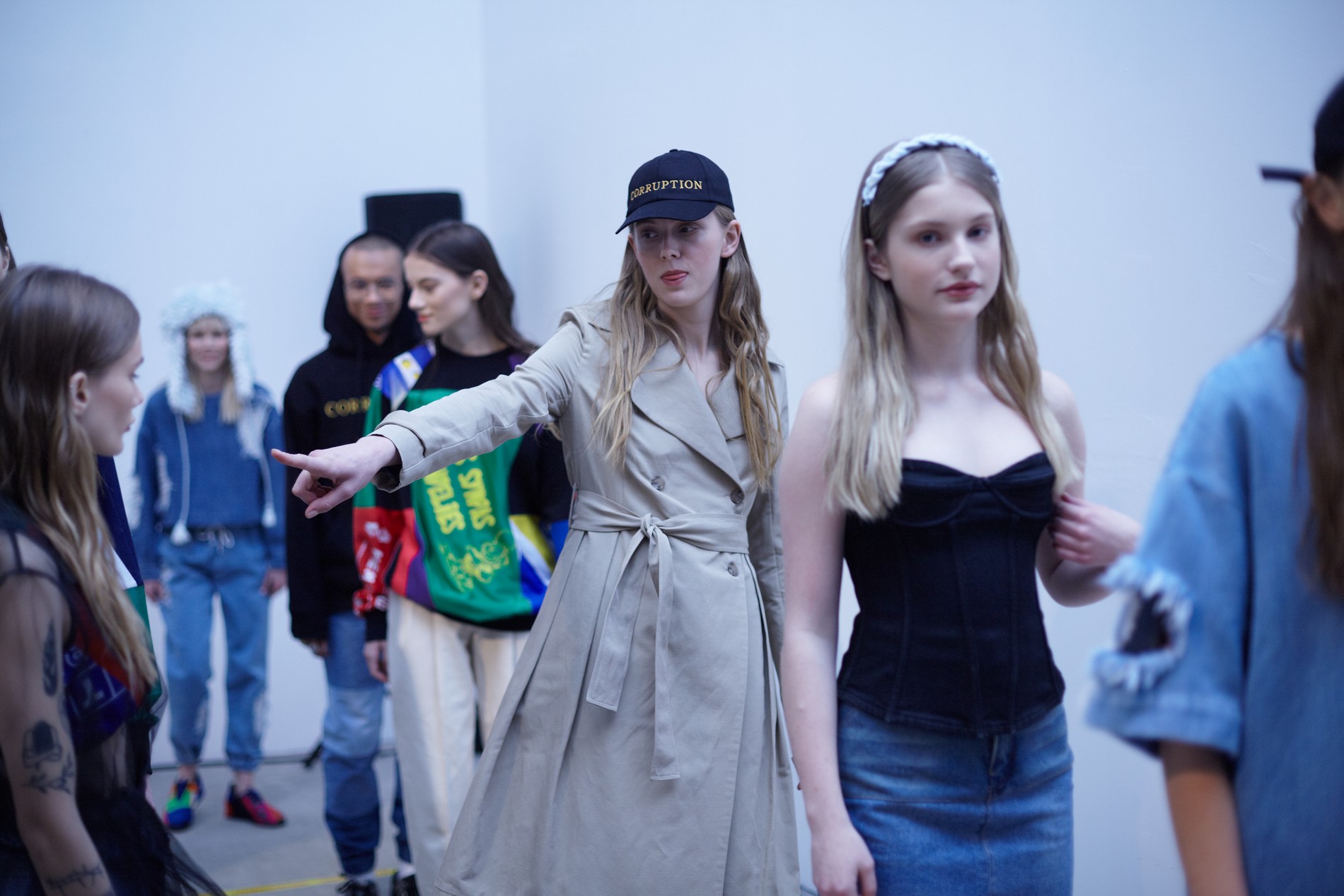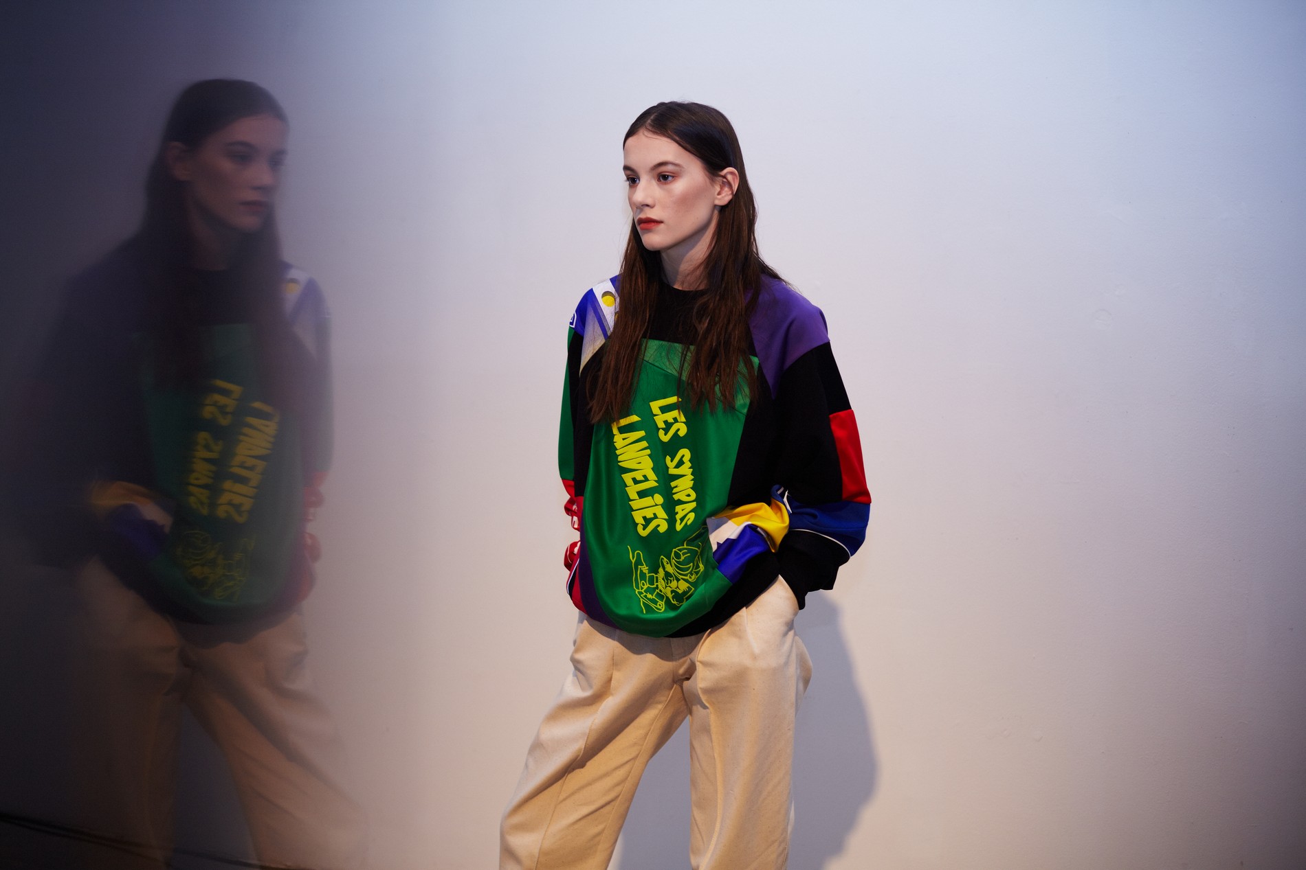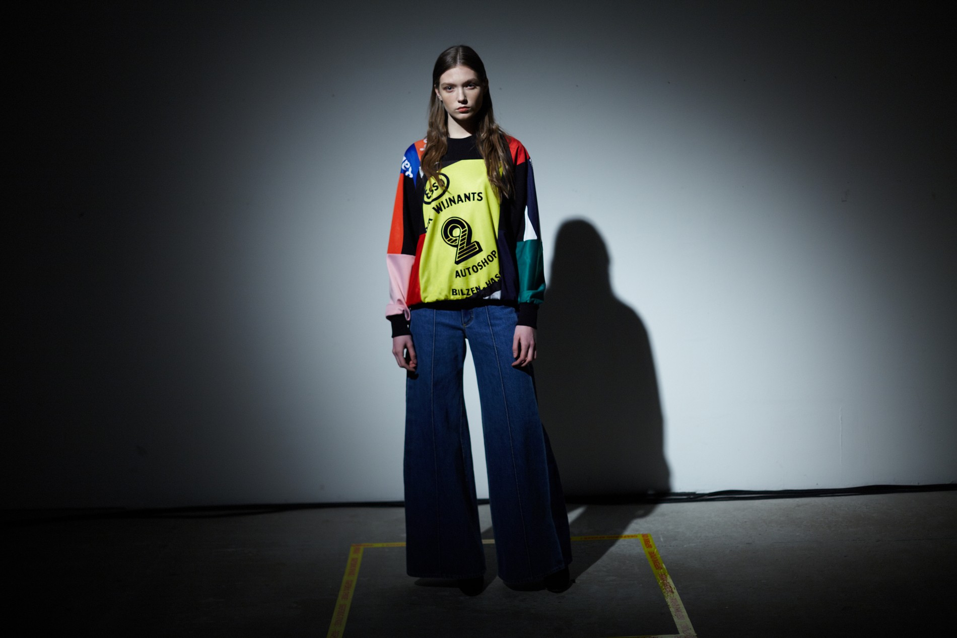 Презентация новой коллекции Ksenia Schnaider прошла в правом крыле Мыстецкого Арсенала. Модели примерили на себя роль объектов искусства – каждая из них была ограждена квадратом из желтой линии с подписью «Обережно: крихке». Ксения продолжает размышлять на тему актуальной уличной одежды: в ее коллекции – только удобные и практичные вещи, оттененные яркими цветами. Дизайнер не забывает о главных составляющих ДНК своего бренда: спортивные детали, колорблокинг и деним – в коллекцию вошли худи с ироничными принтами вроде Not Available In Your Country, юбки, жакеты, платья из денима – из этого материала дизайнер представила даже шапку и аксессуар для волос, не забыв, конечно, о джинсах demi-denims. Свое увлечение экомодой дизайнер тоже продолжает развивать: кроме recycled-вещей, в ее коллекции появилась шуба из экологического меха – напомним, ранее Ксения выпускала модель из денима.