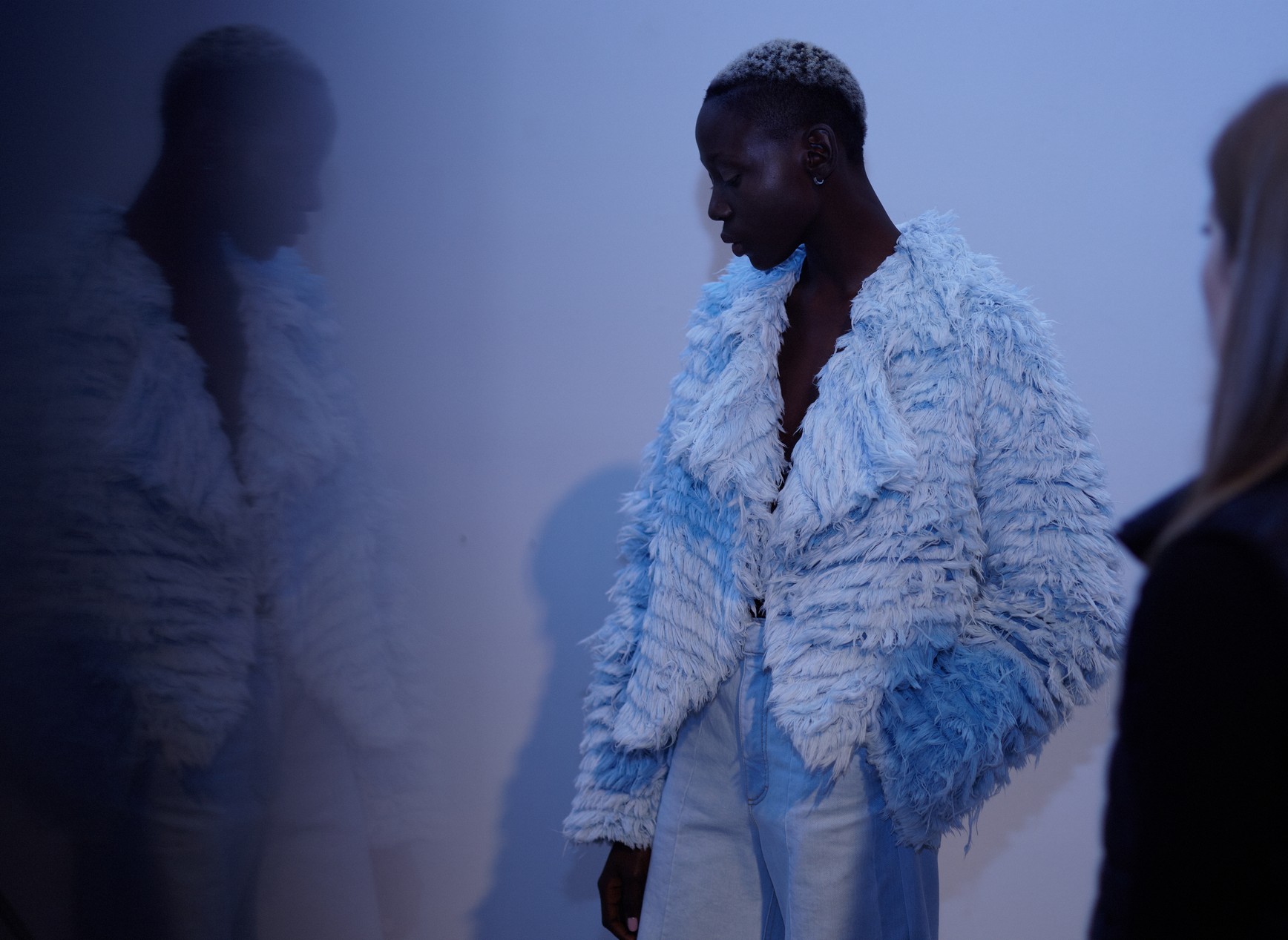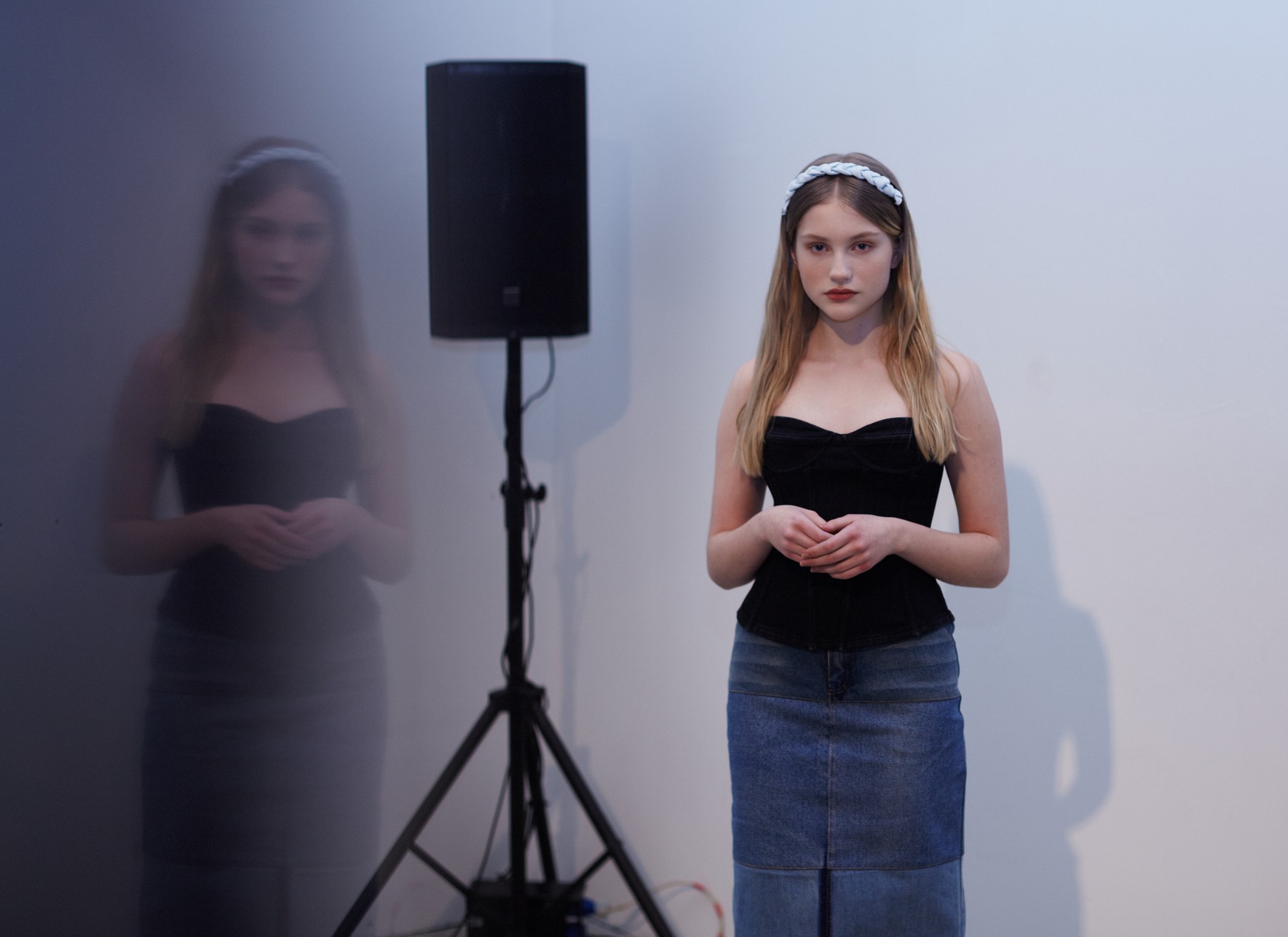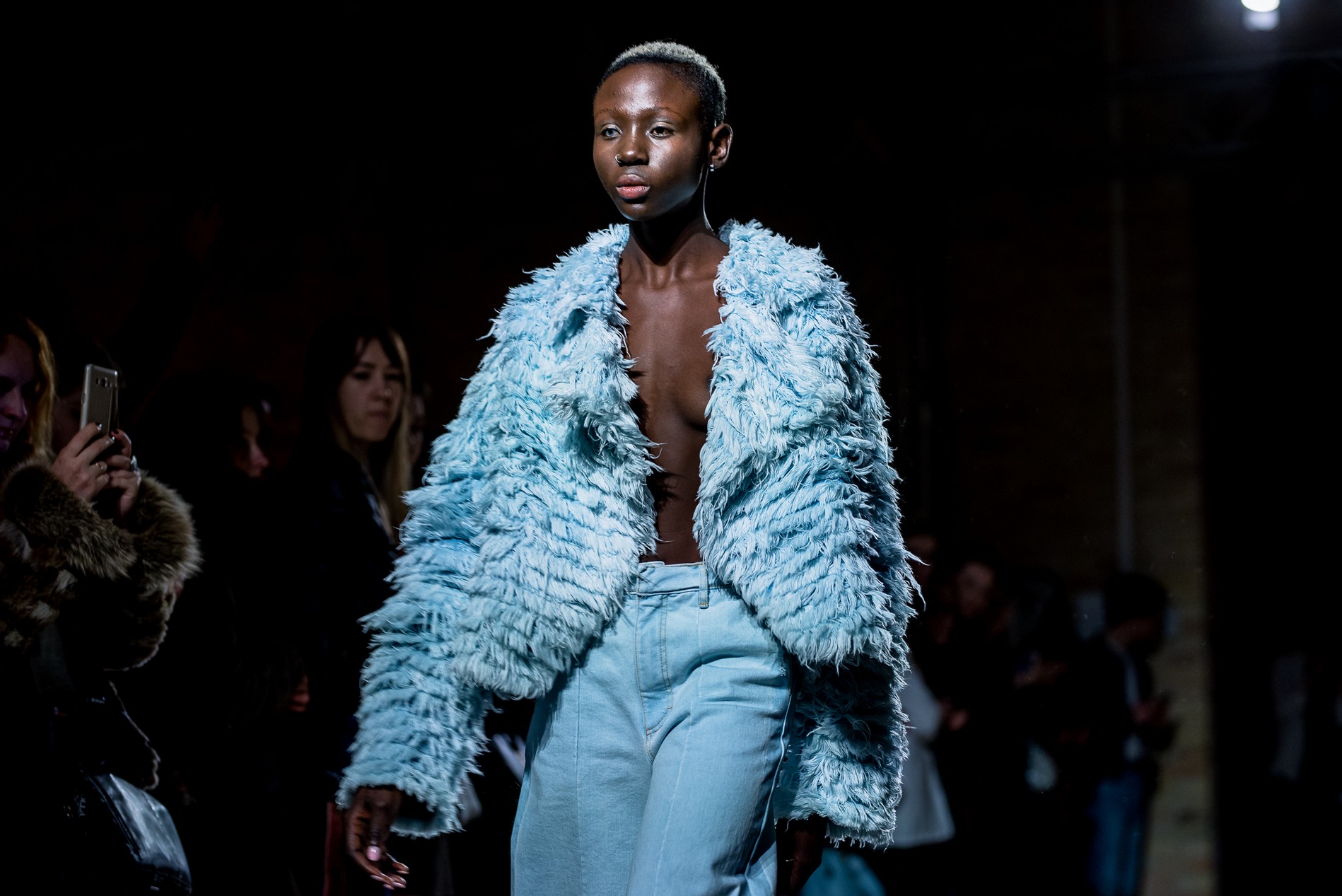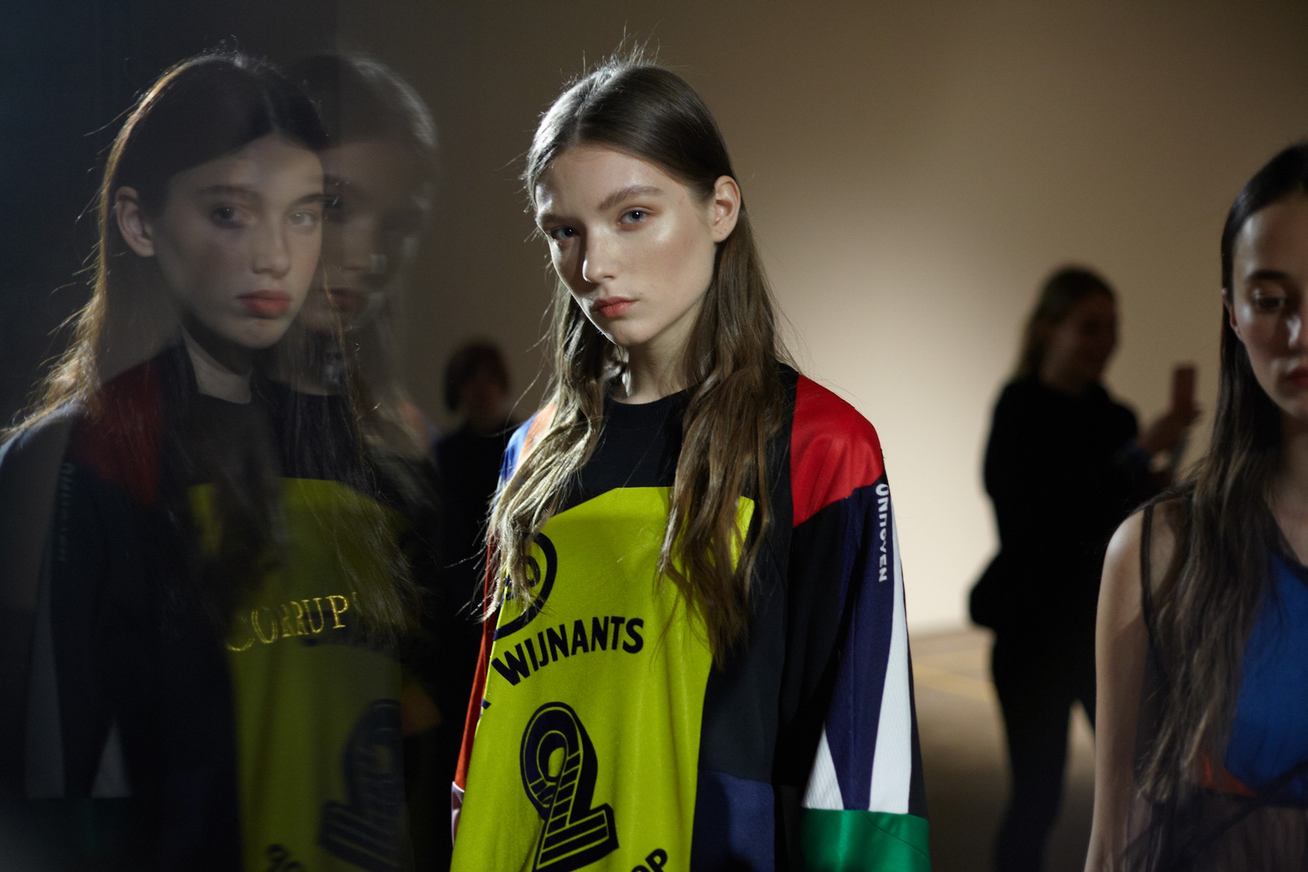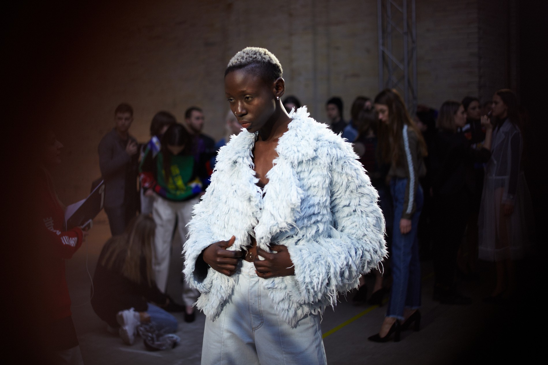 Презентация новой коллекции Ksenia Schnaider прошла в правом крыле Мыстецкого Арсенала. Модели примерили на себя роль объектов искусства – каждая из них была ограждена квадратом из желтой линии с подписью «Обережно: крихке». Ксения продолжает размышлять на тему актуальной уличной одежды: в ее коллекции – только удобные и практичные вещи, оттененные яркими цветами. Дизайнер не забывает о главных составляющих ДНК своего бренда: спортивные детали, колорблокинг и деним – в коллекцию вошли худи с ироничными принтами вроде Not Available In Your Country, юбки, жакеты, платья из денима – из этого материала дизайнер представила даже шапку и аксессуар для волос, не забыв, конечно, о джинсах demi-denims. Свое увлечение экомодой дизайнер тоже продолжает развивать: кроме recycled-вещей, в ее коллекции появилась шуба из экологического меха – напомним, ранее Ксения выпускала модель из денима.