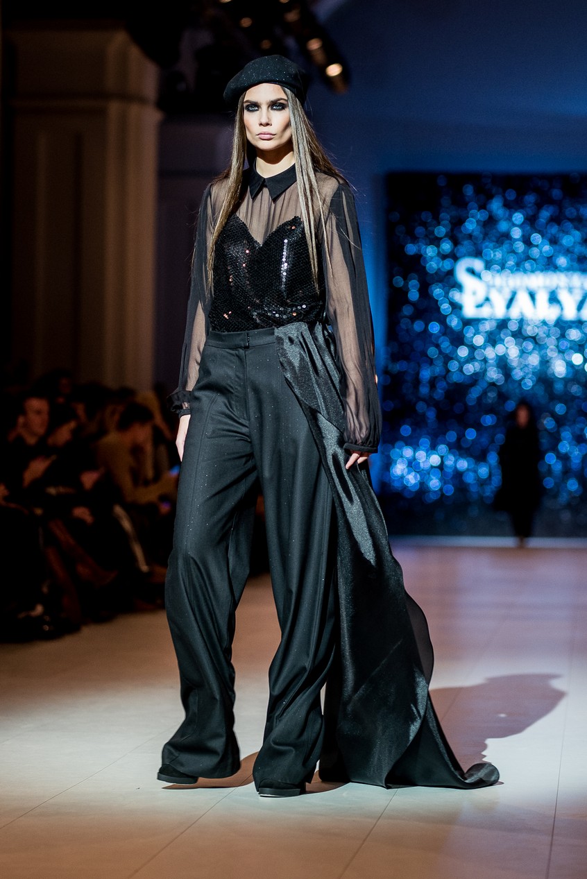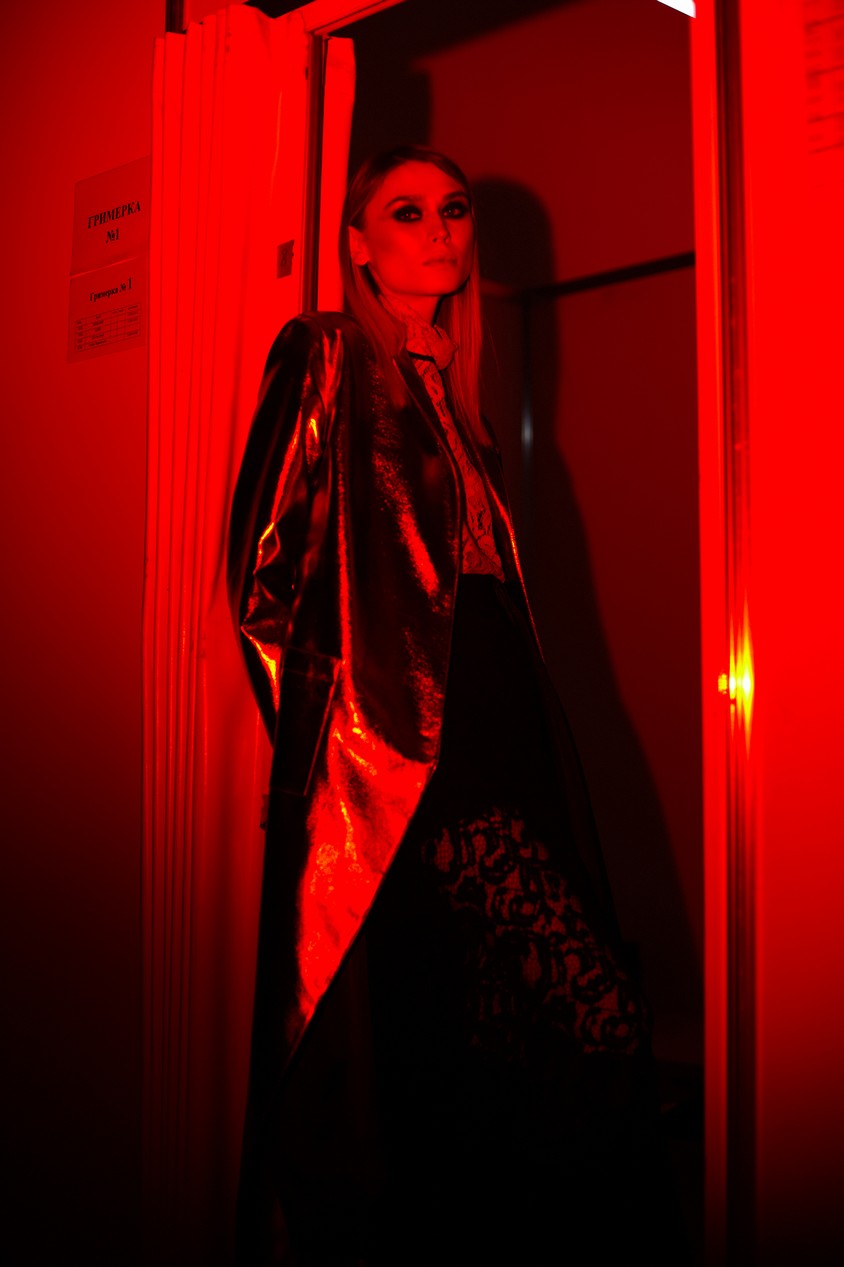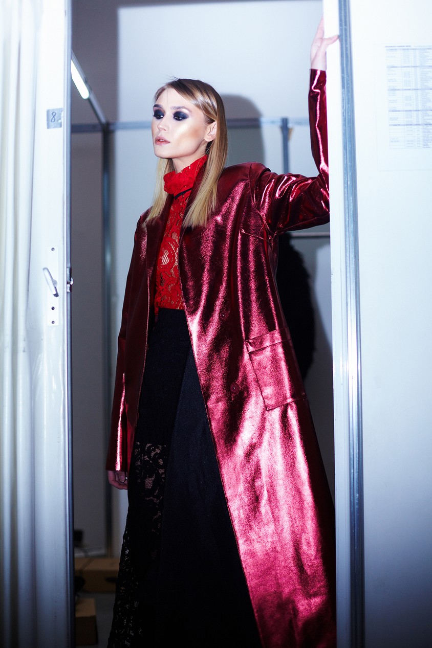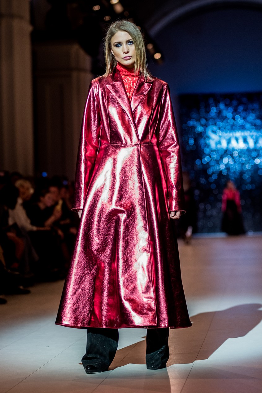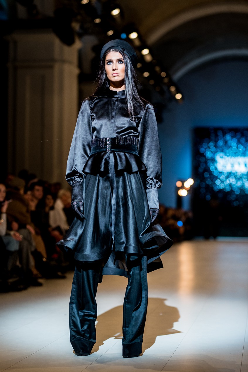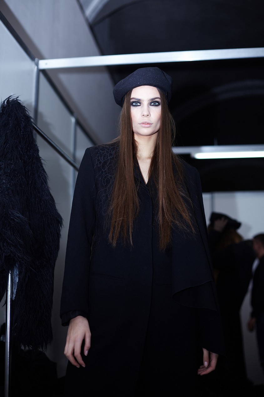 Выйти на улицу в платье, скорее напоминающем пиджак, или в полупрозрачной блузке, строгой деловой юбке и виниловом тренче — не проблема для героини Ляли. Главное — не забыть милую шляпку или берет. Дизайнер, будто вспоминая роман Стендаля «Красное и черное», посвящает этой комбинации цветов всю коллекцию. Так она проводит параллель между сильным характером и женственностью.